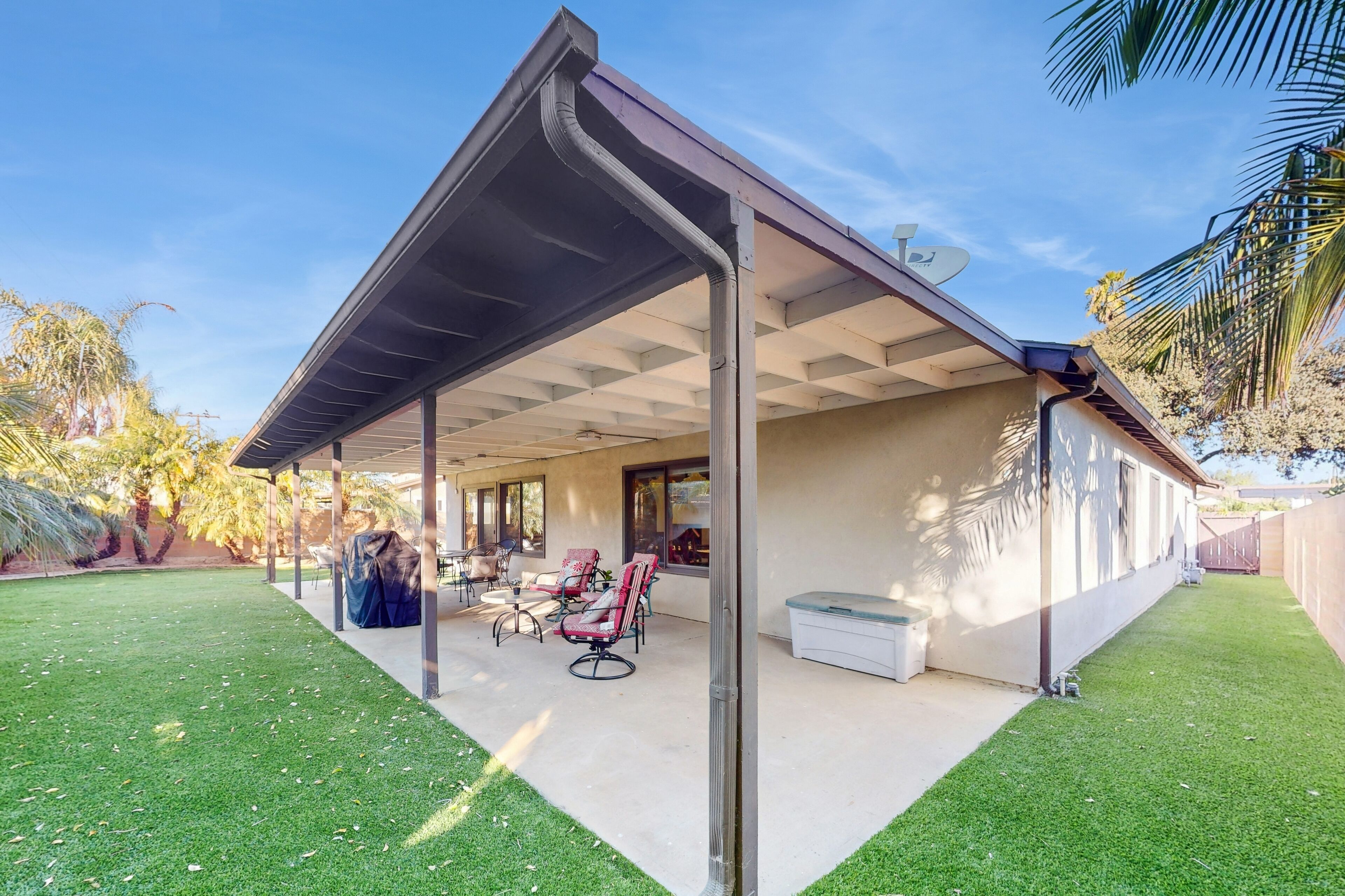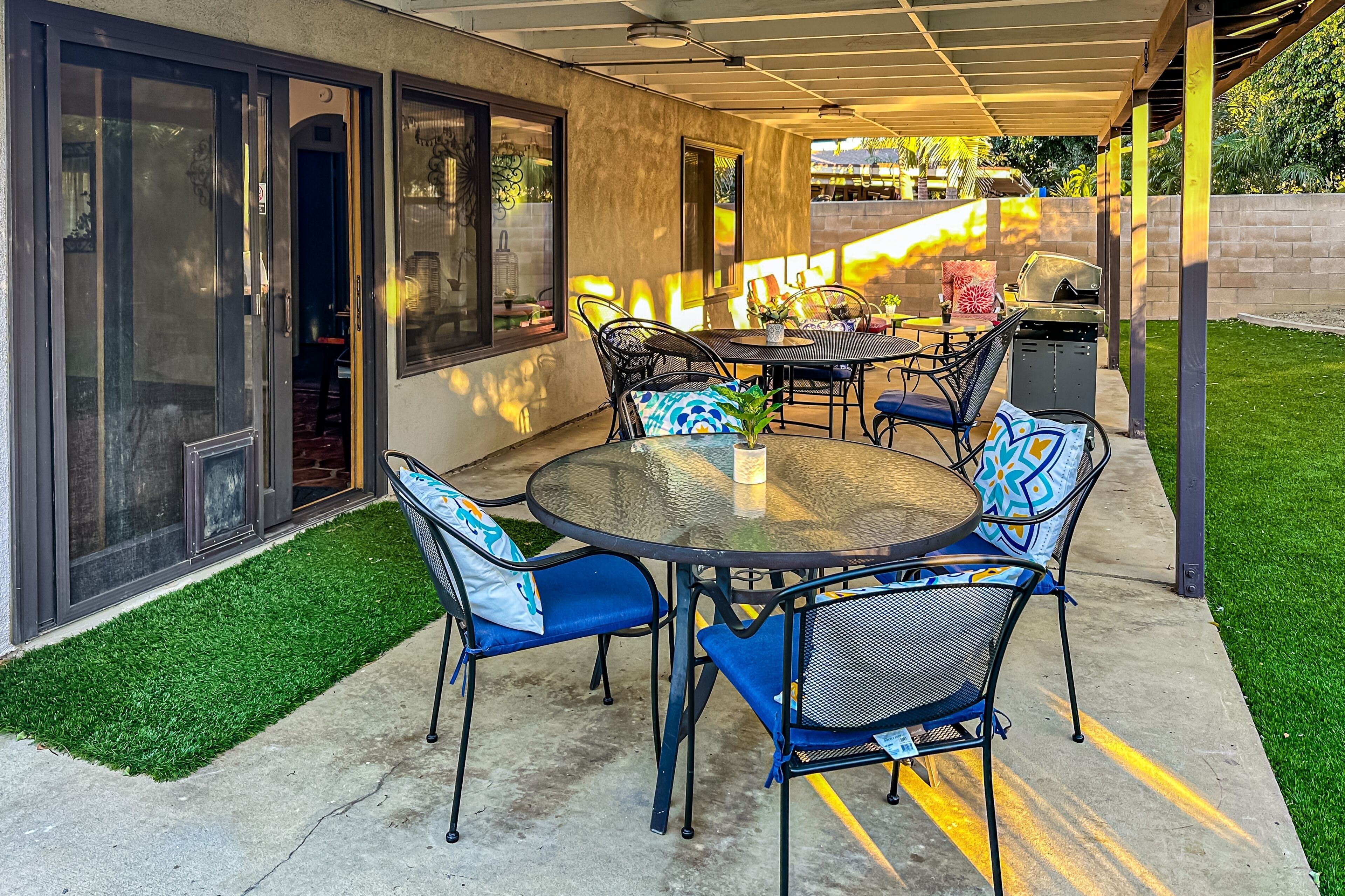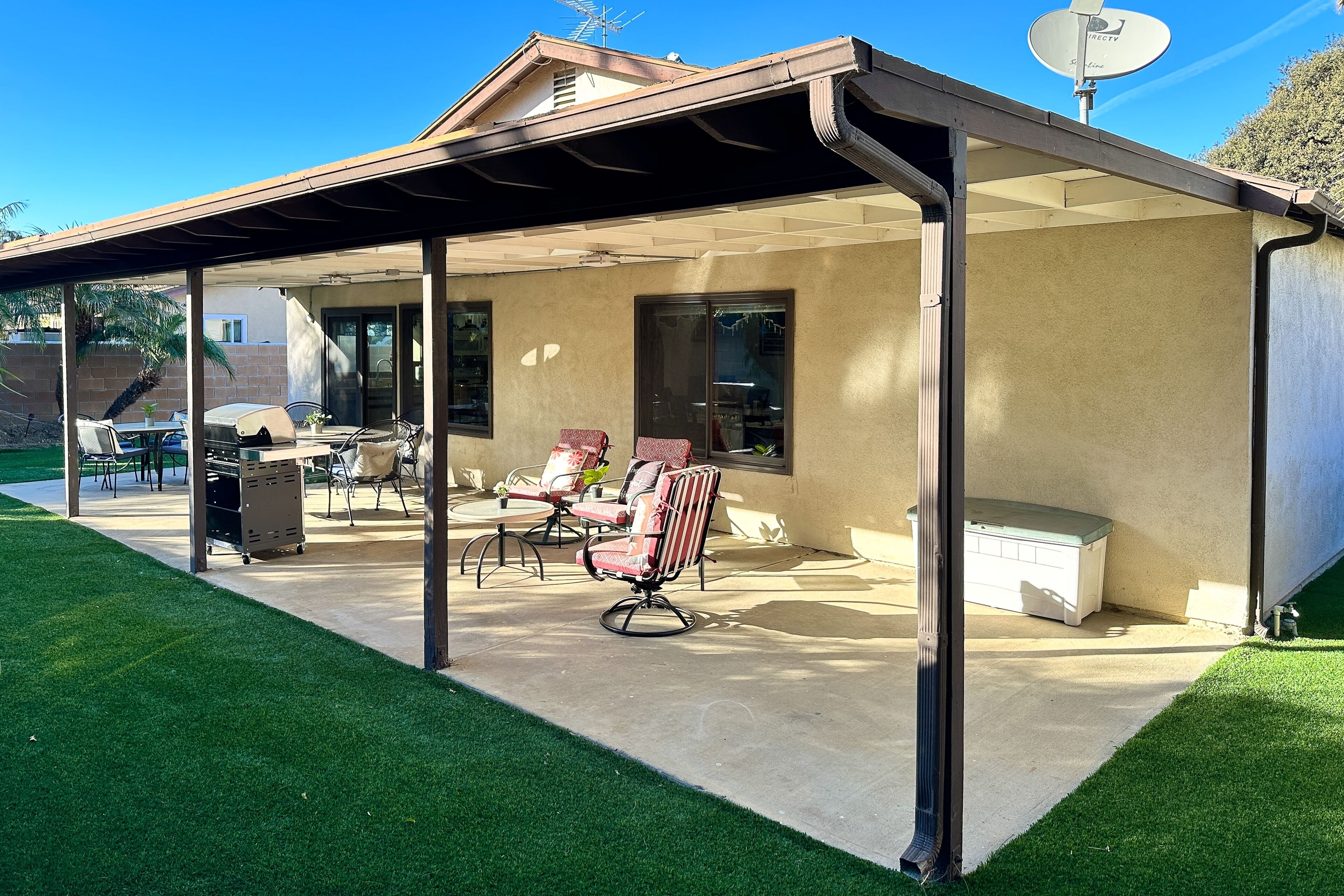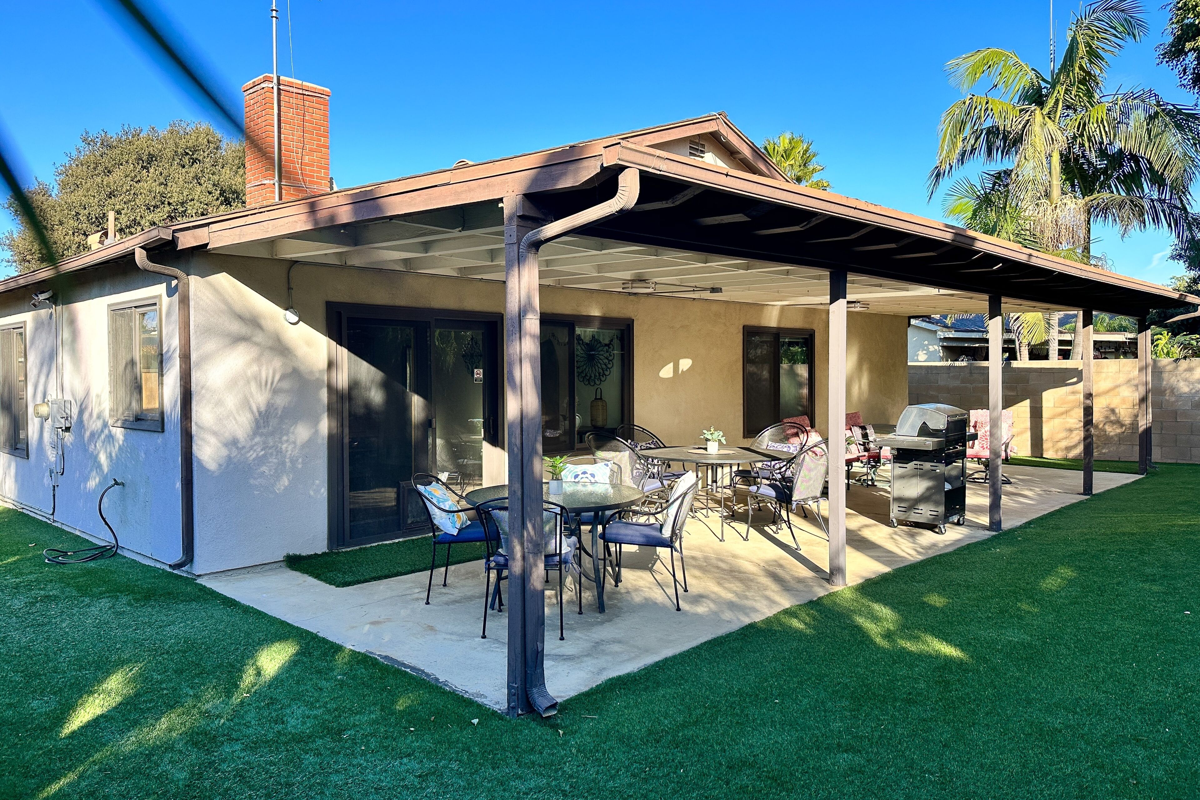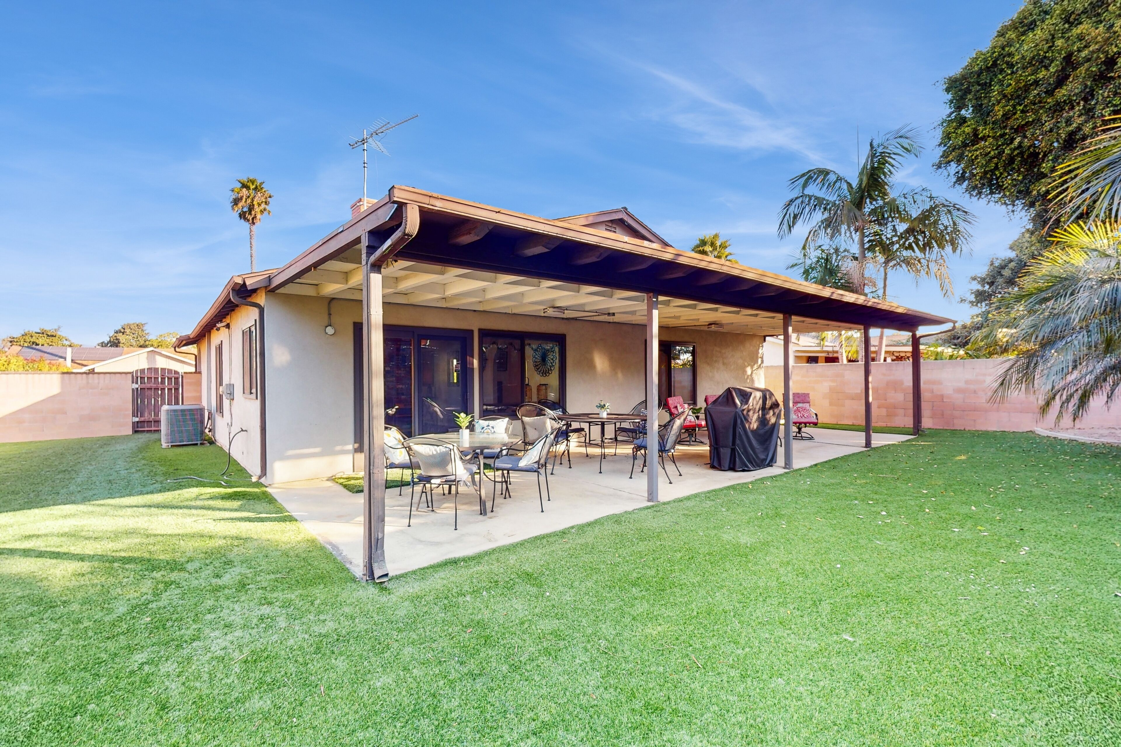 Dog-friendly retreat with enclosed yard, grill, fireplace, & AC - great location Bentons OasisOur calendar is updated in real-time & our nightly rates are accurately displayed. Simply enter your desired dates and click 'Book Now!'A restful California retreat awaits you and yours at Bentons Oasis! Nestled in Ventura, a close neighbor to Los Angeles, there is no lack of things to do or explore. Minutes from your stay, make fun memories at Golf N Stuff, Sky Zone Trampoline Park, Arroyo Verde Park, Olivas Links, and Harbor Cove Beach. Bentons Oasis is a place of pure peace, surrounded by palms and sunshine. Upon entering, you will immediately take notice of the living room's ample seating and large smart TV - the perfect combination for morning newscasts and evening movie nights. When you get hungry, utilize the well-equipped kitchen to prepare your favorite dishes. Your meals are best enjoyed at the formal dining table inside or alfresco on the sunny patio. When you aren't dining over the wooden dining table, it's also great for board game competitions. Equally well-decorated and inviting, the bedrooms are adorned with soft linens and central air-conditioning. Additional interior amenities include a gas fireplace and a private washer/dryer. As the sunset's yellow, orange, and pink hues begin to fill the sky, head for the enclosed yard and fire up the gas grill. Things to KnowCheck-in time: 4:00 p.m.Check-out time: 10:00 a.m.All guests shall abide by Vacasa’s good neighbor policy and shall not engage in illegal activity. Quiet hours are from 10:00 p.m. to 8:00 a.m.No smoking is permitted anywhere on the premises.If you are bringing a dog on your trip, the pet fee is already included in your quote when selecting ‘Yes’ to pets. If you would like to add more dogs, please contact us. The pet fee is per stay and ranges between $150 and $200, depending on the bedroom count, and will apply for each additional dog.Parking notes: There is free parking available for 3 vehicles.This rental is located on floor 1.Please note: this home resides in a noise-sensitive area and the owners participate in our Good Neighbor protection program. Our smart home technology will alert our team if excessive decibel or occupancy levels are detected, allowing us to reach out directly with a reminder of maximum occupancy and quiet hours. This technology is privacy compliant, and only monitors the presence of decibels and devices-not any personal conversation or information. Thank you for supporting our efforts to be good neighbors!Damage waiver: The total cost of your reservation for this Property includes a nightly damage waiver fee, plus tax if applicable (the “Damage Waiver”). (A discount may be applied for stays of 28 nights or longer, if permitted.) The Damage Waiver covers you for up to $3,000 of accidental damage to the Property or its contents (such as furniture, fixtures, and appliances) as long as you report the incident to the host prior to checking out. The Damage Waiver fee eliminates the need for a traditional security deposit.More information can be downloaded from the "Rental Agreement" on the checkout page.Due to local laws or HOA requirements, guests must be at least 25 years of age to book. Guests under 25 must be accompanied by a parent or legal guardian for the duration of the reservation.