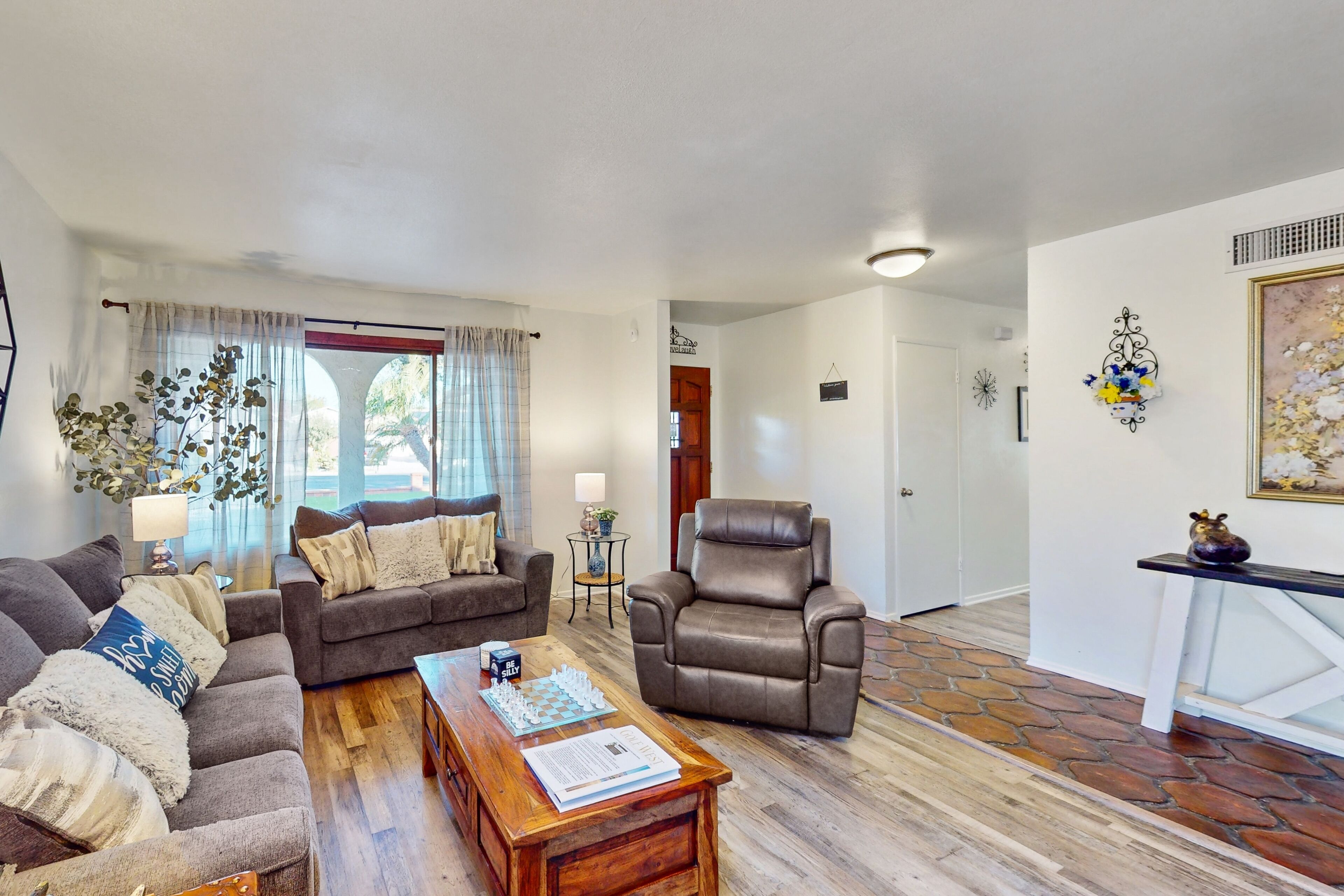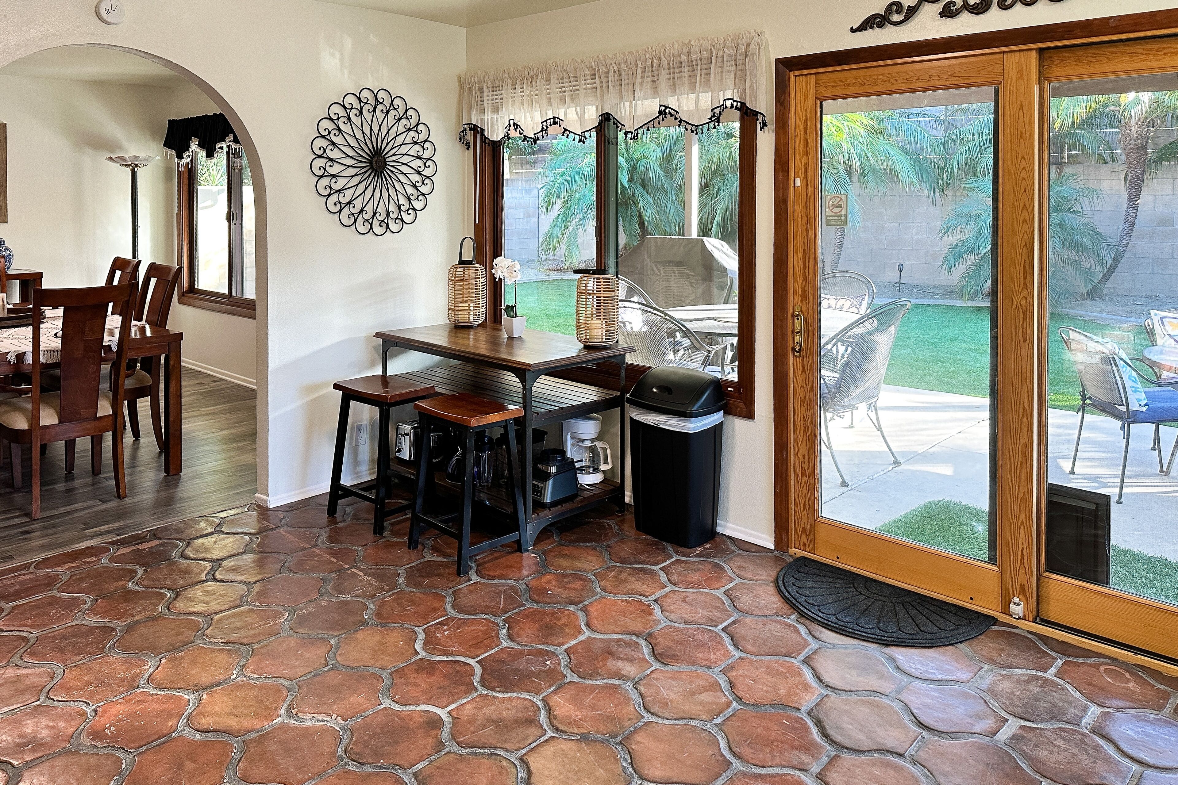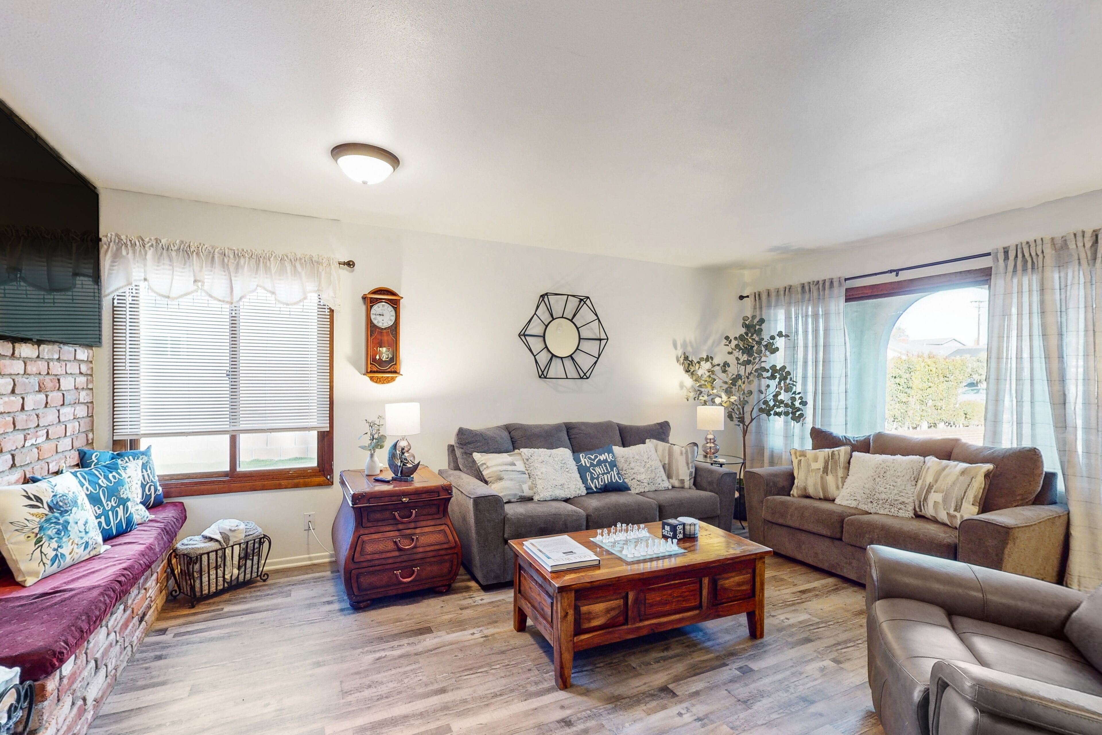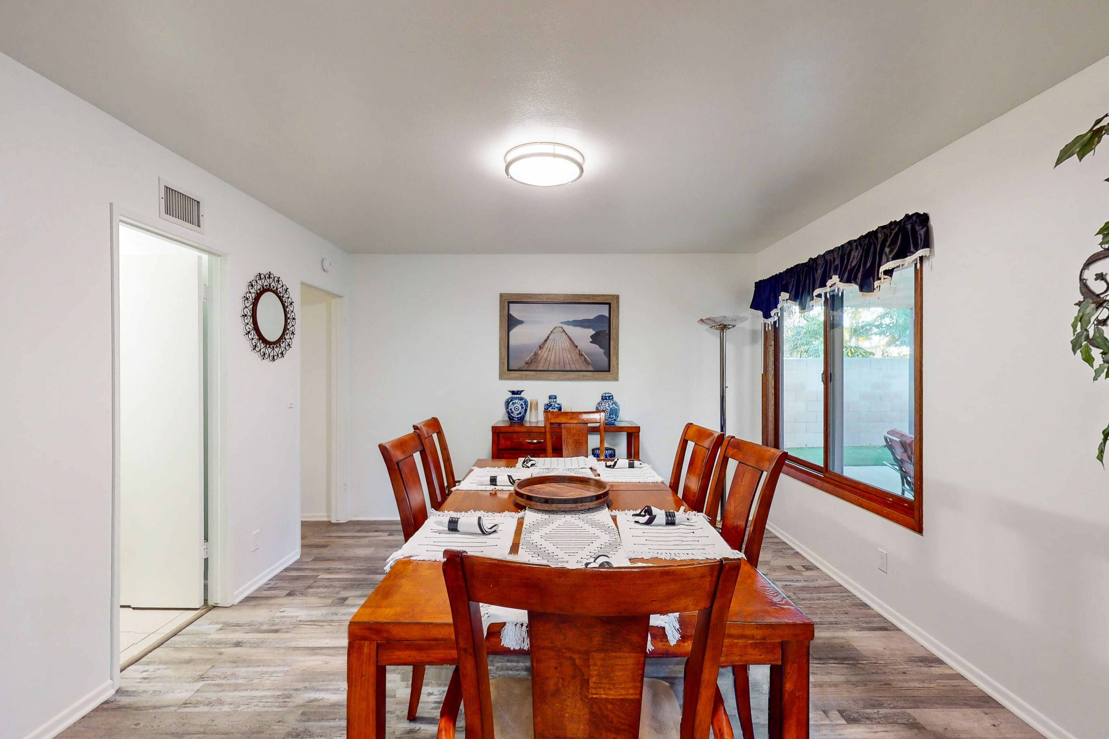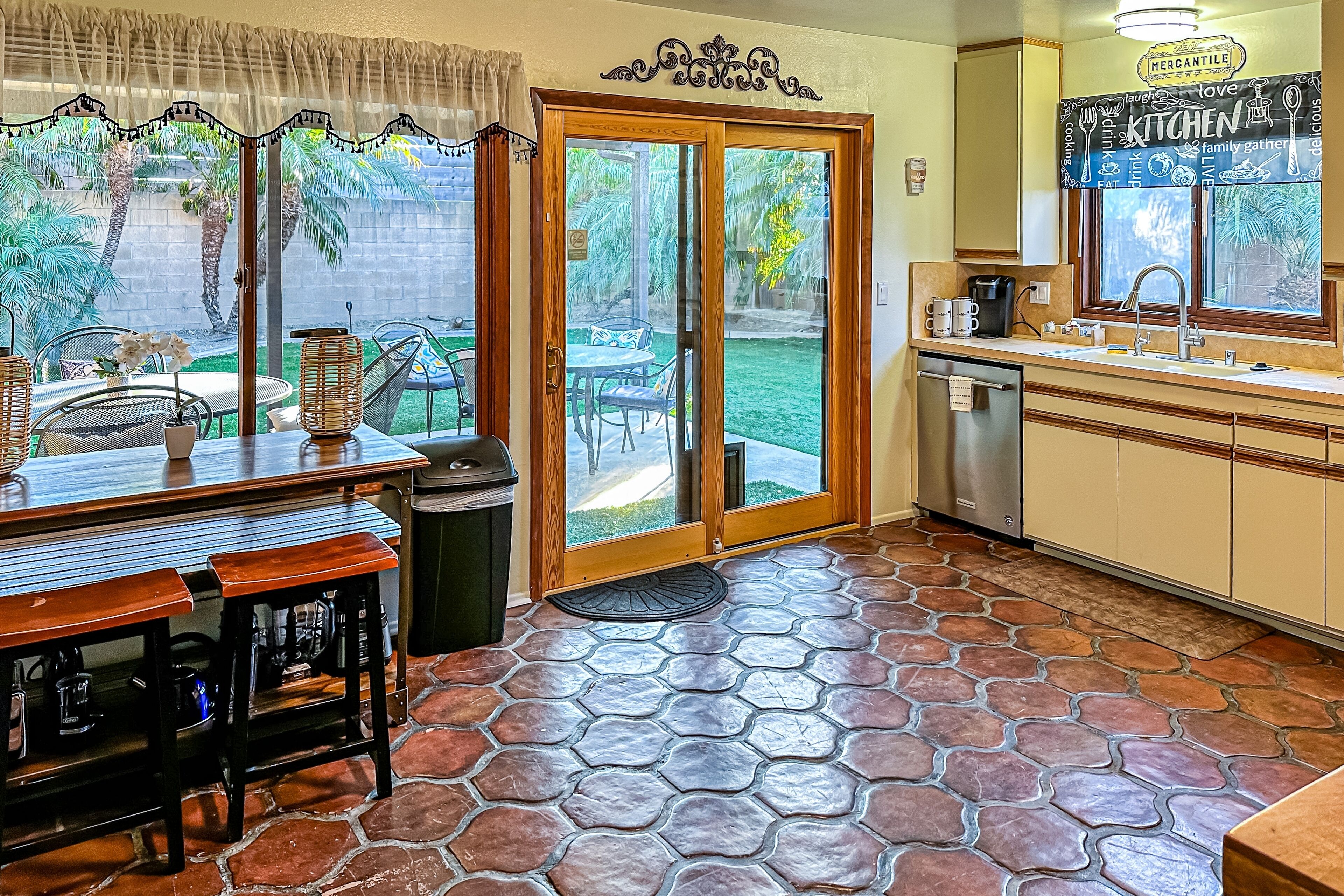Dog-friendly retreat with enclosed yard, grill, fireplace, & AC - great location Bentons OasisOur calendar is updated in real-time & our nightly rates are accurately displayed. Simply enter your desired dates and click 'Book Now!'A restful California retreat awaits you and yours at Bentons Oasis! Nestled in Ventura, a close neighbor to Los Angeles, there is no lack of things to do or explore. Minutes from your stay, make fun memories at Golf N Stuff, Sky Zone Trampoline Park, Arroyo Verde Park, Olivas Links, and Harbor Cove Beach. Bentons Oasis is a place of pure peace, surrounded by palms and sunshine. Upon entering, you will immediately take notice of the living room's ample seating and large smart TV - the perfect combination for morning newscasts and evening movie nights. When you get hungry, utilize the well-equipped kitchen to prepare your favorite dishes. Your meals are best enjoyed at the formal dining table inside or alfresco on the sunny patio. When you aren't dining over the wooden dining table, it's also great for board game competitions. Equally well-decorated and inviting, the bedrooms are adorned with soft linens and central air-conditioning. Additional interior amenities include a gas fireplace and a private washer/dryer. As the sunset's yellow, orange, and pink hues begin to fill the sky, head for the enclosed yard and fire up the gas grill. Things to KnowCheck-in time: 4:00 p.m.Check-out time: 10:00 a.m.All guests shall abide by Vacasa’s good neighbor policy and shall not engage in illegal activity. Quiet hours are from 10:00 p.m. to 8:00 a.m.No smoking is permitted anywhere on the premises.If you are bringing a dog on your trip, the pet fee is already included in your quote when selecting ‘Yes’ to pets. If you would like to add more dogs, please contact us. The pet fee is per stay and ranges between $150 and $200, depending on the bedroom count, and will apply for each additional dog.Parking notes: There is free parking available for 3 vehicles.This rental is located on floor 1.Please note: this home resides in a noise-sensitive area and the owners participate in our Good Neighbor protection program. Our smart home technology will alert our team if excessive decibel or occupancy levels are detected, allowing us to reach out directly with a reminder of maximum occupancy and quiet hours. This technology is privacy compliant, and only monitors the presence of decibels and devices-not any personal conversation or information. Thank you for supporting our efforts to be good neighbors!Damage waiver: The total cost of your reservation for this Property includes a nightly damage waiver fee, plus tax if applicable (the “Damage Waiver”). (A discount may be applied for stays of 28 nights or longer, if permitted.) The Damage Waiver covers you for up to $3,000 of accidental damage to the Property or its contents (such as furniture, fixtures, and appliances) as long as you report the incident to the host prior to checking out. The Damage Waiver fee eliminates the need for a traditional security deposit.More information can be downloaded from the "Rental Agreement" on the checkout page.Due to local laws or HOA requirements, guests must be at least 25 years of age to book. Guests under 25 must be accompanied by a parent or legal guardian for the duration of the reservation.