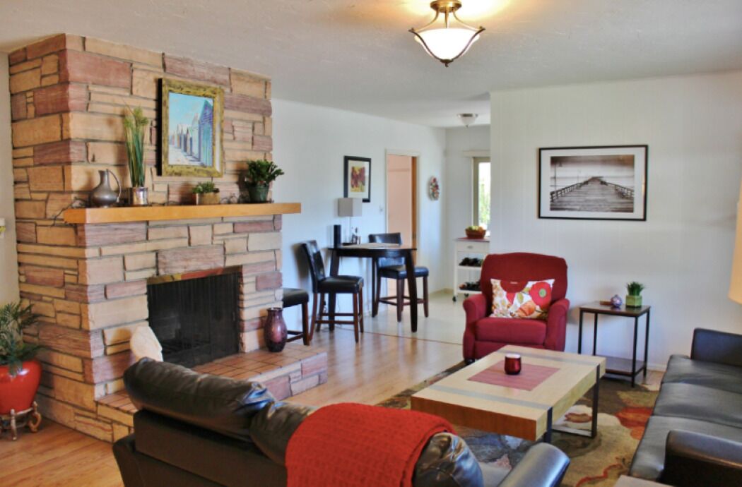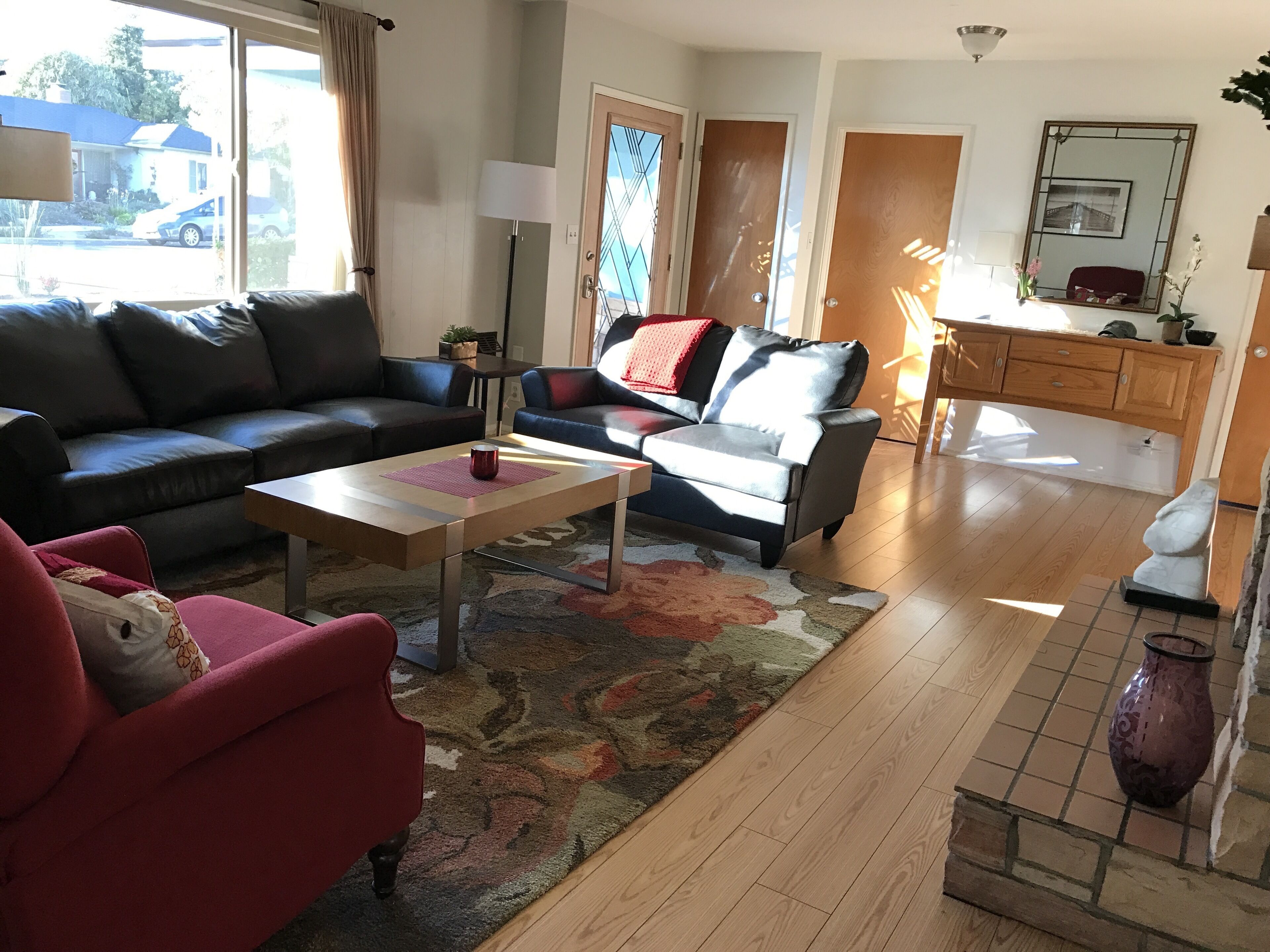 Great Spacious 2+2 Home . Perfect for relocation or extended stays This 2+2 is ideal for someone looking for stays of 30 days or more in a fully furnished home with utilities, gardener and WiFi all included. Open, bright and tastefully decorated. You can easily call this home while you stay in this inviting and comfortable space of 1,692 sq ft . This home features a nice living room with a cafe table off the kitchen to enjoy a quick bite or morning coffee. The back of the house has a large den with dining table that seats 4 . Nice views of the private back yard while you enjoy the large screen TV or cozy up with a good book in the over stuffed couches. The home has two good size bedrooms with King size beds and two separate bathrooms one off each bedroom. Indoor laundry room off the kitchen. Carport for your vehicle and long drive way for off street parking. This Kitchen has all the cookery, serving and utensils to conveniently to cook your favorite meals at home or bring home your favorite take out. The home is located in desired midtown area and easy walking distance to shops or a quick drive. The beach is just a short bike ride or 5 - 7 minute drive. Great place to enjoy what Ventura has to offer.