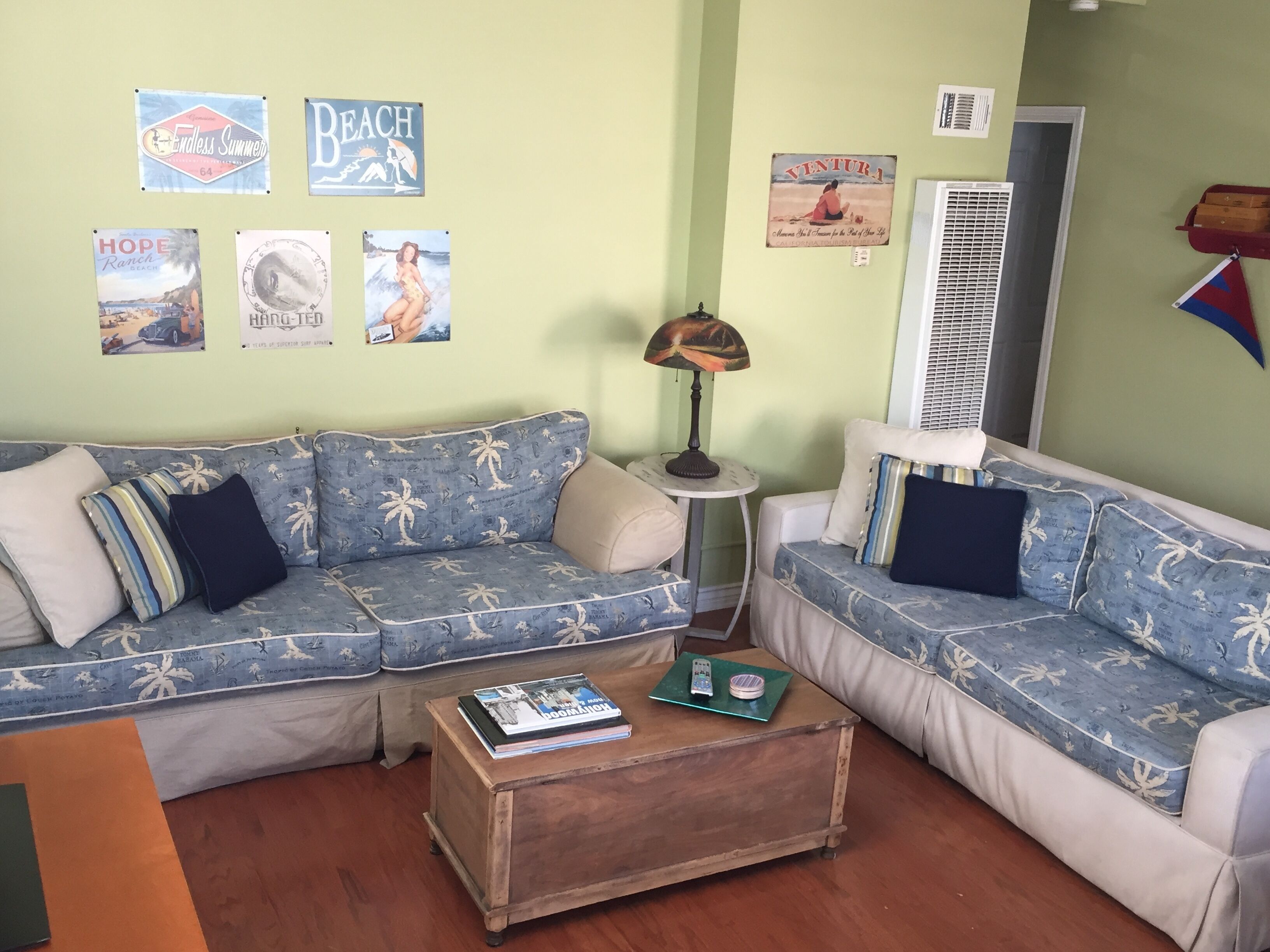 Only 8 Houses From the Sand! THE ORANGE DOOR BUNGALOW is the perfect getaway!! Kick off your flip-flops, open the signature Orange Door, and be transported to a comfortable, relaxed retreat where it is summer all the time. The bright, cheeky, remodeled 50s bungalow is situated 8 houses from the Pacific in the very best neighborhood of Pierpont Beach, a quiet residential stretch of 21 lanes nestled between Pierpont Blvd and the ocean. MINIMUM 30 DAY STAY REQUIREMENT. CONTACT OWNER FOR RATES ON LONGER LEASE.Our beach house is ideal for singles, couples and small families looking to immerse themselves in the local beach lifestyle and have some good old-fashioned fun. People are friendly and relaxed, because it's the lanes!Area Highlights and Things to Do: (Subject to restrictions or closures imposed by local or state guidelines or mandates.)* Year-round Mediterranean Climate usually 70-75 degrees*101 Freeway close, yet quiet enough to hear the waves*2 blocks from Marina Park with its recently updated and expanded playground and bathrooms, pirate ship with zip line, picnic tables, and walking path overlooking Ventura Harbor and Pierpont Beach. *Walking distance to restaurants, coffee houses, and groceries in Pierpont Village on Seaward Ave*Easy access to Ventura's Downtown and Harbor by car or trolley*Easy and short day trips to Santa Barbara, Ojai, Santa Ynez, Camarillo Premium Outlets, Reagan Library, and other Central Coast destinations*Abundant opportunity for hiking, biking, surfing, kayaking, sailing, and fishing in scenic settings such as the Ventura Botanical Gardens, the Channel Islands, and the Coastal and River Trail Bike PathsHighlights of the Orange Door Bungalow: *Décor throughout the house, coordinated to deliver a fresh beach vibe in happy shades of blue and green*Remodeled spa bathroom (ensuite queen bedroom) completed May 2016*High Quality Furnishings*Abundant High Quality Bed and Bath Linens*WiFi*Flat Screen TV in Living Room and Master Bedroom*Fully-equipped and updated kitchen with door to outside (near gas grill)*Great room-style kitchen and living room with dining table that seats six, plus pull-up breakfast bar for two*Master bedroom with king bed, spacious closet, and patio door to the backyard*Queen bedroom and attached bathroom with shower and entry to backyard*Children's bedroom with two twins beds*Main bathroom with combination bath/shower*Landscaped yard and saltillo-tiled patio, fully fenced and gated, with dining table and 6 chairs and umbrella, lounging sofa chairs, and gas grill*Unattached studio office with desk, chair, and easy chair for remote working in a quiet setting*Outdoor shower with hot water for hosing off after a day at the beach*Washer and dryer in large laundry room with spacious counters for folding and staging coolers and groceries*Tankless water heater for never-ending hot water*Parking for 3 cars