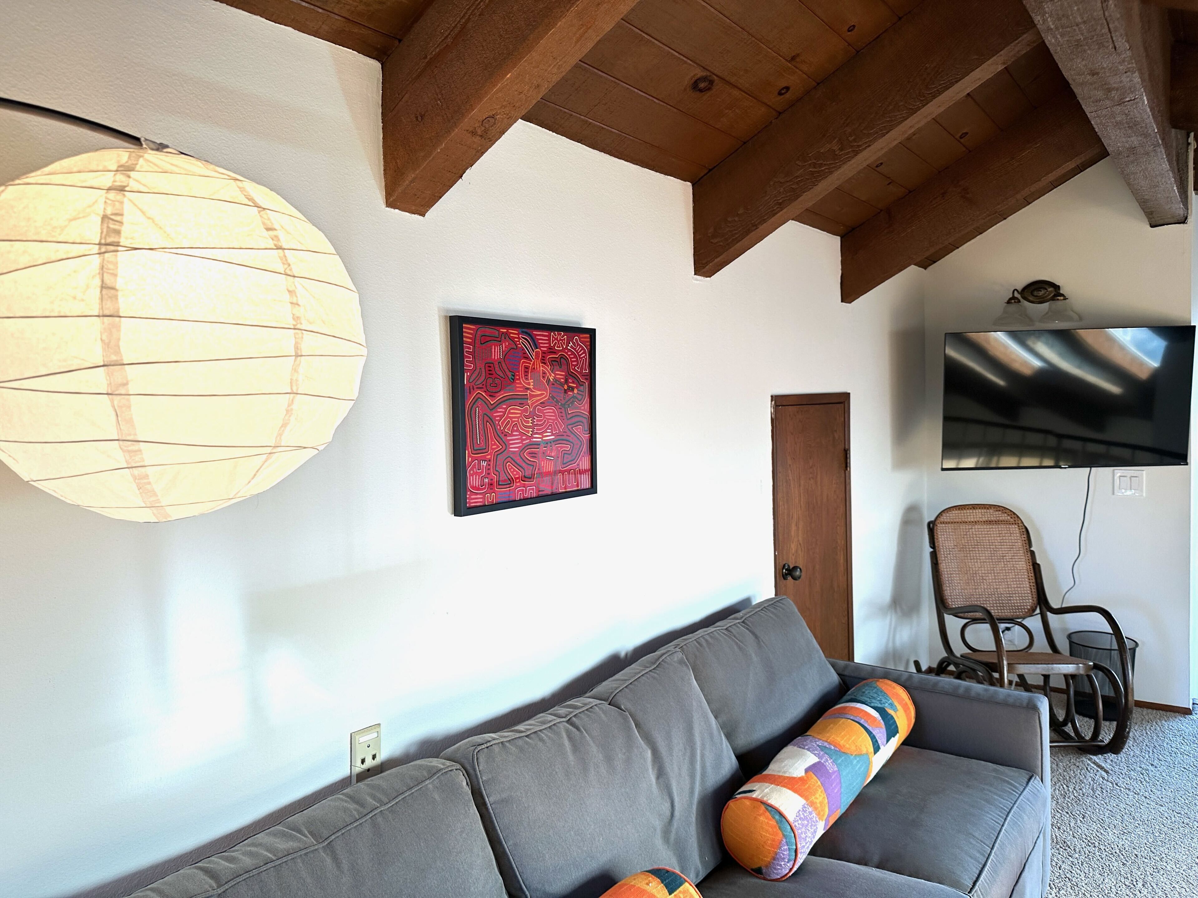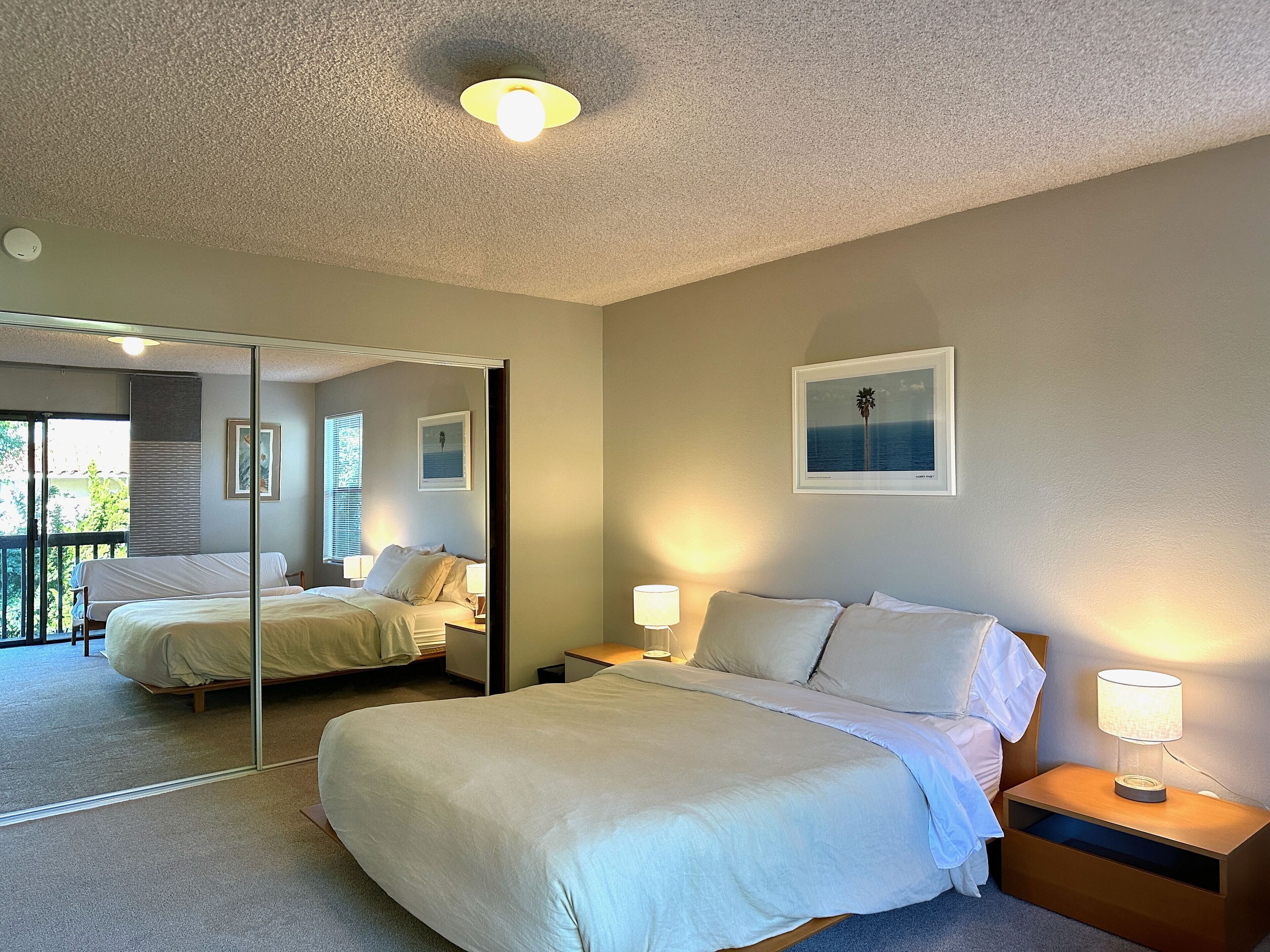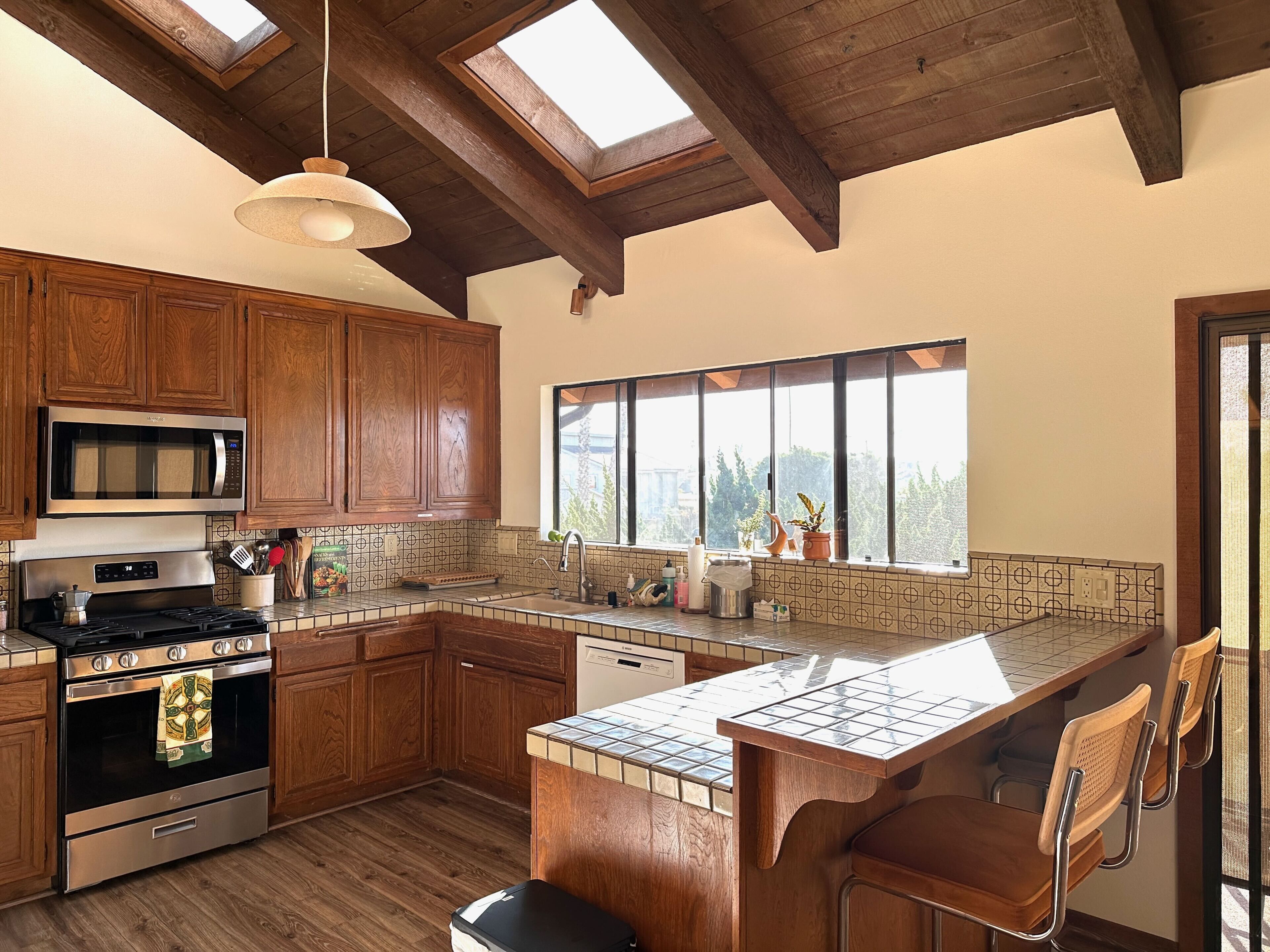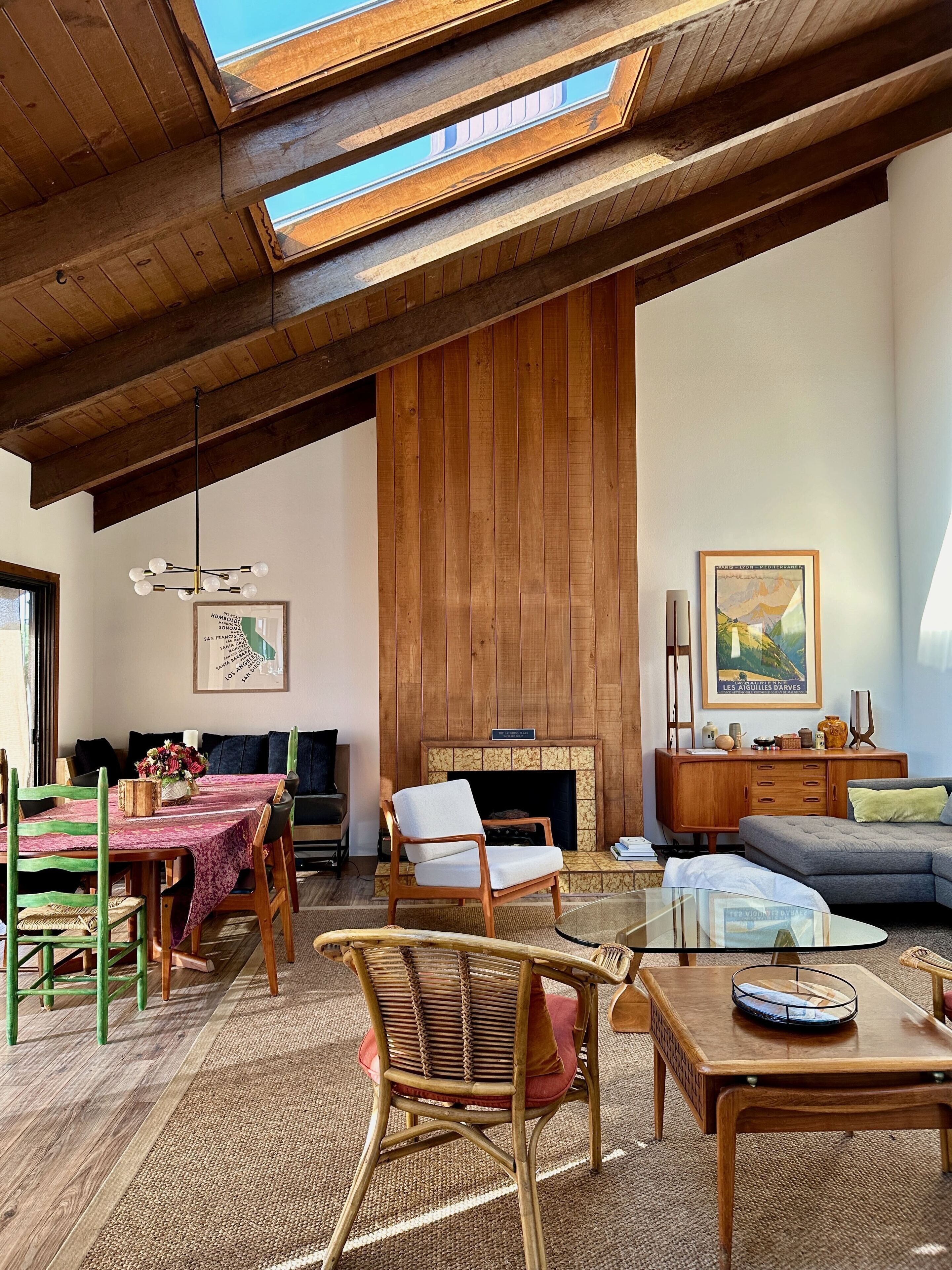 Mid-Century Beach Lodge- 1 Block to Beach! It is all about good vibes and sunshine at this fabulous 70's beach pad with authentic MCM furnishings and skylights. There are numerous welcoming and comfortable spaces indoors and out for gathering and for intimate connection at this very special house. It has an open concept kitchen/dining/living room + loft, west-facing deck, and east-facing enclosed back yard. Schoolhouse Beach is just one block away- whether you want to swim, sunbathe or walk along the water's edge as the sun sets over the Channel Islands. Or you can enjoy sunset from west-facing living room deck. There is room for everyone to dine indoors (the dining table seats 10) or outdoors, where the table seats 12. Evenings are magical in the tree-lined yard around the fire pit. Vons, Starbucks, restaurants + a surf shop for rentals and lessons are all easily walkable. The bedrooms are quiet and cozy. The kitchen has a very practical layout and is fully stocked; it's equally easy to cook at the house, order in, or walk to neighborhood restaurants. The outdoor garden shower is a nice warm-up after visits to the beach. There is plenty of space in the garage for surfboards and wetsuits. We provide 2 bikes and a long foam board. The room with twin beds has toys and some kids' books. San Buenaventura State Beach with the bike path to Ventura Pier is at one end of our neighborhood, and Marina Park with Ventura Harbor is at the other end. Downtown Ventura is a short drive or bike ride. This is a wonderful house, near a beautiful beach, in a vibrant city. A perfect spot to make great memories. STVR Permit #2502.