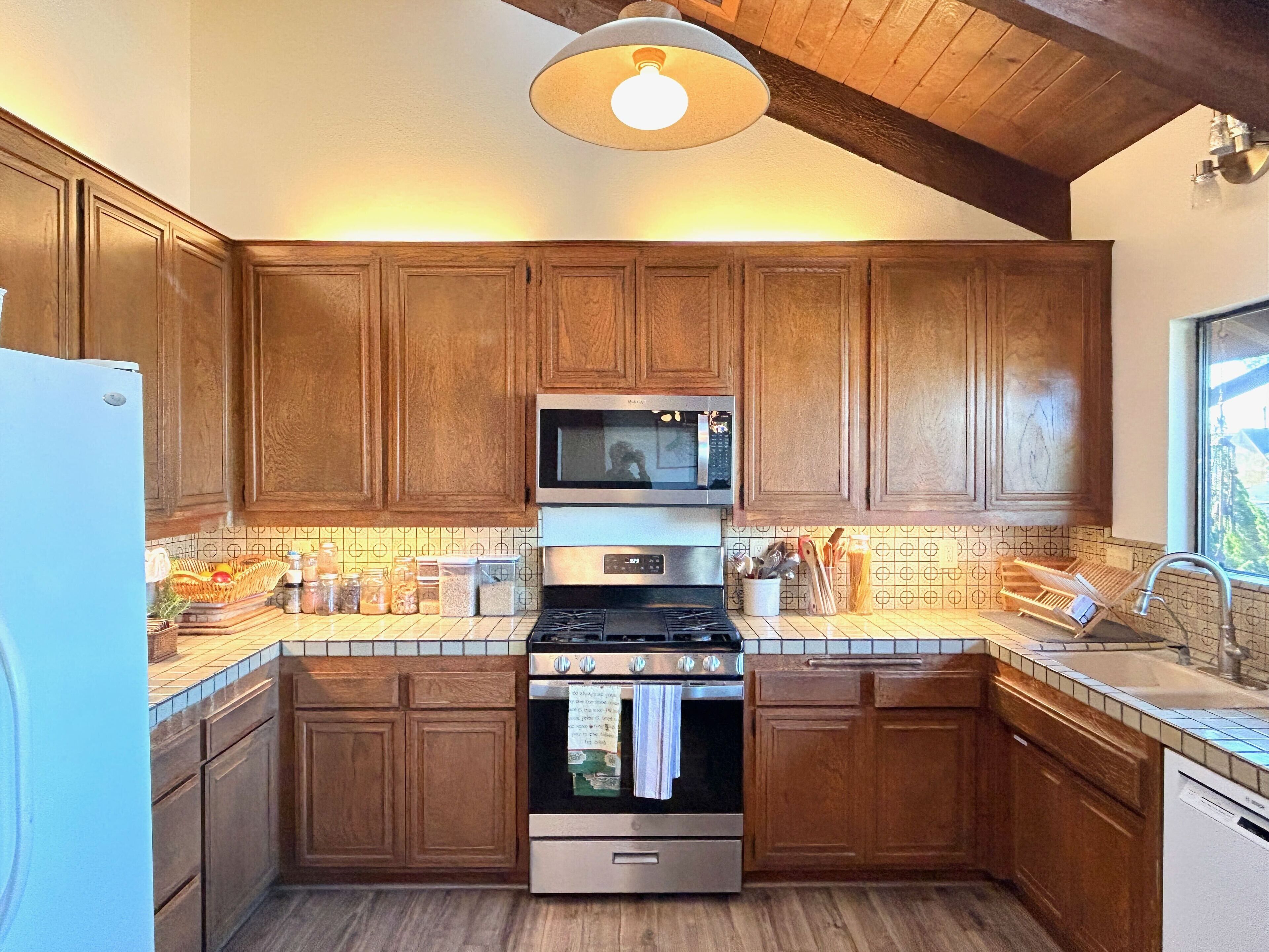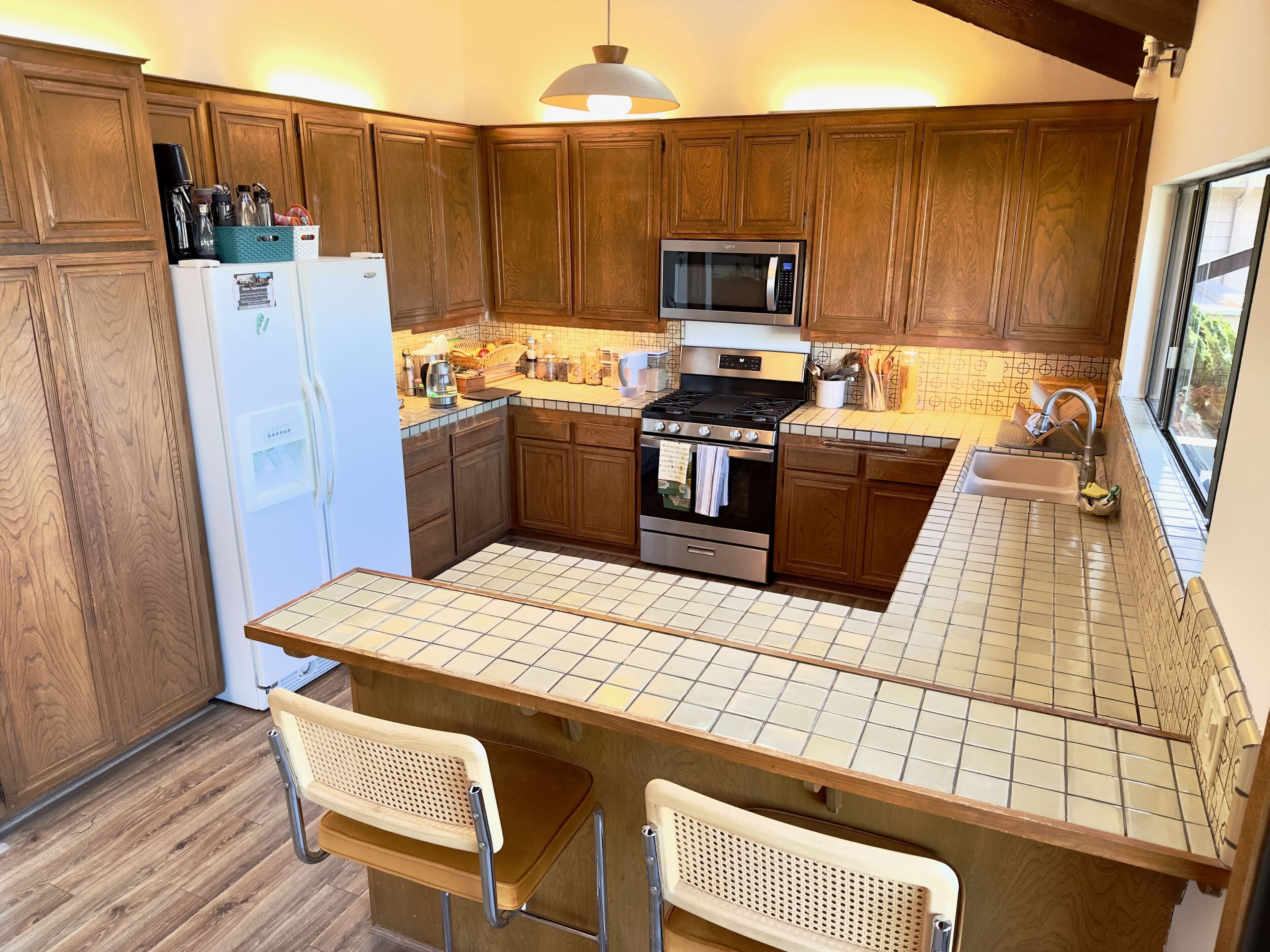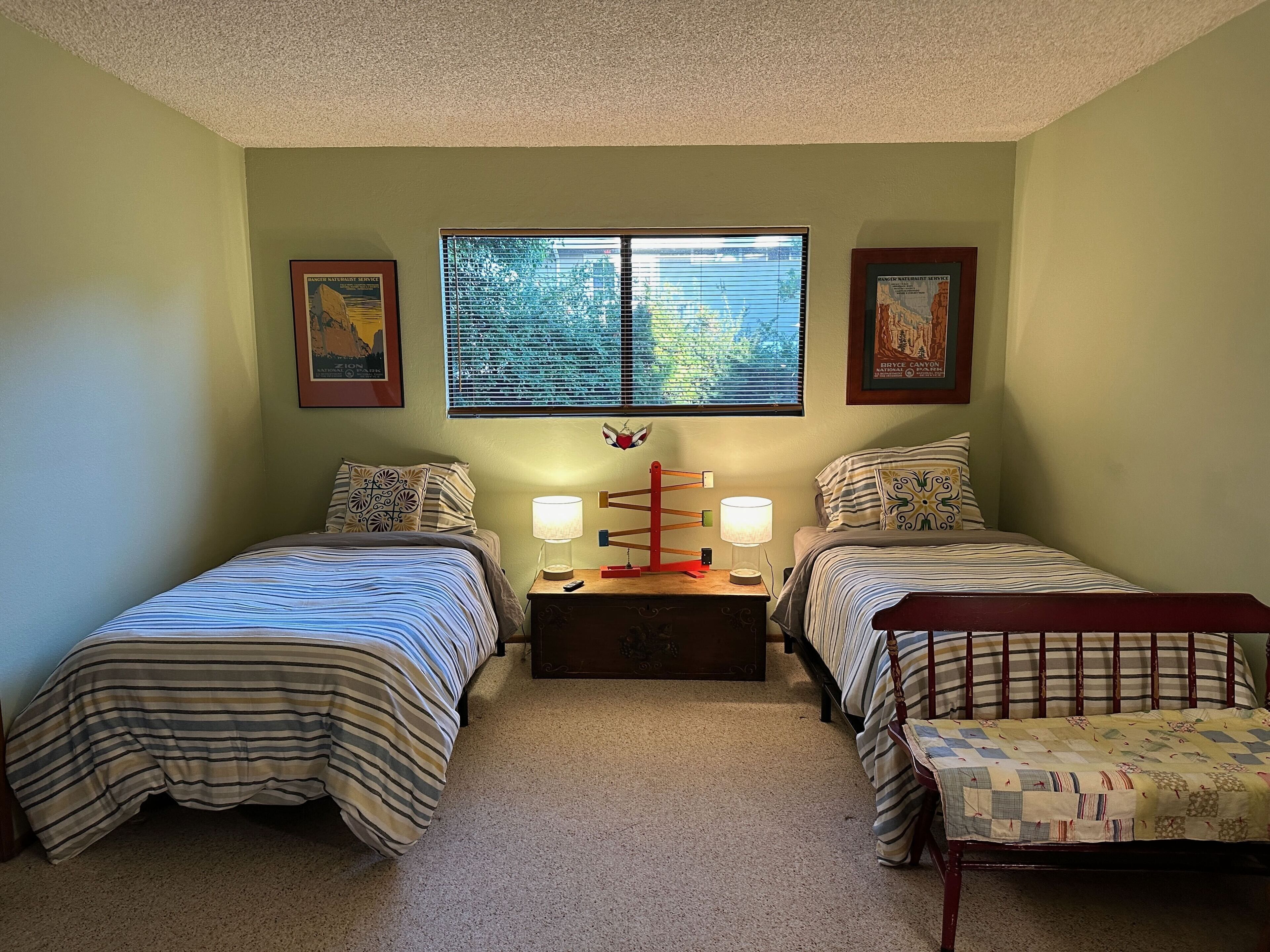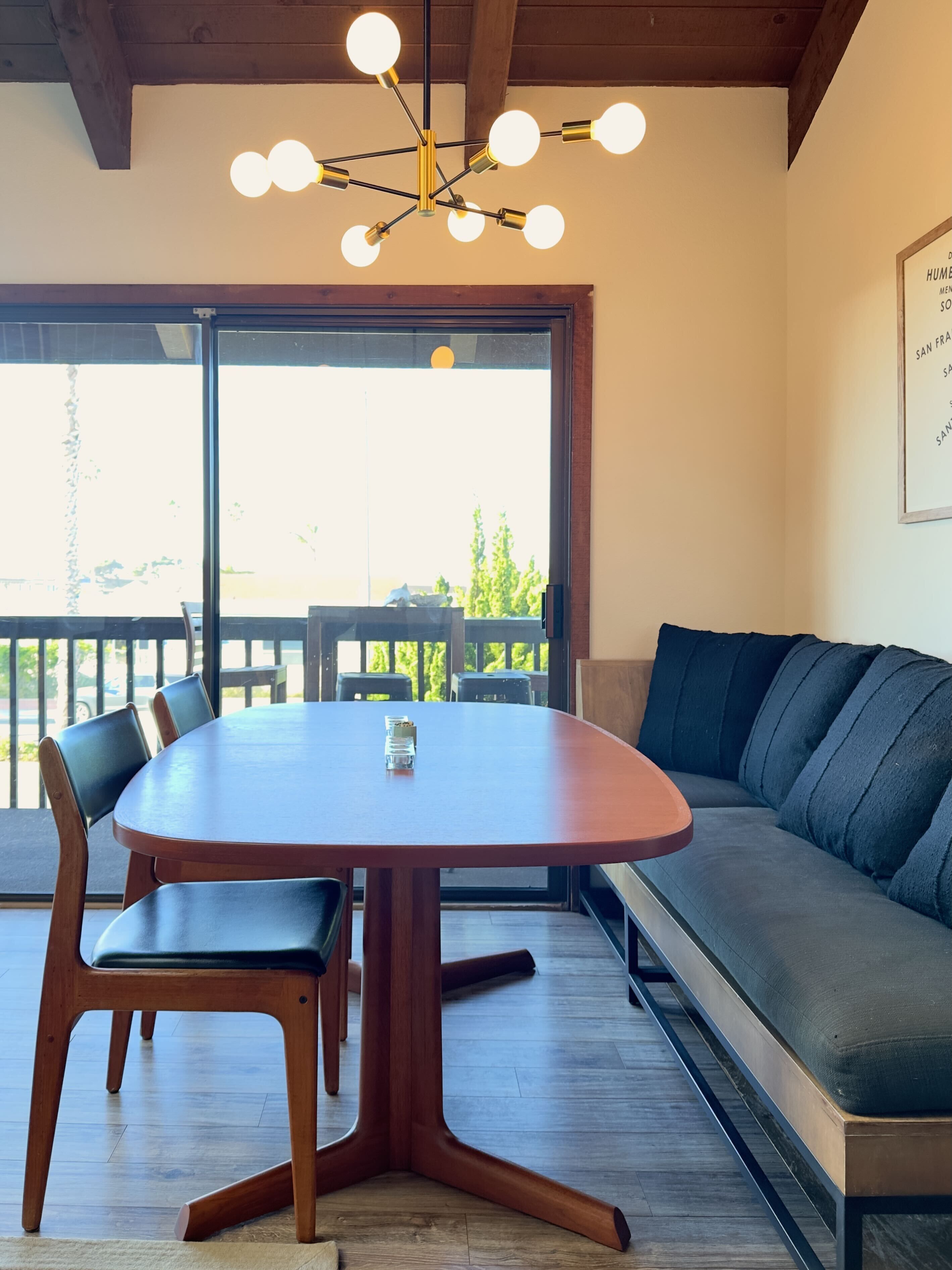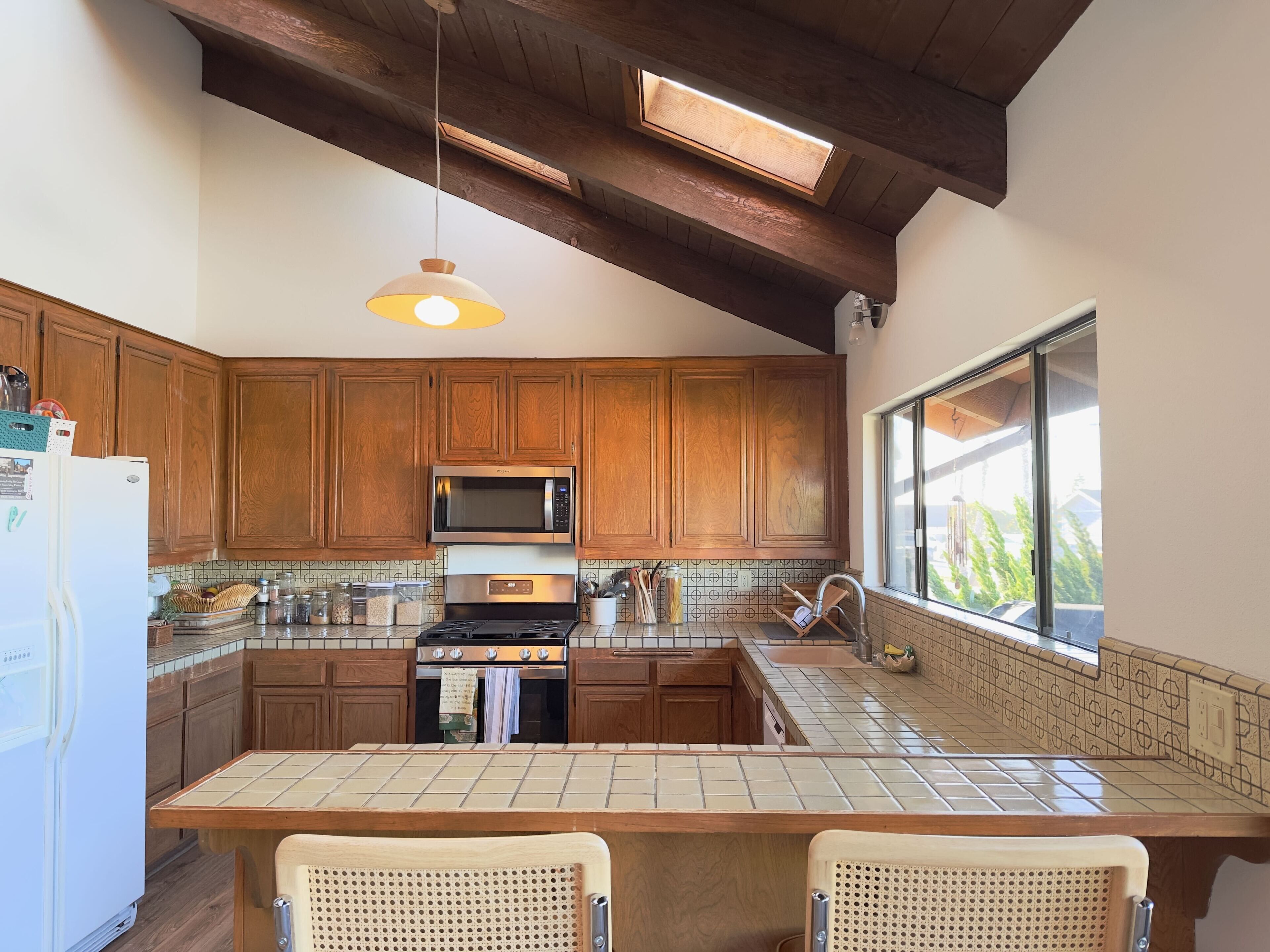Mid-Century Beach Lodge- 1 Block to Beach! It is all about good vibes and sunshine at this fabulous 70's beach pad with authentic MCM furnishings and skylights. There are numerous welcoming and comfortable spaces indoors and out for gathering and for intimate connection at this very special house. It has an open concept kitchen/dining/living room + loft, west-facing deck, and east-facing enclosed back yard. Schoolhouse Beach is just one block away- whether you want to swim, sunbathe or walk along the water's edge as the sun sets over the Channel Islands. Or you can enjoy sunset from west-facing living room deck. There is room for everyone to dine indoors (the dining table seats 10) or outdoors, where the table seats 12. Evenings are magical in the tree-lined yard around the fire pit. Vons, Starbucks, restaurants + a surf shop for rentals and lessons are all easily walkable. The bedrooms are quiet and cozy. The kitchen has a very practical layout and is fully stocked; it's equally easy to cook at the house, order in, or walk to neighborhood restaurants. The outdoor garden shower is a nice warm-up after visits to the beach. There is plenty of space in the garage for surfboards and wetsuits. We provide 2 bikes and a long foam board. The room with twin beds has toys and some kids' books. San Buenaventura State Beach with the bike path to Ventura Pier is at one end of our neighborhood, and Marina Park with Ventura Harbor is at the other end. Downtown Ventura is a short drive or bike ride. This is a wonderful house, near a beautiful beach, in a vibrant city. A perfect spot to make great memories. STVR Permit #2502.