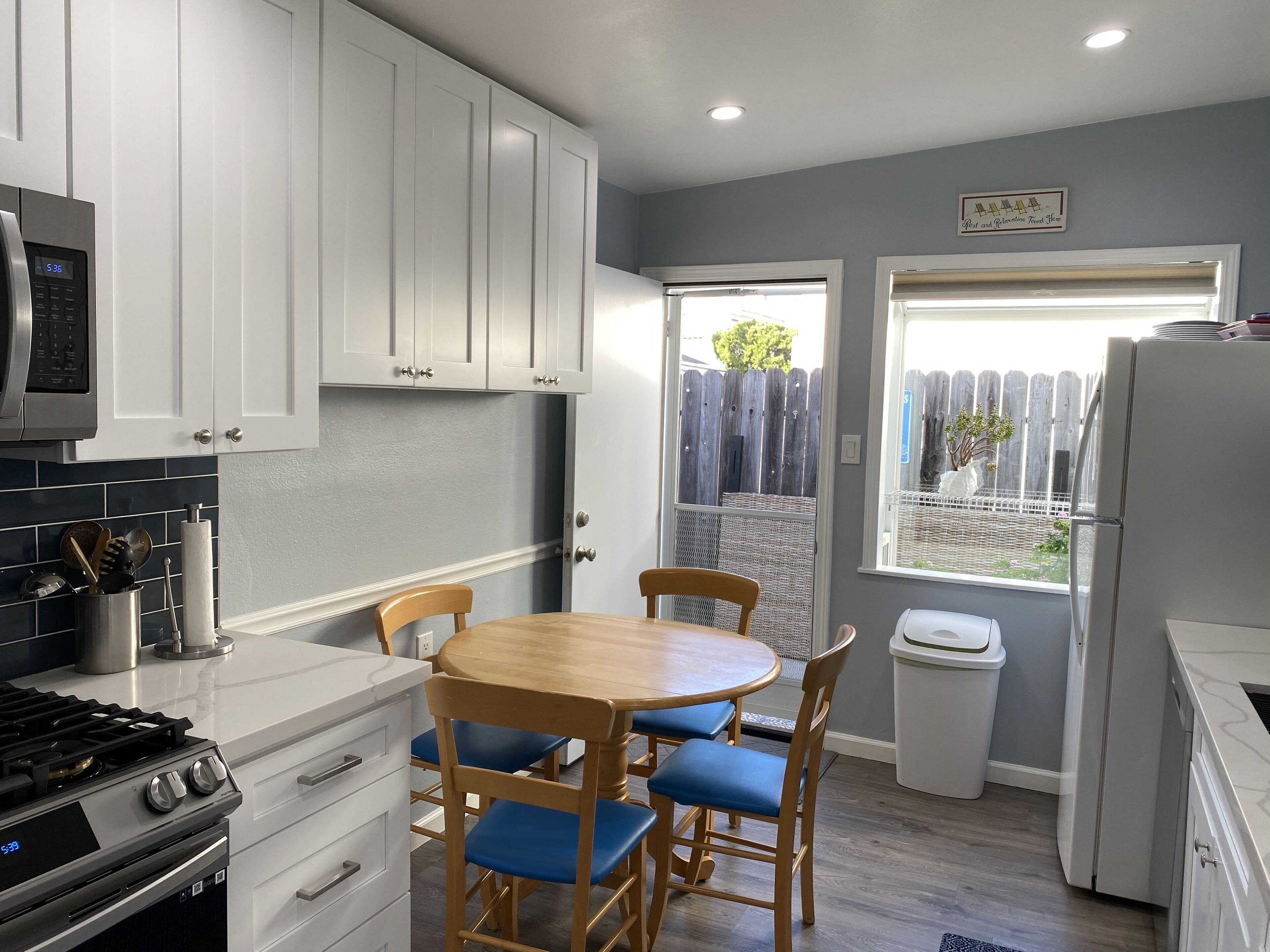 Darling Beach Cottage Off Pierpont - 1/2 Block from Sand Perfect for families!! This darling three bedroom, one bath cottage with bright decor is just 1/2 block from the sand in the Pierpont neighborhood. It is just one lane away from Marina Park which features a large children's' playground, pirate ship, and rope pulley. The house is walking distance from shopping and restaurants. Ventura Harbor, gateway to Channel Islands National Park, is 2.76 miles from the house. The historic Ventura Pier is 2.79 miles north along well maintained bike and walking paths. City of Ventura STVR Permit # 2148The kitchen is fully stocked with dishes, cookware, and everything you will need to enjoy your stay. The front and rear yards are completely fenced with a lovely front garden and spacious back yard. The back yard features a table with six chairs, umbrella, and fire pit - perfect for roasting marshmallows. The house has three bedrooms - 1 King, 1 Queen, and 1 with two sets of bunk beds. Beach chairs, boogie boards, and sand toys provided. Linens - sheets & towels - are provided. Free wireless internet in the house. Parking: 2 parallel parking spots. Both cars must fit on the cement driveway. PLEASE SEND AN E-MAIL FOR A QUOTE! NO TAX ON RENTALS OF MORE THAN 30 DAYS