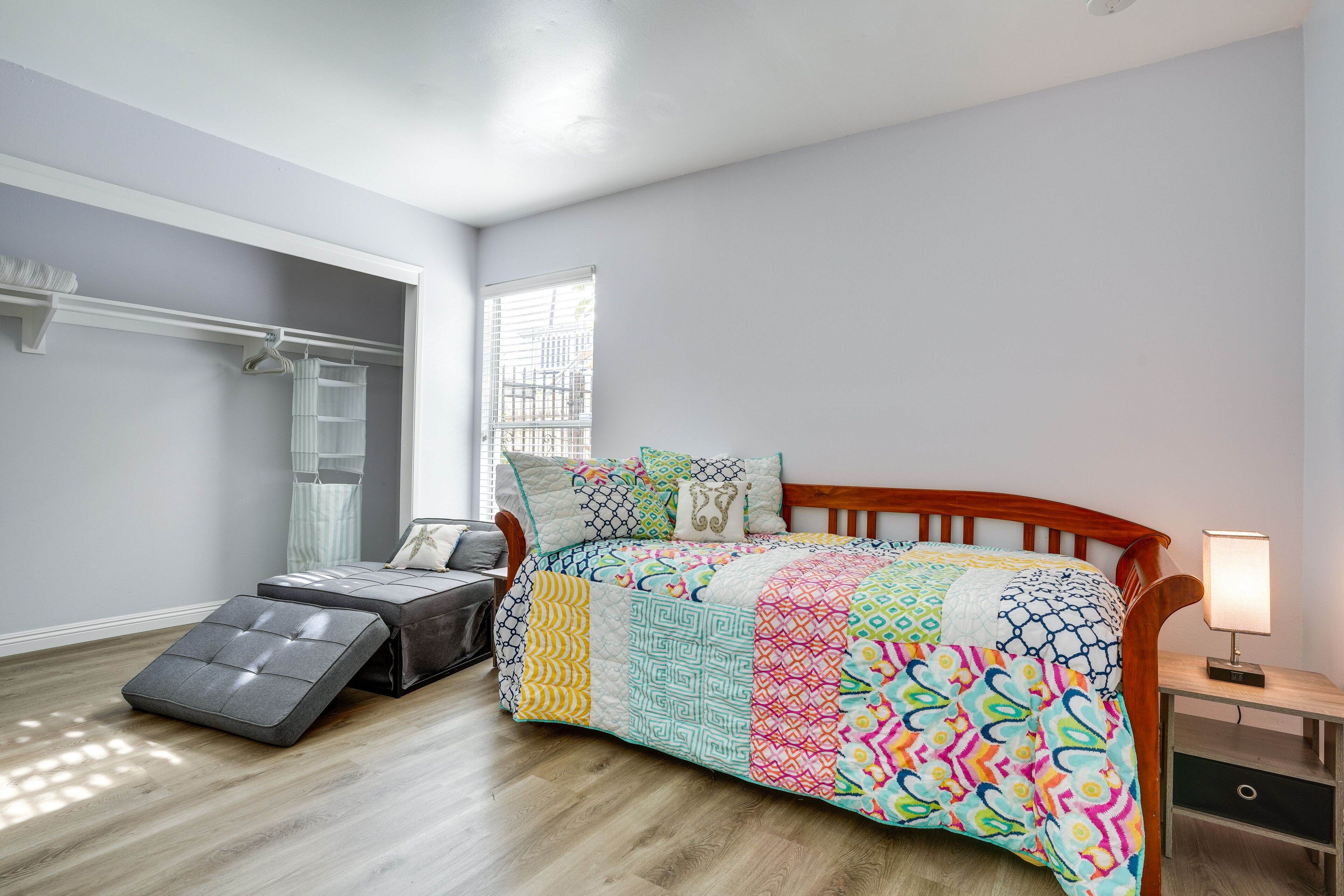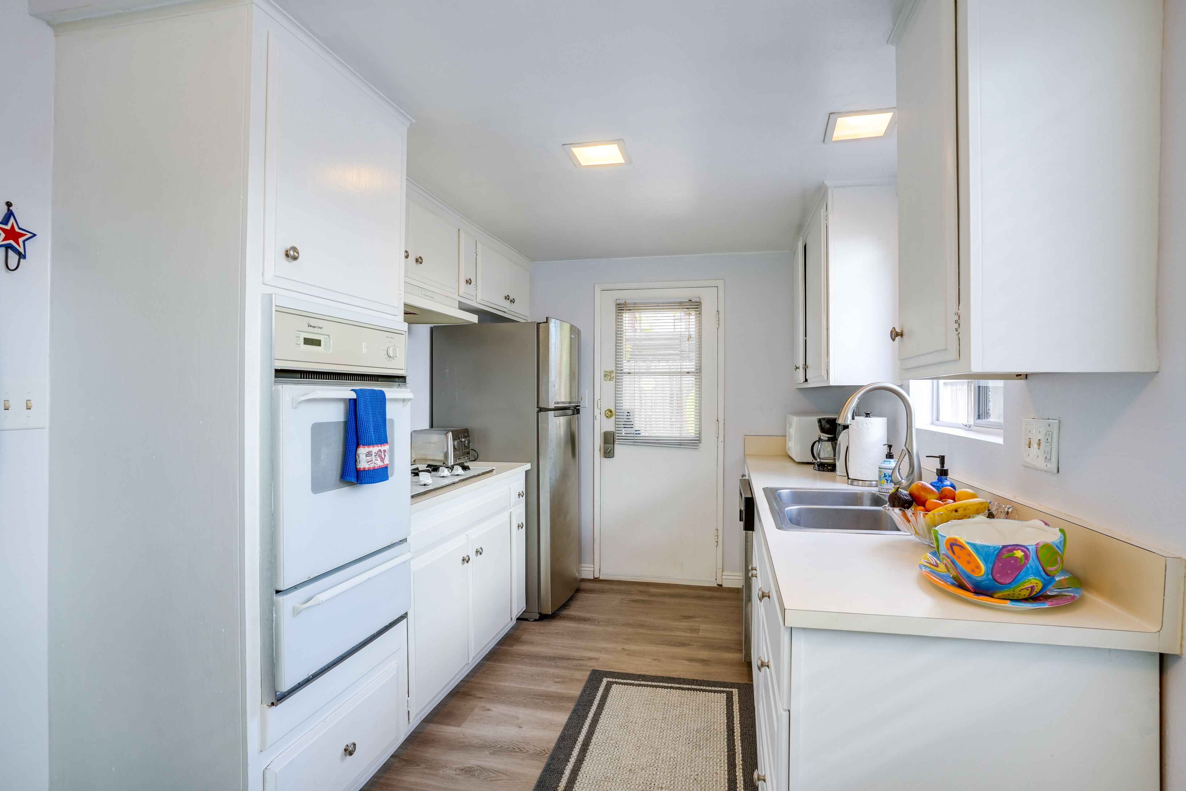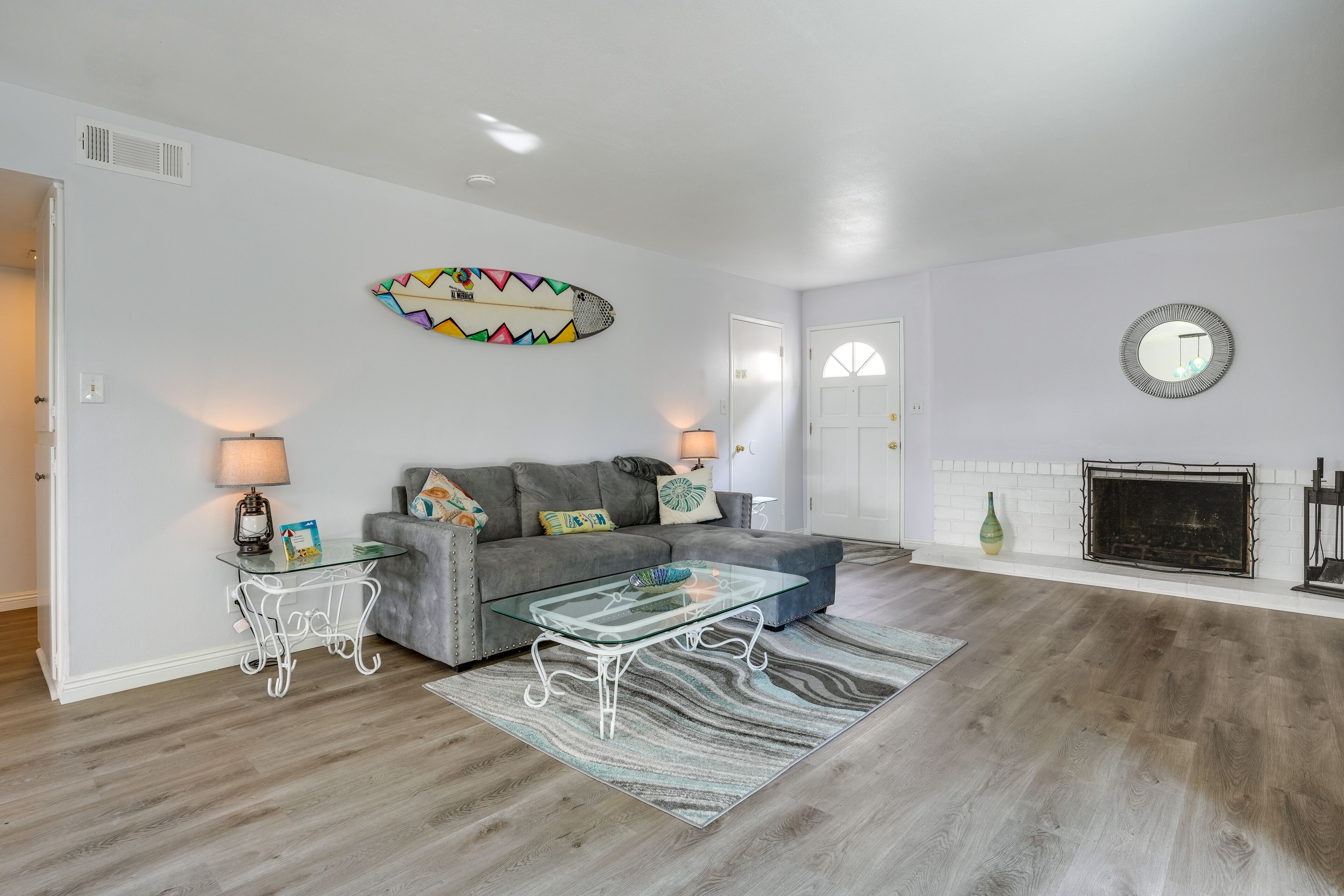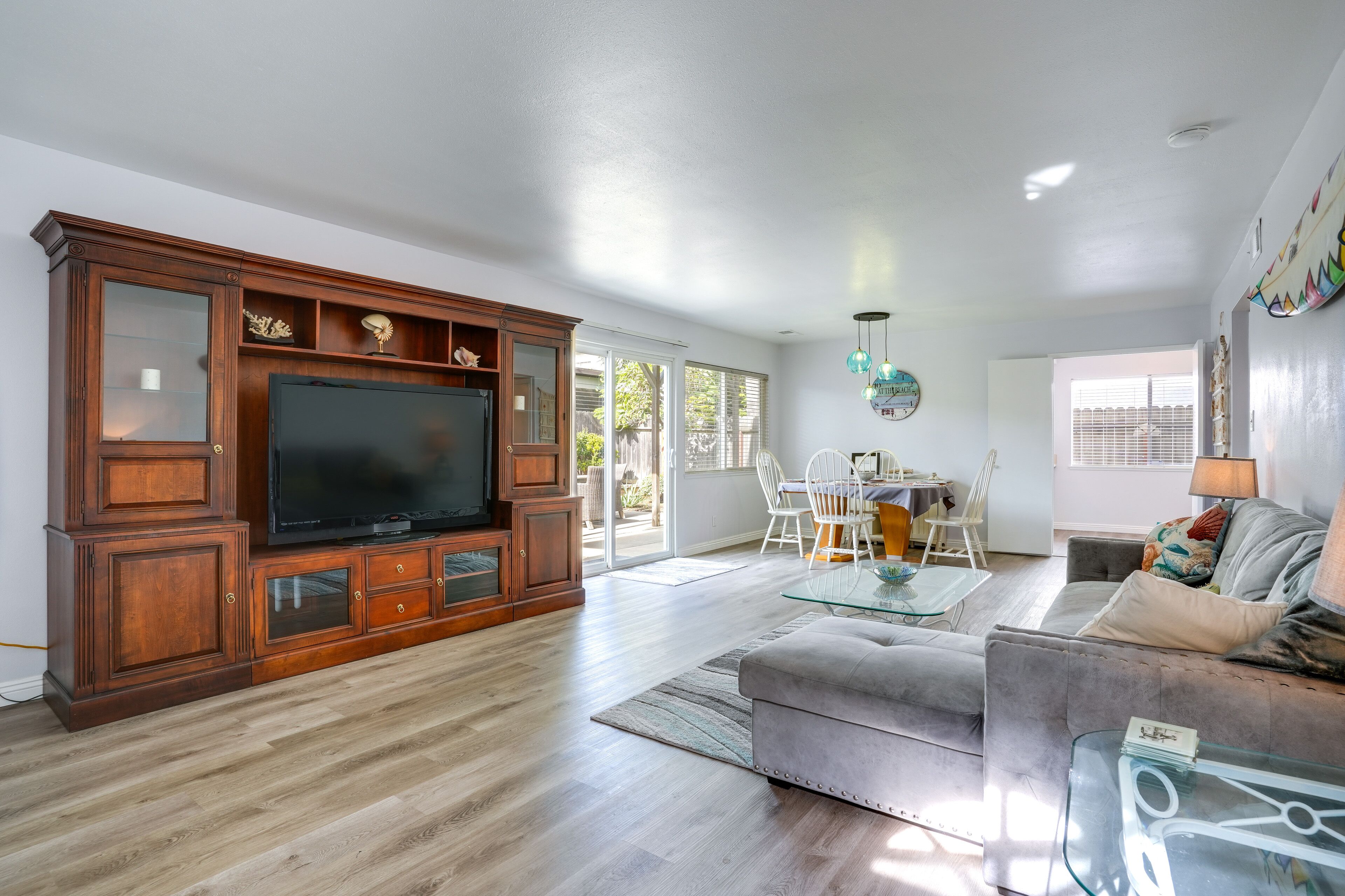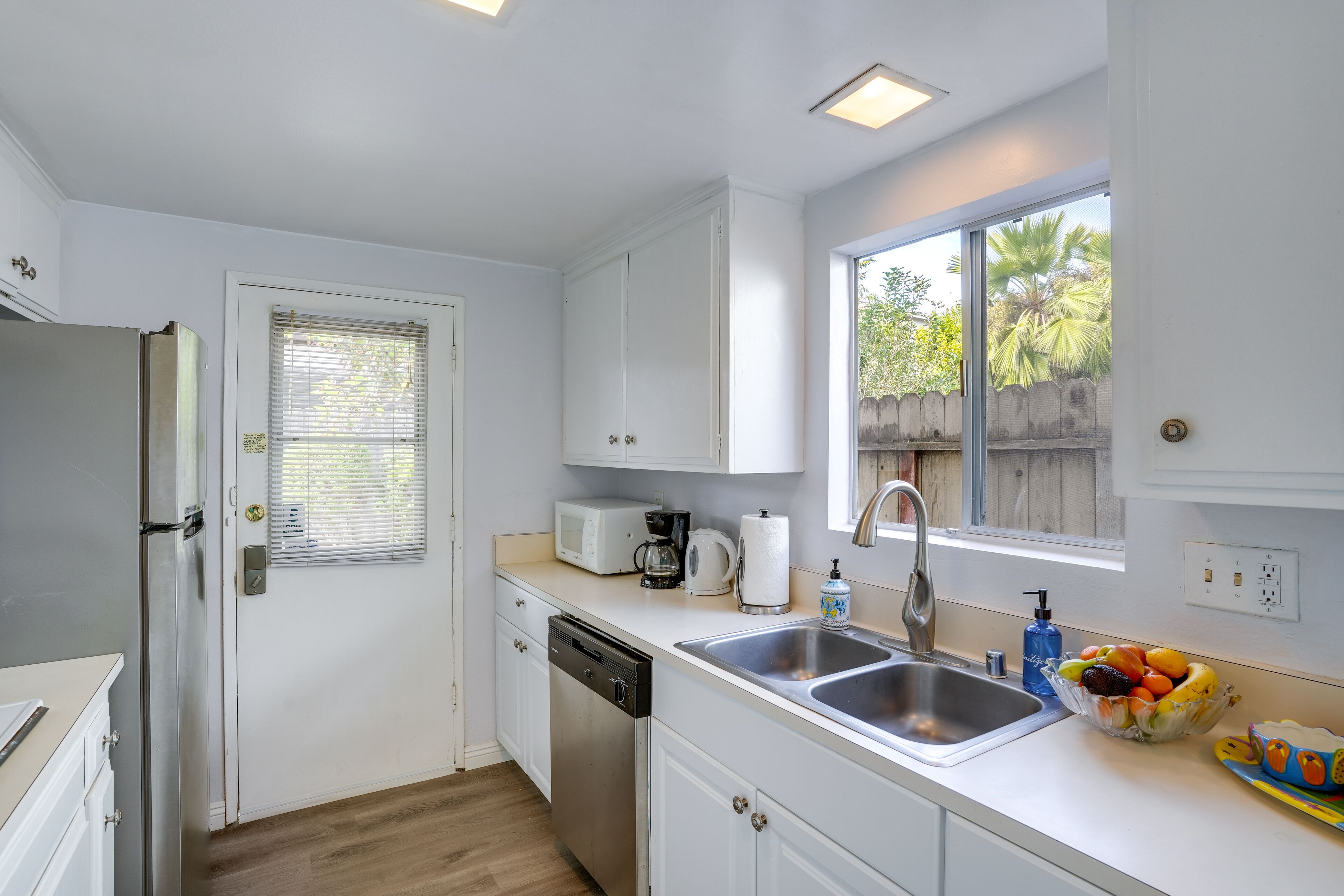 Viva Ventura: Duplex with Patio - Walk to Beach! Whether you're looking to spend the week at the beach or have easy access to Santa Barbara and Los Angeles, this Ventura vacation rental provides the perfect home base for your next California adventure! The 2-bedroom, 2-bath apartment, nestled about a half-mile from the sea, features a private patio perfect for al fresco dining. Soak up some sun on the sand, hike at Point Mugu State Park, or head up to Solvang — a quaint Danish-style village rife with delectable dining options. It's up to you!-- THE PROPERTY --Ventura Permit No. 2462 | Family Friendly | Private Patio & Yard | Outdoor Dining Area | Near Public ParksBedroom 1: Queen Bed | Bedroom 2: Twin Bed w/ Twin Trundle Bed | Living Room: Sleeper SofaAPARTMENT FEATURES: Smart TVs, dining table, fireplaceKITCHEN: Well-equipped w/ refrigerator, microwave, dishwasher, dishware/flatware, stove/oven, cooking basics, coffee maker, hot water kettleGENERAL: Free WiFi, keyless entry, linens/towels, complimentary toiletries, washer & dryer, hair dryer, hangers, iron/board, trash bags/paper towelsACCESSIBILITY: Single-story apartment, step-free accessFAQ: Homeowner on-site w/ shared driveway (separate unit), no A/C, 4 exterior security cameras (facing out), quiet hours (10:00 PM-7:00 AM)PARKING: Shared driveway (1 vehicle), free street parking-- THE LOCATION --SUN & SAND: Ventura Beach (0.6 miles), Harbor Cove Beach (3 miles), Surfers Point at Seaside Park (3 miles), Harbor Cove Beach (3 miles), McGrath State Beach (4 miles), Oxnard State Beach Park (6 miles)GREEN SPACES: Marina Park (0.3 miles), Grant Park (4 miles), Arroyo Verde Park (5 miles), Emma Wood River Trail (5 miles), Point Mugu State Park (22 miles) DAY TRIPS: Santa Barbara (30 miles), Solvang (63 miles), Los Angeles (66 miles)AIRPORTS: Santa Barbara Airport (40 miles), Los Angeles International Airport (68 miles)-- REST EASY WITH US --Evolve makes it easy to find and book properties you’ll never want to leave. You can relax knowing that our properties will always be ready for you and that we’ll answer the phone 24/7. Even better, if anything is off about your stay, we’ll make it right. You can count on our homes and our people to make you feel welcome--because we know what vacation means to you.-- POLICIES --- No smoking of any kind at any time on the property- No pets allowed- No events, parties, or large gatherings- Must be at least 25 years old to book- Additional fees and taxes may apply- Photo ID may be required upon check-in- NOTE: This single-story duplex offers step-free access- NOTE: The homeowner lives on-site, in the upstairs unit, and shares the driveway- NOTE: This property does not offer air conditioning- NOTE: This property has a strict maximum occupancy of 6. No additional overnight occupants are allowed on-site- NOTE: Please observe the neighborhood's voluntary quiet hours from 10:00 PM to 7:00 AM- NOTE: Your safety matters. This property features 4 exterior security cameras. Camera 1 is located on the front gate, facing toward the entrance to the property. Camera 2 is located on the door to the kitchen, facing toward the entrance area. Camera 3 is located on the garage, facing toward the driveway. Camera 4 is located on the garage, facing toward the front yard and the street. The cameras are outward facing and do not look into any interior spaces. They actively record video and sound