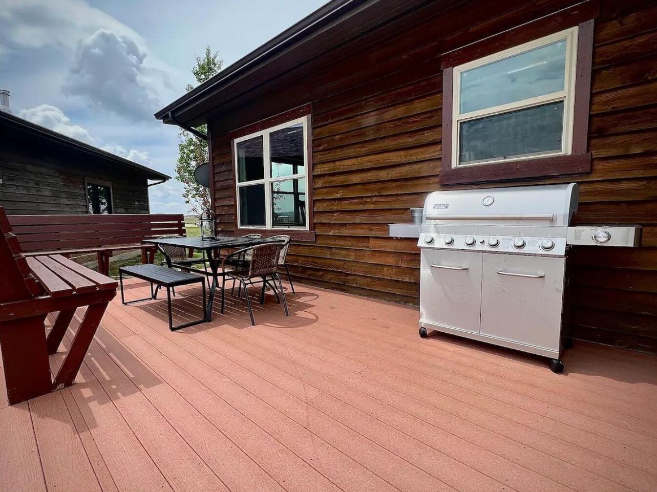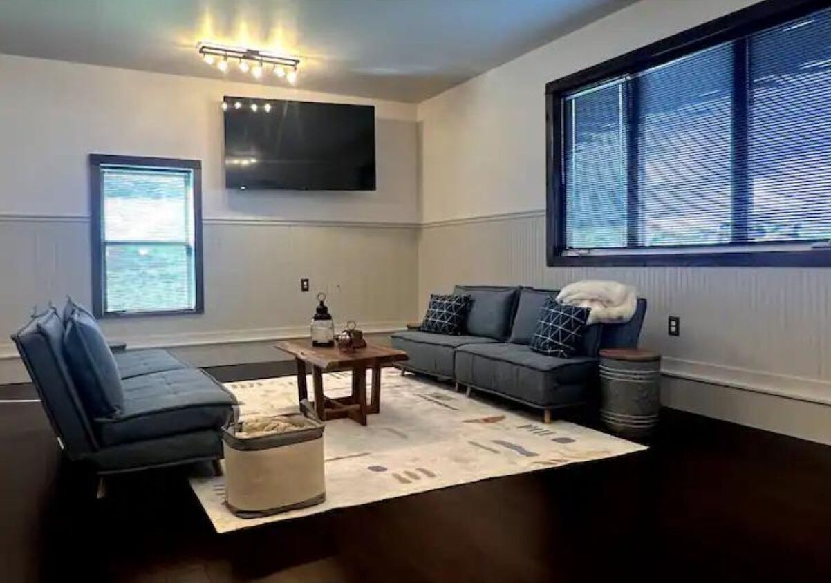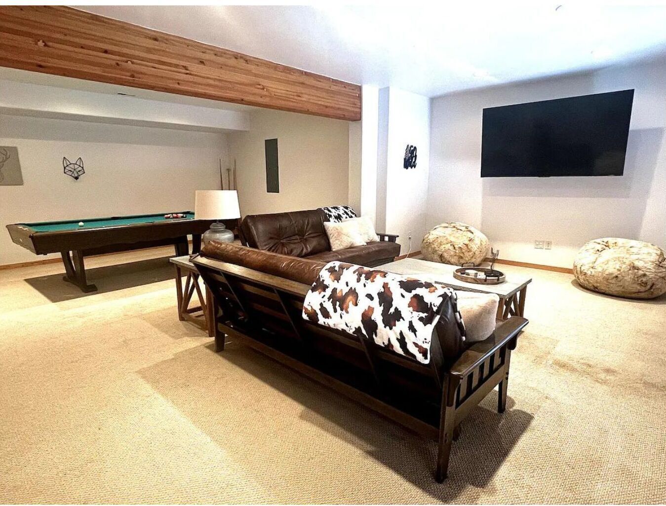 A spacious Wyoming home with stunning mountain views This spacious house sits atop a ridge overlooking the charming town of Pinedale, Wyoming. The front side of the home offers incredible views of the Wind River Mountain Range - absolutely breathtaking. From the rear of the house you can look across the valley to the Wyoming Mountain Range. If you're lucky, you may even spot a herd of pronghorn, or some moose crossing the grounds. It's a little slice of heaven. And as far removed as you might feel, you're only a short 10 minute drive to town, with plenty of shops, parks and restaurants to explore.High Peaks can sleep up to 19, with 3 king beds, 3 person Bed/Trundle in kids room, 2 full futons, 4 fold out twins, and 2 air mattresses. We also have a pack & play for the little ones! Ample room for a group or multiple couples. There are 4 bedrooms (3 King Beds and one kid's room with the Bed/Trundle Combo).The Specifics: •Main Level/Entry: Living room with a gas fireplace, dining room with table big enough for 8, fully stocked kitchen, front deck with outdoor eating area and grill, back deck with rustic log seating. This level features a Master bedroom w/ king-size bed, Smart TV and en-suite bathroom. It also has a guest bedroom with a king size bed and Smart TV, a kid's room with a 4 person bunk bed/trundle combo, and a hall bathroom. Laundry room is also located on this level.Upper level 1: Just off the laundry room and down a short flight of stairs you have a large entertaining/den area. This level features a bar, 2 Smart TVs, and 4 fold out twins.Lower Level: Located on this floor is bedroom #4 w/ a king bed. Living area features a Smart TV and 2 high-end air mattresses available. The living area also consists of two futons, a pool table, and a game area. Access to the backyard and back patio from this level. Bathroom includes a tub/shower combo.FEATURES: **Fully stocked kitchen (with an extensive line of appliances and gadgets) **Surface parking for 4+ more cars**Washer/Dryer **3 Living/Entertainment Areas **Games for Adults and Children