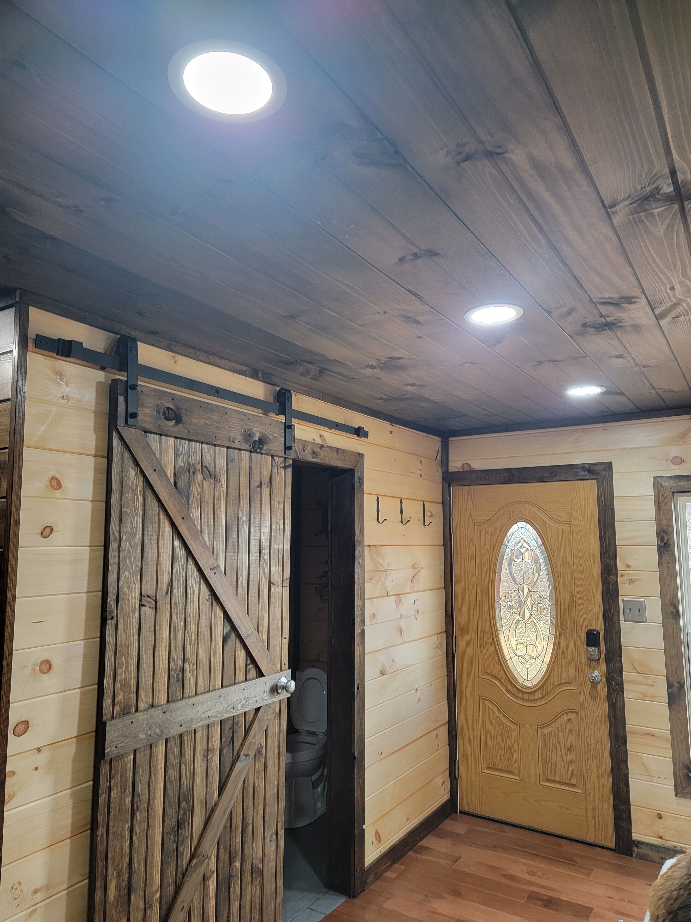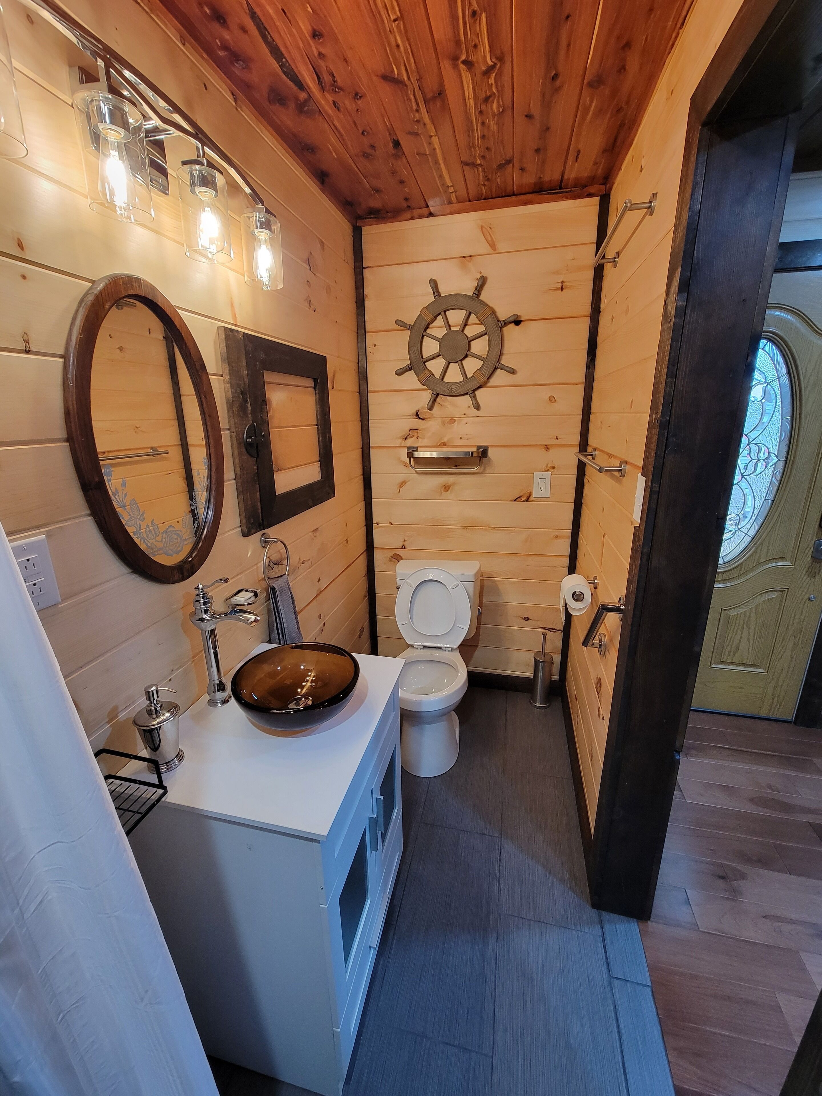 Tiny house on the lake With a seventy five inch t v free internet walk shower