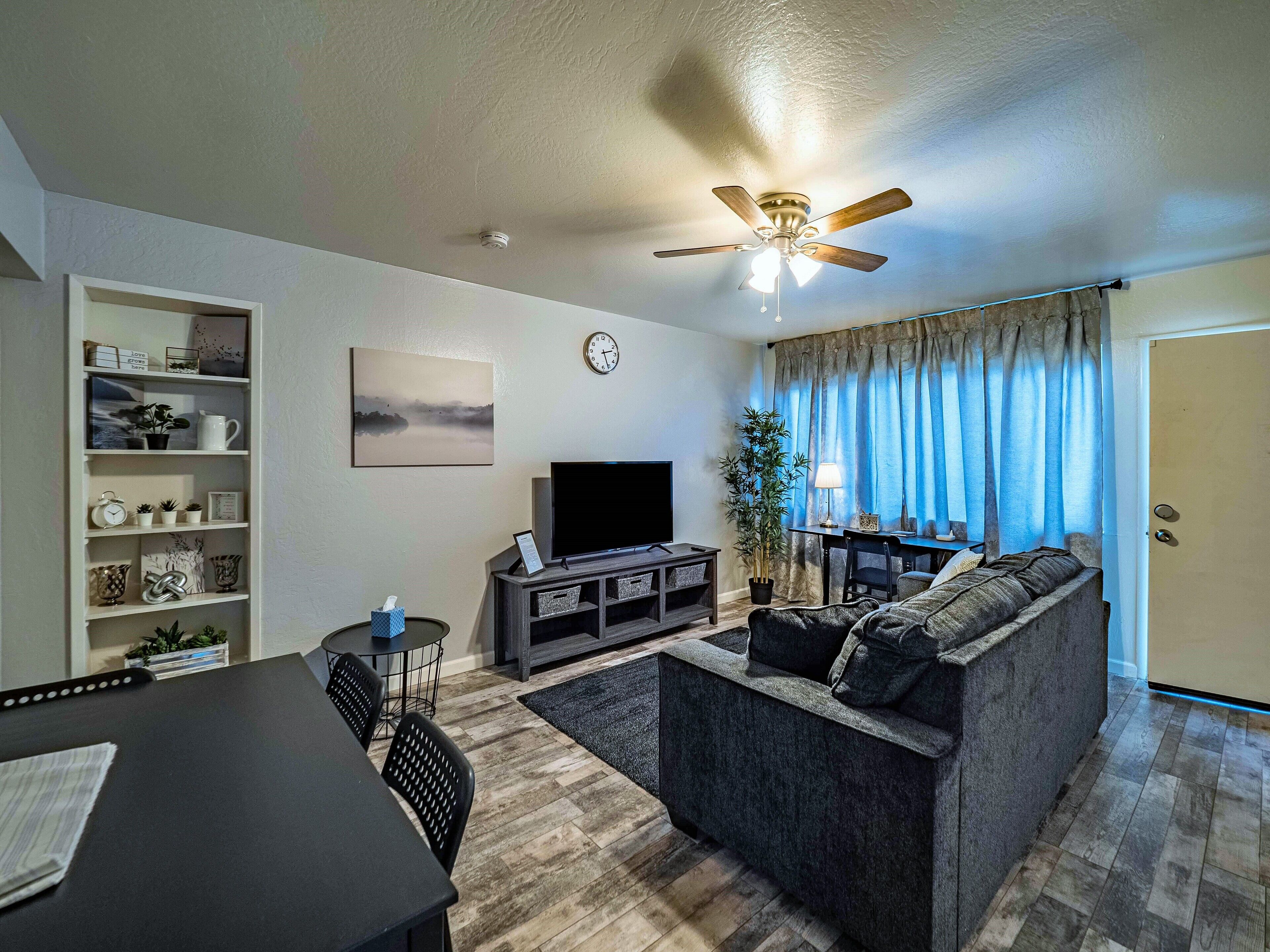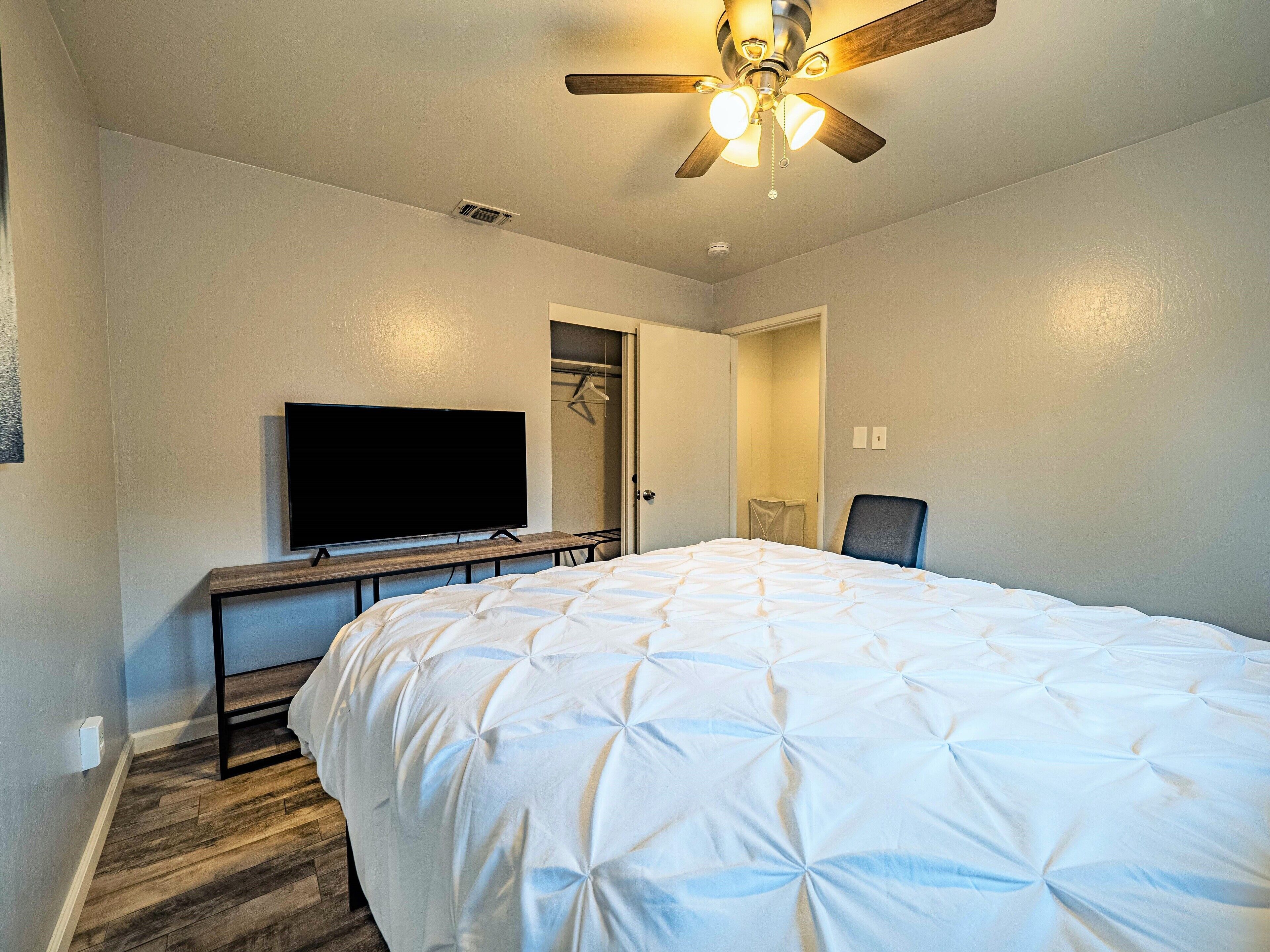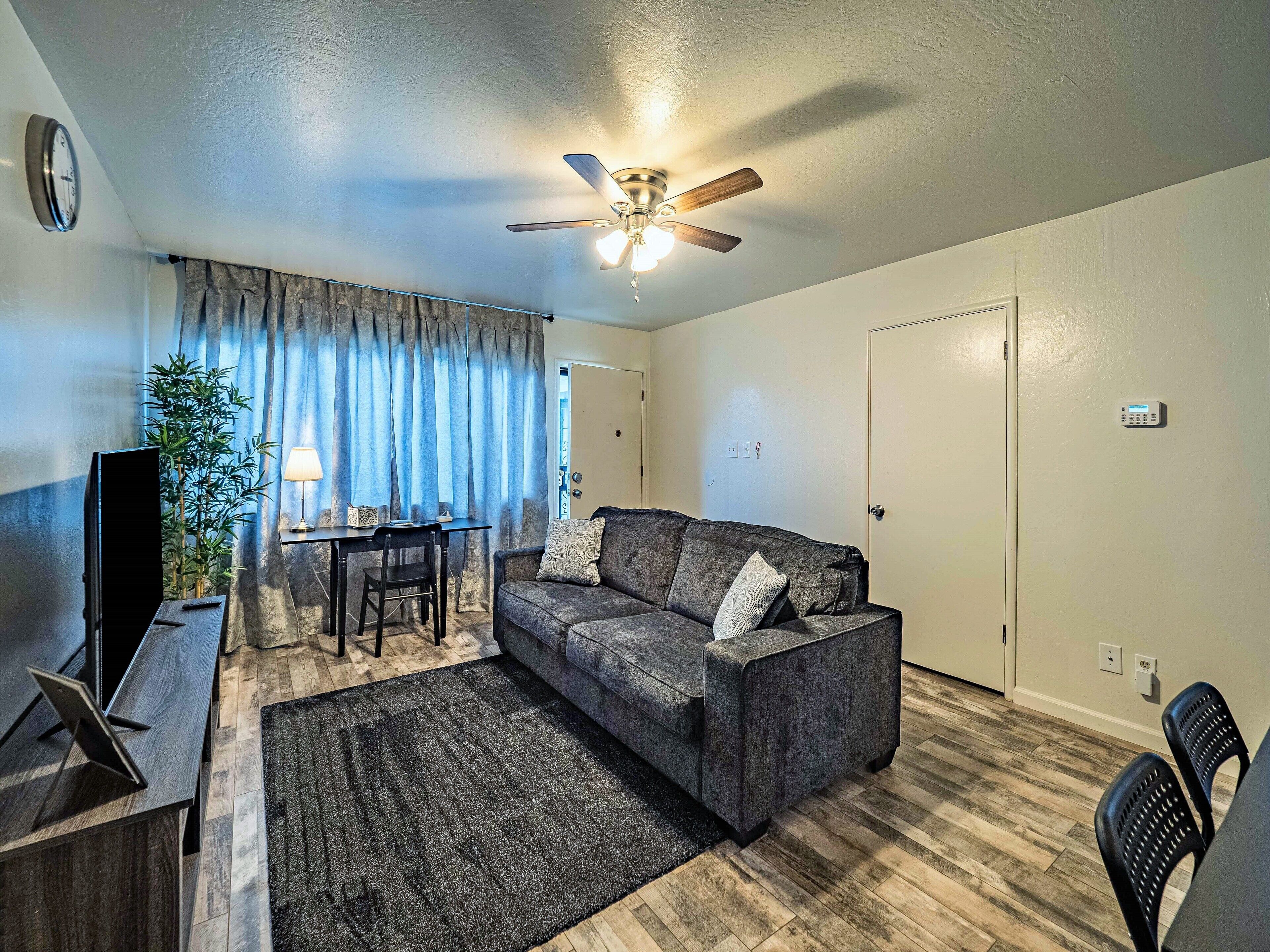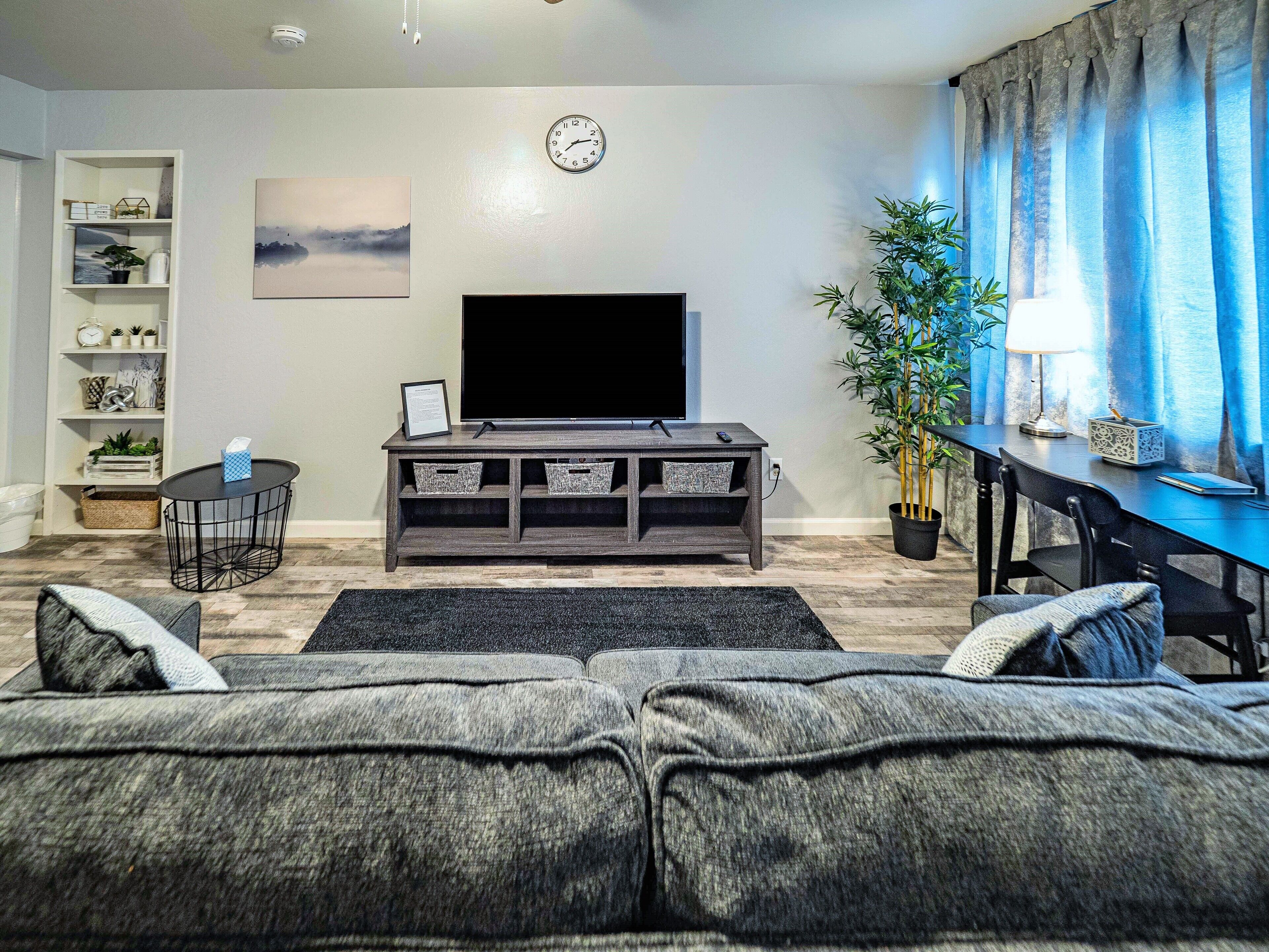 Luxe 2B Home in Carmichael | Netflix | Work Desk Summary:- Newly upgraded home- Big TVs with Netflix, Disney+ and Prime videos in each bedroom- Stainless steel appliances- Fully stocked kitchen, Keurig coffee station- Washer & Dryer- Professionally cleaned and disinfectedEnjoy this charming 2 bed 1 bath home in Sunny Carmichael, CA. Just a short drive or Uber to McClellan Airport, Downtown Sacramento, Roseville, and plenty of shopping / restaurants.The Space:We want to make sure you feel at home while away from home, so we've included lots of amenities for your enjoyment of the space, including cooking supplies, filtered water, Keurig coffee, steam iron, bath essentials, and more!Guest Access:You have the entire 2x1 home to yourself.The Neighborhood:Welcome to Sunny Carmichael, CA! Be sure to check out Carmichael Park, the American River Pkwy, and Jensen Botanical Gardens!Other Things to Note:We offer Netflix and Disney+ on each television.We have a security camera pointed at the entrance to the property for security purposes.No petsNo smoking, parties, or eventsCheck-in is anytime after 4 PM and checkout by 11 AMSelf-check-in with smart lock• Do not disrespect Neighbors• Please follow check-in and out instructions• Do not wash dishes in the bathroom sink.• Do not burn candles, incense or any other open flames.• Lock the door AT ALL TIMES. We want you and your things to be safe.• No smoking, vaping, or use of marijuana at anytime anywhere on the property including apartment complex. The apartment complex has No Smoking rules as well. Because other tenants are smoking does not grant permission. We are providing housing through a corporate lease, being 100% compliant is imperative. No smoking, no littering cigarette butts, no rubbing out burning cigarette tips, no flicking cigarette ashes anywhere on property including apartment complex. • No parties, events, birthdays, bachelor or bachelorette stays, get-togethers, hangouts and the like.• Do not have more guests than stated in your reservation and no unapproved visitors.• No Loud music or disturbances, especially noise past 10 pm.• If you open it, close it; if you borrow it, return it; if you turn it on, turn it off; if you break it, fix it; if you use it, take care of it; if you make a mess, clean it up; if you move it, put it back.• We are not responsible or liable for any accidents, injuries or illness that occur while on the premises. We are not responsible for the loss of personal belongings or valuables during your stay. We cannot be responsible for any items left behind.• FEES: Lost remote control (TV, Fan, A/C) will result in a $100 Charge• FEES: Smoking of any kind will result in a $250 Charge• FEES: Unapproved Late Check Out fees: Every hour after 11 am is an additional $50.• FEES: $50 per night per person for each person that is not stated in the number of guests in your reservation. Please be completely transparent in your reservation so that you can avoid this issue.___*Blocking or covering entrance surveillance cameras will result in a $250 charge.Interaction with Guests:We are available through Airbnb or by phone approx. 8am-midnight every day. Let us know if you need anything at all!PLEASE DO NOT UNPLUG WIFI EXTENDER UNDER THE DINING TABLEIt is for connecting the smart lock to the house wifi. Unplugging it will make the lock stop working!