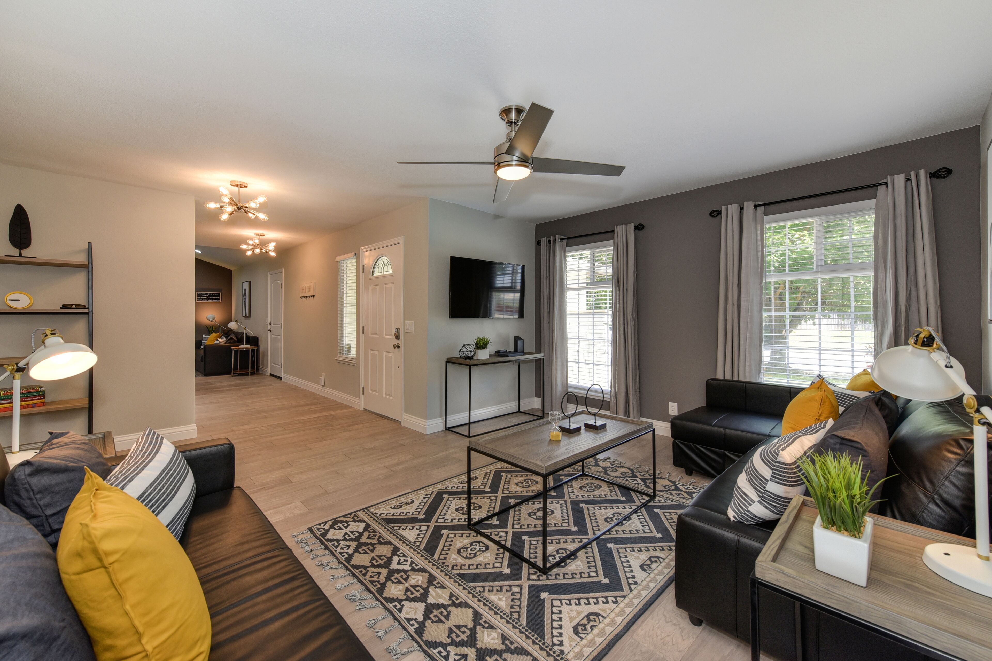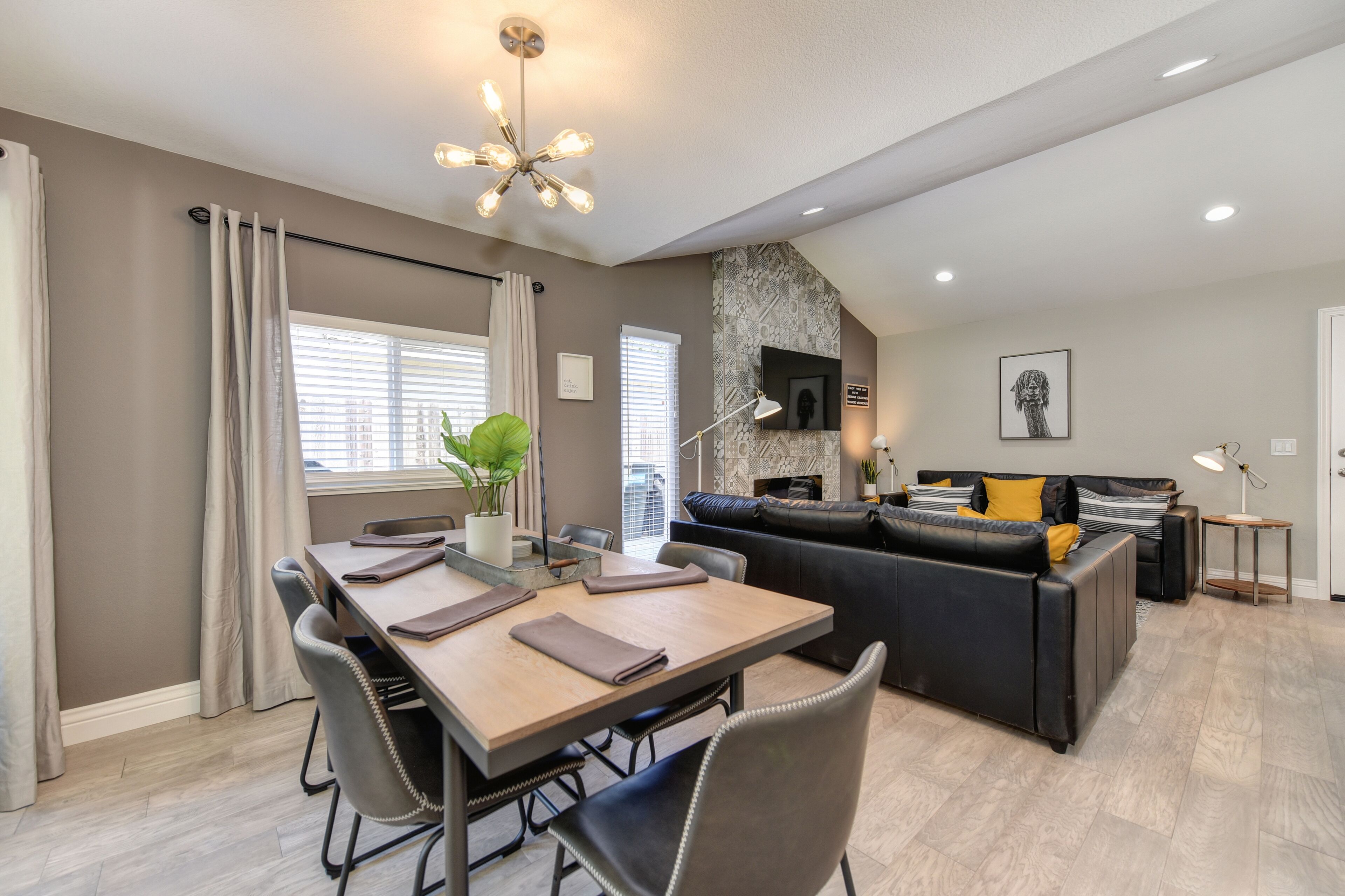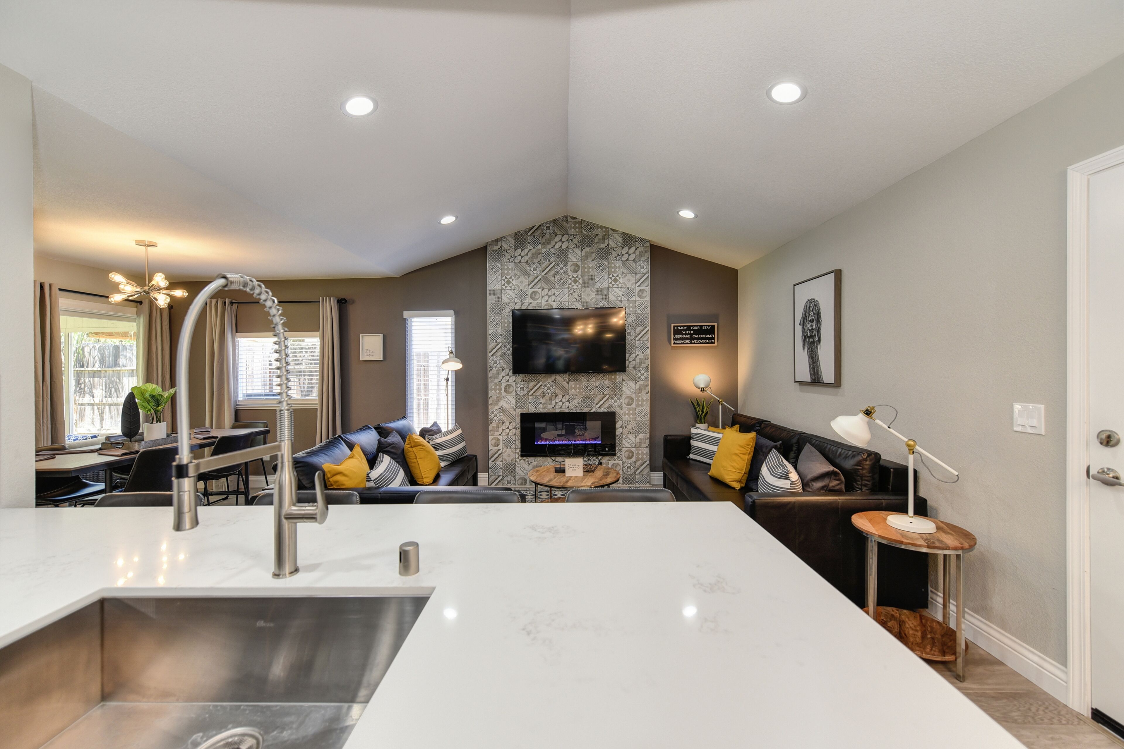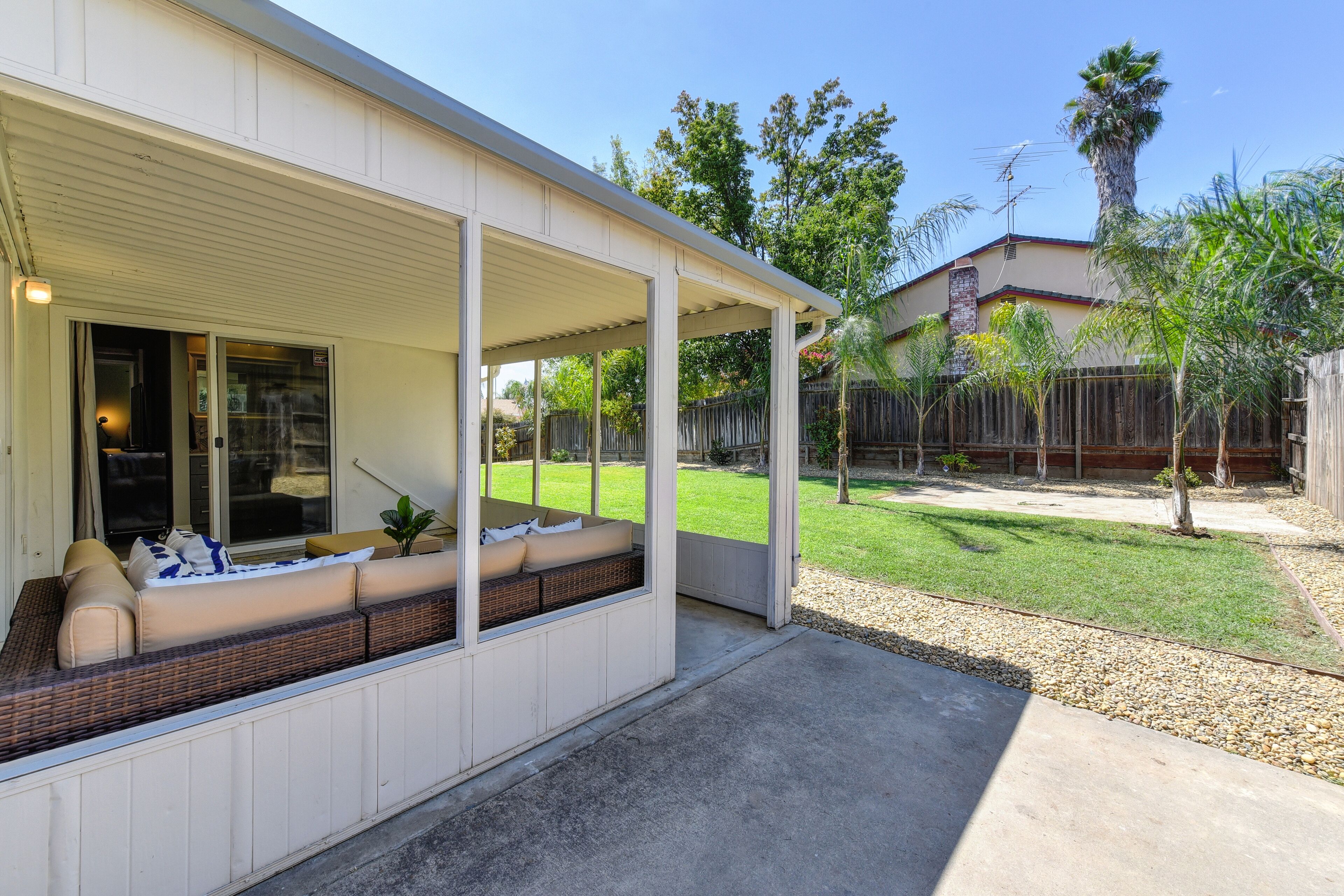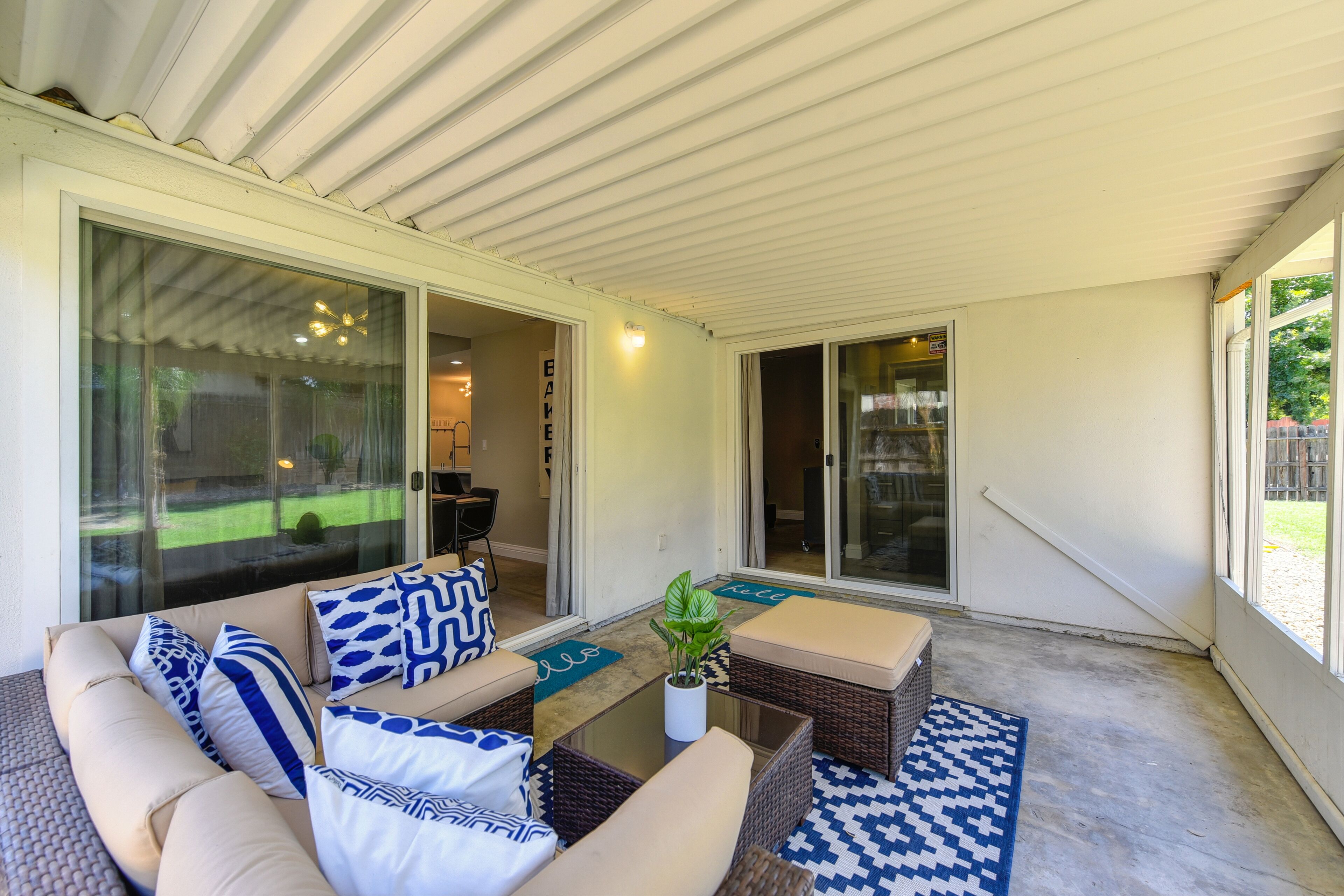 OLIVE House Next To Roseville DOWNTOWN Tunder VALLEY CASINO Airport Yard Grill By booking with us, you agree to these terms and ensure compliance throughout your stay. Violation of any rules may result in additional charges or termination of your stay without a refund.THE Stunning OLIVE HOUSE is a MasterPeace of design and luxury. The amazing single family property invites comfort and exudes modern elegance. With 3 bedrooms, 2 bathrooms (Sleeps 15) amazing outdoor garden area, generous living space and stylish finishes, you will enjoy a perfect setting for relaxing and entertaining. Short distance from shopping and restaurants and a short 15minute drive to downtown Sacramento. Fall in LOVE with the OLIVE HOUSE & experience the ultimate Cali lifestyle!A spacious home and luxurious grounds in a community that's fun and convenient to shopping, entertainment, and fine dining. The single story luxury home futures: - Brand new custom tile in bathrooms and wood floors throughout the house. - Master bedroom with queen bed, brand new luxury Simmons Plush Beautyrest mattress -(Sleeps 2) and a twin memory foam guest foldout bed (Sleeps 1) 55" Flat Screen SMART TV, large closet - Brand new master bathroom with custom tile throughout, custom tile and a walk-in shower, custom vanity and a toilet area - Second bedroom with queen bed, brand new luxury Simmons Plush Beautyrest mattress - (Sleeps 2) and 32" Flat Screen SMART TV, and a closet- Brand new private bathroom with soaking tub, custom vanity and a toilet area. -Third bedroom with queen bed, brand new Simmons Plush Beautyrest mattress - (Sleeps 2), 32" Flat Screen SMART TV, and a closet - Contemporary gourmet kitchen, fully stocked and set-up with brand new high end stainless steel appliances, quartz counter tops, custom tile backsplash.-A dining area with high end furnishings (seating 6) - Open concept floor plan Living area with two large brand new leather queen pullout sofas - (Sleeps 4) and a 60" Flat Screen SMART HDTV and a beautiful fireplace. -Open concept floor plan Family Room area with two large brand new leather queen pullout sofas - (Sleeps 4) and a 55" Flat Screen SMART HDTV. -Stunning oversized back yard with amazing covered patio with comfy conversation set and a separate outdoor patio with a swing and a barbecue. -Brand new high end front loader Samsung Washer and Drier-Attached Garage for 2 cars with private driveway and plenty of street parking.Discover a Luxury Living that you will love to visit year after year. The Luxury Home is located in the beautiful area of Sacramento, just minutes from Downtown, Old Town, Davis, 10 minutes to Fountains of Roseville and the Galleria of Roseville, Major Hospitals and Airport. This is one of Sacramento's FINEST corporate-vacation rental properties! Perfect Central Northern-California location! The home is located within walking distance from, several parks and shopping in the area.- Short 15 minutes drive to State Capitol, Downtown Sacramento and Old Town- Short 10 minutes drive to desirable Roseville area, Fountains of Roseville and the Galleria of Roseville, Short- Short 15 minutes drive to Midtown Sacramento- 15 minutes drive to Sacramento International Airport or Folsom Lake- Less than 12 minutes drive to Arden Mall- 30 minutes from Wake Island - The First Full-Sized Cable Wake Park on the West Cost offering Wakeboarding and Water Skiing activities- Short 15 minute drive to Sacramento Convention Center - 30 minutes from Folsom Lake and Auburn State Park – World Class Mountain Biking, Golf, Road Biking, Endless Water and Outdoor Activities- 45 minutes from Rio Vista – World Class Windsurfing and Kite Surfing destination- 50 minutes from Lodi, Napa & Sonoma Valley – World Class Wine Tasting- 1 hour and 15 minutes from Lake Tahoe and World Class Ski Resorts offering Snowboarding, Skiing, Mountain Biking and Endless Outdoor Activities- 1 hour and 15 minutes from San Francisco – The leading cultural center of Northern California******IMPORTANT NOTE******Please note that we require our guest to verify their booking by sending a copy of their ID. Once verified, we will provide you with the door code.Show ID 3 hours before arrival. Check-in at 4 PM. Early check-in fee: $50/hour. Late check-out fee: $50/hour after 11 AM ($100 for each additional hour).-Maintenance: We prioritize emergencies.-No events, parties, or pets without approval (pet fee: $100/stay).-No smoking, drugs, or eating/drinking in bed.-Respect furniture, use designated parking.-Additional fees: Excessive towels/sheets - $50, uncleaned BBQ - $50.-Violation of rules may result in extra charges or termination of stay.We offer other luxury rentals in the area (some require 30/90 day leases). Inquire for details!Please NOTE that there are weekly outdoor area maintenance and landscaping services scheduled to maintain the outdoor areas and the landscaping areas of the property, unfortunately due to the nature of their schedules we are not able to notify our guests in advance with exact day and time of service. We apologize in advance for the inconvenience.*NOTE. We take great pleasure in regularly updating and enhancing our property. This includes incorporating new decorations, throw pillows and blankets, furniture, and bedding, and refreshing the color scheme. Consequently, the current setup may not exactly match the images featured in the listing. However, we guarantee that all necessary amenities are provided to ensure your stay is enjoyable and comfortable.