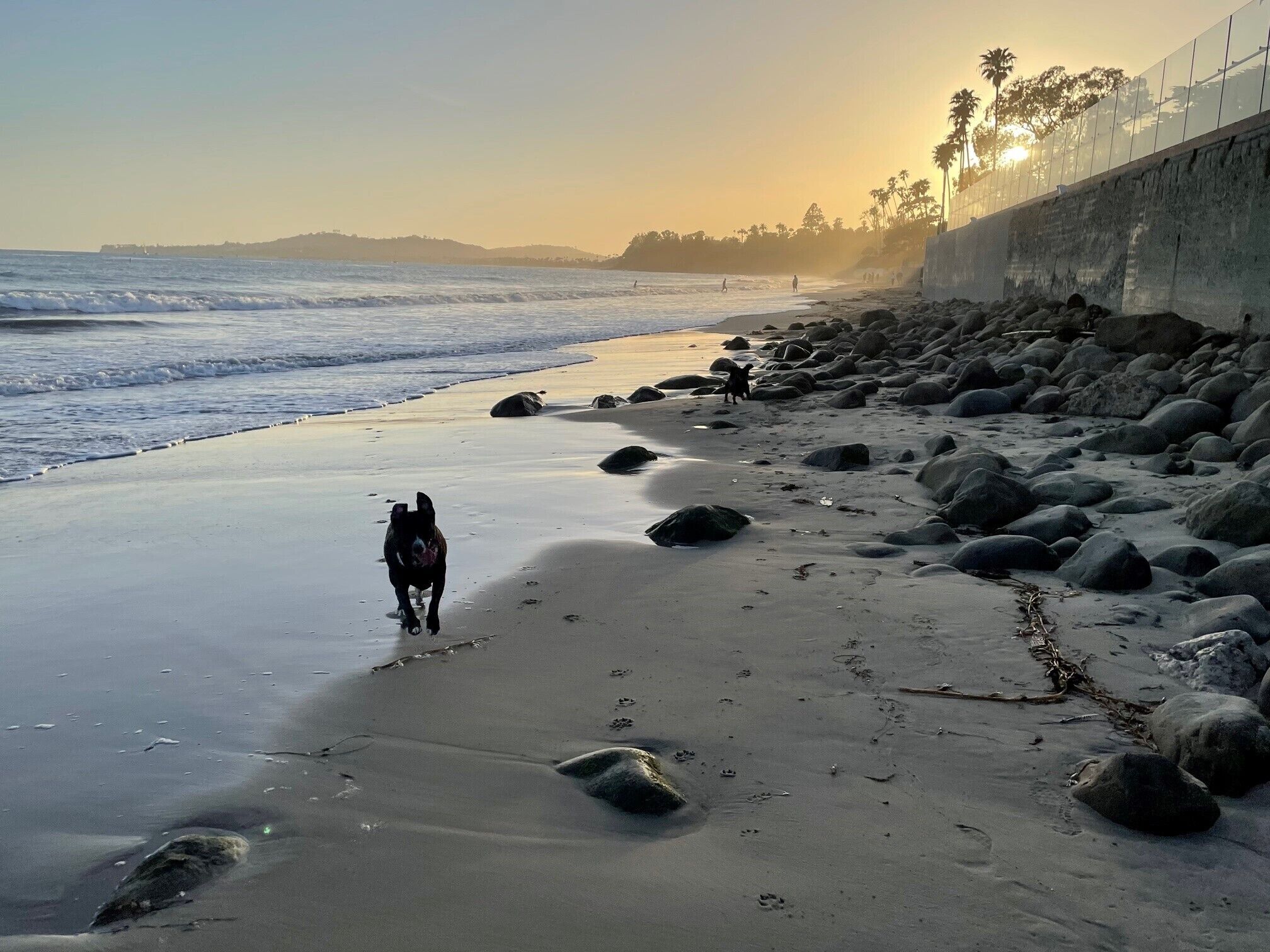 Is Designer's Seaside Getaway in Montecito, easy walk to beach and cafe pet-friendly?