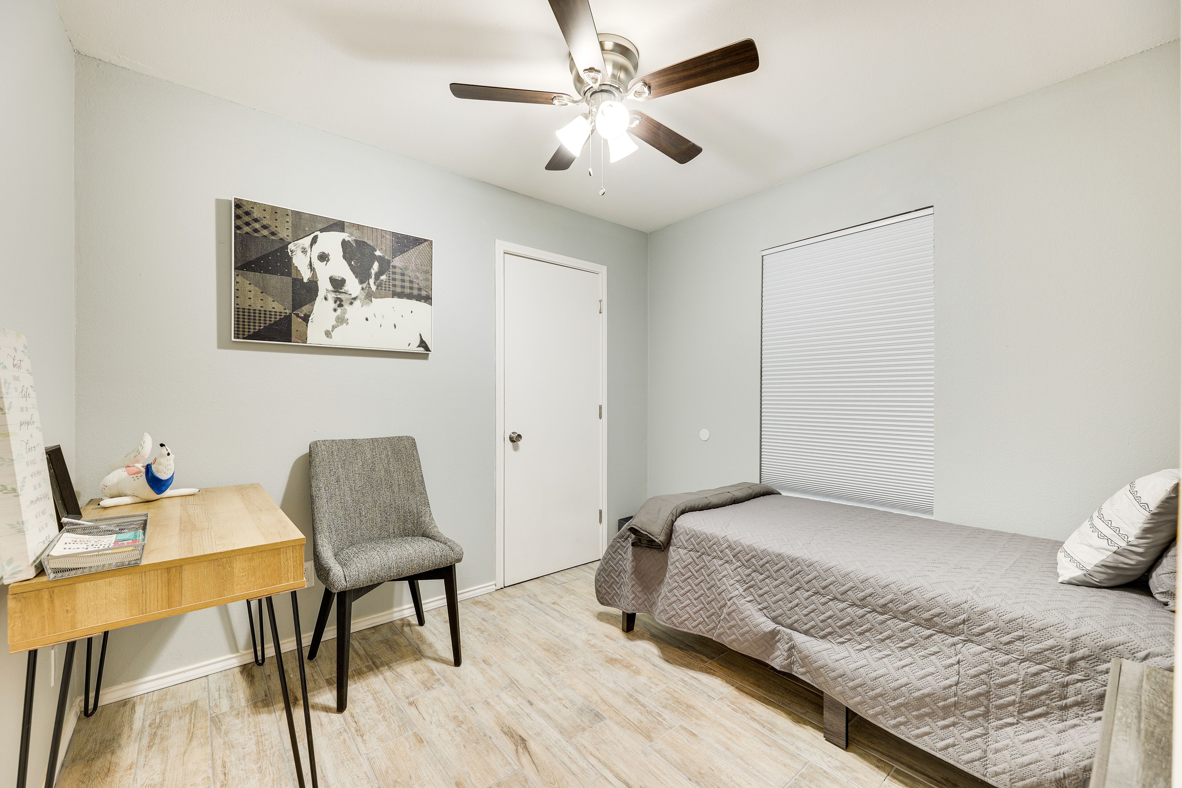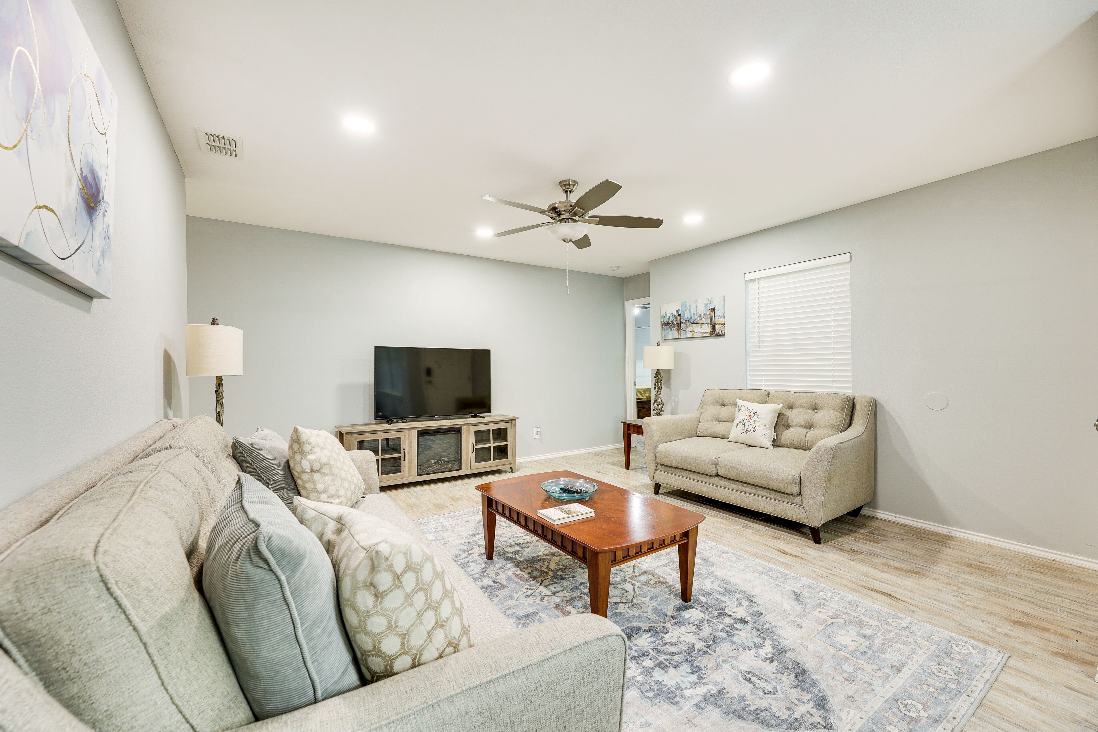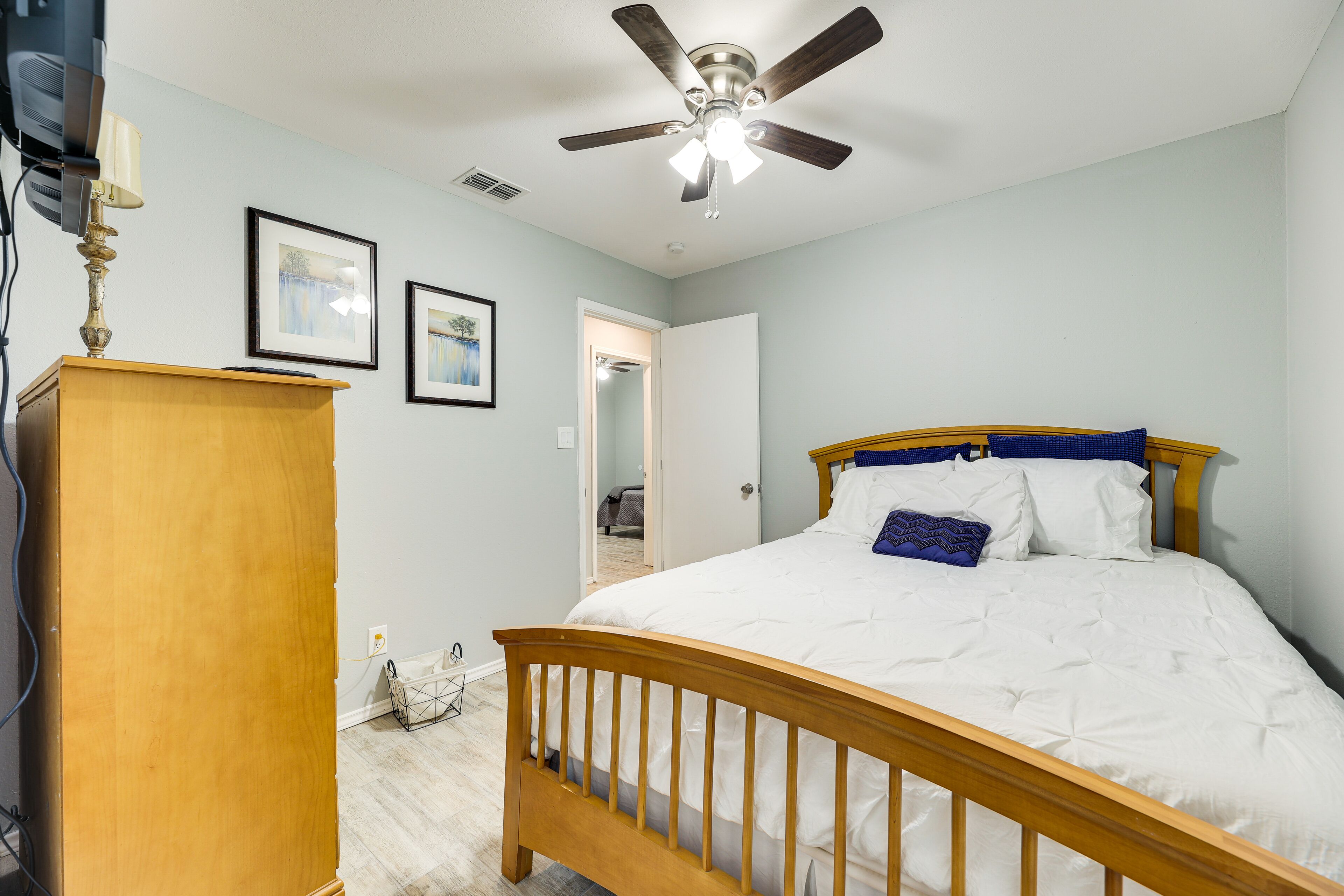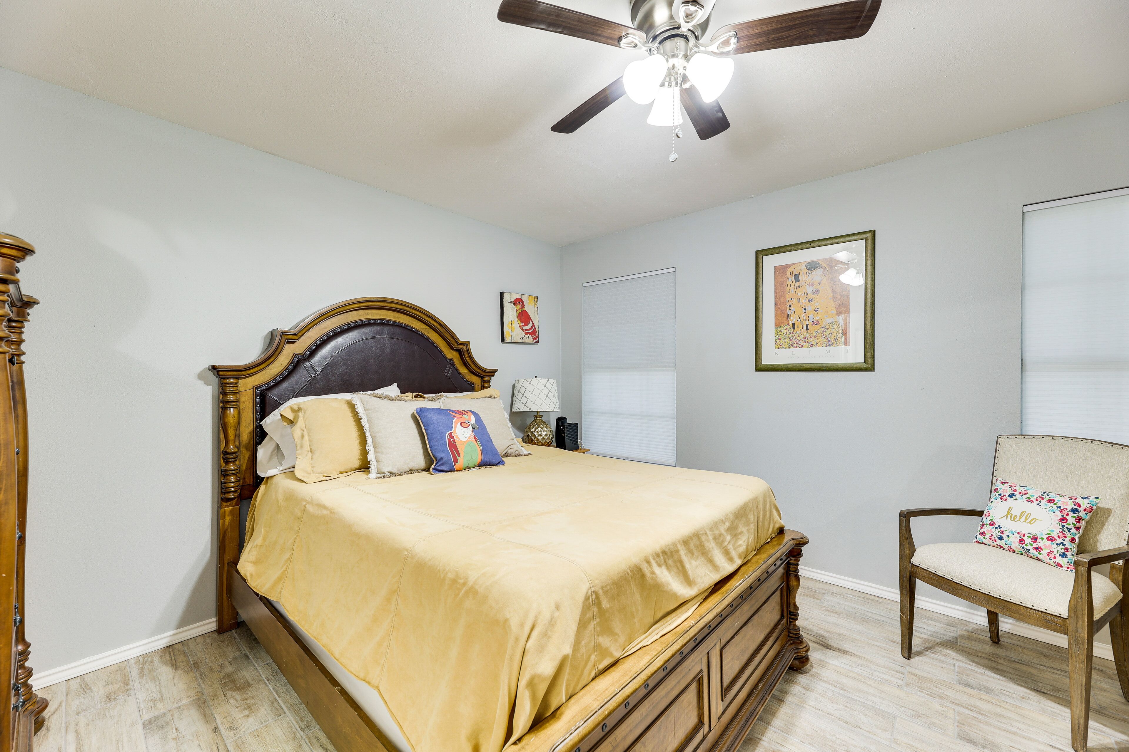 Pet-Friendly San Juan Vacation Rental w/ Grill! Memories are waiting to be made at this lovely 4-bedroom, 2-bathroom San Juan vacation rental, fit for a multi-generational family — pets included! This single-story house offers a well-stocked kitchen, in-unit laundry, 4 Smart TVs, and a private, fenced backyard. Learn about the historic La Lomita Mission, tour the Gelman Stained Glass Museum, experience classic Southern line-dancing at the Alamo Dance Hall, and cast your line at La Feria Reservoir. Your next Texas adventure awaits!-- THE PROPERTY --Private, Fenced Backyard | In-Unit Laundry | 4 Smart TVsBedroom 1: Queen Bed | Bedroom 2: Queen Bed | Bedroom 3: Full Bed | Bedroom 4: Twin Bed, Queen Sleeper SofaOUTDOOR LIVING: Covered patio w/ charcoal grill (charcoal provided) & seatingINDOOR LIVING: Dining table, 2 desks, board games, books, 1,207 sq ftKITCHEN: Fridge, oven, 4-burner stovetop, microwave, breakfast bar w/ seating, drip coffee maker, toaster, toaster oven, cooking basics, dishware & flatwareGENERAL: Free WiFi, keyless entry, central heating & A/C, ceiling fans, linens/towels, complimentary toiletries, laundry detergent, trash bags/paper towelsFAQ: 1 step required to access, pet fee (paid pre-trip), 4 exterior security cameras (facing out)PARKING: Driveway (1 vehicle), garage (1 vehicle)-- THE LOCATION --AREA ATTRACTIONS: Gelman Stained Glass Museum (2 miles), Basilica Of Our Lady of San Juan del Valle - National Shrine (2 miles), Mercadome Flea Market and Alamo Dance Hall (5 miles), Pharr Aquatic Center (5 miles), Quinta Mazatlan (9 miles), La Lomita Mission (19 miles)ESCAPE TO NATURE: Valley Nature Center (13 miles), Mission Hike and Bike Trail (14 miles), Estero Llano Grande State Park (17 miles), Bentsen-Rio Grande Valley State Park (19 miles), Anzalduas Park (19 miles), La Feria Nature Center (24 miles), La Feria Reservoir (24 miles)DAY TRIPS: Progreso International Bridge (22 miles), Laguna Atascosa National Wildlife Refuge (59 miles), Port Isabel (72 miles), South Padre Island (77 miles) AIRPORT: McAllen International Airport (9 miles)-- REST EASY WITH US --Evolve makes it easy to find and book properties you’ll never want to leave. You can relax knowing that our properties will always be ready for you and that we’ll answer the phone 24/7. Even better, if anything is off about your stay, we’ll make it right. You can count on our homes and our people to make you feel welcome--because we know what vacation means to you.-- POLICIES --- No smoking- Pet friendly w/ $25 fee (+ fees & taxes)- No events, parties, or large gatherings- Must be at least 25 years old to book- Additional fees and taxes may apply- Photo ID may be required at check-in- NOTE: The property requires 1 step to access- NOTE: Your safety matters. This property features 4 exterior security cameras located on each corner of the house. The cameras are outward facing and do not look into interior spaces. The cameras do not record video or sound and will be off during the duration of your stay