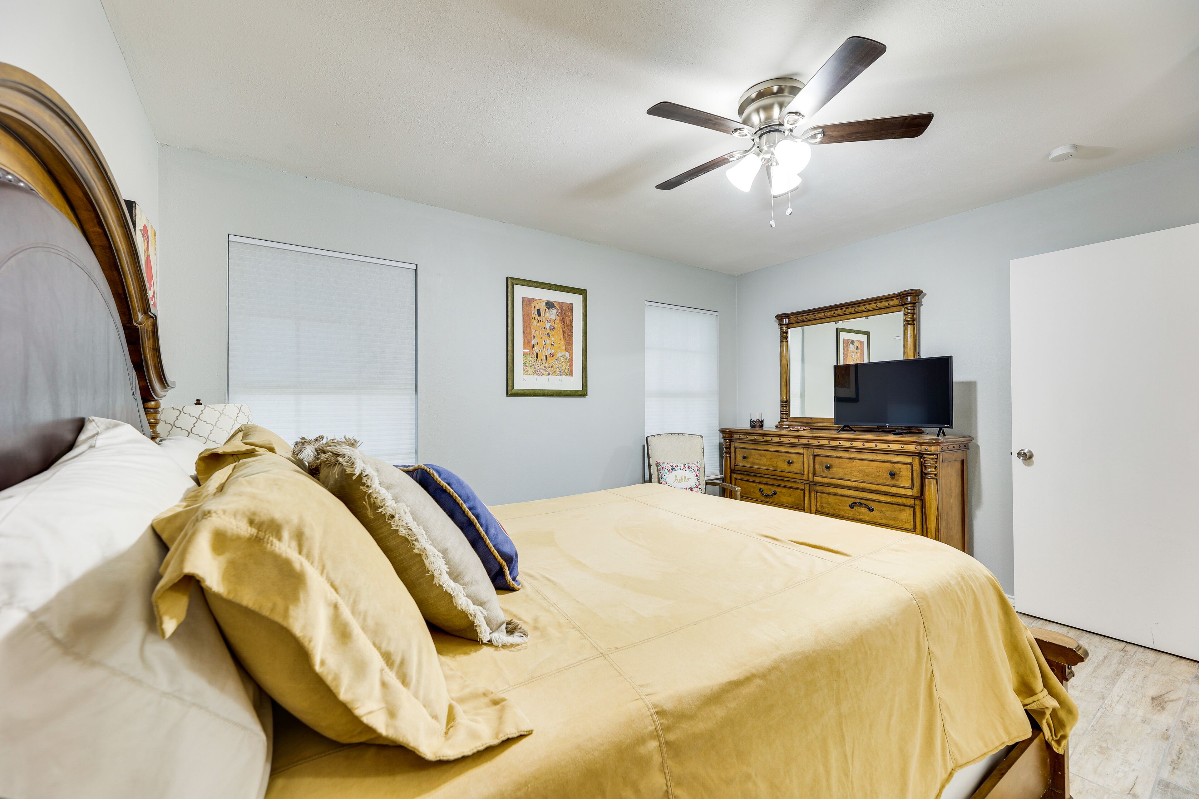 Pet-Friendly San Juan Vacation Rental w/ Grill! Memories are waiting to be made at this lovely 4-bedroom, 2-bathroom San Juan vacation rental, fit for a multi-generational family — pets included! This single-story house offers a well-stocked kitchen, in-unit laundry, 4 Smart TVs, and a private, fenced backyard. Learn about the historic La Lomita Mission, tour the Gelman Stained Glass Museum, exper...