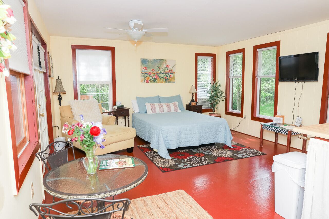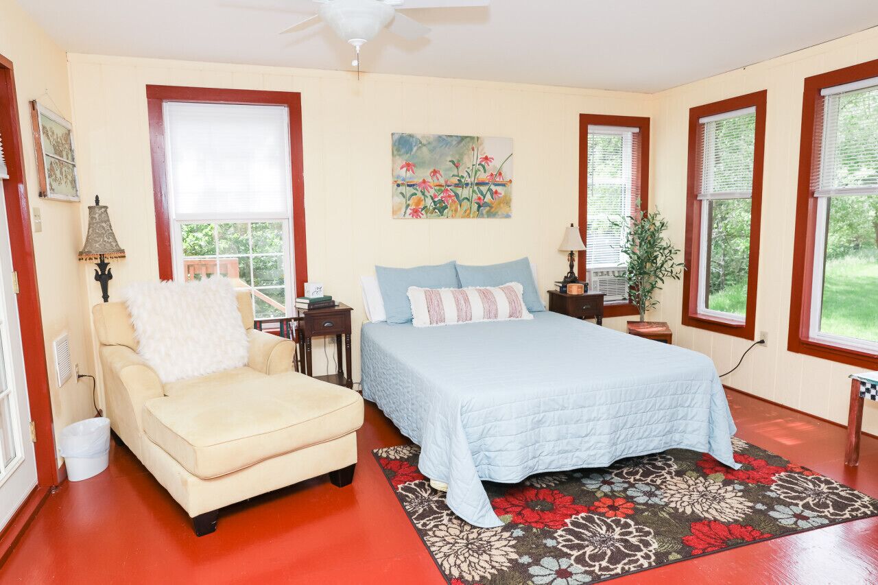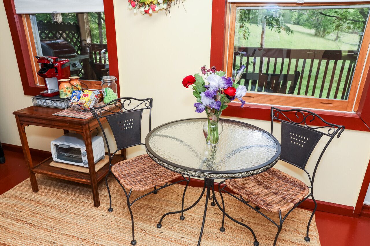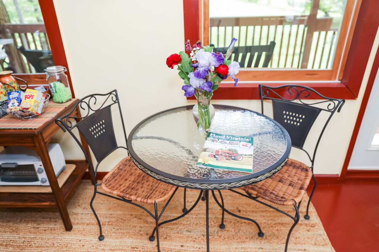 New! Joy Cottage - the perfect place for romance, by Buffalo Mtn Getaway Take a stroll down to the creek and relax on the deck or try your hand at fishing. We also offer a gas grill and picnic area for outdoor dining. Whether you want to explore the charming town of Floyd or simply relax in a peaceful and tranquil setting, Joy Cottage is the perfect choice for your next vacation. Book now and experience the joy of Joy Cottage!Escape to the charming Joy Cottage, nestled along a peaceful creek, for a romantic retreat for two. Enjoy all the amenities we've thoughtfully included, such as a full kitchen with a Keurig brew station, cozy bed, smart TV, and full bathroom. Relax on the creekside deck and stargaze in the evening, or take a stroll to the water's edge and try your hand at fishing. Just eight miles from the bustling town of Floyd, named one of the best small towns in America, you'll have the best of both worlds - a serene escape and access to music, food, and shopping. This charming 400 square foot cottage is the perfect place to sleep and play. So treat yourself to a stay at Joy Cottage and discover true joy in the peaceful countryside. Book now and make unforgettable memories at Joy Cottage!Just a few reminders:1 - NO Pets allowed2 - Absolutely NO Smoking anywhere on the property3 - Please do not move furniture4 - Keep it clean. When you leave it should look the same as you entered, with the exception of bed linens and towels5 - Remember it's our home, so treat it with respect6 - The grill is propane.7 - If you’d like to fish in our creek, bring your own poles. Enjoy!