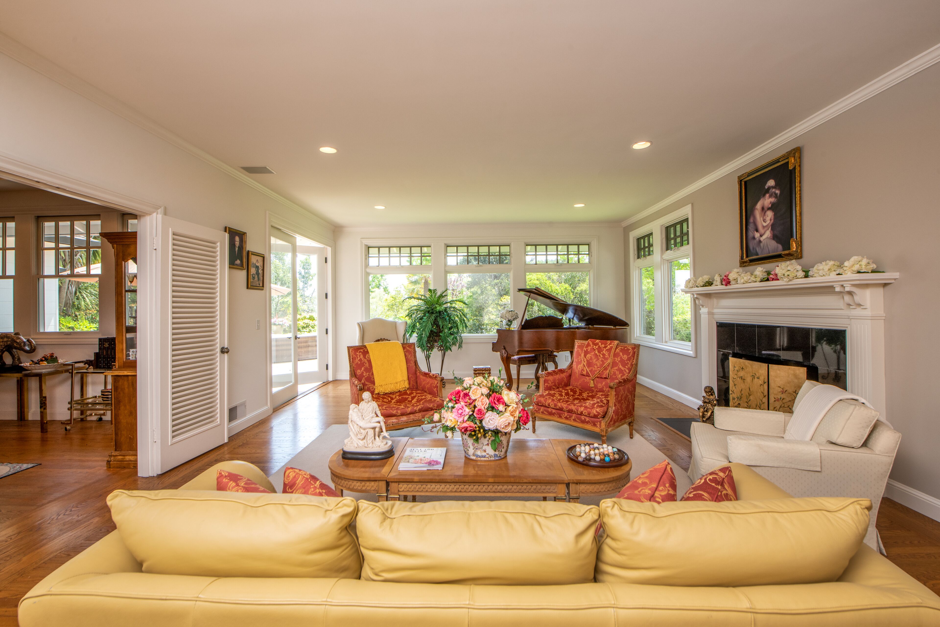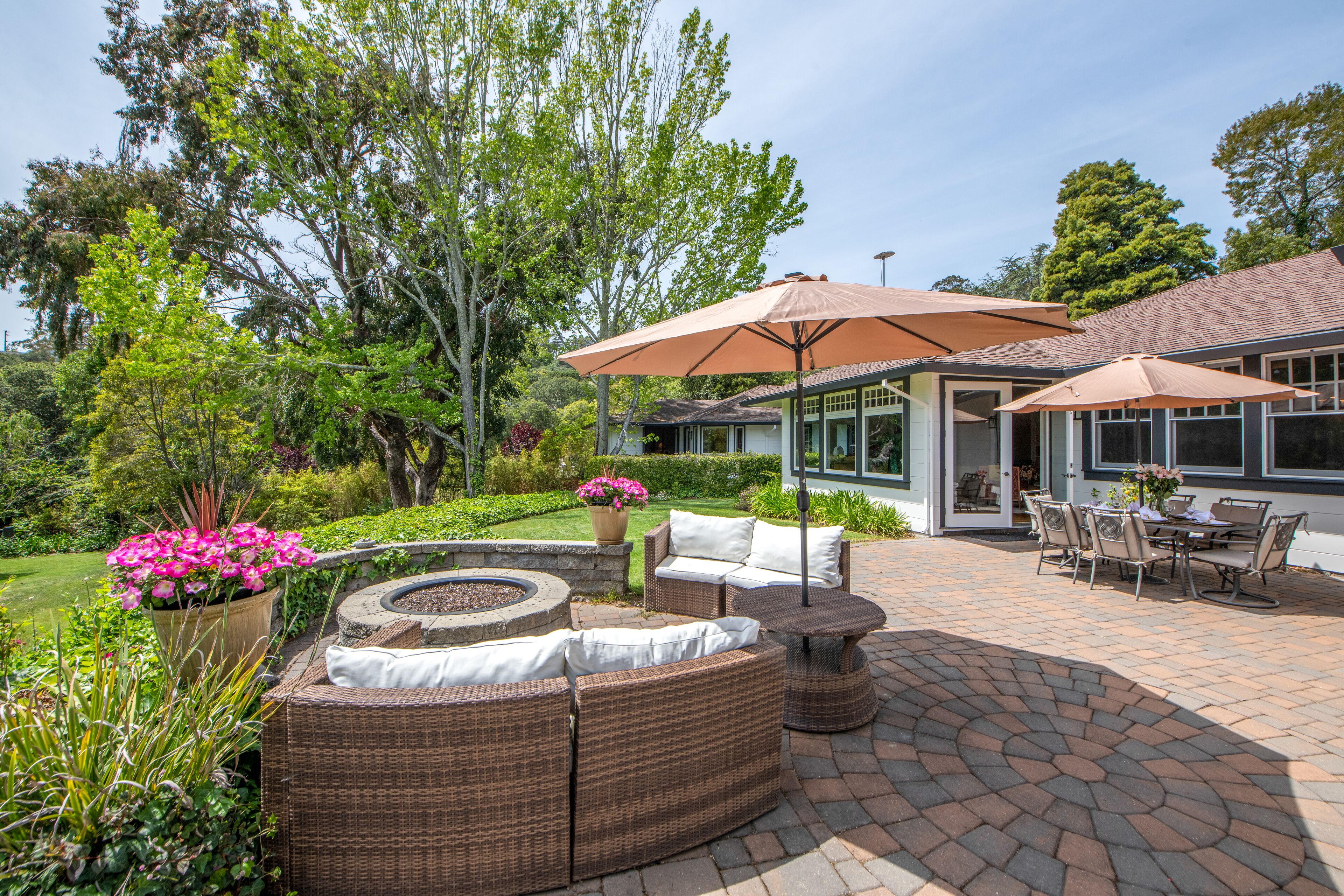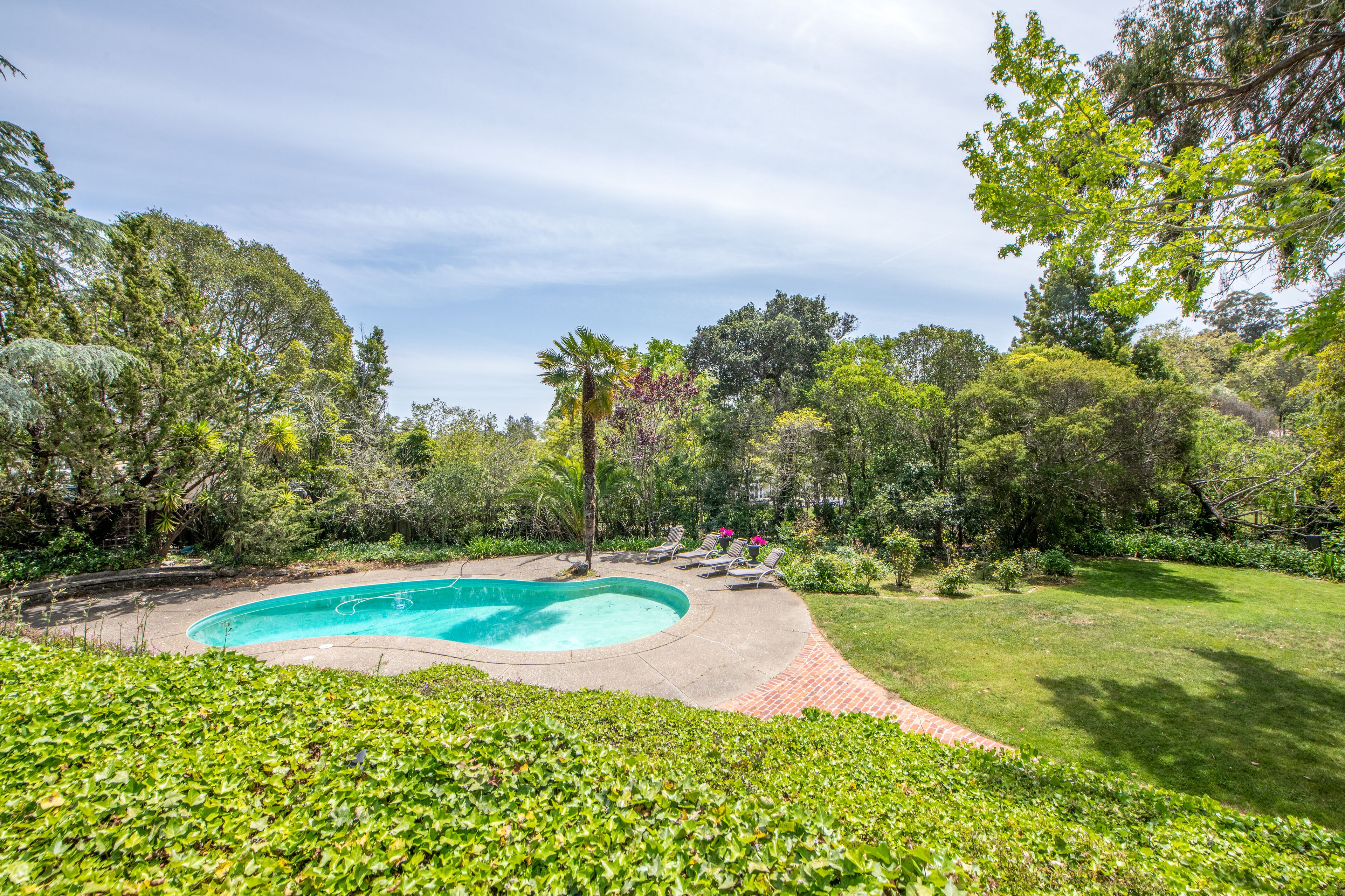 Huge Garden Estate in Marin-Sleeps up to16 PLEASE NOTE:The main house has 4 bedrooms and 3 bathrooms, with beautiful hardwood floors throughout the 5500 sq ft. The main house can accommodate up to 10 guests overnight.There is a downstairs apartment, with a mini kitchen and bathroom area, that can accommodate 4 extra overnight guests for an additional $300.00/night. (Total guests would be 14.)If you should want to include 2 more guests for a total of 16 overnight guests, it would be $50.00 for each additional guest.No large parties allowed. No live or loud music.(Space for parking a maximum of 8 cars in the driveway allowed. If over 8 cars, permission is required.)Nestled in the Prestigious Country Club Area of San Rafael, this Gated Estate is perfect for Retreats or Family Gatherings.It is a Shangri-La; peaceful, private and secluded, surrounded by over an acre of park like gardens, swimming pool, and putting green. It's gates open to a long driveway.Entertain on the Baby Grand Piano in the Formal Living Room... or Dine in either the Dining Room or Family Room, (each have seating for 8 for sit down dinners or game board play.) Back patio can also be set up for sit down dining.Access from Living Room, Dining Room and Family Room through French doors that open out onto cobblestone patio with custom built circular gas pit. Stone steps guide you through the garden to the lower pool and wheelchair access, as well, down brick walk way. Includes wood burning fireplace, recessed lighting and vaulted ceilings.The Master Bedroom has a private balcony overlooking the gardens with a spacious and luxurious bathroom, as well as, a sitting area. It has an updated Kitchen with Wolfrange, Subzero Refrigerator and Freezer, and gorgeous granite countertops.Laundry room with washing machine, dryer and sink. In Addition: If you only want to use the estate for DAY use, the fee is negotiable depending on hours and number of guests. Also note that CSA trip cancellation insurance is available through VRBO. You can call 800-349-8218 or purchase insurance on the following website:www.vacationprotection.comYou agree to take all recommended and reasonable actions to protect yourself and others from exposure to COVID-19,and you ASSUME THE RISK, as applicable, of entering the Property, or allowing someone to enter the Property. Youunderstand and agree that no one can guarantee that you willnot be exposed to or contract COVID-19. If you are required to stay in place at the property longer than the agreed upon time, the rate per day will remain the same.Essential workers welcome.Property just got a new paint job, pool remodel, new roof and other updates!