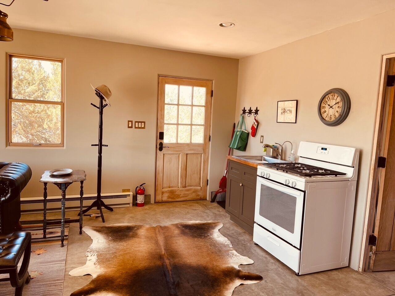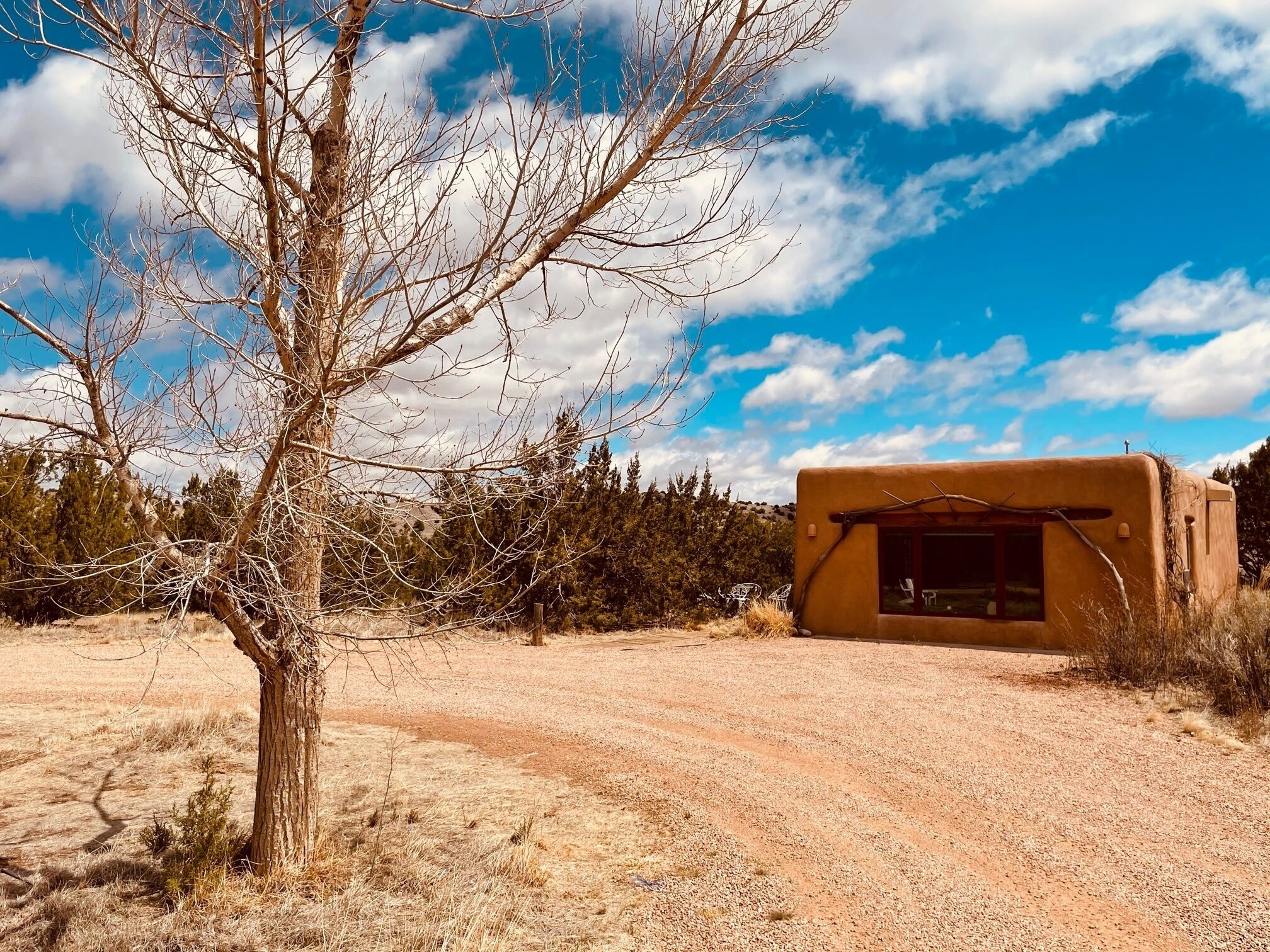 Hideway Casita at Galisteo Creek Stables Private guest casita located on a beautiful horse ranch in the Galisteo Creek River basin. Located 30 minutes south of Santa Fe and 45 minutes north of Albuquerque, off the picturesque Turquoise Trail (HW-14). Close to scenic former mining towns Cerrillos and Madrid. Enjoy the tranquility and nature on our beautiful 60+ acres ranch. The location is also perfect for day trips to explore the vast history and culture of central New Mexico. We also offer private yoga, meditations, trail rides and riding lessons. Los Cerrillos, New Mexico, United States. Only 15 minutes away you find unique restaurants where you can enjoy excellent food and experience the vibes of the Wild West. Many movies, not only Western, are filmed in our scenic area. We are more than happy to provide you with recommendations.The space:Enter our beautiful casita keyless with a modern number lock. We will provide your personalized number combination before check-in. Outside the casita you have two private sitting areas to enjoy beautiful sunrise views and outdoor dining. As the nearest grocery store is 20 minutes away, we provide initial organic groceries, like fresh fruits, cereal, milk, bread, butter, marmalade, spaghetti, pasta sauce, olive oil, salt, pepper to make your arrival easy. Complimentary Nespresso coffee capsules and assorted tea bags are provided throughout your stay.Guest access:You can walk our complete property on designated trails. Pertaining to wild life and us being a working horse stable, please follow the safety instruction in the casita.Getting around:The ranch is located about 3 miles down a well maintained county dirt road, directly off HW 14. It usually is passable with all types of cars. Please note that in case of extensive rains we might experience flash floods in the Galisteo River, which you have to cross on a concrete slap. Should you encounter such a rare event, please don't try to cross the river (in or out) until the water has receded, which usually takes only a couple of hours.We also offer airport pickup or drop-off at an extra rate of $120 for ABQ Sunport or $70 for Santa Fe Airport.Other things to note:The double bed is a full size bed (140cmx190cm).Cell coverage:Please note that the area has no cell coverage but we provide WiFi on the whole property. Once you activate WiFi calling on your cell phone you can make and receive also regular calls.