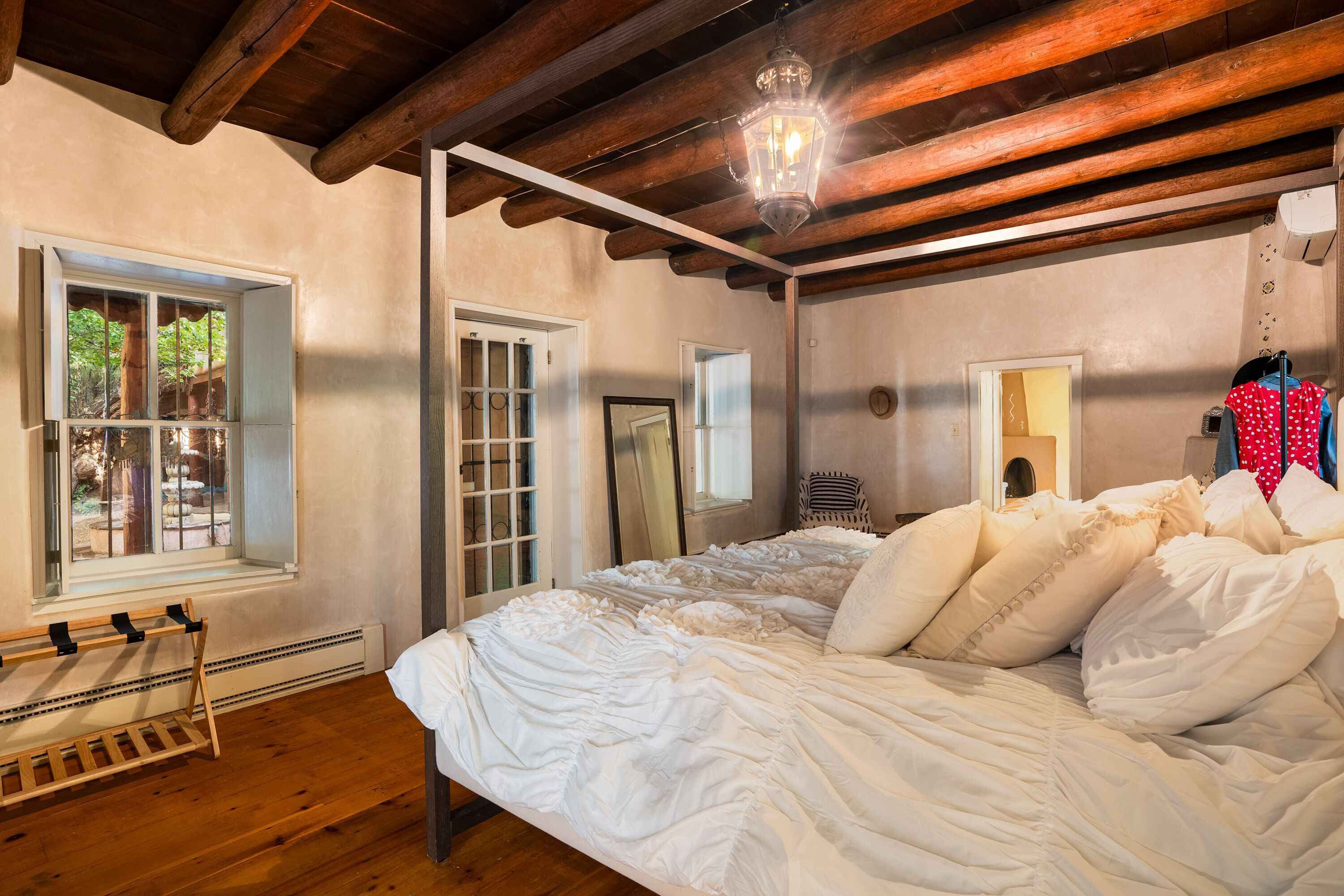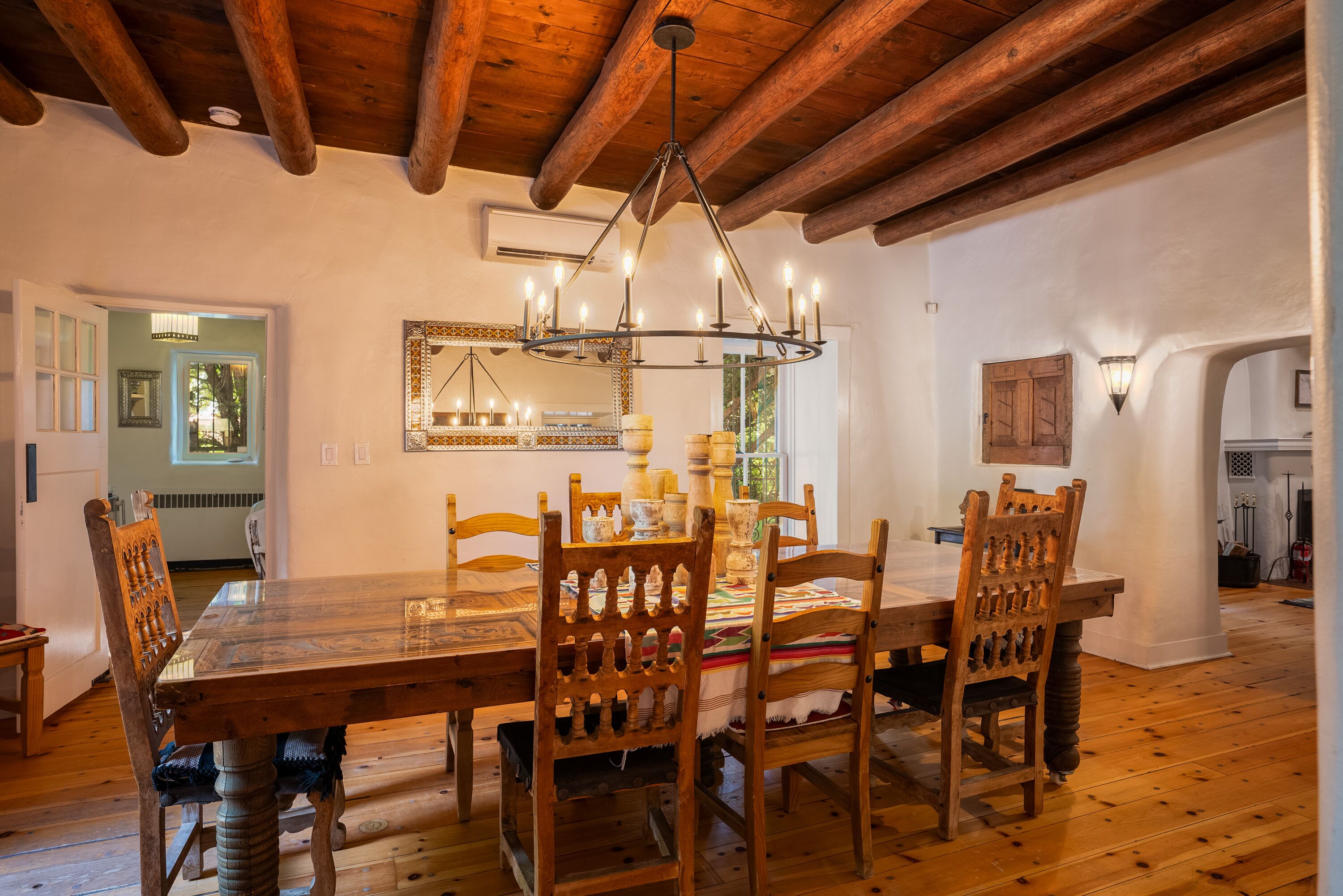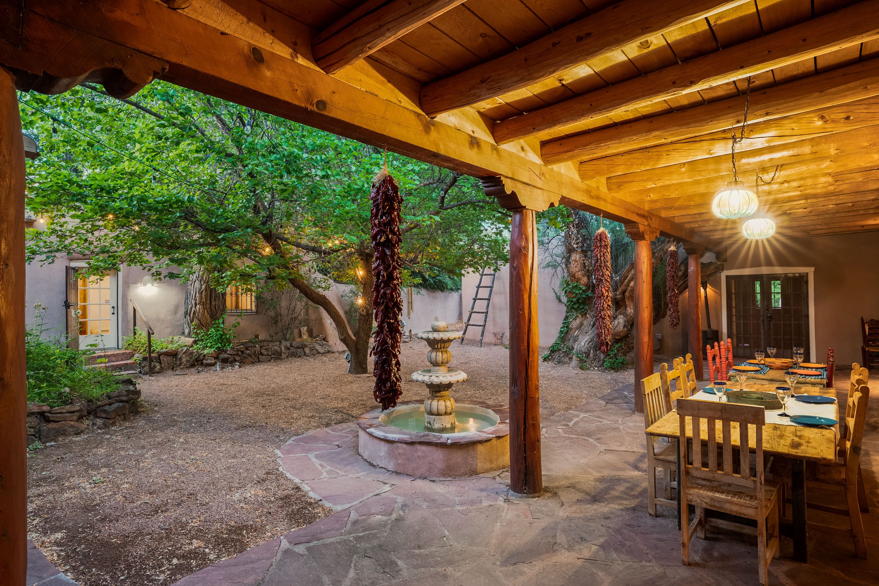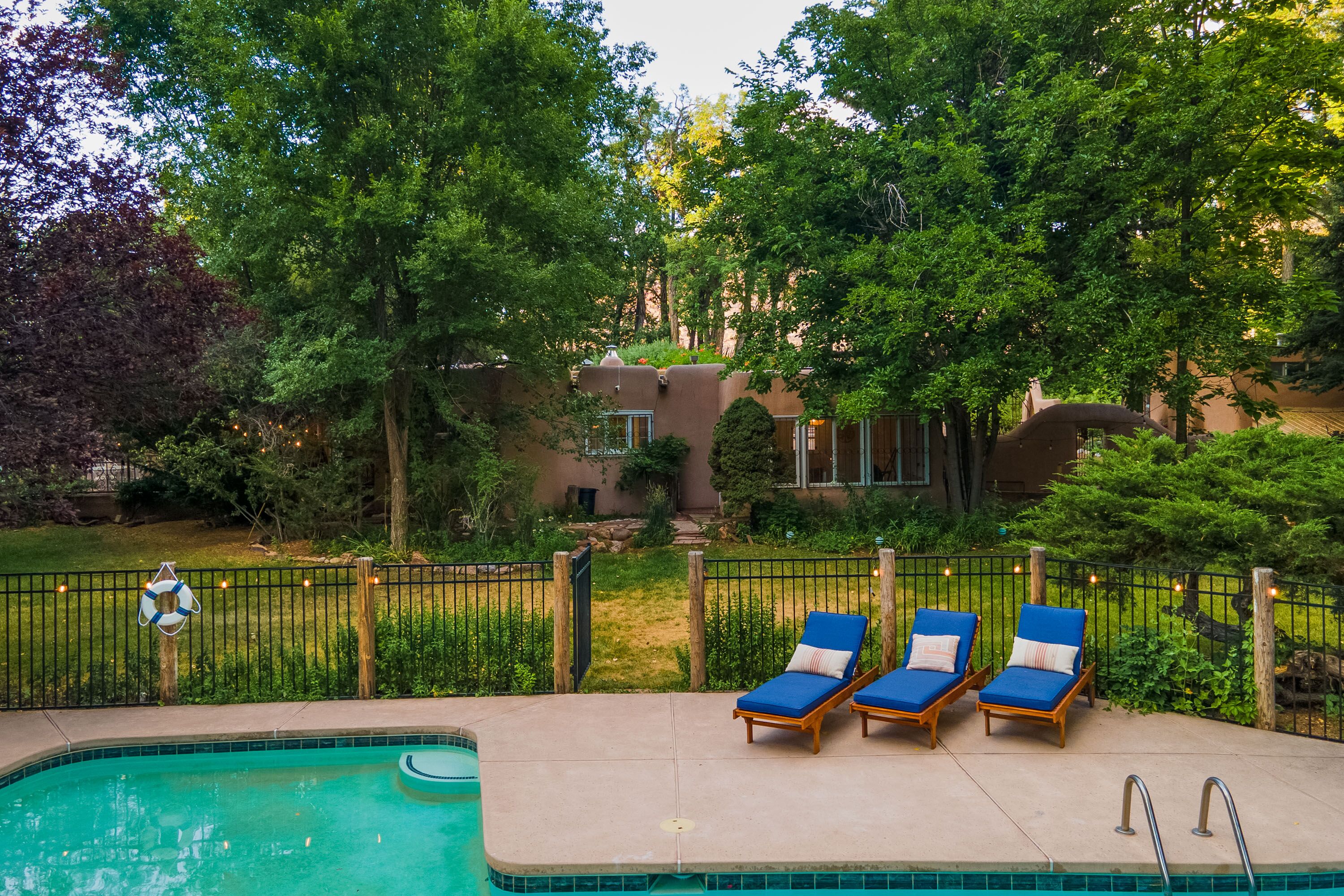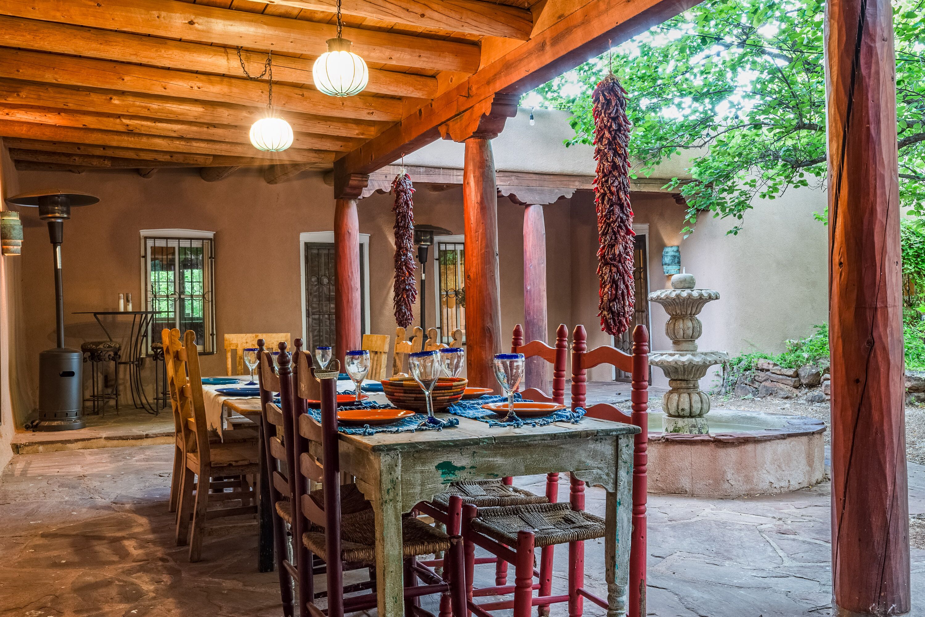 Traditional Hacienda, heated pool upon request, hot tub, huge yard, private *NEW LISTING* Casa Santa Cruz is nothing short of magical. It is nestled in the charming town of Santa Cruz, New Mexico (short & beautiful drive to Santa Fe - 30 min).Perfect for a peaceful getaway as it has 3 bedrooms in the main home and a private casita with a bathroom. Complete with a large dining room, kitchen, living room and courtyard area. But wait, it gets better...there is 3+ acres of outdoor space including a full-size pool and hot tub. Enjoy your meals at the 2 outdoor dining areas!Casa Santa Cruz is situated on 3 acres of lush and mature greenery. The home is an authentic New Mexico style home with vigas. There is a full-size pool and hot tub that seats 4. There are 2 large outdoor dining areas with seating for 9 people. *ABSOLUTELY NO EVENTS OR PARTIES ALLOWED* Pool information:Pool - pool is generally heated to 75 however if you would like the pool heated to 82 degrees, we can heat for a fee of $75/day. Please inform the host of this request (via a VRBO message) at the time of booking so we can ensure the temperature is at your desired temp. The pool is open only between May 15-October 15. *ABSOLUTELY NO EVENTS OR PARTIES ALLOWED*