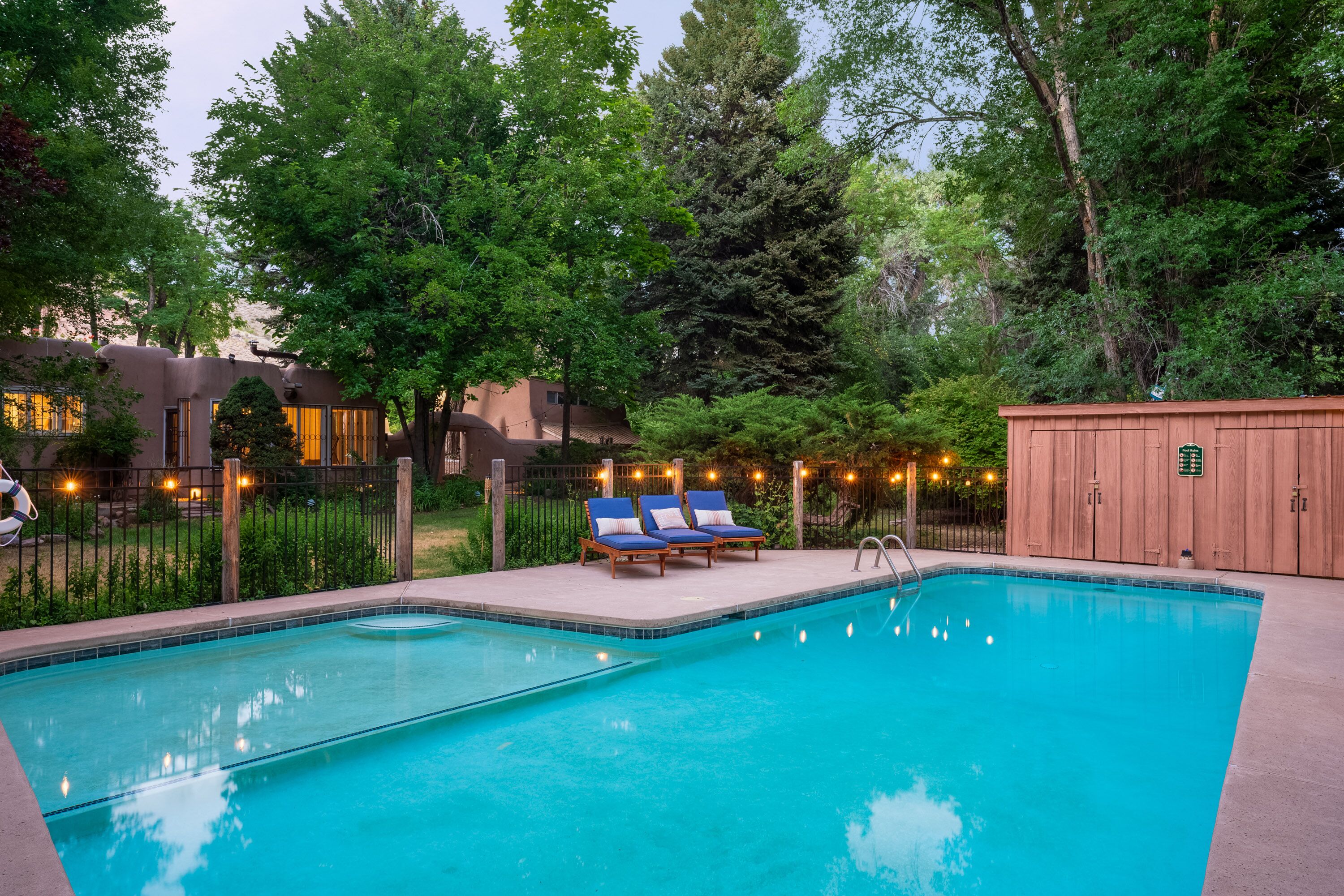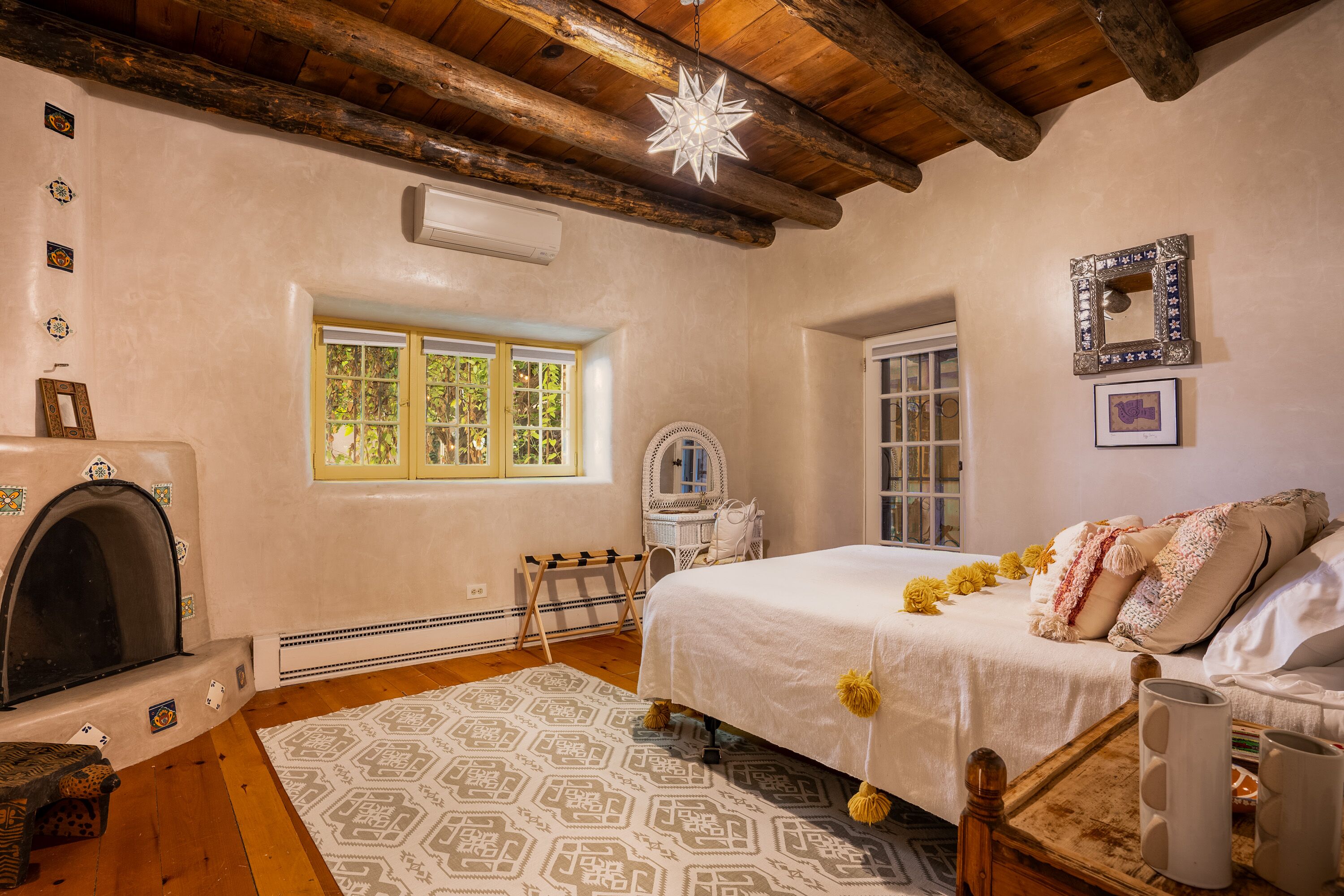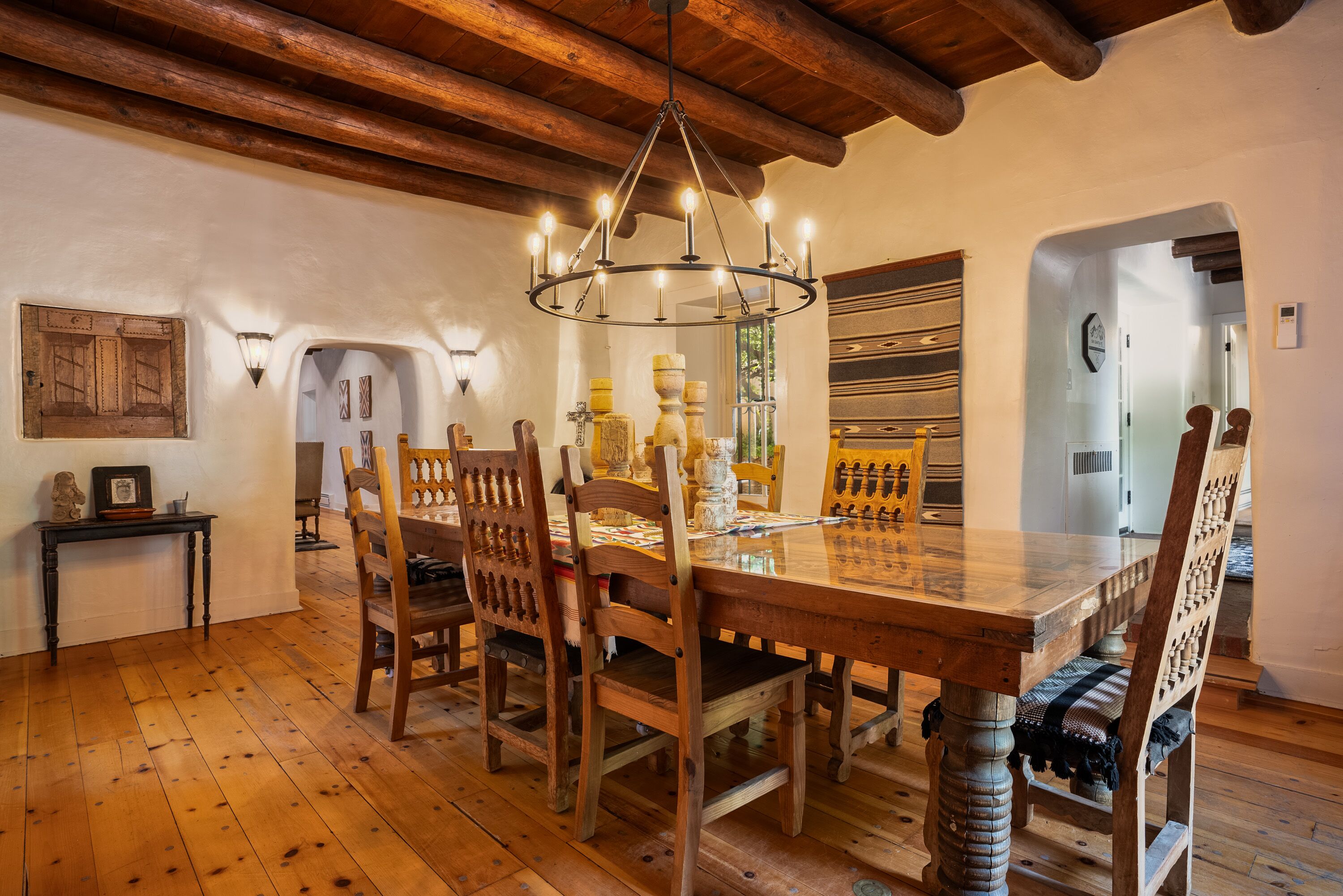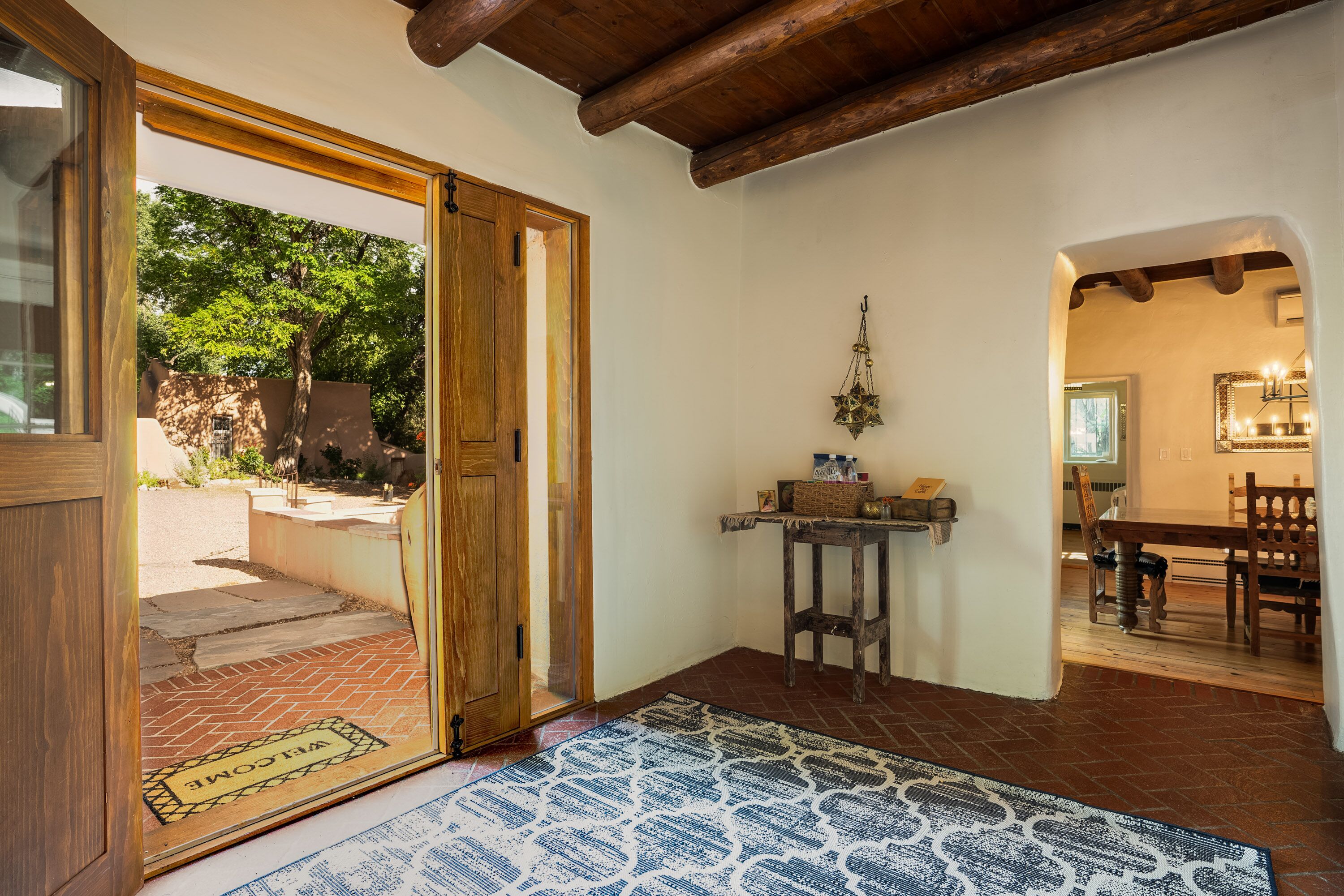 Traditional Hacienda, heated pool upon request, hot tub, huge yard, private *NEW LISTING* Casa Santa Cruz is nothing short of magical. It is nestled in the charming town of Santa Cruz, New Mexico (short & beautiful drive to Santa Fe - 30 min).Perfect for a peaceful getaway as it has 3 bedrooms in the main home and a private casita with a bathroom. Complete with a large dining room, kitchen, living room and courtyard area. But wait, it gets better...there is 3+ acres of outdoor space including a full-size pool and hot tub. Enjoy your meals at the 2 outdoor dining areas!Casa Santa Cruz is situated on 3 acres of lush and mature greenery. The home is an authentic New Mexico style home with vigas. There is a full-size pool and hot tub that seats 4. There are 2 large outdoor dining areas with seating for 9 people. *ABSOLUTELY NO EVENTS OR PARTIES ALLOWED* Pool information:Pool - pool is generally heated to 75 however if you would like the pool heated to 82 degrees, we can heat for a fee of $75/day. Please inform the host of this request (via a VRBO message) at the time of booking so we can ensure the temperature is at your desired temp. The pool is open only between May 15-October 15. *ABSOLUTELY NO EVENTS OR PARTIES ALLOWED*