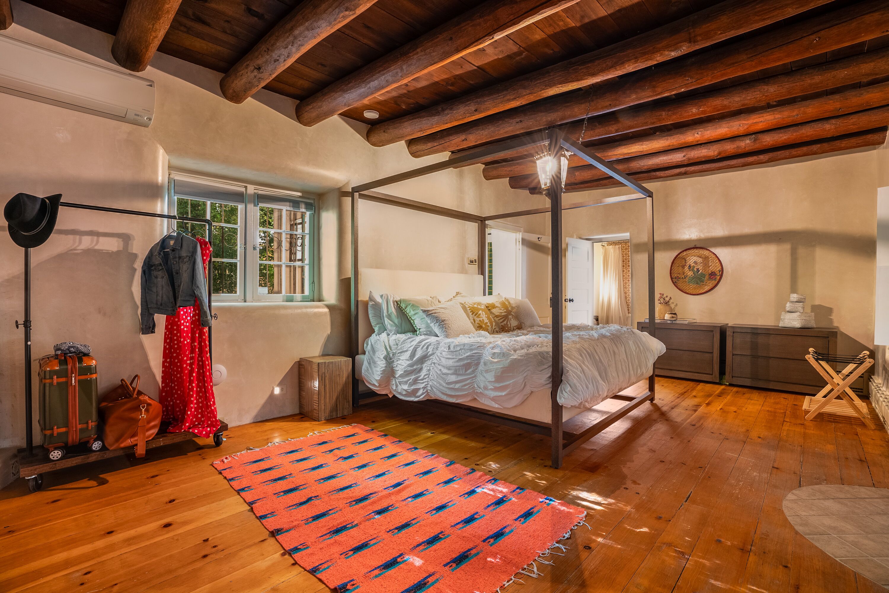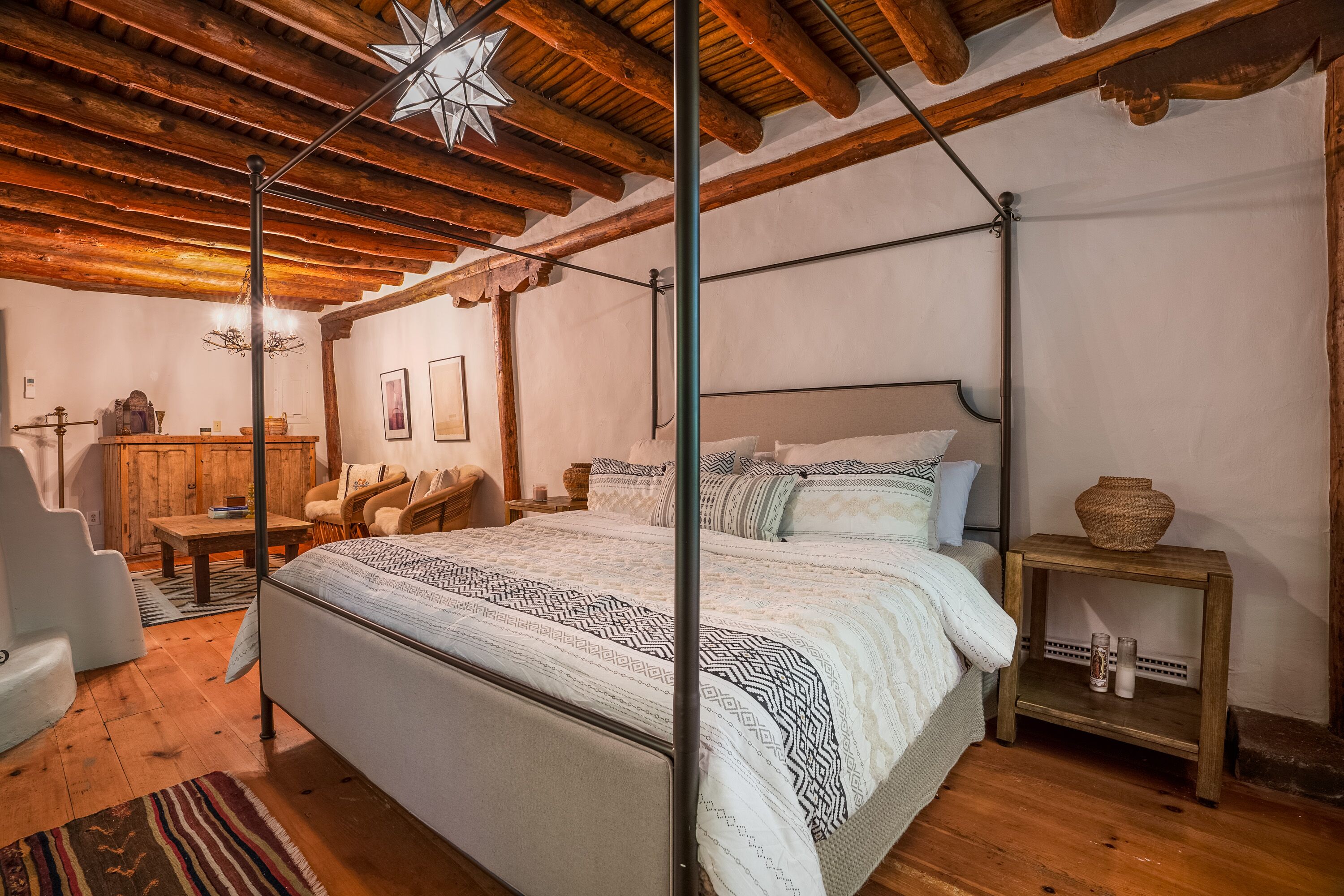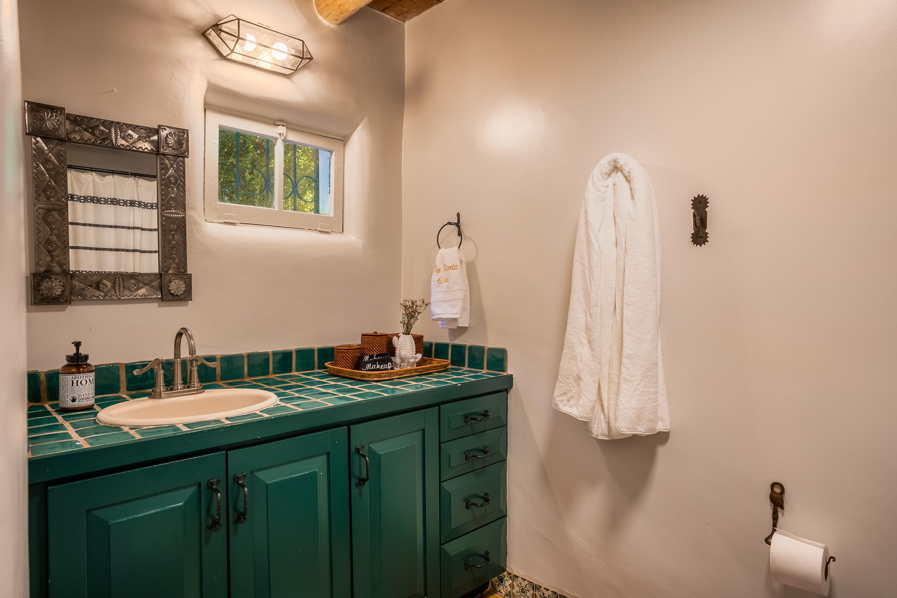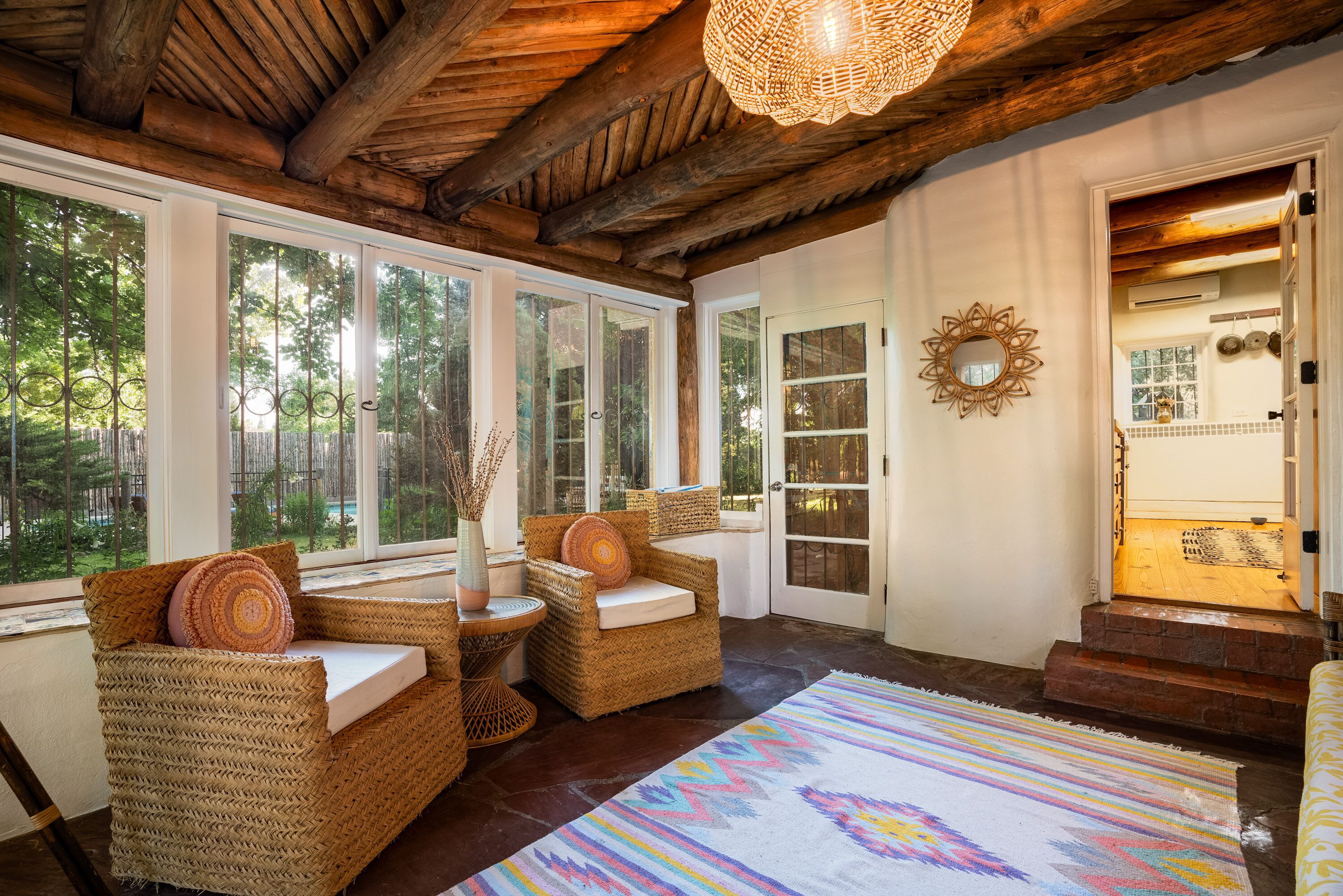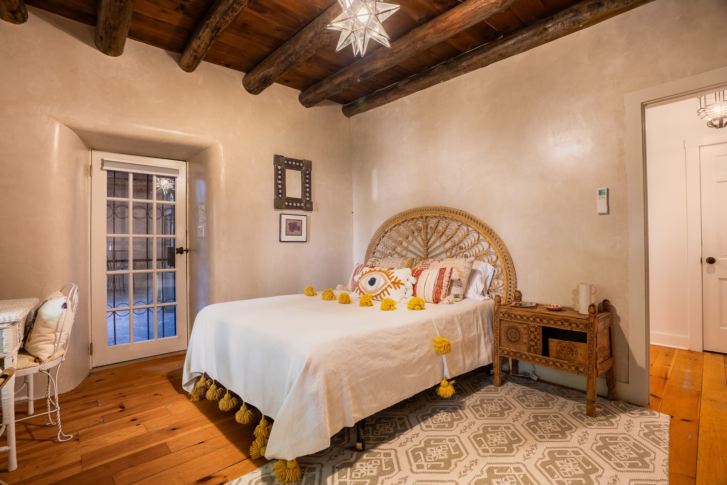 Traditional Hacienda, heated pool upon request, hot tub, huge yard, private *NEW LISTING* Casa Santa Cruz is nothing short of magical. It is nestled in the charming town of Santa Cruz, New Mexico (short & beautiful drive to Santa Fe - 30 min).Perfect for a peaceful getaway as it has 3 bedrooms in the main home and a private casita with a bathroom. Complete with a large dining room, kitchen, living room and courtyard area. But wait, it gets better...there is 3+ acres of outdoor space including a full-size pool and hot tub. Enjoy your meals at the 2 outdoor dining areas!Casa Santa Cruz is situated on 3 acres of lush and mature greenery. The home is an authentic New Mexico style home with vigas. There is a full-size pool and hot tub that seats 4. There are 2 large outdoor dining areas with seating for 9 people. *ABSOLUTELY NO EVENTS OR PARTIES ALLOWED* Pool information:Pool - pool is generally heated to 75 however if you would like the pool heated to 82 degrees, we can heat for a fee of $75/day. Please inform the host of this request (via a VRBO message) at the time of booking so we can ensure the temperature is at your desired temp. The pool is open only between May 15-October 15. *ABSOLUTELY NO EVENTS OR PARTIES ALLOWED*