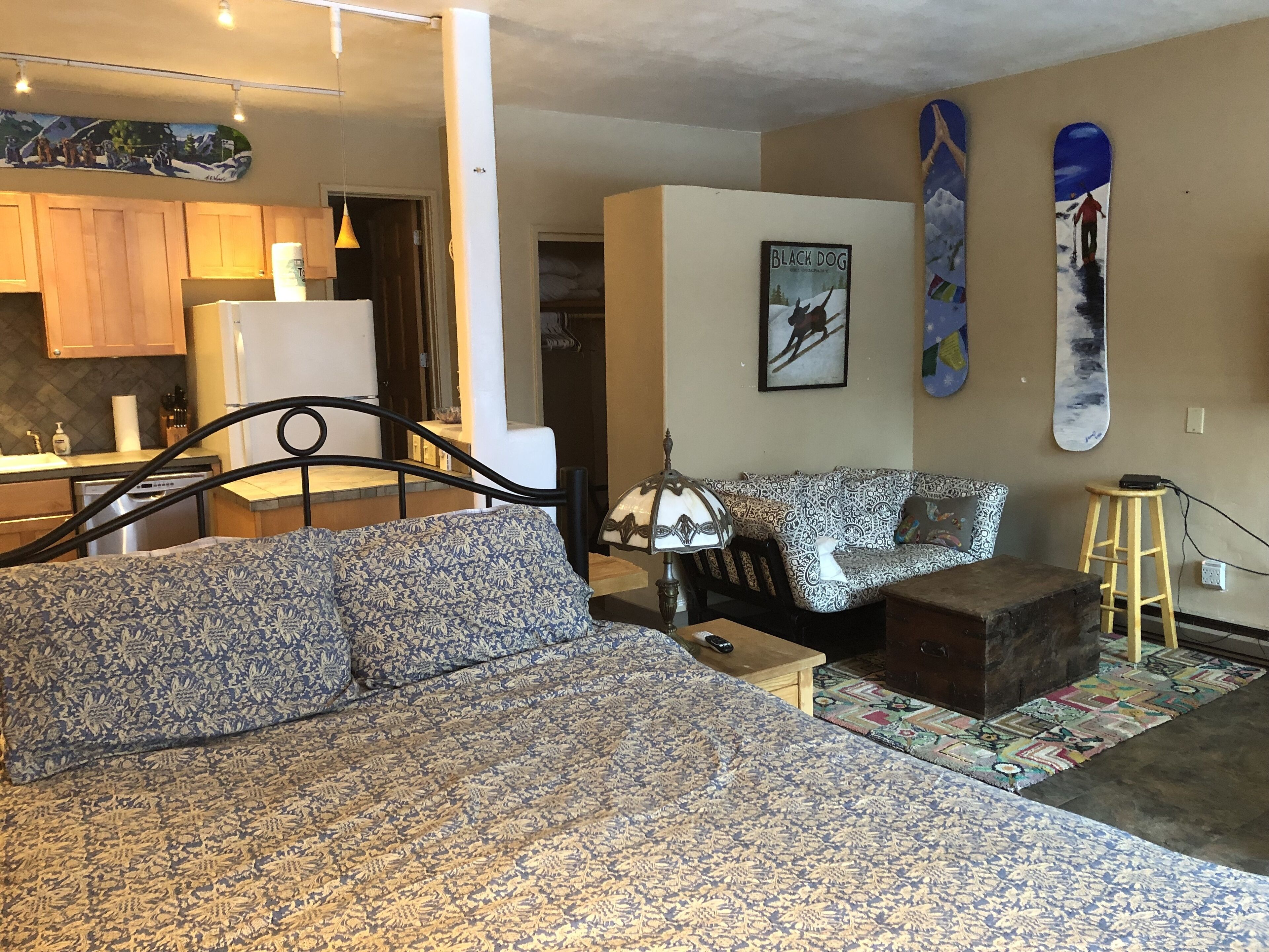 In The Heart Of TSV few minute walk to base area and chairlift, hottub, parking Studio, 1 Bath, Sleeps 5With only a few minute walk to the base area, lifts, restaurants and shops, this condo at Sierra Del Sol offers an unbeatable location. From the large glass front windows and balcony, look over the stream to the Resort Base Area and lifts and soak in the hot tub after skiing.It has a fully equipped kitchen, queen bed, full fold out couch and a twin day sofa bed. The bathroom has a tub/shower combination.Complimentary Wi-Fi, satellite TV and an on-site coin-operated laundry facility are included.Unassigned parking is available for one car in the parking lot. Additional parking is available in the ski valley parking lot.This ground-floor unit is accessed via a short set of steps.There’s no need to get in your car when staying at this conveniently located condo. Walk to a variety of shops and dining establishments right in the Village!Pets considered.