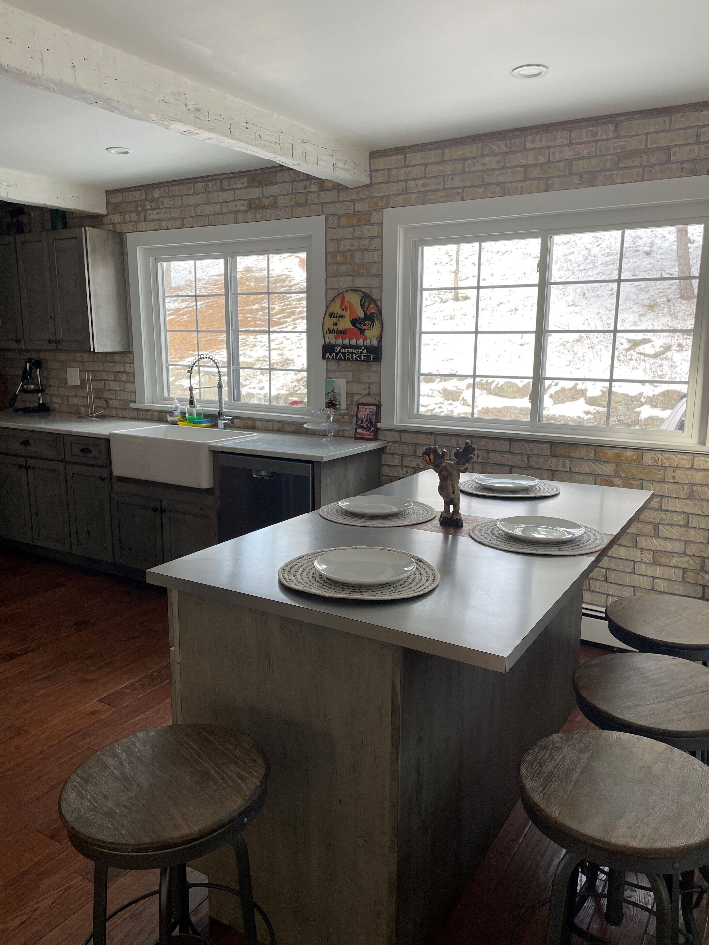 Upstate NY: Private,Newly renovated 3 bed/2bath home close to Hudson+Widham, NY A beautiful,newly renovated sprawling house nestled on 30 acres. Completely private, just you and the nature.Pegged hardwood floors, fireplace, and brick walls give this home a vacation feel. Cozy recently renovated, and newly furnished. Includes: Master bedroom with pond view, queen bed. Guest room with twin bunk beds. Second guest room with a queen bed. Two full bathrooms. Living room with large viewing windows of the pond, wood fireplace, 50' flat-screen TV with cable. Open dining room with a direct view of forest and TV. The table seats up to 12; 10 comfortably. Home features a kitchen with all the modern conveniences to include: dishwasher, microwave, coffee maker, oven, stove, and full-size refrigerator/freezer. All homewares provided. Mudroom with large butler pantry and coat hooks at the entrance. Dryer and washing machine accessible in the basement. Linens provided in all rooms. Outdoors you will find a patio and sidewalk. A fire pit and seating area down by the lawn. Beautiful playground, trails, Corn Hole games, and other fun surprises. Enjoy incredible sunsets!! This home is located in a very safe and family-friendly area... Winham Ski resort is 9 miles away and Hudson about 29 miles away. Many attractions around including Howe Caverns -25 miles away, Fruit Picking, Horse Back Riding, .Museums like Bronk, Olana abound. Sweet towns like Coxsackie, Westerlo, Athens, New Baltimore and Tannersville. Produce stands, nifty old cemeteries, falling down barns and swimming holes abound.Nothing is like the Catskills any time of the year.Property is on well water. A state of the art filtration system is in place in our home, it may not be what you are used to. Tested and safe for drinking. Recommend to bring your own water...