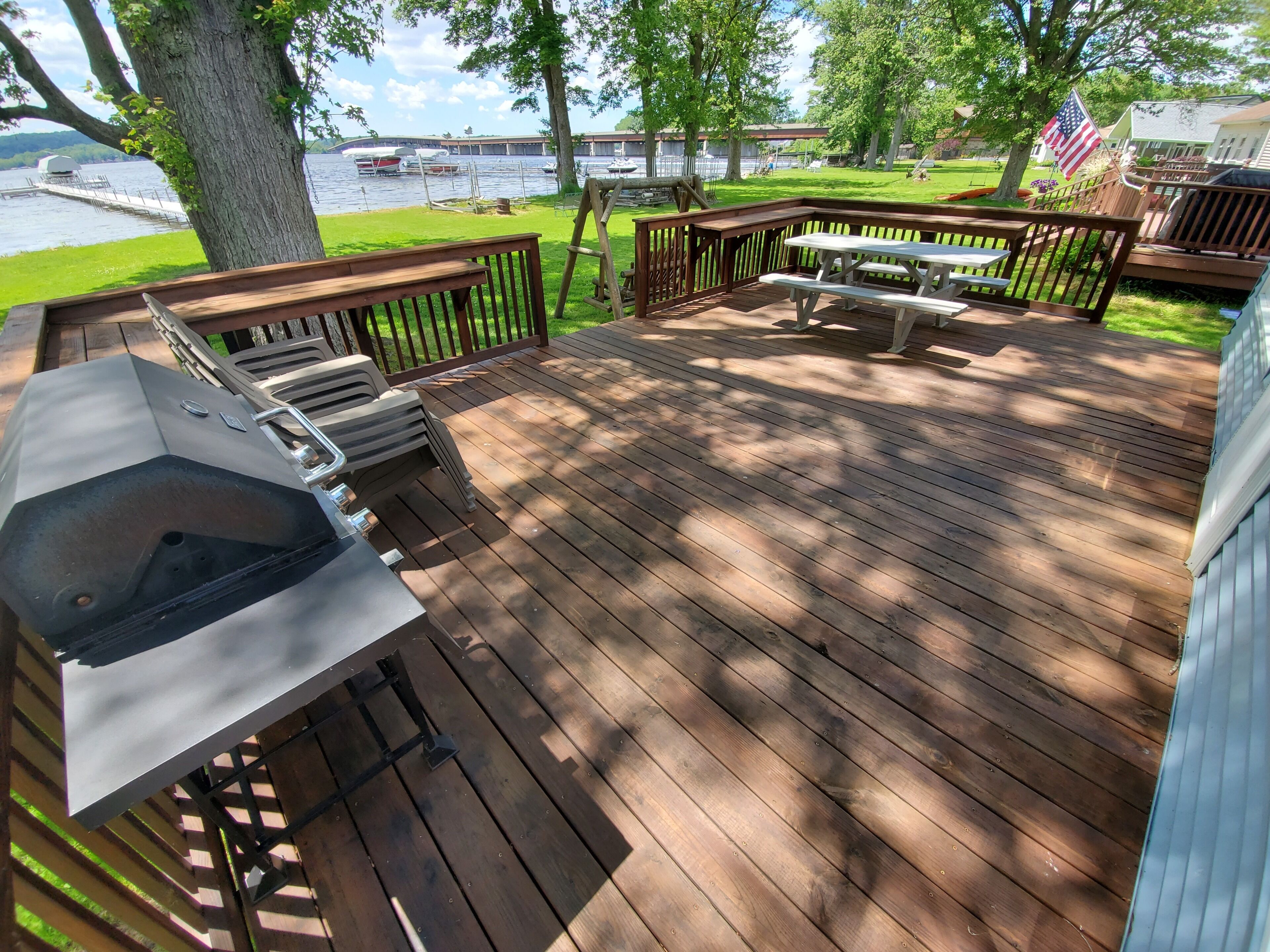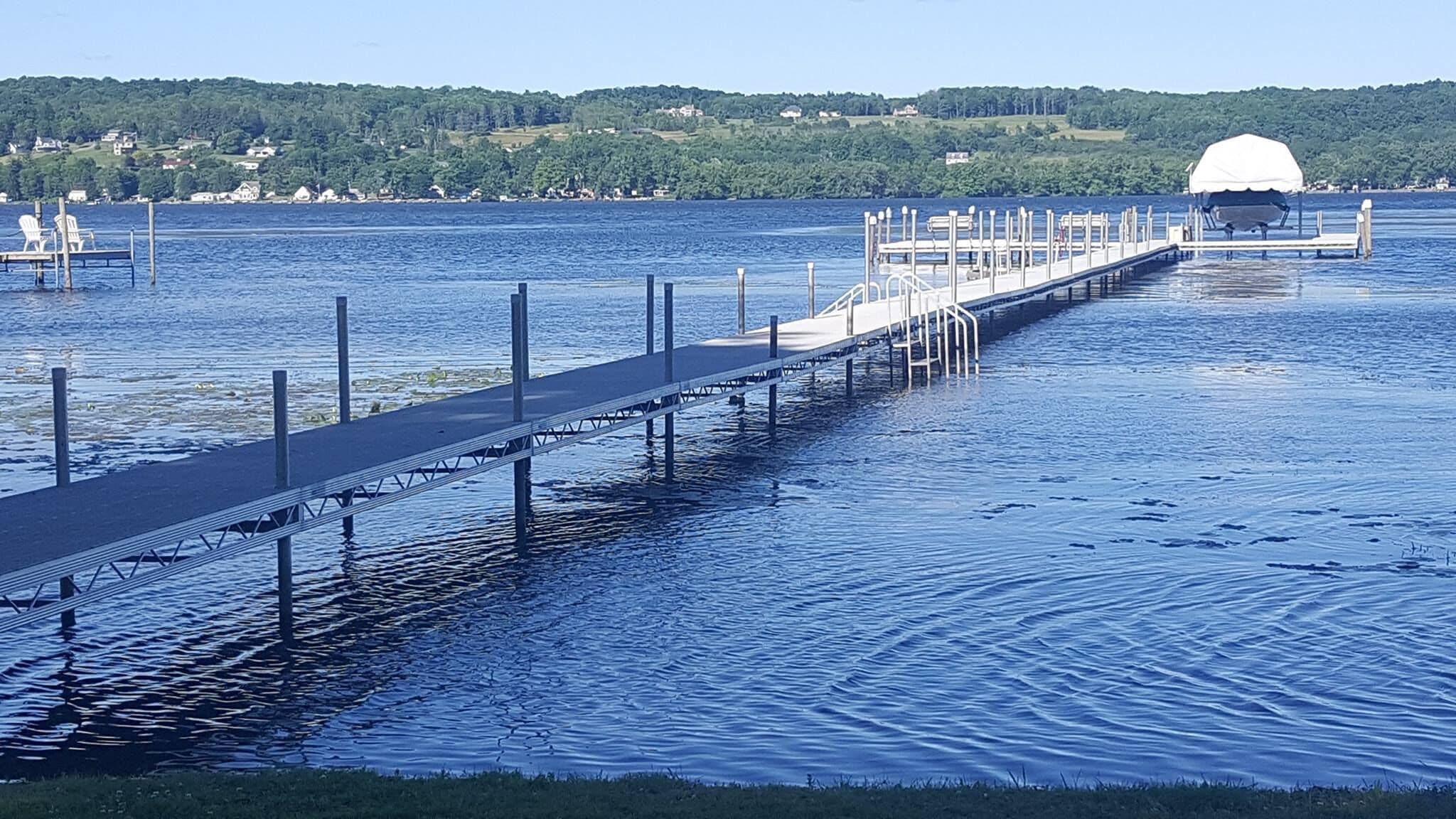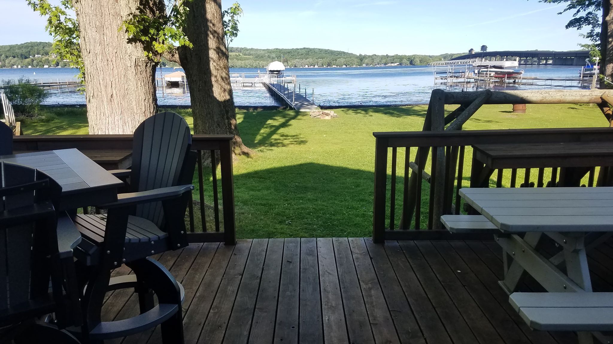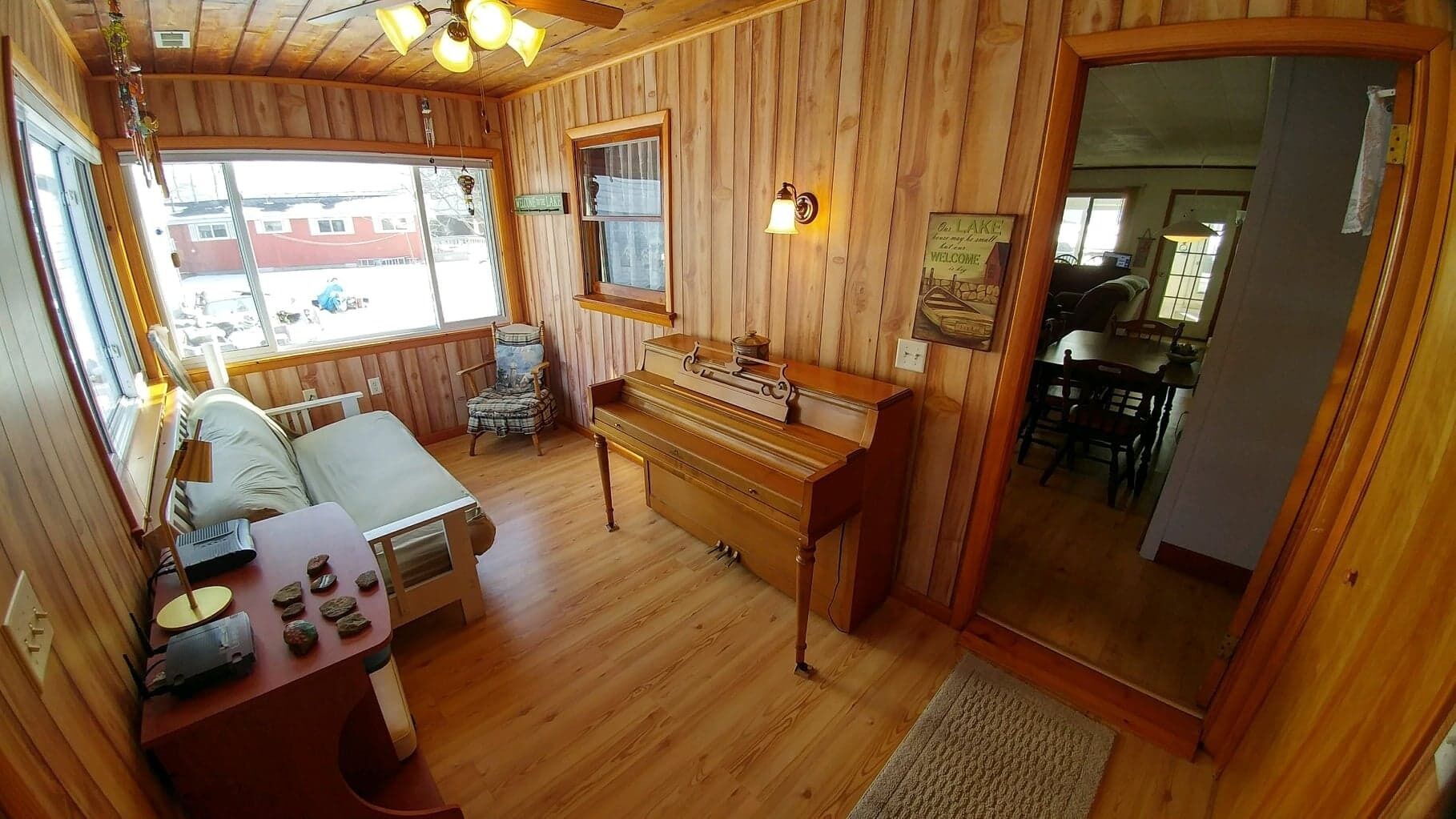 Lakefront Bemus Point Cottage. A/C, 200ft+ Modern Dock. Family, Fishing and FUN! ***NOW BOOKING FOR 2025******5% DISCOUNT FOR RETURNING GUESTS.***This lakefront cottage boasts itself of total relaxation including: Cozy accommodations, Beautiful Sunroom, Large deck, Central A/C, Superb backyard area with a Firepit, WiFi, a Long Dock on the lake & more.This cottage includes 2 bedrooms, 2 baths, kitchen, living room, 2 dining areas, cable tv, washer/dryer, newer sunroom and with no doubt a beautiful view of the lake. Whether you are looking for family time, a romantic getaway, a guys or ladies get out of town or just time by yourself, you have found your new retreat. Less than a mile to town, you will find why Bemus Point is the hottest place to be on Chautauqua Lake. The shops, restaurants, brewery, golf course all with awesome views of the lake. Looking for night life...Enjoy it at The Ellicottville Brewing Company or EBC, The Fish previously known as The Italian Fisherman, Village Casino or The See-Zurh House. Yes, all within a mile away! Several other stores downtown (not in pictures) including misc Quaint shopping storefronts, Pizza shop, Wine store, Gas station, Post Office and more.Looking to head to the Chautauqua Institution? You are in luck....Enjoy the beautiful, easy, 6 mile drive to the institution. Be sure to check out the institutions new amphitheater!So checkout the availability to this full season rental. Relaxing, Boating, Fishing, Jet Skiing, Snowmobiling ALL WELCOME HERE!Parking? You will love it! Easy on property parking for many. Ample space to park your trailer for boats/jet skis/snowmobiles etc.Lastly...Use of dock is included in this rental. But, if you are looking to dock your boat to the dock during your stay, there will be a small additional charge for that amenity. Some have said that this dock may be the nicest "privately owned" dock on the lake. **PLEASE NOTE: Dock stays in lake long as we can leave it, but comes out of lake prepping for winter. Please see the pictures of the cottage and additional local pics of the area....ENJOY!Looking forward to meeting you! Enjoy your stay at Chautauqua Lake! ***NOW BOOKING FOR 2025******5% DISCOUNT FOR RETURNING GUESTS.***