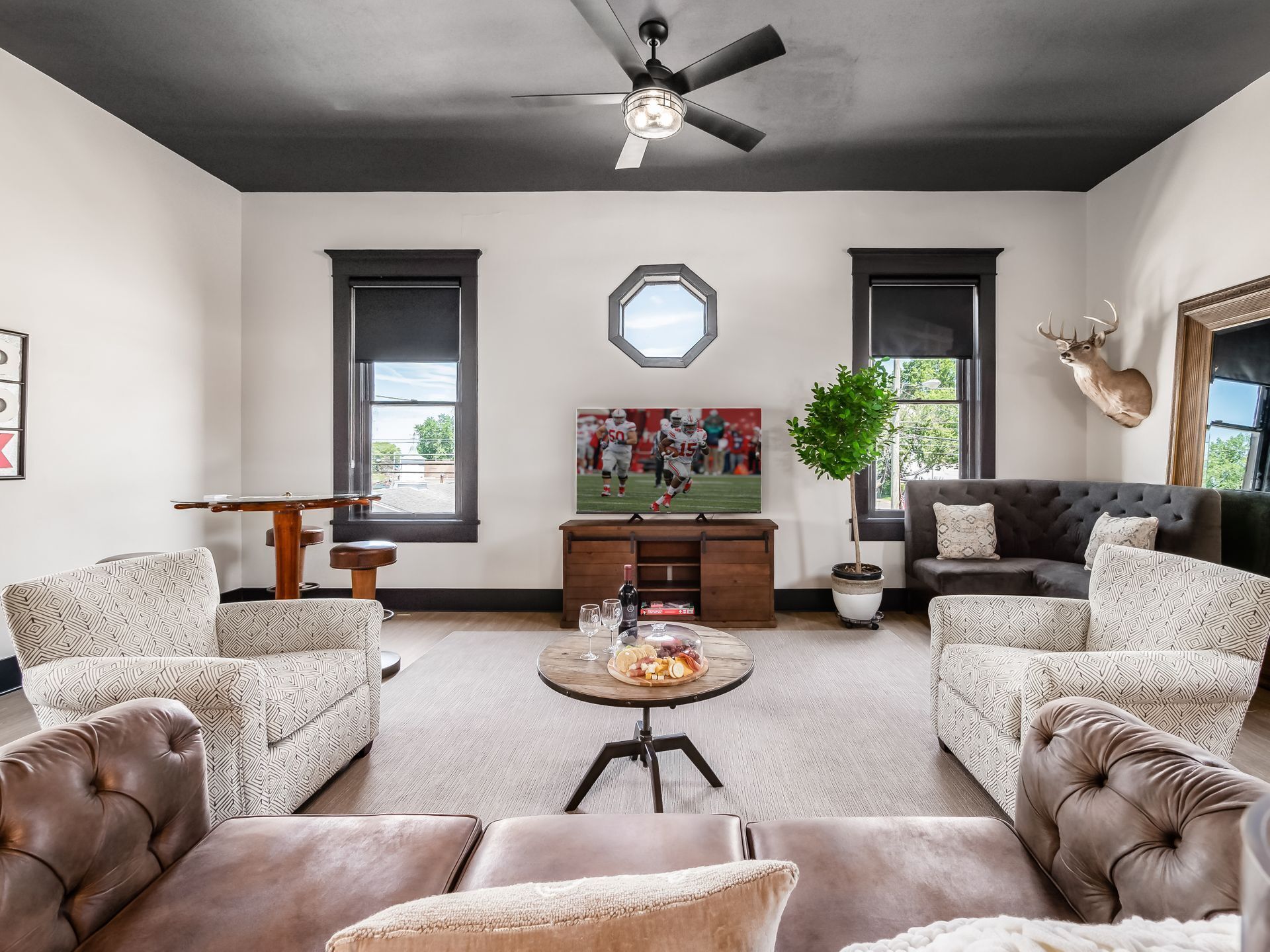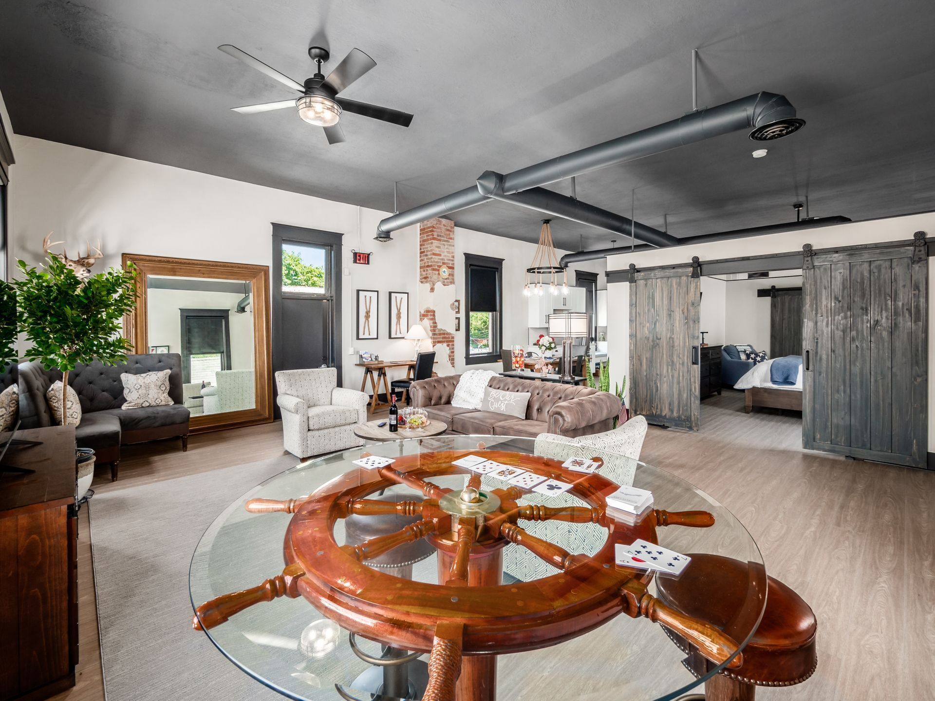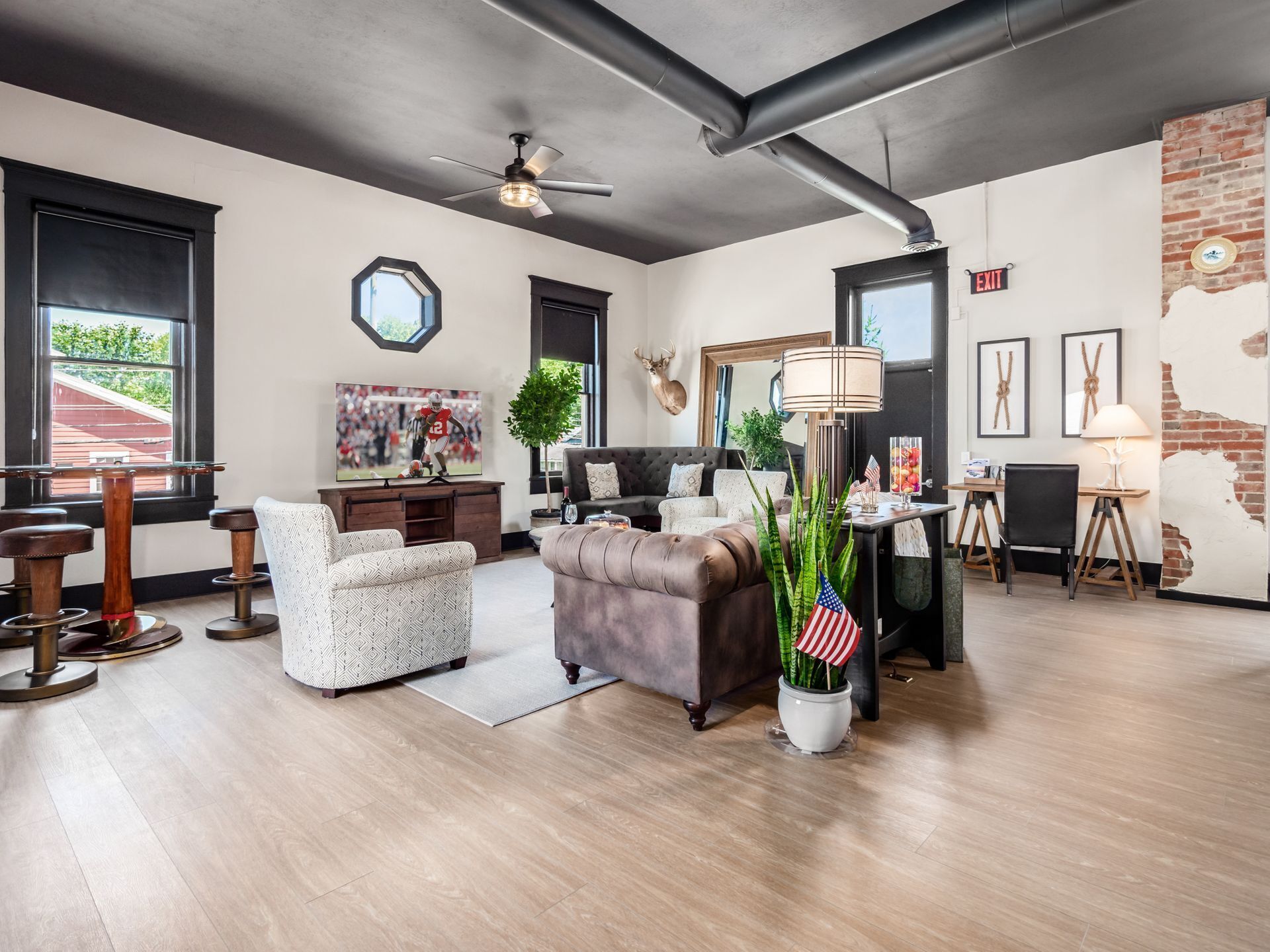 Industrial Style Loft With Access To Buckeye Lake! Buckeye Lake’s premiere vacation rental located in historic downtown Millersport, Ohio. Completely renovated in 2022, this 1-bedroom, 1.5 bath apartment is the perfect place for a weekend getaway at the lake. Seasonally decorated, within walking distance to local dining and shops, easy access to area bike path, and a serene drive to the lake’s best hot spots! The loft boasts a fully equipped kitchen, airy living area, sliding barn doors, luxurious bedroom w/ fine linens, and spa style bathroom!