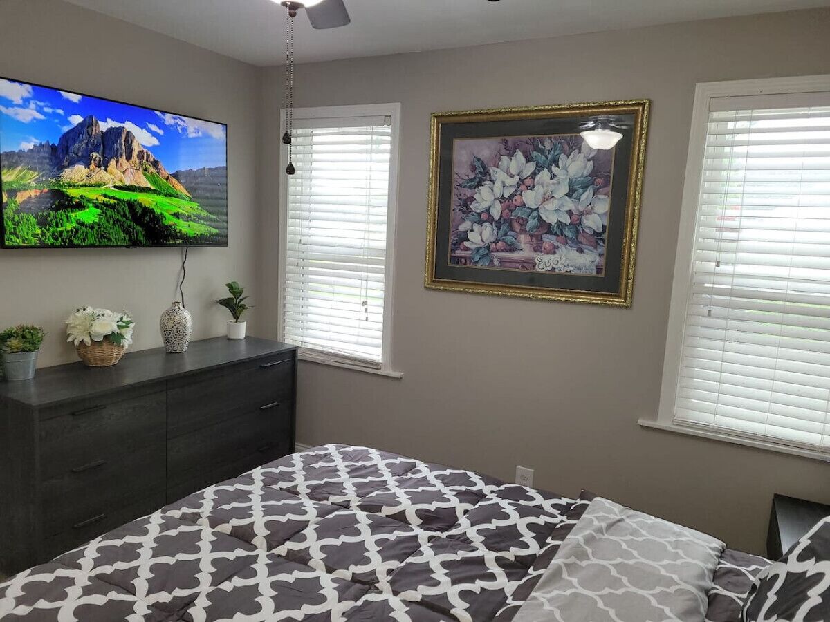 Brand new furniture with parking This charming abode offers the perfect blend of style and comfort that's guaranteed to give you and your loved ones a truly unforgettable getaway experience! Enjoy the peaceful serenity of the surrounding neighbourhood or take a stroll over to explore the plethora of attractions and amenities nearby. Not only is it central to all the best of what the area has to offer, but its spacious interior is also perfect for a family gathering - plenty of room for everyone to kick back and relax after a day of fun and exploration! Whether it's a weekend getaway or a memorable family vacation, this home has everything you need to make your next escape unforgettable.This nice apartment in a big house with no sharing except lawn and parking.No chores but don't leave space untidy Load used dishes in the dishwasherThe minimum charge for smoking-related cleaning charge is $250. No loud noises or parties, No visitors registered guests only. Update your booking if the number of guests needed to be updated. Late checkout fee $50 for 11:30 and $100 for Noon checkout.