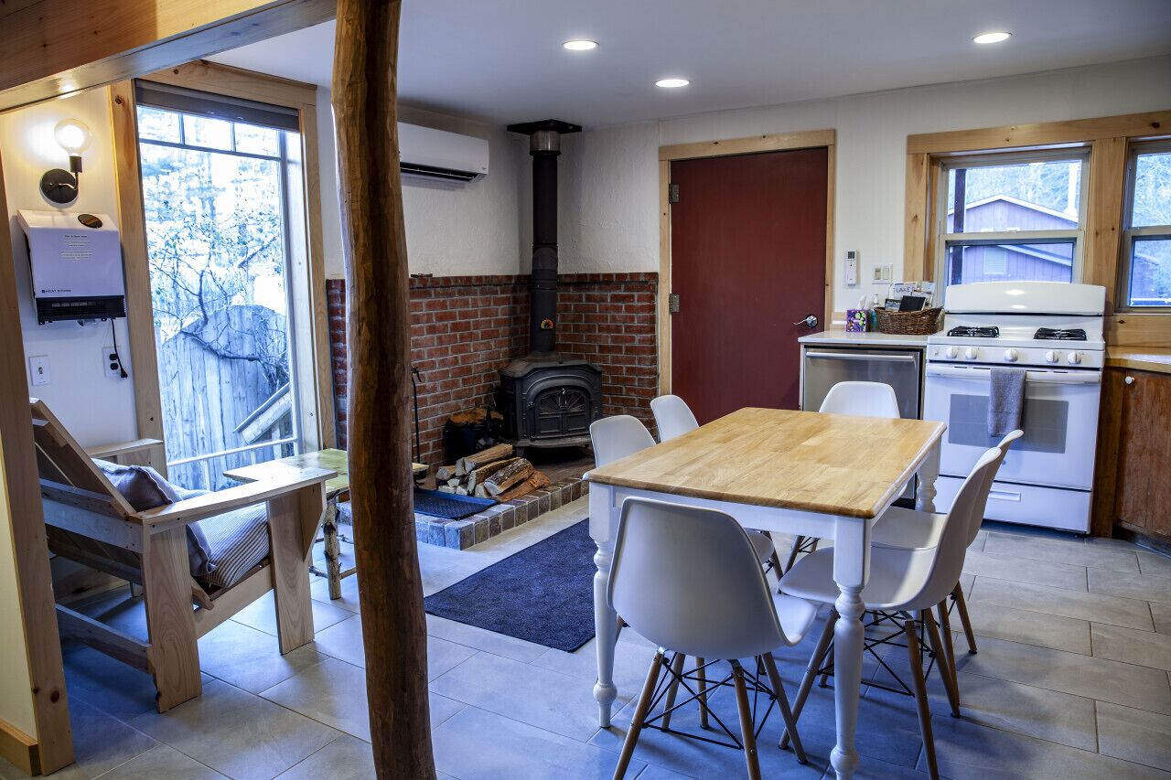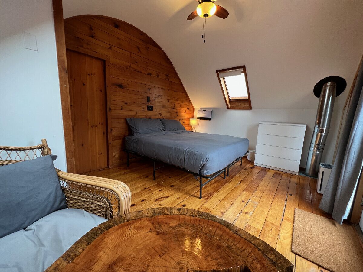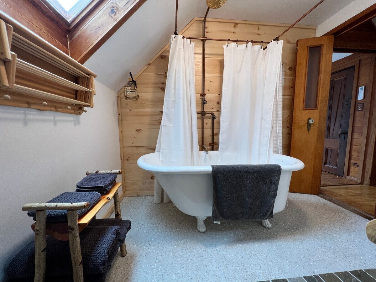 Xplorer II - Keene | Modernized Private Apartment in Town | Centrally Located to Major Trailheads LISTING SUMMARY:The ideal home base for outdoor exploration, right in the middle of Keene, center of the High Peaks. With unrivalled proximity to the mountains, dining and shops are just steps away. Thoughtfully designed, the property's classic Adirondack exterior has been blended with contemporary interior elements. Skylights pierce the rooms, bathing the space in natural light. Embrace the harshness of ADK winters with the comfort of a vintage woodstove; whatever season, modern heat/cooling ensures comfort. SPACE SUMMARY: A fully furnished 2 bedroom / 1 bathroom private apartment perfectly setup whether for a brief escape or an extended stay. This space comes with private parking and entrance. Part of a duplex, the space is located behind/adjacent to our other apartment (Listing: Xplorer I). Xplorer II enjoys a unique living space. Each detail, has been carefully considered for comfort and experience, from the bathroom, featuring an artfully refurbished 1890s cast iron clawfoot tub & rain shower, to the numerous skylights flooding the space with natural light and warmth. Custom furnishings, crafted locally, accent the space and support our talented local artisans. Ideal for couples, small families / groups, or solo travelers, this 700sf space easily accommodates 1-4 guests, and we welcome up to 5 guests for larger groups who don't mind closer quarters. Note: For those seeking a smaller space, we invite you to see our listing "Xplorer I", a one-bedroom apartment located just below Xplorer II; for those seeking a larger space, the option to combine these two apartments into one is available, creating a spacious 3BR, 2BA house (see our listing "Xplore House" for details). BEDROOMS & EXTRA SLEEPING AREAS: Xplorer II has two bedrooms, furnished with king-sized beds. High vaulted ceilings, skylights and unique windows in the bedrooms bring in an abundance of natural light, making the spaces feel open and airy. Both bedrooms feature desk space and blackout shades while the first bedroom connects to a walkout deck. Extra Sleep Accommodations: The master bedroom features a daybed style couch with a twin mattress, serving both as our lounge area and an extra sleeping space, if needed. Extra linens are stored in the guest stock closet for easy access. In total, the space features three beds: two kings and one twin.BATHROOM: Enjoy a candle-lit bath or rain shower in a unique setting. Fully restored by a local artisan to its original beauty, an 1890s vintage cast iron clawfoot tub rests on a bed of stone. A custom fabricated rain shower, locally sourced Adirondack pine, and natural stone complete the interior.LIVING AREA: Instead of a traditional separate living room, the main lounge area sits upstairs within our oversized master bedroom; here you'll find a daybed style couch with a coffee table and TV, right in front of a large set of windows. There is a 2nd small lounge area with a custom made two person Adirondack loveseat situated in front of the woodstove in the kitchen / dining area on the lower level. For entertainment, we have a TV equipped with a Chromecast device, allowing you to stream your preferred video service. High-speed, fiber optic Wi-Fi ensures you can take video calls or stream movies easily.KITCHEN / DINING: Designed with rustic & modern elements, the fully furnished kitchen / dining area offers everything you need for an enjoyable cooking experience, whether staying for a few days or a few months. WORKSPACE: An efficient workspace in the master bedroom comes complete with a 27" computer monitor screen, allowing for comfortable remote work. The second bedroom has a table and reading chair for quiet reading or writing sessions. Fiber optic high-speed Wi-Fi ensures connectivity for working, streaming, and video calls. EXTERIOR SPACE: Just off the kitchen is the lower level porch with a gas grill outside completing the cooking experience. An upper level deck for lounging is accessible from both the lower porch and the upstairs bedroom. GROUNDS & SURROUNDINGS: The space is located right in the heart of town. We have private parking with enough room to comfortably fit two vehicles, (or even three smaller ones if needed). Being right in town, the lot is small and we don't have a typical "backyard", but with the beautiful mountains all around us, who needs one? At Xplorer II, nature is your backyard.We're just off the main strip in town, which means local dining and shopping options are just a short walk away - You can walk to 46 Restaurant, Cedar Run Market, East Branch Organics, as well as our awesome neighbor Dartbrook South for artfully curated Adirondack goods & products. There’s even a public EV charger just a 2 minute walk from the house. Enjoy the convenience of town living just steps away.NEIGHBORHOOD: The space is located in Keene, NY. Known as the 'Home of the High Peaks', Keene is a small, quiet, picturesque town, coveted for its central proximity amidst the mountains and major trailheads. To name just a few, trailheads including the ADK Loj/Heart Lake, The Garden, and the AuSable Club are just a short drive away, making it an excellent base for experiencing nature and outdoor exploration. Come winter, the slopes at Whiteface Ski Resort are a just a 17 min drive away. In addition to natural attractions, Keene and Keene Valley have several restaurants, unique shops, and town amenities. For those seeking more vibrancy, Lake Placid and it's nightlife, shopping and dining options are just a short drive way (18min). - THINGS TO NOTE & SPECIAL FEATURES - THINGS TO NOTE: 1. DRIVEWAY/PARKING: The driveway/parking at Xplorer II is slightly narrow, just something to be mindful of if you have a commercial sized vehicle. We can fit two mid to large vehicles or three small ones if necessary.2. SOUND: Our property is conveniently situated just off the main strip in Keene, which means you 
