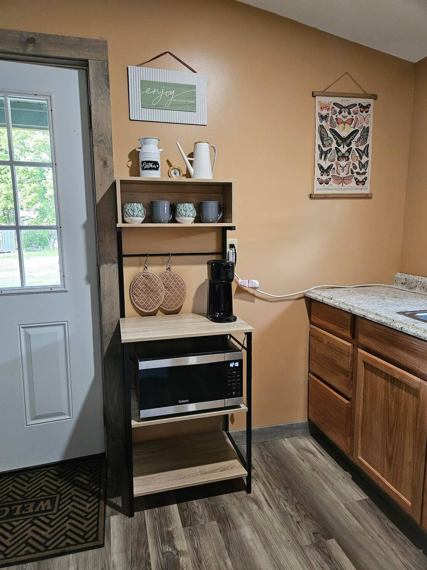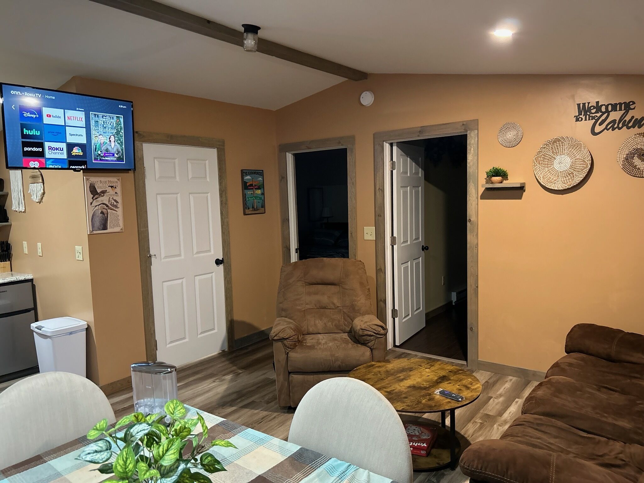 Cozy ADK Cabin in Tupper Lake - New Build Let this cabin be your base camp for all the adventures the Adirondacks have to offer. You can keep it simple at this peaceful and centrally-located 2 Bedroom, 1 Bathroom cabin that has a sweet 4 ft. x 20 ft. porch to sit and enjoy the backyard creek views. The backyard offers a variety of birds to watch by day over the creek wetlands and offers dark skies for star gazing at night. We have an economically stocked kitchenette, as well as a relaxing living room with smart t.v. and comfortable dining space.The cabin is located in a friendly neighborhood on a private street that provides a calm atmosphere with dark skies. You are set back but still in the middle of what the town has to offer.The cabin is situated in walking distance of many local attractions such as the quaint Main Street Restaurant, the award-winning Raquette River Brewery, along with two other bar/restaurants and two convenience store/gas stations. Our local "Little Wolf Beach" is just a short 3 minute drive. The beginning of the Rail-Trail/Junction Depot Walking Trail and Scenic Railroad Station are a short walk just around the corner. The local grocery and general stores are all within a 5 minute drive. When it comes to boating/paddling and mountain climbing, there are many different boat launch sites and mountains to climb.Each bedroom has a queen size bed that have 4 pillows each, an alarm clock that wirelessly charges your phone along with 2 lamps. The kitchenette is economically stocked with cutlery, plates, bowls, cups, various cooking utensils, BBQ utensils, a potato peeler, can opener, pizza cutter, kitchen scissors, mixing bowls, cutting boards, dish drying rack, hand towels, dish clothes, pot holders, a mini fridge/freezer combo, microwave/air fryer combo, keurig style coffee maker, toaster, garbage bags, dish soap, hand soap. The bathroom has a stand up shower that has shampoo, conditioner and body wash, a large medicine cabinet and is economically stocked with bath towels, wash clothes, hand towels, toilet paper, a bath mat, and hand soap. The living room has a couch that comfortably sits 3 adults, a 1 person recliner and a round coffee table. The dining room has a large table with 4 chairs.