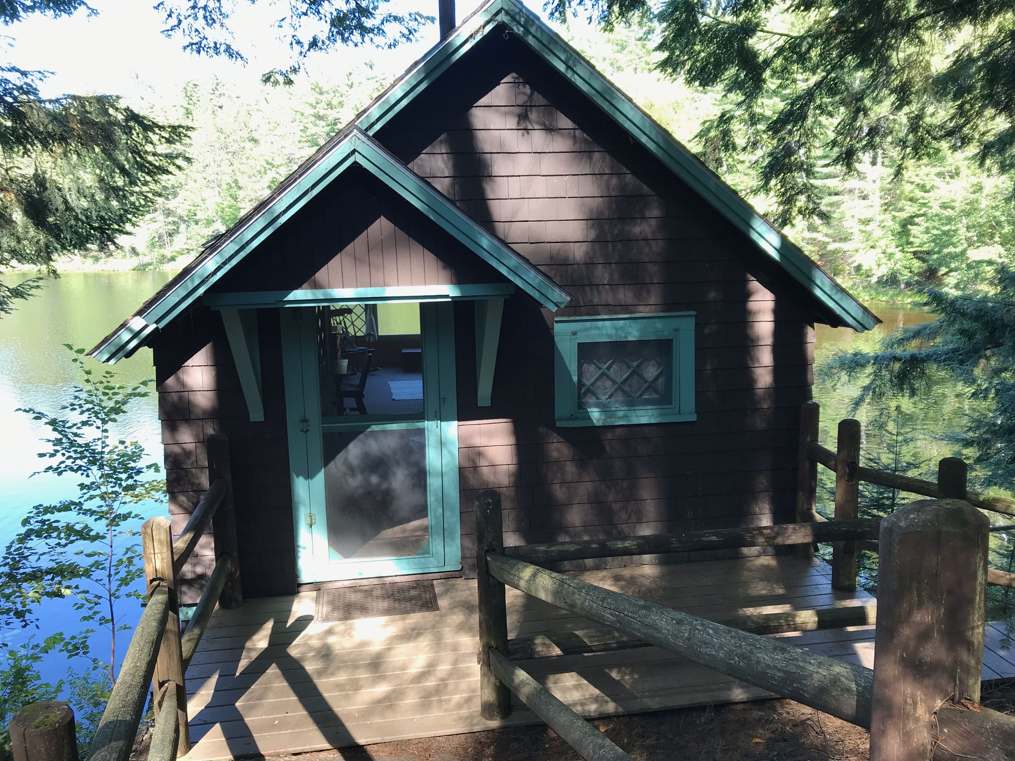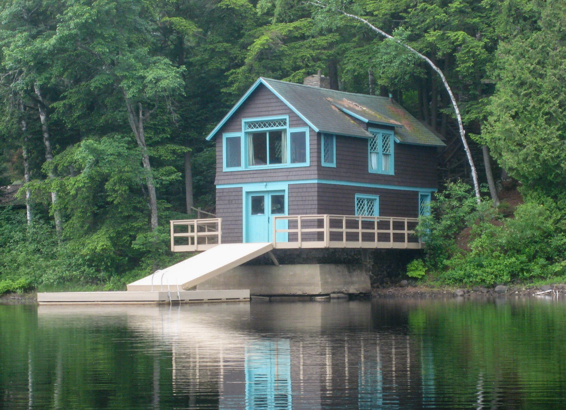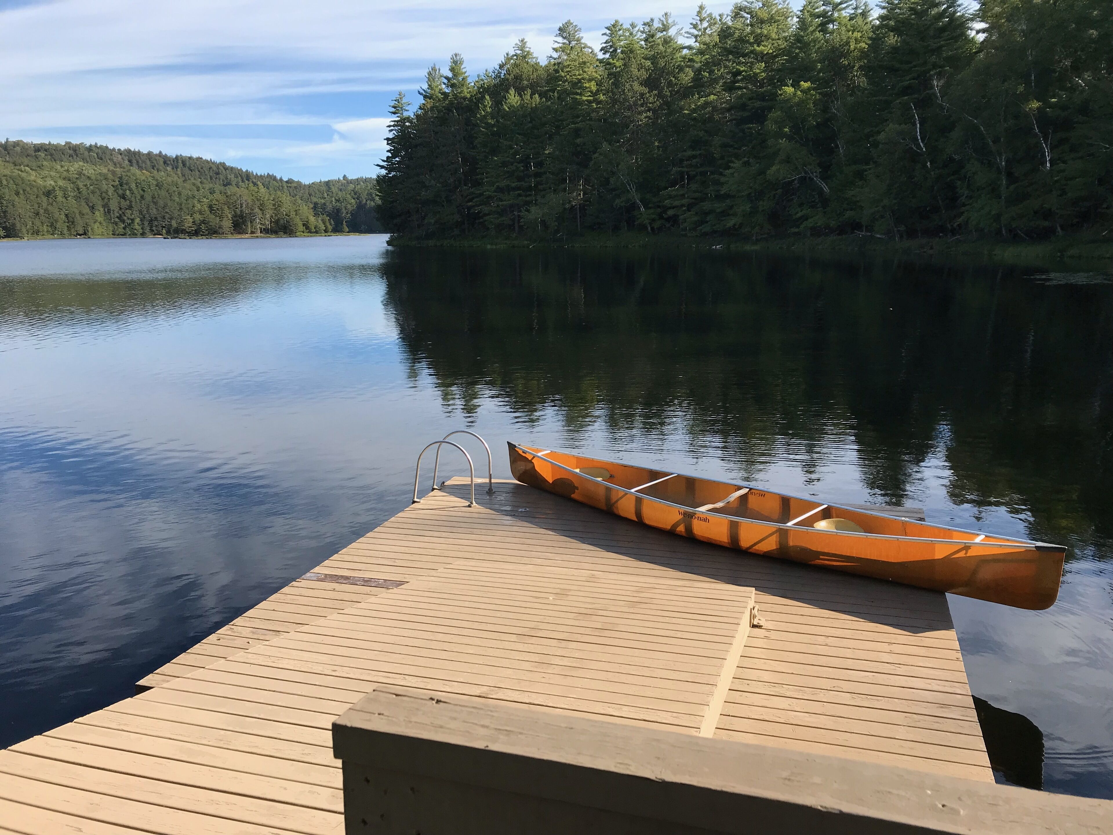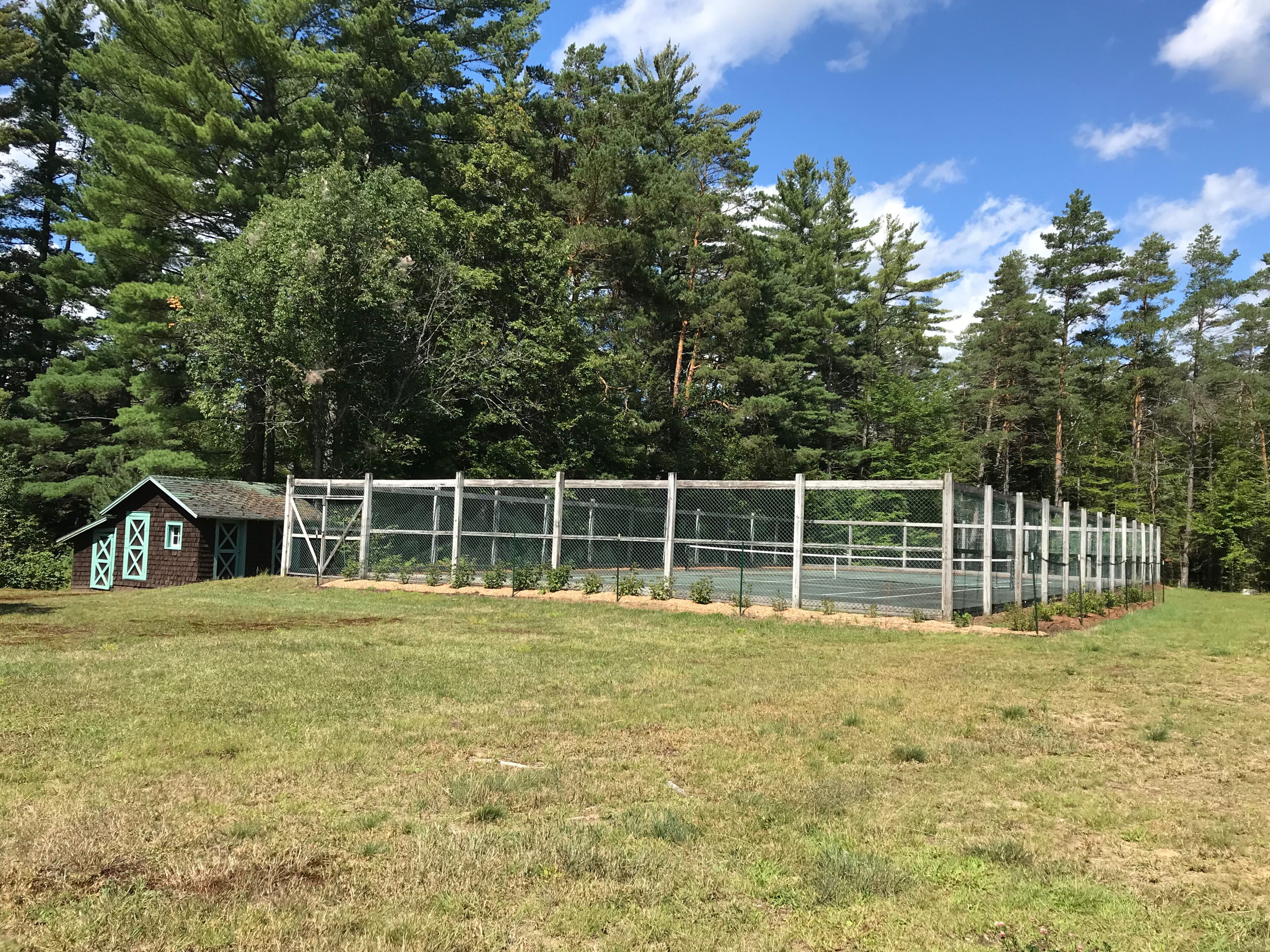 Stony Creek Camp near Saranac Lake Get away from it all in this quiet, secluded lakefront property in the heart of the Adirondacks. Wake up in a vintage boathouse right on the water. Paddle along ancient Native American routes through Stony Creek Ponds, with access to the Raquette River. Enjoy a game of tennis on our private court or a round of croquet on the spacious lawn. Relax on the dock and swim in the pristine lake to cool off. At the end of the day, enjoy a refreshments seated in Adirondack chairs around a crackling fire and gaze at a gorgeous sunset. This setting offers an ultimate private waterfront getaway with something to appeal to everyone in your group.Stony Creek Camp is situated on a 50-acre property at the end of a private road, where wildlife abounds. This spacious rental offer a total of 6 bedrooms, 4 baths and plenty of privacy for up to 14 guests. The Village of Saranac Lake is 20 minutes away and the Village of Lake Placid is only 35 minutes away.Main House Features:Bedroom 1: King (sleeps 2)Bedroom 2: Twin beds (sleeps 2)Queen Sleeper Sofa in living room (sleeps 2) 1 Full Bath: Spacious shower, double sinks.The Main House is the gathering area, featuring a cozy open living area that holds 3 sofas (one is a futon sleeper), additional seating, 50” TV, and sliding glass doors that present panoramic views. The dining area is a few steps up from the living room, with a table large enough to seat all. The kitchen offers plenty of space for preparing meals with 2 electric ovens, a heat induction cooktop, and an island. The master bedroom has a king bed, bureau and closet; the 2nd bedroom holds 2 twin beds, bureau and closet, and the full bath has a shower and double sinks.Boathouse Features:Bedroom: King (sleeps 2)Full Bath: Shower/tub.Lower Boathouse: 2 Canoes, 2 Kayaks, 3 Stand-up Paddle Boards, Life Preservers and Water ToysThe 2 story Boathouse, built in 1914, is accessed by a lit pathway from the Main House down several steps with handrail. The upper floor overlooks the lake with an open living area that holds a King bed, bureau, closet, desk with chair, and a TV with a DVD player with several DVDs. The bathroom has an antique claw foot tub which has a shower conversion.Several boats, including 2 canoes, 2 kayaks, and 3 stand-up paddle boards, are stored in the lower level of the Boathouse, along with life preservers of every size, water toys, and deck chairs. There is a large swimming and sunbathing dock attached to the Boathouse by a ramp. A small beach is nearby to launch small boats, and for young children to splash in the lake.The depth off the front dock is probably about 8 to 10 feet, so fine for diving. The back (towards the boathouse) is only about 4’. There are no weeds.Maximum depth of the pond is about 40 feetCottage Features:Bedroom 1: Twin beds (sleeps 2)Bedroom 2: Twin beds (sleeps 2)Bedroom 3: Queen bed (sleeps 2)Bathroom 1 (near bedrooms 1 and 2): Tub/showerBathroom 2 (near bedroom 3): Small showerThe 1920s Cottage is a short walk up the hill, or may be directly accessed by continuing on the driveway to the upper area of the property. It has 2 bedrooms with 2 twin beds each and a bedroom with a queen bed. There are 2 bathrooms (one with a small shower and the other with a tub/shower), and a full kitchen. Limited WiFi is available there, but the small TV uses a satellite dish for reception.A large porch along the front of the cottage is the ideal gathering area.A full-sized tennis court and a large playing field are also found on the upper level of the property.