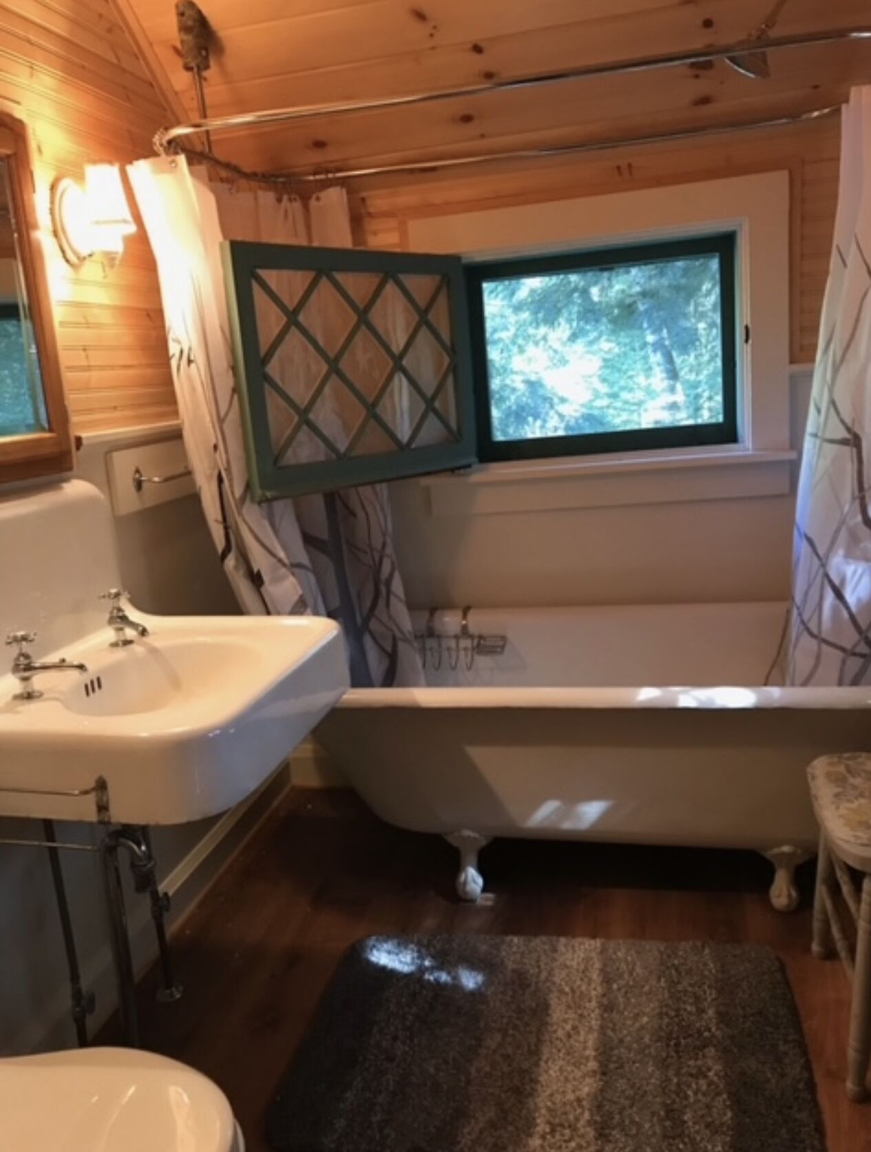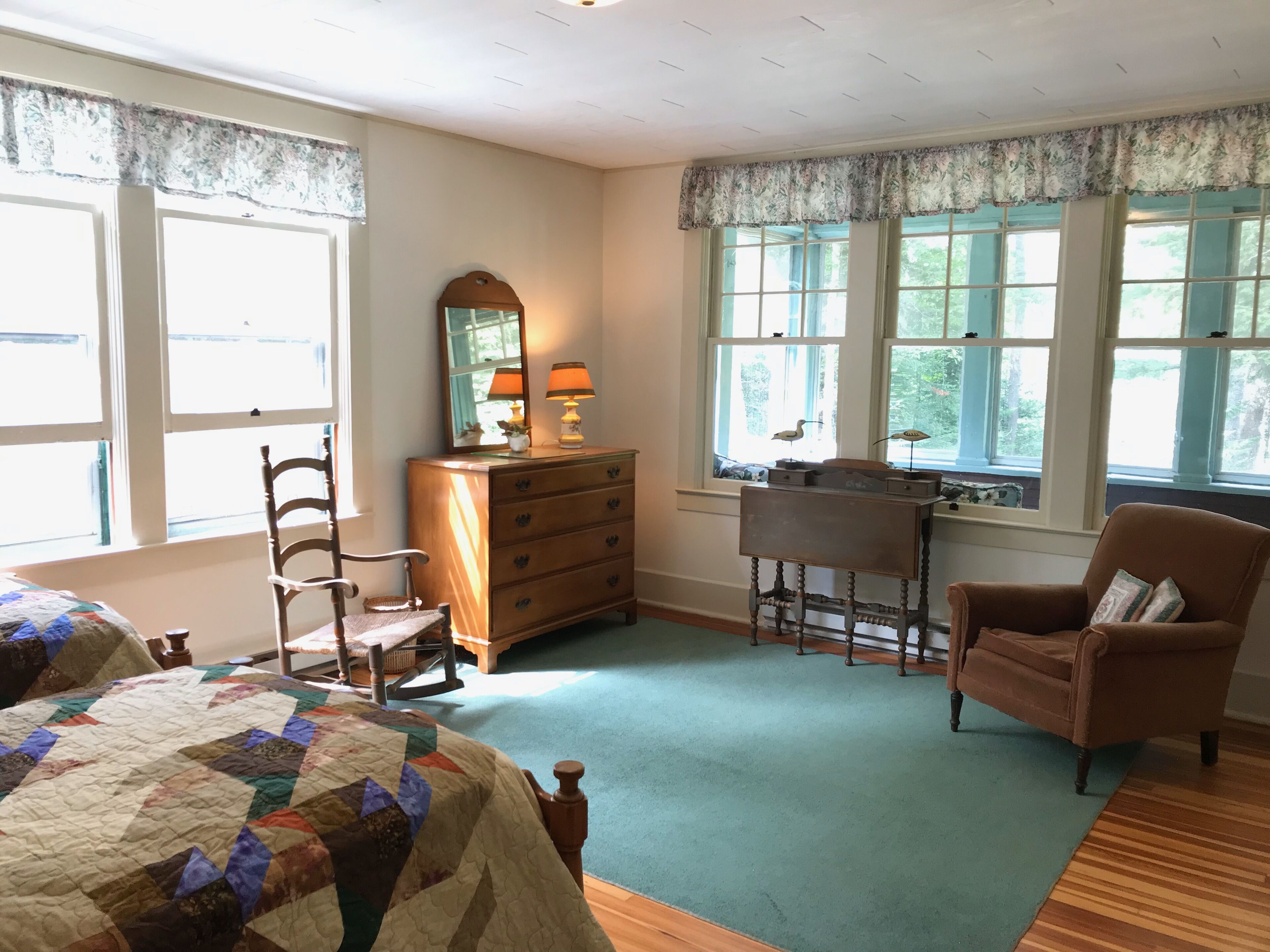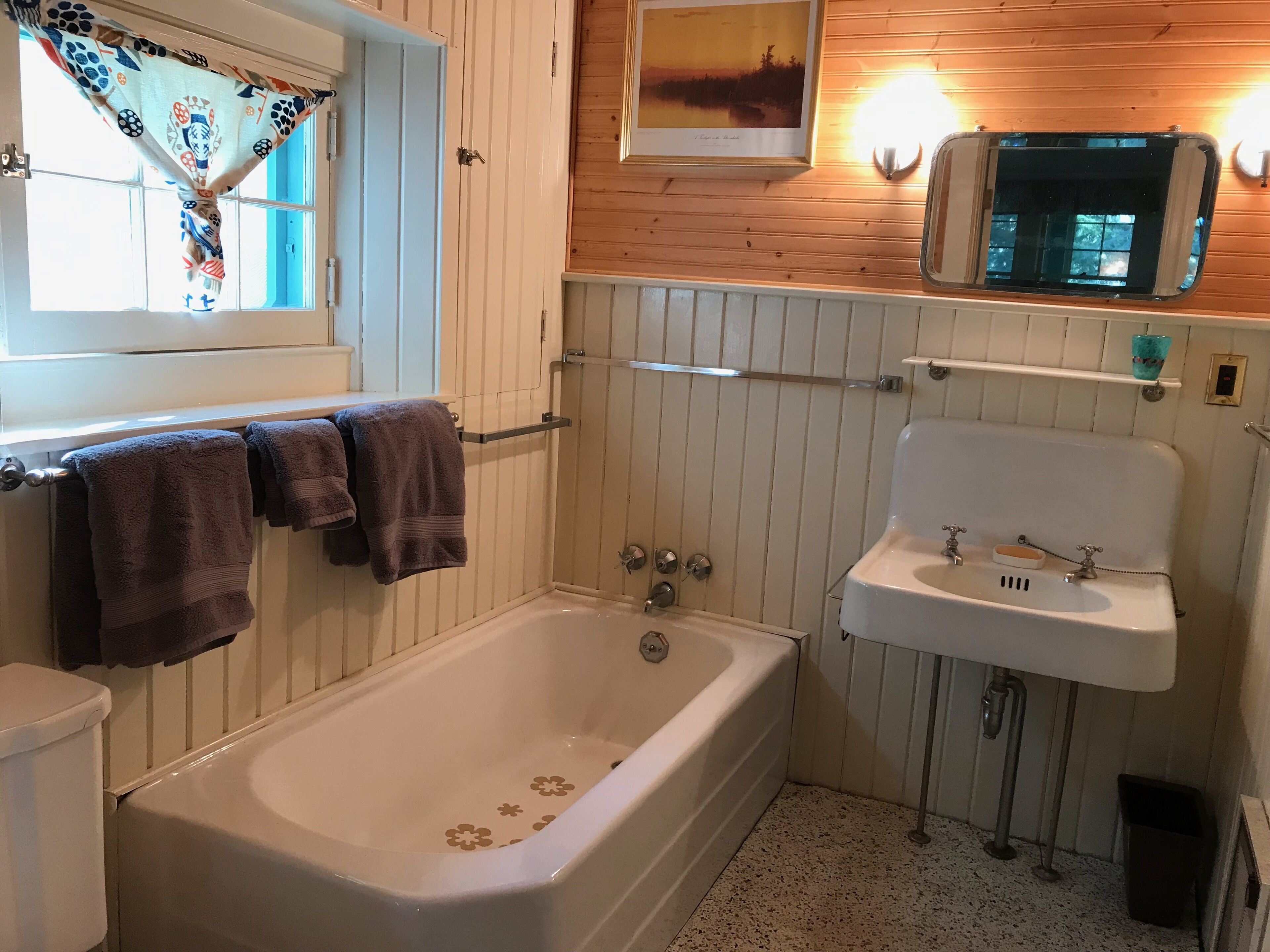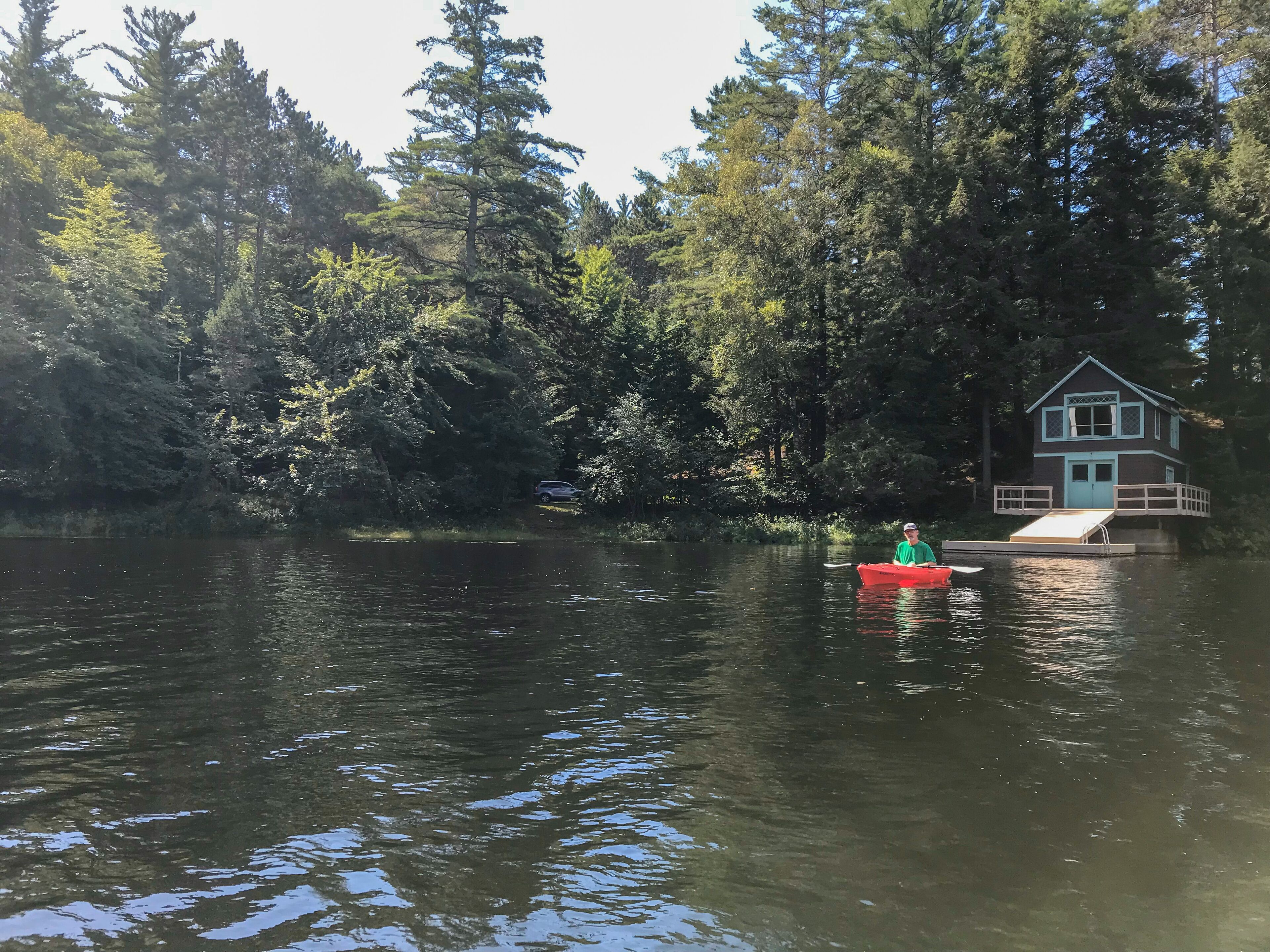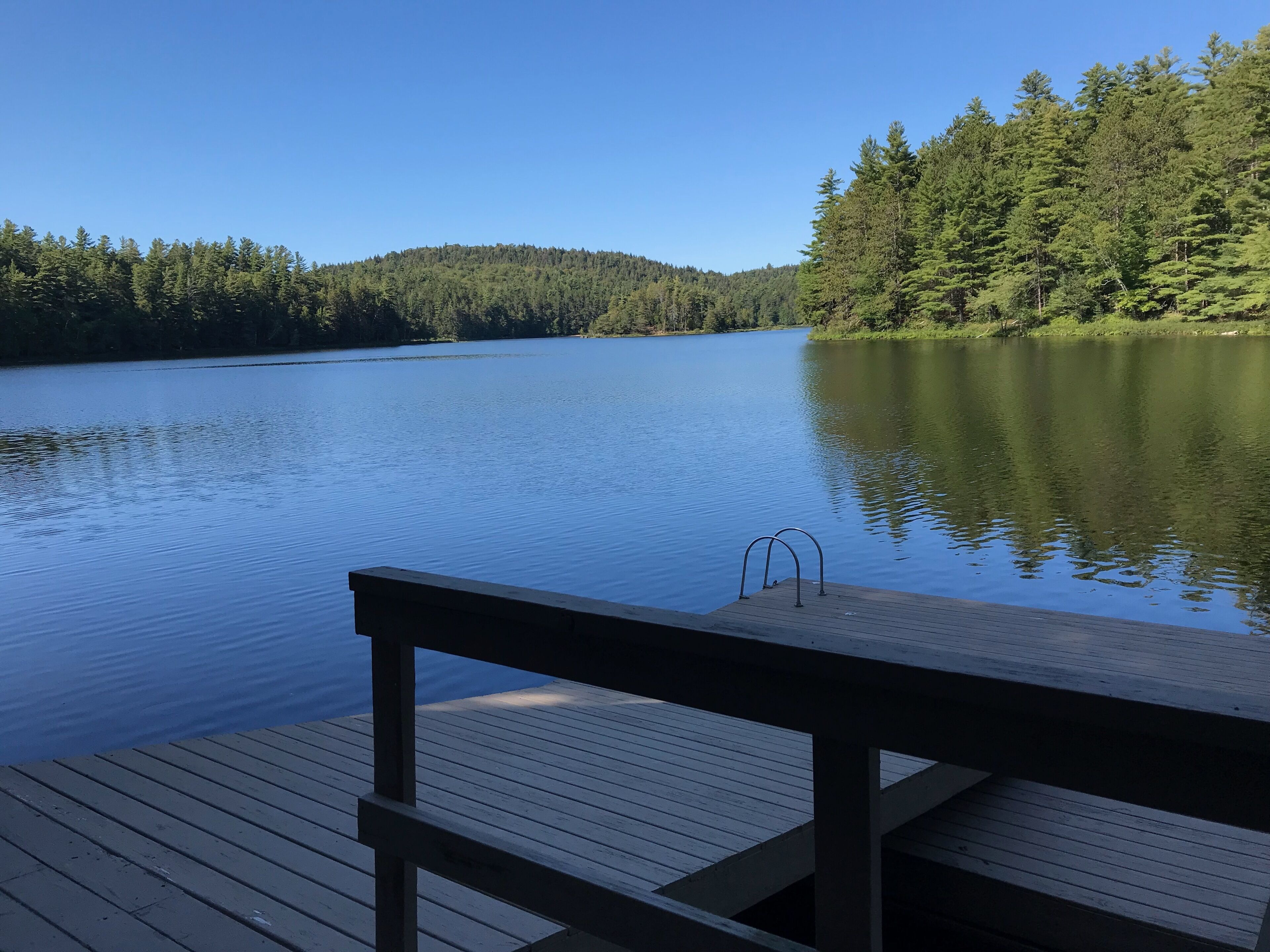 Stony Creek Camp near Saranac Lake Get away from it all in this quiet, secluded lakefront property in the heart of the Adirondacks. Wake up in a vintage boathouse right on the water. Paddle along ancient Native American routes through Stony Creek Ponds, with access to the Raquette River. Enjoy a game of tennis on our private court or a round of croquet on the spacious lawn. Relax on the dock and swim in the pristine lake to cool off. At the end of the day, enjoy a refreshments seated in Adirondack chairs around a crackling fire and gaze at a gorgeous sunset. This setting offers an ultimate private waterfront getaway with something to appeal to everyone in your group.Stony Creek Camp is situated on a 50-acre property at the end of a private road, where wildlife abounds. This spacious rental offer a total of 6 bedrooms, 4 baths and plenty of privacy for up to 14 guests. The Village of Saranac Lake is 20 minutes away and the Village of Lake Placid is only 35 minutes away.Main House Features:Bedroom 1: King (sleeps 2)Bedroom 2: Twin beds (sleeps 2)Queen Sleeper Sofa in living room (sleeps 2) 1 Full Bath: Spacious shower, double sinks.The Main House is the gathering area, featuring a cozy open living area that holds 3 sofas (one is a futon sleeper), additional seating, 50” TV, and sliding glass doors that present panoramic views. The dining area is a few steps up from the living room, with a table large enough to seat all. The kitchen offers plenty of space for preparing meals with 2 electric ovens, a heat induction cooktop, and an island. The master bedroom has a king bed, bureau and closet; the 2nd bedroom holds 2 twin beds, bureau and closet, and the full bath has a shower and double sinks.Boathouse Features:Bedroom: King (sleeps 2)Full Bath: Shower/tub.Lower Boathouse: 2 Canoes, 2 Kayaks, 3 Stand-up Paddle Boards, Life Preservers and Water ToysThe 2 story Boathouse, built in 1914, is accessed by a lit pathway from the Main House down several steps with handrail. The upper floor overlooks the lake with an open living area that holds a King bed, bureau, closet, desk with chair, and a TV with a DVD player with several DVDs. The bathroom has an antique claw foot tub which has a shower conversion.Several boats, including 2 canoes, 2 kayaks, and 3 stand-up paddle boards, are stored in the lower level of the Boathouse, along with life preservers of every size, water toys, and deck chairs. There is a large swimming and sunbathing dock attached to the Boathouse by a ramp. A small beach is nearby to launch small boats, and for young children to splash in the lake.The depth off the front dock is probably about 8 to 10 feet, so fine for diving. The back (towards the boathouse) is only about 4’. There are no weeds.Maximum depth of the pond is about 40 feetCottage Features:Bedroom 1: Twin beds (sleeps 2)Bedroom 2: Twin beds (sleeps 2)Bedroom 3: Queen bed (sleeps 2)Bathroom 1 (near bedrooms 1 and 2): Tub/showerBathroom 2 (near bedroom 3): Small showerThe 1920s Cottage is a short walk up the hill, or may be directly accessed by continuing on the driveway to the upper area of the property. It has 2 bedrooms with 2 twin beds each and a bedroom with a queen bed. There are 2 bathrooms (one with a small shower and the other with a tub/shower), and a full kitchen. Limited WiFi is available there, but the small TV uses a satellite dish for reception.A large porch along the front of the cottage is the ideal gathering area.A full-sized tennis court and a large playing field are also found on the upper level of the property.