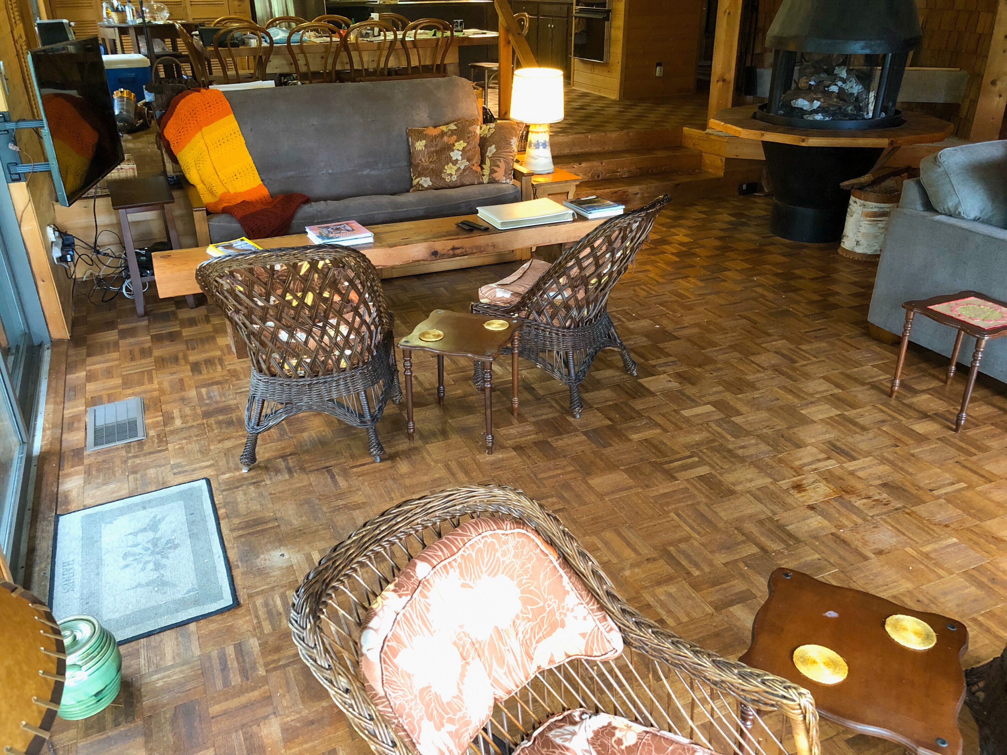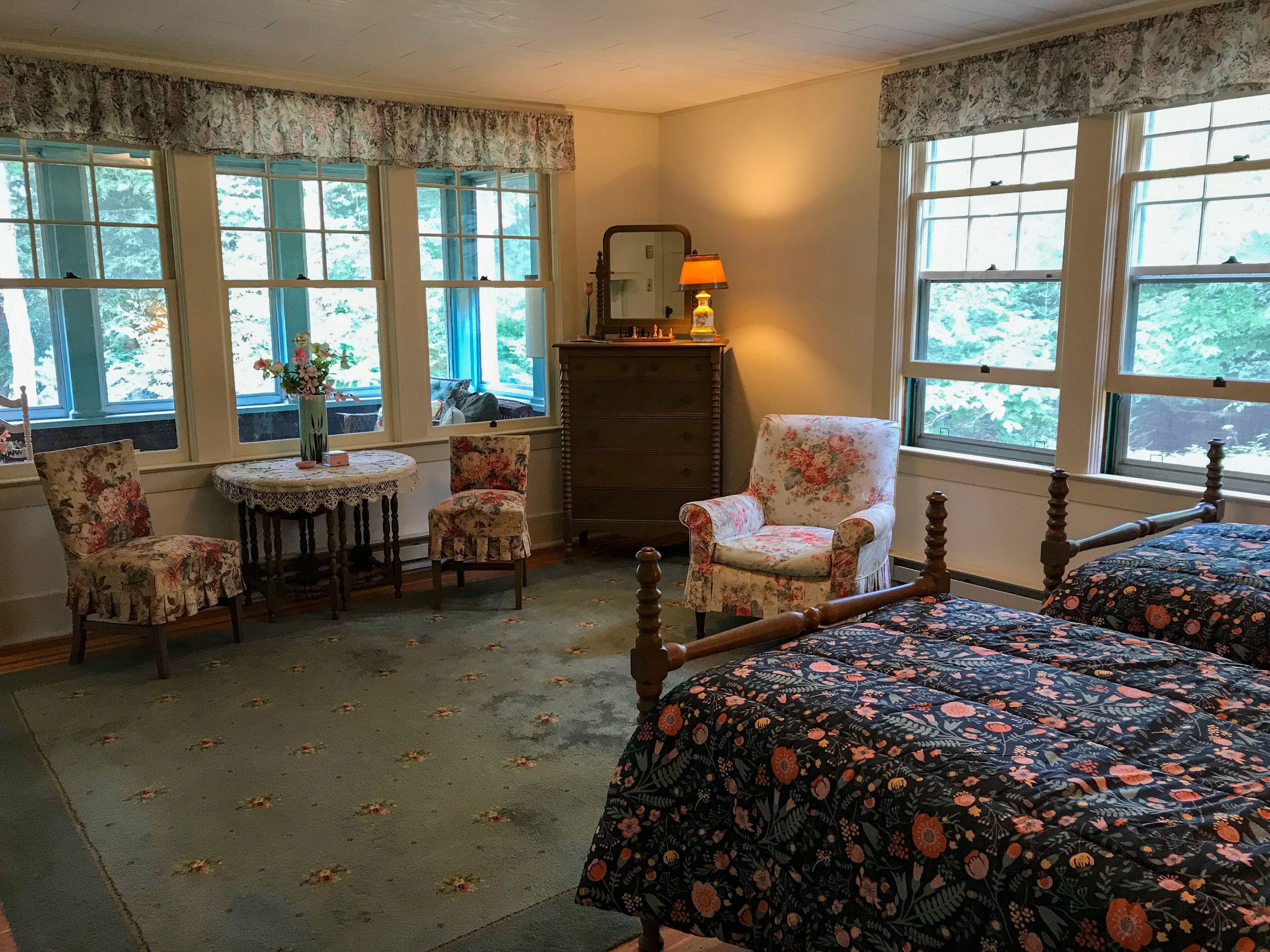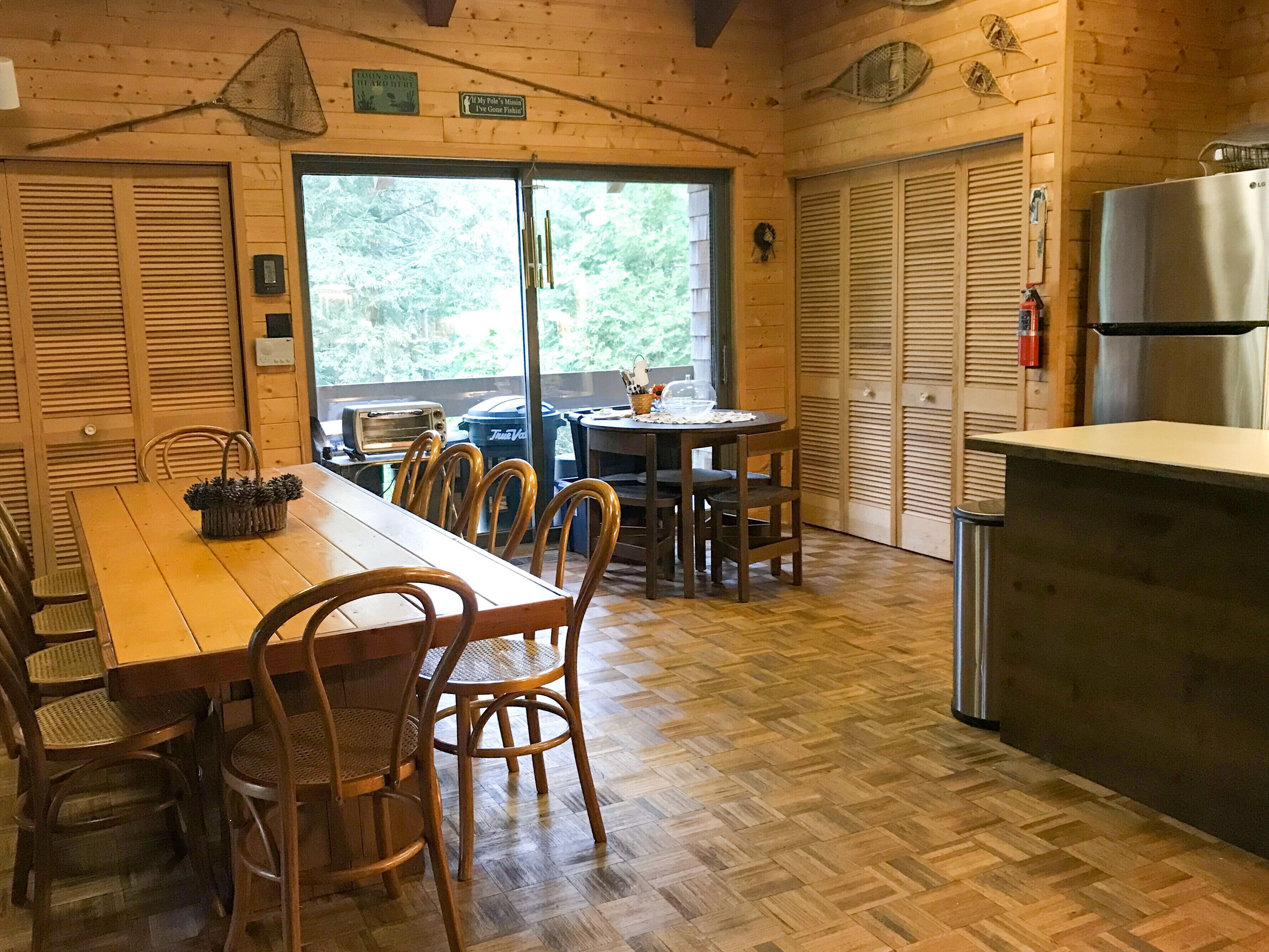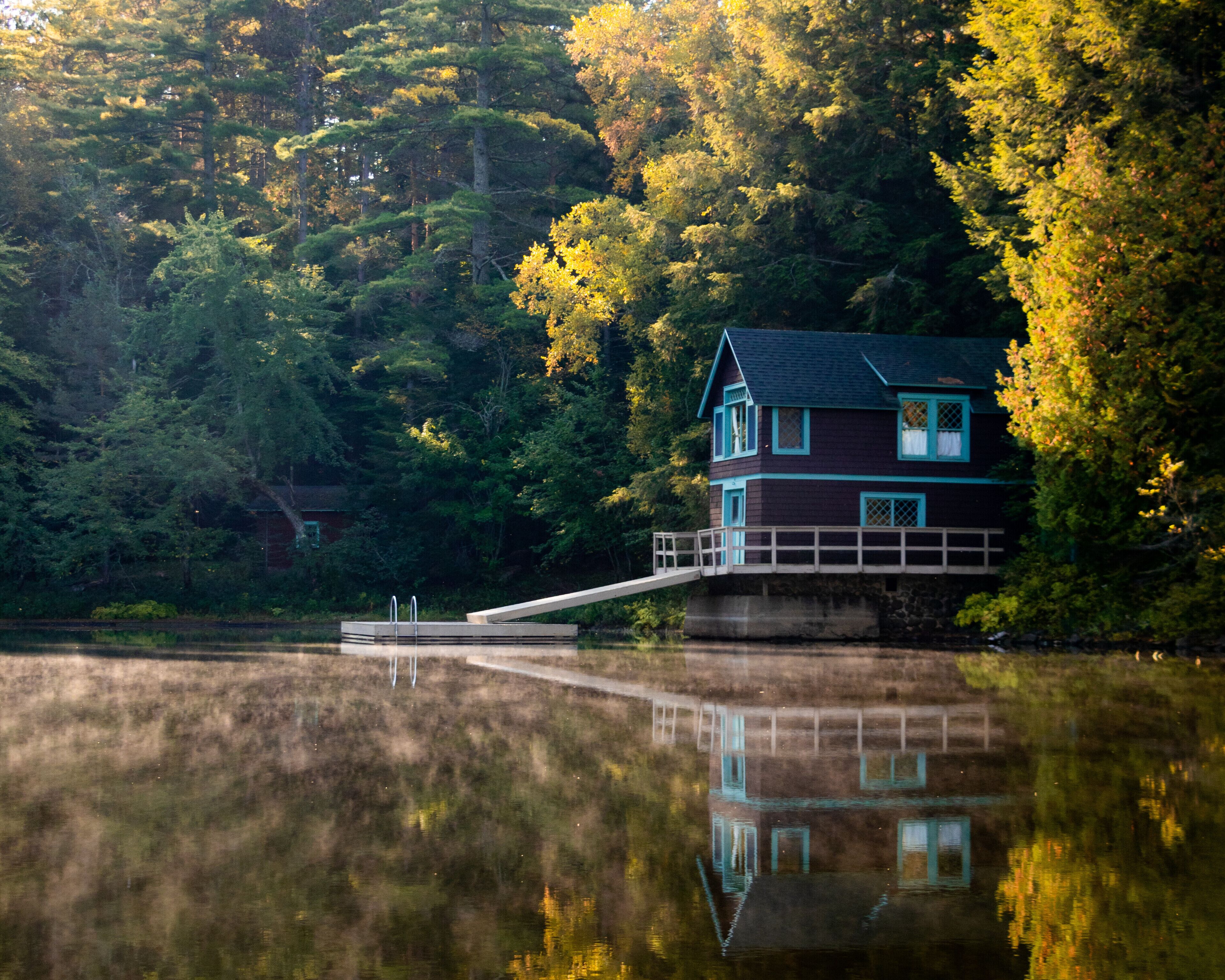 Stony Creek Camp near Saranac Lake Get away from it all in this quiet, secluded lakefront property in the heart of the Adirondacks. Wake up in a vintage boathouse right on the water. Paddle along ancient Native American routes through Stony Creek Ponds, with access to the Raquette River. Enjoy a game of tennis on our private court or a round of croquet on the spacious lawn. Relax on the dock and swim in the pristine lake to cool off. At the end of the day, enjoy a refreshments seated in Adirondack chairs around a crackling fire and gaze at a gorgeous sunset. This setting offers an ultimate private waterfront getaway with something to appeal to everyone in your group.Stony Creek Camp is situated on a 50-acre property at the end of a private road, where wildlife abounds. This spacious rental offer a total of 6 bedrooms, 4 baths and plenty of privacy for up to 14 guests. The Village of Saranac Lake is 20 minutes away and the Village of Lake Placid is only 35 minutes away.Main House Features:Bedroom 1: King (sleeps 2)Bedroom 2: Twin beds (sleeps 2)Queen Sleeper Sofa in living room (sleeps 2) 1 Full Bath: Spacious shower, double sinks.The Main House is the gathering area, featuring a cozy open living area that holds 3 sofas (one is a futon sleeper), additional seating, 50” TV, and sliding glass doors that present panoramic views. The dining area is a few steps up from the living room, with a table large enough to seat all. The kitchen offers plenty of space for preparing meals with 2 electric ovens, a heat induction cooktop, and an island. The master bedroom has a king bed, bureau and closet; the 2nd bedroom holds 2 twin beds, bureau and closet, and the full bath has a shower and double sinks.Boathouse Features:Bedroom: King (sleeps 2)Full Bath: Shower/tub.Lower Boathouse: 2 Canoes, 2 Kayaks, 3 Stand-up Paddle Boards, Life Preservers and Water ToysThe 2 story Boathouse, built in 1914, is accessed by a lit pathway from the Main House down several steps with handrail. The upper floor overlooks the lake with an open living area that holds a King bed, bureau, closet, desk with chair, and a TV with a DVD player with several DVDs. The bathroom has an antique claw foot tub which has a shower conversion.Several boats, including 2 canoes, 2 kayaks, and 3 stand-up paddle boards, are stored in the lower level of the Boathouse, along with life preservers of every size, water toys, and deck chairs. There is a large swimming and sunbathing dock attached to the Boathouse by a ramp. A small beach is nearby to launch small boats, and for young children to splash in the lake.The depth off the front dock is probably about 8 to 10 feet, so fine for diving. The back (towards the boathouse) is only about 4’. There are no weeds.Maximum depth of the pond is about 40 feetCottage Features:Bedroom 1: Twin beds (sleeps 2)Bedroom 2: Twin beds (sleeps 2)Bedroom 3: Queen bed (sleeps 2)Bathroom 1 (near bedrooms 1 and 2): Tub/showerBathroom 2 (near bedroom 3): Small showerThe 1920s Cottage is a short walk up the hill, or may be directly accessed by continuing on the driveway to the upper area of the property. It has 2 bedrooms with 2 twin beds each and a bedroom with a queen bed. There are 2 bathrooms (one with a small shower and the other with a tub/shower), and a full kitchen. Limited WiFi is available there, but the small TV uses a satellite dish for reception.A large porch along the front of the cottage is the ideal gathering area.A full-sized tennis court and a large playing field are also found on the upper level of the property.