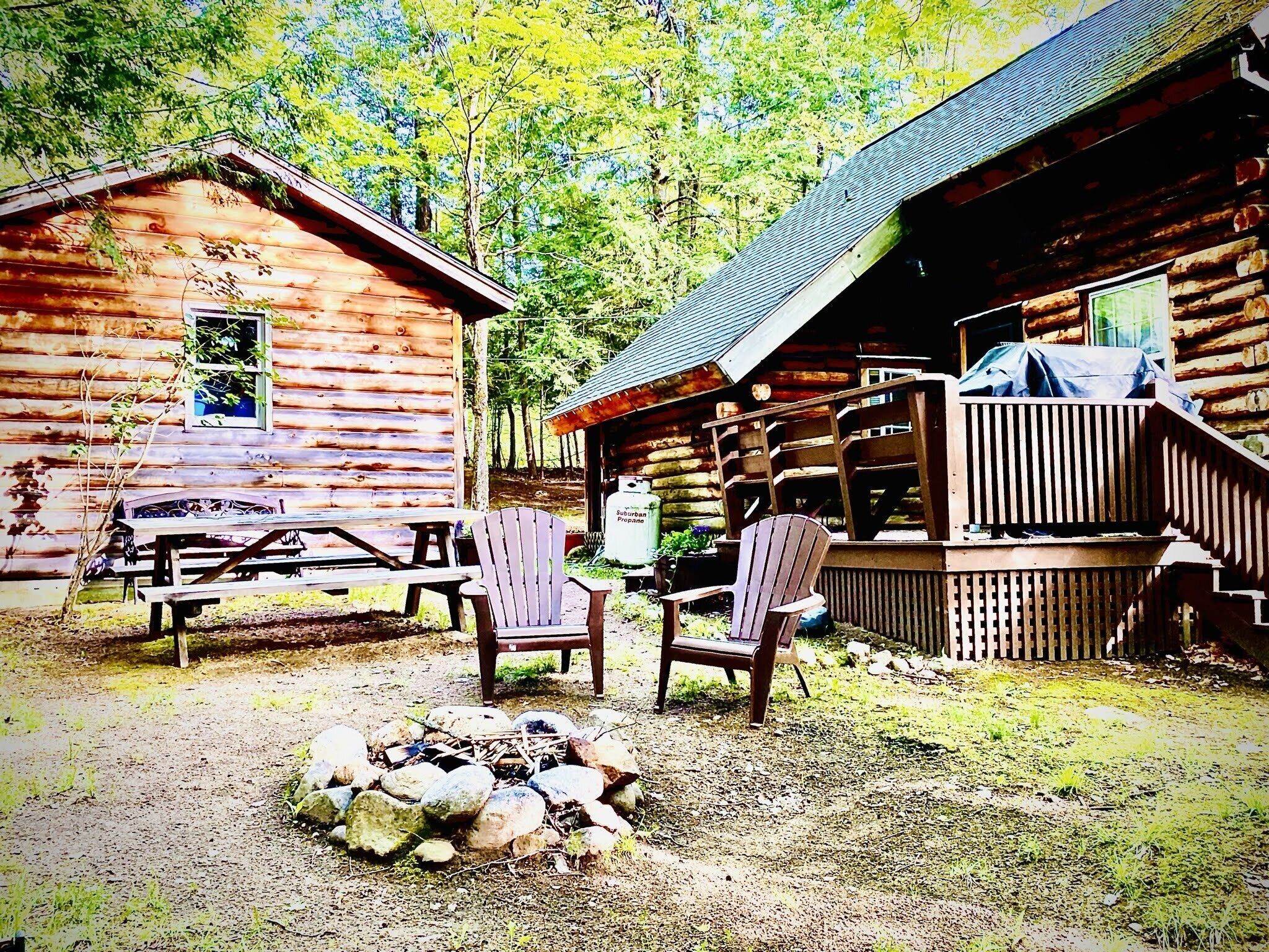 Adirondack Log Cabin with Modern Twist Whether you seek outdoor adventures or simply desire a peaceful retreat, our log cabin offers the perfect haven. Immerse yourself in the ambiance of the treetops on our screened-in porch, boasting a charming dining area, or head to the back porch equipped with a grill and fire pit. Dive into relaxation with our puzzles and games or use our fully stocked kitch...