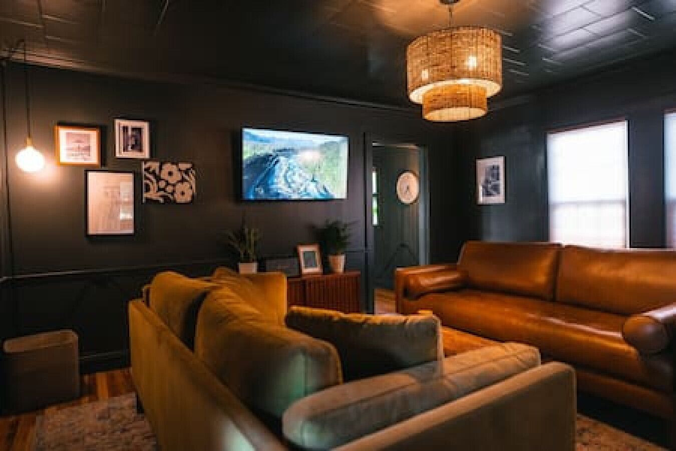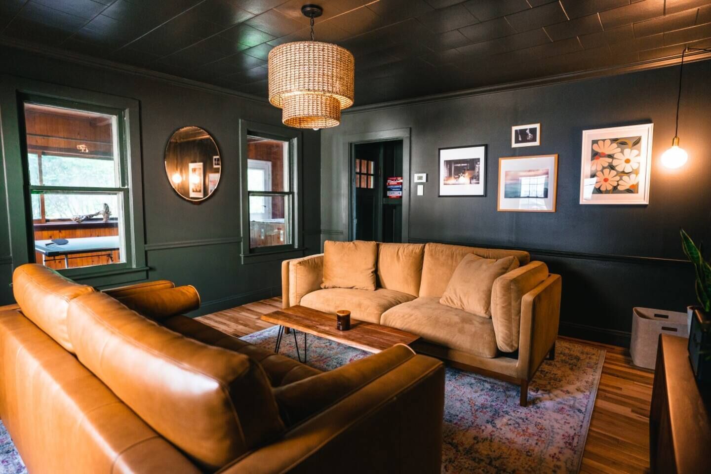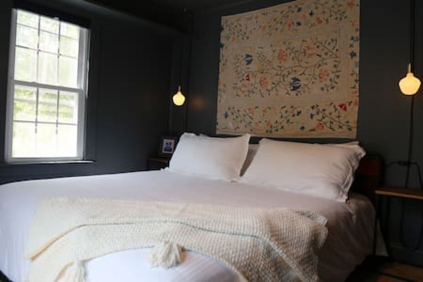 Vintage Ski Cabin by Water, Near Hunter & Belleayre This quirky but perfectly located 1940’s house has been redesigned to allow guests to relax, reconnect and have an amazing stay. The fun secret of this place is its full yard garden that leads up to Stoney Clove Creek. The garden itself is an experience on top of being located among the high peaks of the Catskills.The garden, which was beautifully constructed by a previous owner has a weaving stone pathway running through it. The pathway ends with a clearing that allows you to view and access Stoney Clove Creek and gorgeous views of the surrounding mountains. We’ve added a picnic table, firepit, BBQ and lounge chairs to the creekside setup. Along the path, you’ll find a few hammocks and sitting areas to take in the garden.The home is designed for 6 adult guests. Some un-level flooring and closeness to the main road are the reasons why we believe it’s best to have our initial opening this awesome Garden House as an adults only getaway.The downstairs has a separate but close spaces that include; kitchen and eat in dining table. There is a small half bathroom located just off the kitchen counter, underneath the stairs. The kitchen has a dishwasher, 6 burner stove, cabinet clad Sub Zero Fridge, all basic cooking and dining utensils (as well as olive oil, salt and pepper. We also provide a coffee maker, with ground coffee, an electric tea kettle with teas,The living room is designed to promote conversation and connection. That said, it also has a TV and board games to enjoy if you desire. The front porch currently has a new ping pong table for guests to use and enjoy too.The upstairs is where all three bedrooms and the full bathroom are located.The full bathroom has a pedestal sink, toilet, extendable shower head and bathtub.2 King bedrooms are equipped with closets, hangers and plenty of shelving space to use as desired.The full bedroom has a built in desk as well as plenty of shelving to utilize.The floors aren’t completely level but we hope that the space planning and design helps overcome the overall quirkiness of this special place.The back porch initially serve as a ‘mud room’ to hang coats, boots and any outdoor gear you may want to store during your stay.COMING SOON; we will be creating a lounge space in the garage, inclusive of a wood burning stove to enjoy in all four seasons. We will also be furnishing the back patio area that sits just off the garage for guests to enjoy in all types of weather.