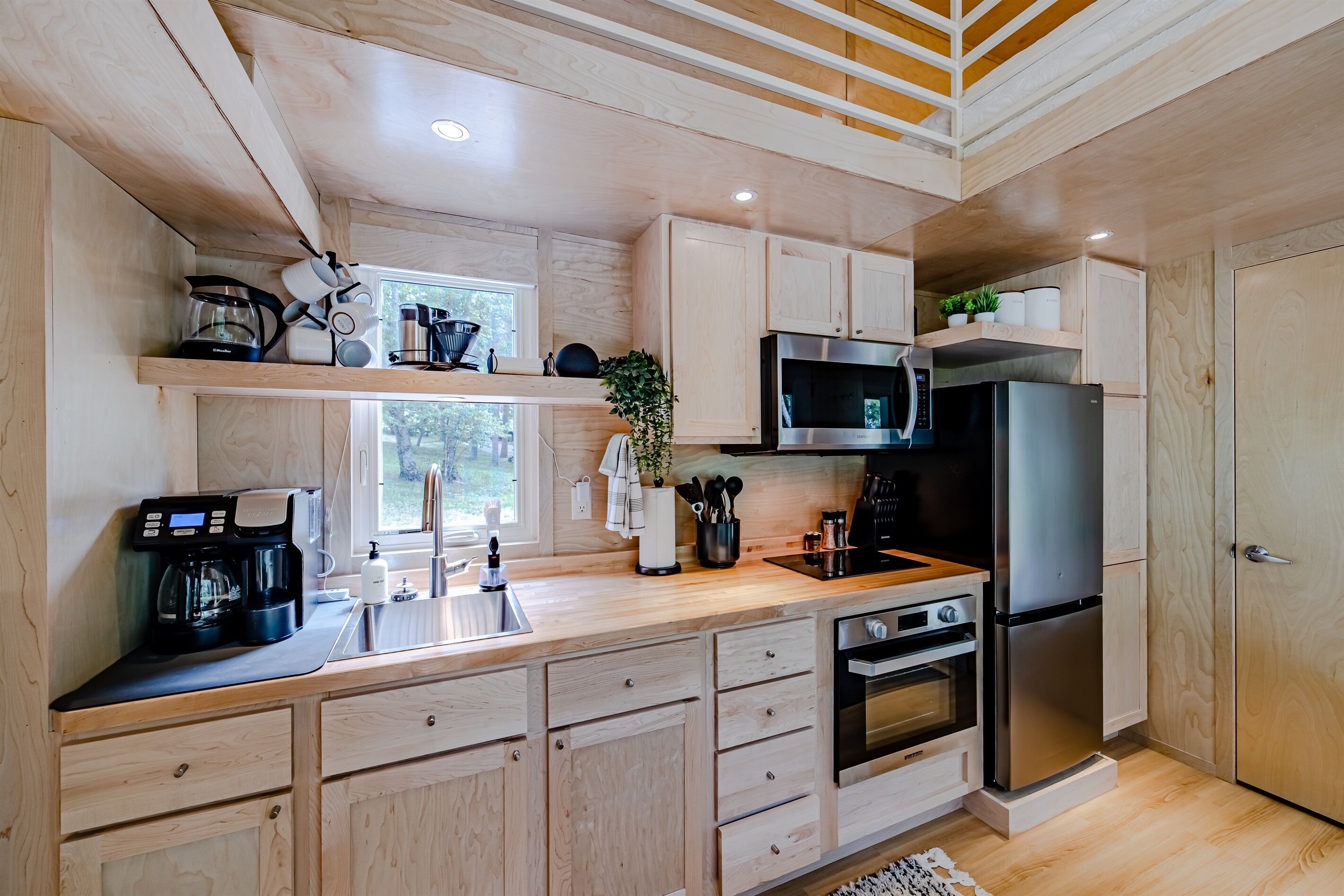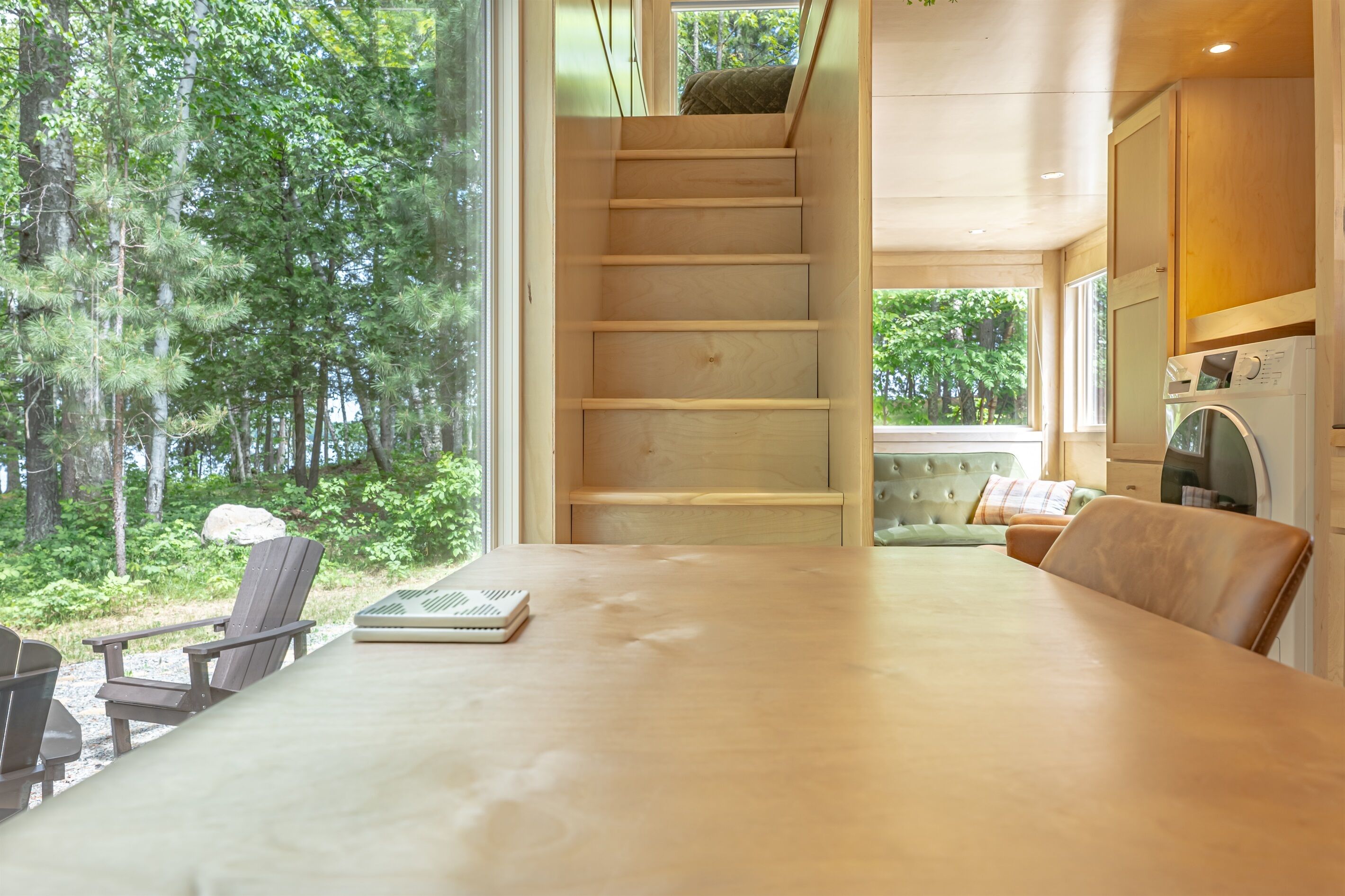 Tiny-home on beautiful lake w/own private beach, kayak & 2 paddle boards Come enjoy "Sunset Escape" Tiny-home on the prestigious Deer Lake in Northern MN. You'll love this unique and romantic escape. Work ~ Relax ~ Play! Enjoy solitude in nature for a couple's getaway or a fun family trip. The tiny home is a destination location in of itself on Birch Island on Deer Lake.This tiny home sits on 3+ acre island surrounded by the beautiful blue water. It is located near an occupied cabin but that said, this tiny home is situated to where you don’t see any of those structures from the front facing views of the house, so it feels very private and one with nature.This modern tiny home has a loft which holds one queen bed and another with two twin beds. The loft is accessed by a normal rise and run staircase. You won't be able to stand in the lofts/bed areas as it is 4'6" (typical of a tiny home) but not really an issue since you really just sit in the beds up there, but important to note if you have any physical ailments. The tiny home has its own private area, beach and ample free parking. Outside is romantic string-lit, equipped with 4 Adirondack chairs around a wood fire pit, propane BBQ grill, and patio set. Guests have access to their own private beach with 2 paddle boards and a tandem kayak during the summer months. Just a few of the activities in the area:FishingBikingGolfing Boating, Kayaking & Paddle BoardingSnowboarding, SkiingSightseeingCross Country & Nordic SkiingSnowshoeingHikingIf you need absolutely anything during your stay, please let me know! I am happy to help!If you have ever wondered what it would be like to stay in a tiny home well here is your chance! Designed and built in Wisconsin by Escape Traveler.-Cell service may be weak here, but texting via Wi-Fi works very well, texting via SMS will come in and out as well as signal for calling.- The house is very much immersed in nature. Nature has bugs and animals. You may see both. There may even be an ant or similar such bug in the house. I promise it won't hurt you.- Our Insurance Carrier requires guests sign an agreement for release of liability and a $300 security deposit is required.