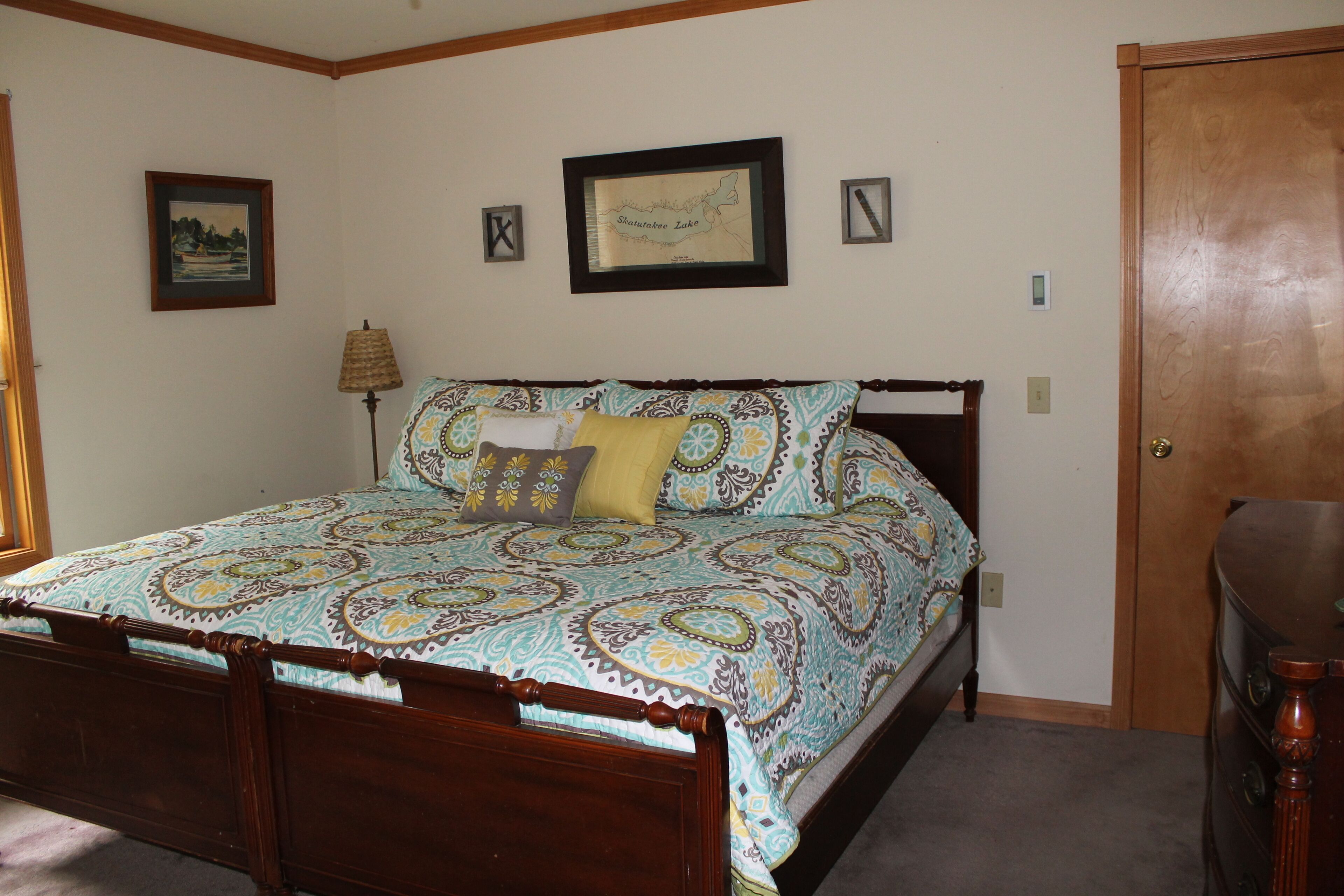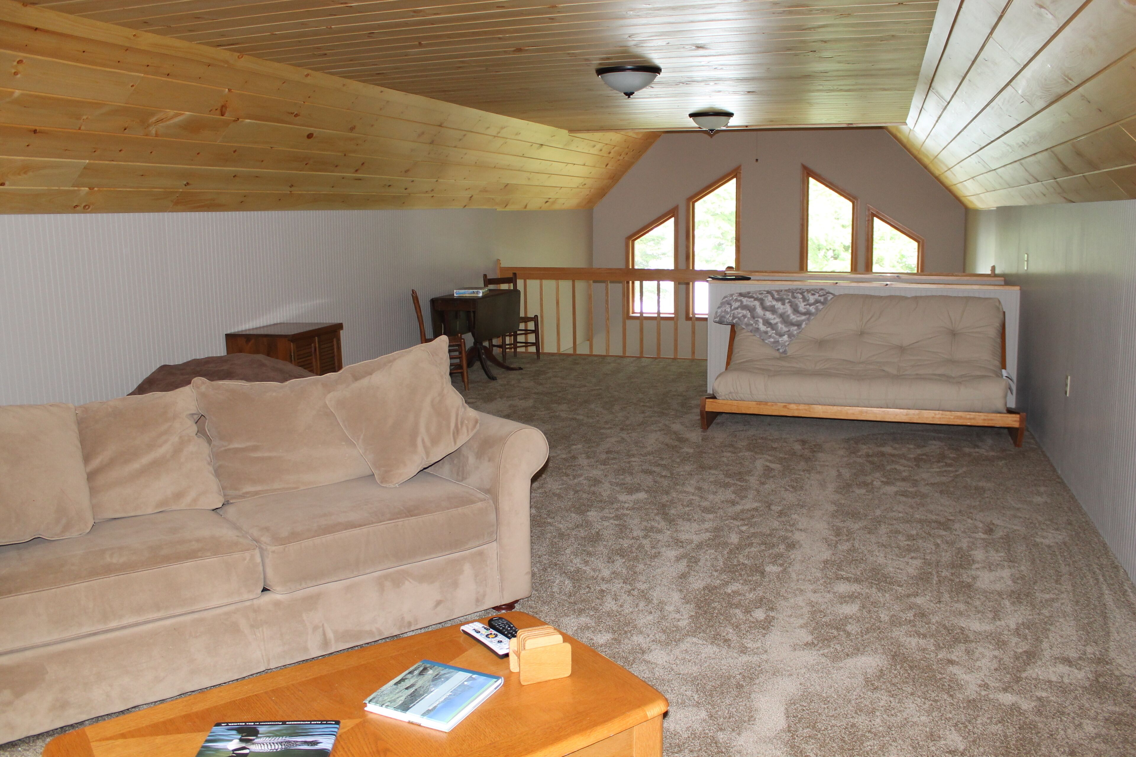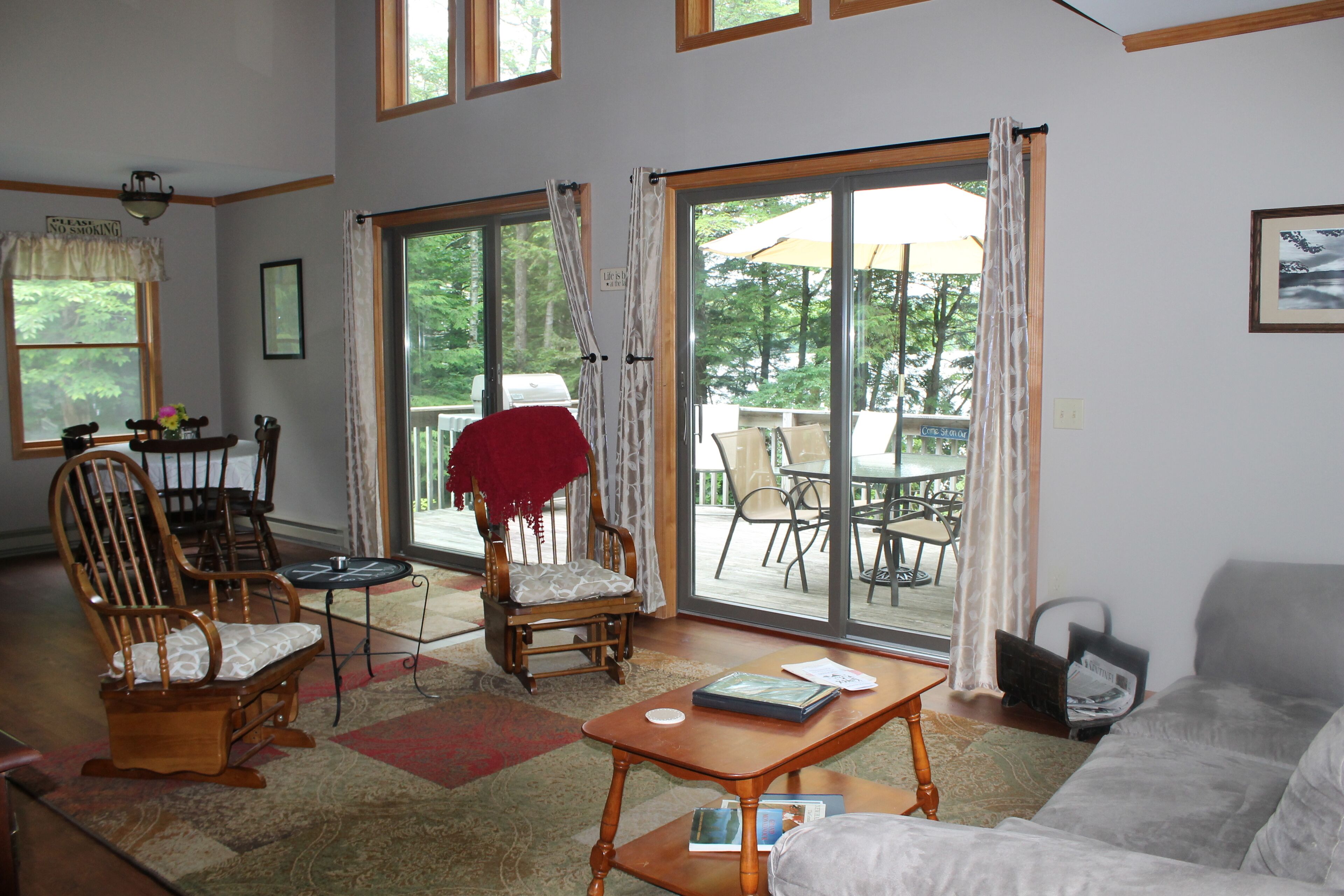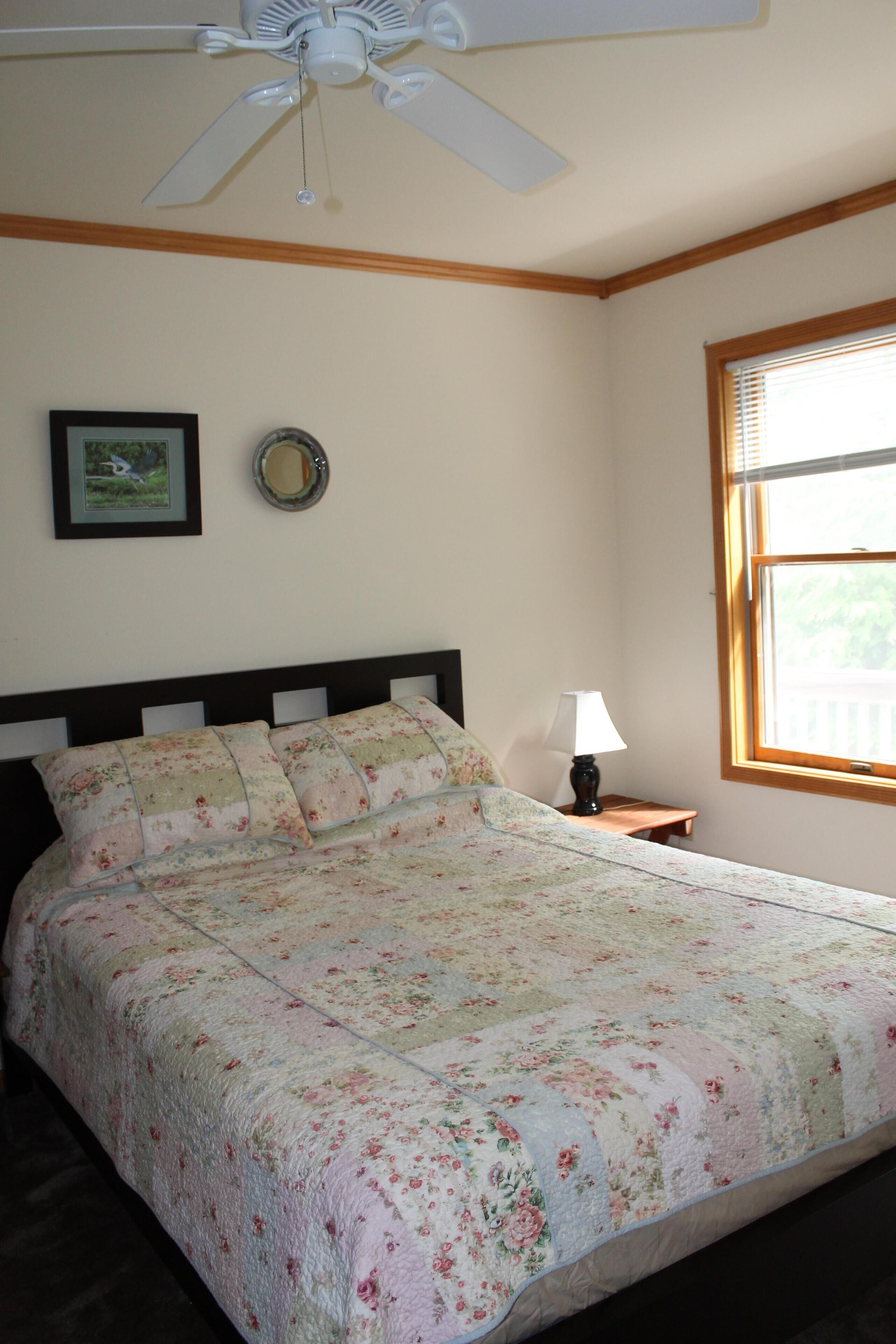 Lake side family fun! This beautiful lakeside 3 bedroom home was renovated in 2014 now being offered as a rental, every family that visits Juju's place can't wait to come back, amazing summer getaway. It has an inviting open concept floor plan, a fully equipped kitchen with granite & stainless steel appliances. Lots of large windows with a beautiful cathedral ceiling. It has an amazing open loft for added living/tv space with a pullout sofa & futon for extra sleeping. Full Bathroom & Laundry room. Over 150ft of private water frontage, a spacious flat yard, large deck that overlooks it all with BBQ grill and a hammock, private dock & a floating raft. Enjoy roasting smores with your family in the fire pit by the waters edge.