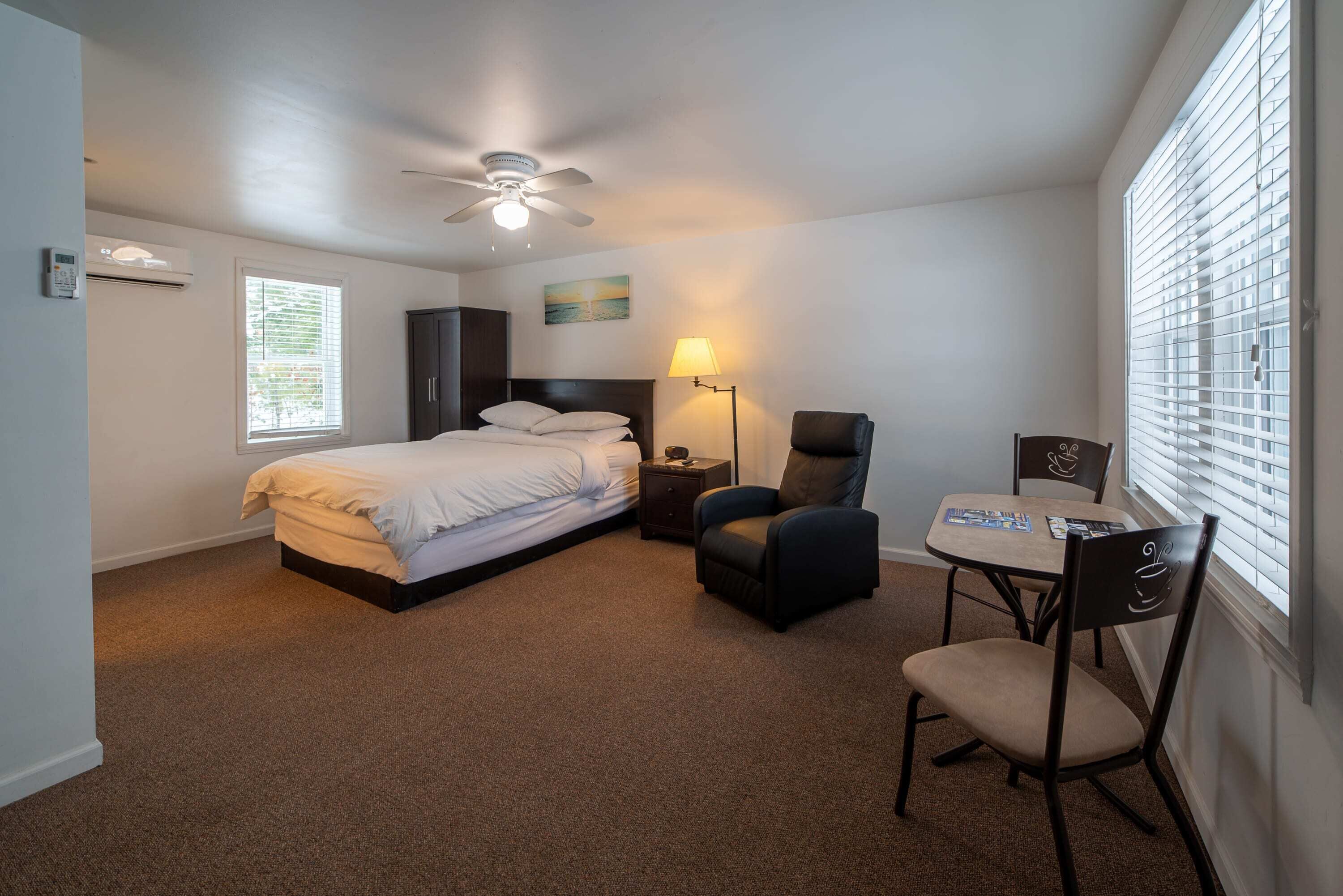 Room 5 at Inland Lake Motel, Indian River, MI Summary:Inland Lake motel is a recently remodeled motel in Indian River, MI. It is remotely managed by Lochmoor Hospitality.Monthly rentals available from November through April.The Space:Room 5 at Inland in a Studio-Style with 1 Queen Beds. A small table and chairs provide the perfect laptop work space. This room has a hot plate, microwave oven and toaster oven for limited cooking. Cookware, dishes, silverware and some limited utensils are provided. The room also has a coffee pot, coffee, creamer and sugar are included. A small refrigerator/freezer is available for use. A tub/shower combo complete this room nicely. Perfect for limited or long-term rental.Guest Access:Guests can access this room with a Key Code that is provided prior to check-in.The Neighborhood:A quick right-hand turn on the first road off of Exit 313 on I-75 and a short jog into our parking lot brings you to a secluded space with easy highway access.Other Things to Note:Outside camera's protected by Ring.