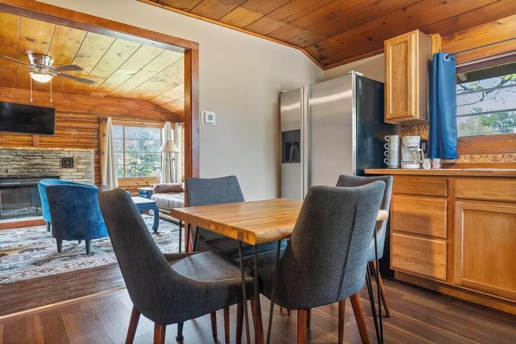 Reed's on the River Cabin 8 Beautifully renovated cabin located at Reed's on the River Resort on the beautiful Sturgeon River. Built in the 1940's. Remodeled in 2024. Private bedroom w/full bath, second bathroom, kitchen, & stone fireplace. Second queen size bed and full size futon round out the living room space. The Sturgeon River is well known for tubing, kayaking and fishing . Please note that cabin 8 sits closer to highway so there is traffic noise. The cabin has a deck with table and chairs as well as a firepit. Please note that Cabin 8 is set slightly off of river whereas the other 7 sit directly on river. The cabins are a perfect spot to visit May through October as the weather is wonderful. Please note we allow 6 guests, however, the futon is small in the living room. The Sturgeon River is very well known for it's fishing, especially in the Spring and the Fall. It is also the fastest flowing river in the lower peninsula of Michigan making it ideal for tubing and adventurous kayaking. The leaves changing in October is a must see. We have worked hard to provide comfort, fun, beautiful grounds and service so that you can make life long memories.We will be available for any needs.We are very pet friendly but have a pet policy and a pet fee. We charge $25/night, per pet, with a max fee of $250. Please note that Airbnb does not include pet fee in reservation. It must be paid separately.