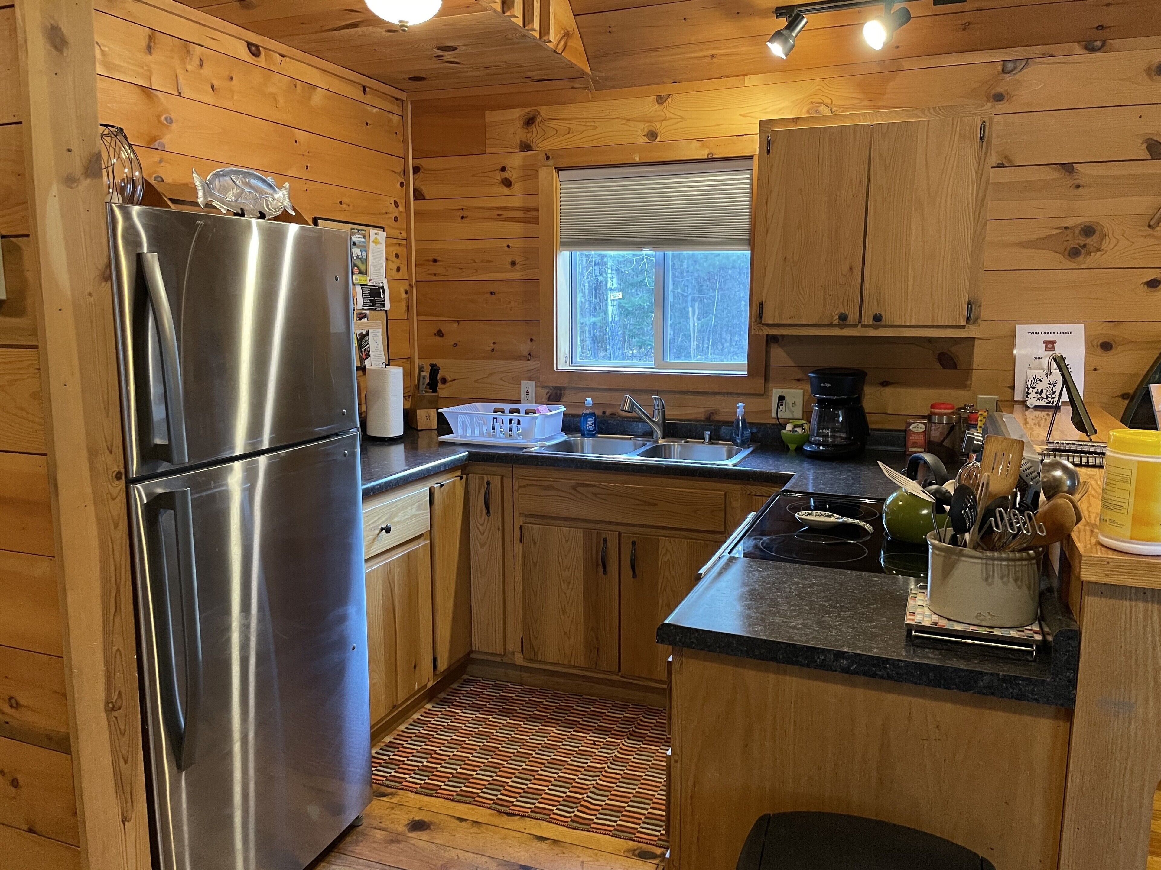 Quiet Rustic Cabin, Lake Access, Near Pictured Rocks! Boat, raft, Swimming! Rustic, Twin Lakes Lodge located in the heart of Upper Michigan’s Snowmobile Capital of the Mid-west and the Summer Place - NOT too miss. The Munising area is centrally located...perfect for day trips. The Main floor great room contains a fully equipped kitchen, dining area and living room. 2 bedrooms on the main floor, large bedroom holds 2 full sized beds, small room 1 queen bed and a twin cot. The upper level is a generous sized loft. It holds 2 full beds, a queen sofa sleeper/sitting area that overlooks the great room. The bathroom is on Main floor. All rooms offer plenty of moving around room. The lodge itself is set back away from the lake, allowing the guest additional privacy. The lake and beach are shared, not private. There's plenty of room for trailers/vehicles/ATV's...Fix dinner in the fully equipped kitchen. Full size Refrigerator, stove-oven, microwave and coffee pot. Enough table service for 10.Gas grillFishing is great here! This is a "catch and release" lake only.