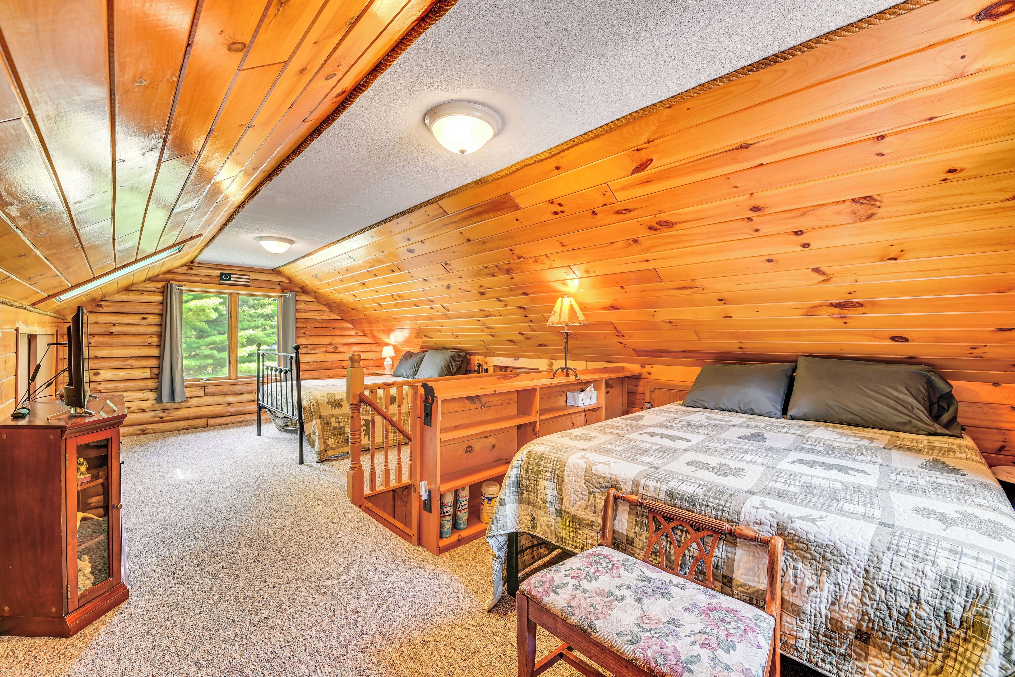Log Cabin in Forestport w/ Game Room & Fire Pit! Enjoy a peaceful getaway with loved ones at this inviting vacation rental in Forestport, NY! Unwind on the tranquil front porch while the kids play a match of foosball and ping-pong in the game room. Getting hungry? Prepare your favorite meal in the well-stocked kitchen, barbeque on the grill, or visit a nearby restaurant of your choice! After hiking through Pixley Falls State Park, return to the 1-bathroom studio and top off the evening with stargazing around the fire pit.-- THE PROPERTY --Well-Stocked Kitchen | Gas Grill (Propane Provided) | Front Porch w/ SeatingLoft: 2 Queen Beds | Living Room: Full Sleeper SofaOUTDOOR LIVING: Wood-burning fire pit, picnic tableINDOOR LIVING: 2 flat-screen TVs, electric fireplace, board games, stereoGAME ROOM: Ping-pong table, foosball table, magnetic dart board, 2 reclinersKITCHEN: Stove/oven, refrigerator, microwave, dishwasher, dishware/flatware, cooking basics, Keurig/drip coffee makers (coffee provided), toaster oven, air fryerGENERAL: Free WiFi, window A/C unit in loft, electric heating, towels/linens, washer/dryer, laundry detergent, hair dryer, trash bags/paper towelsFAQ: Exterior security camera (facing driveway)ACCESSIBILITY: Multi-level home, exterior steps to enter, full bathroom on main level, beds on upper levelPARKING: Driveway (3 vehicles), RV/trailer parking allowed on-site (no hookups available)-- THE LOCATION --OUTDOOR ADVENTURES: Forestport Dam (1 mile), Adventure Horse Riding in NYS (8 miles), Boonville Black River Canal (9 miles), Pixley Falls State Park (15 miles)NEARBY RESTAURANTS: Forestport Diner (0.9 miles), Garramone's Restaurant (2 miles), Campbell's Diner (2 miles), Kratzy's Bar & Grill (2 miles), The Junction At Alder Creek (2 miles)DAY TRIPS: Boonville (10 miles), Old Forge (28 miles)AIRPORT: Syracuse Hancock International Airport (71 miles)-- REST EASY WITH US --Evolve makes it easy to find and book properties you’ll never want to leave. You can relax knowing that our properties will always be ready for you and that we’ll answer the phone 24/7. Even better, if anything is off about your stay, we’ll make it right. You can count on our homes and our people to make you feel welcome — because we know what vacation means to you.-- POLICIES --- No smoking- Pet friendly (dogs only, 2 max)- No events, parties, or large gatherings- Must be at least 25 years old to book- Additional fees and taxes may apply- Photo ID may be required upon check-in- NOTE: This multi-level home requires exterior steps to enter. While a full bathroom is located on the main level, additional interior stairs are required to access the 2 queen beds on the upper level- NOTE: RV hookups are not available at the property- NOTE: Your safety matters. This property features 1 exterior security camera located above the garage door, facing outward toward the driveway. It does not look into any interior spaces. The camera will continuously record video and sound while guests are in residence