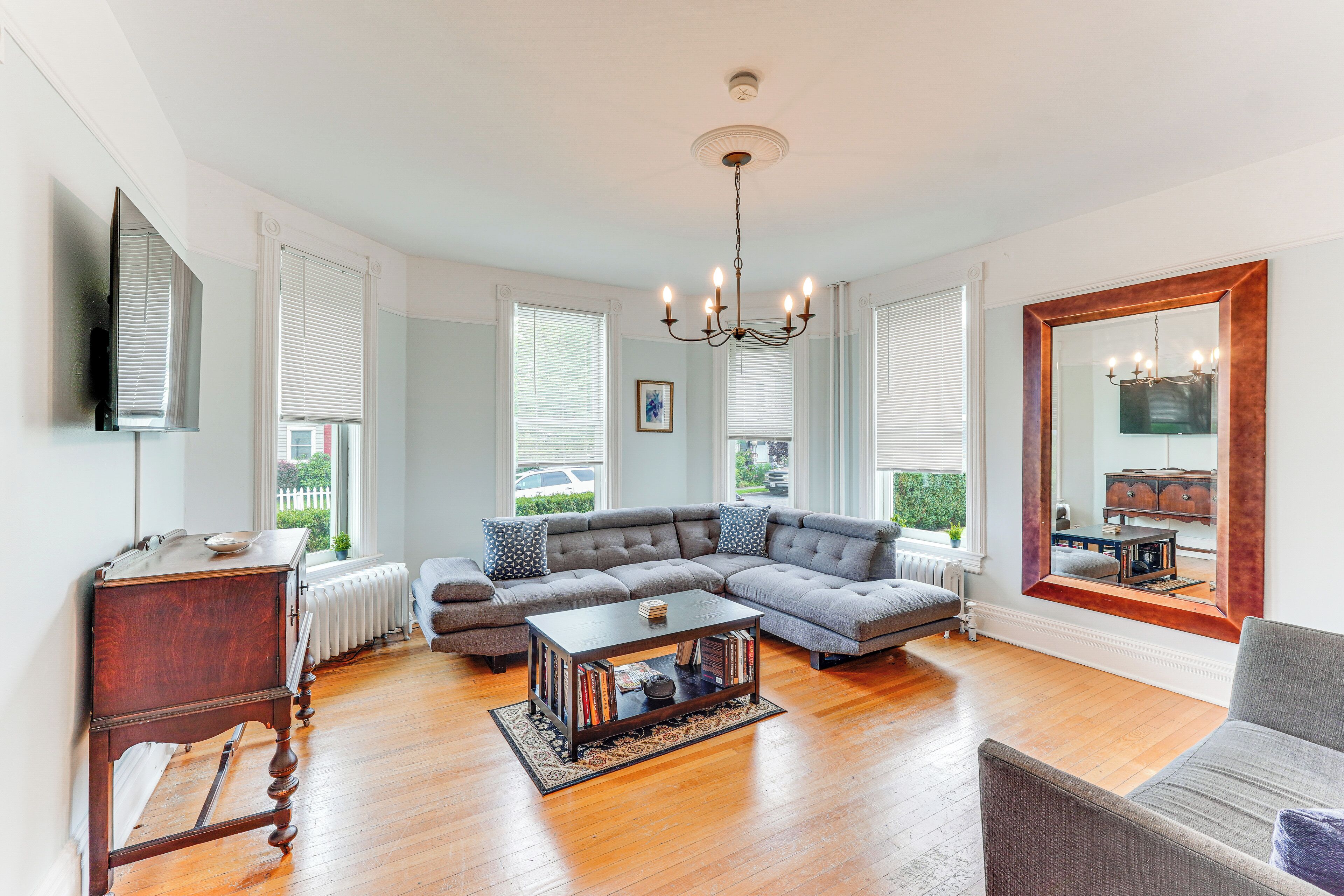 Historic Newburgh Home w/ Hudson River Views! Situated in the heart of the Hudson Valley, this 3-bed, 2-bath Victorian vacation rental boasts both scenery and convenience. Explore downtown Newburgh's quaint shops and restaurants (within walking distance!), head out to visit loved ones at West Point, stroll the waterfront, or tour the region's flourishing wineries. Come home to bask in the sunlit d...