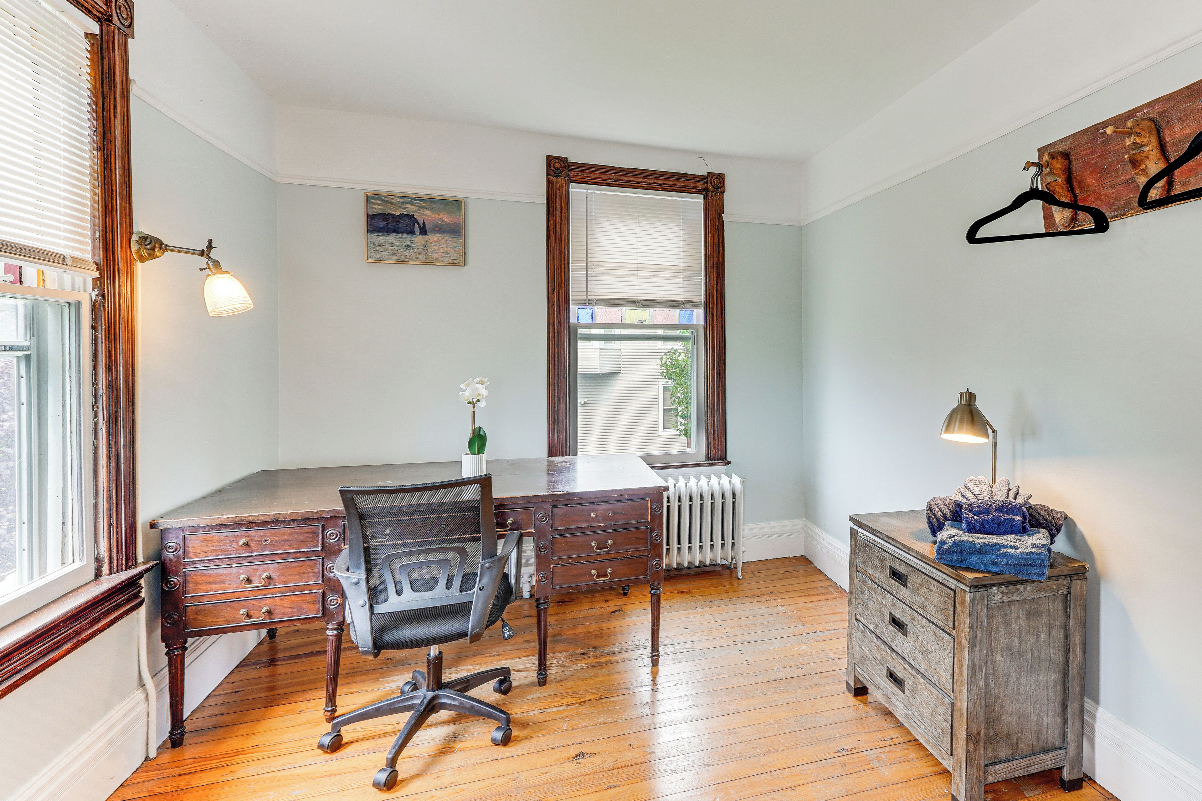 Historic Newburgh Home w/ Hudson River Views! Situated in the heart of the Hudson Valley, this 3-bed, 2-bath Victorian vacation rental boasts both scenery and convenience. Explore downtown Newburgh's quaint shops and restaurants (within walking distance!), head out to visit loved ones at West Point, stroll the waterfront, or tour the region's flourishing wineries. Come home to bask in the sunlit dining room and living room, dine al fresco in the backyard, or enjoy cocktails and picturesque Hudson River views on the furnished front porch.-- THE PROPERTY --Close to Restaurants | Free WiFi | Family & Pet Friendly (w/ Fee) | Close to West Point & Downtown BeaconBedroom 1: Queen Bed | Bedroom 2: Full Bed | Bedroom 3 (Home Office): Full Futon | Additional Sleeping: Pack 'n Play, 2 Twin Air MattressesHOME FEATURES: Dining room w/ decorative fireplace, remote workspace (desk/chair), clawfoot soaking tub, books, board games, historic architectural features, modern decor, TVs in Living Room & Bedroom 1OUTDOOR AMENITIES: Furnished front porch w/ Hudson River views, private landscaped yard w/ table & seatingKITCHEN: Dishwasher, refrigerator, stove/oven, microwave, toaster, waffle maker, juicer, cooking basics, dishware & flatware, hot water kettle, drip coffee maker, coffee press, coffee & teaGENERAL: Washer/dryer, hair dryers in every bathroom, complimentary toiletries, linens/towels, iron/board, window A/C units, gas heating, Nest thermostatFAQ: Pet fee (paid pre-trip)ACCESSIBILITY: 2-story home, exterior staircase for entry, bedrooms on 2nd floorPARKING: Street parking (first-come, first-served)-- THE LOCATION --DOWNTOWN NEWBURGH (0.8 miles): Hudson River waterfront, Scenic Hudson’s Long Dock Park, Madam Brett Park, Motorcyclepedia Museum, Washington’s Quarter’s State Historic Site, City of Newburgh Waterfront Trail, Downing Park, shops, restaurants, cafes, breweriesAREA ATTRACTIONS Plum Point Park (3 miles), Downtown Beacon (6 miles), Dia Beacon (6 miles), Storm King Art Center (7 miles), Hudson Highlands State Park (12 miles), West Point (15 miles), Thunder Ridge Ski Area (28 miles), Mount Peter Ski Area (29 miles), New York City (66 miles)AGRITOURISM: Benmarl Winery (9 miles), Weed Orchards & Winery (11 miles), Brotherhood, America's Oldest Winery (11 miles), City Winery Hudson Valley (14 miles)AIRPORT: New York Stewart International Airport (7 miles)-- REST EASY WITH US --Evolve makes it easy to find and book properties you’ll never want to leave. You can relax knowing that our properties will always be ready for you and that we’ll answer the phone 24/7. Even better, if anything is off about your stay, we’ll make it right. You can count on our homes and our people to make you feel welcome — because we know what vacation means to you.-- POLICIES --- No smoking- Pet friendly w/ $50 fee (+ fees & taxes, dogs only, max 2)- No events, parties, or large gatherings- No shoes inside without provided reusable shoe covers- No candles- Must be at least 25 years old to book- Additional fees and taxes may apply- Photo ID may be required upon check-in- NOTE: The property sleeps 6 guests in 3 beds with room for 8 guests total using the 2 twin air mattresses- NOTE: This 2-story home requires an exterior staircase for entry and interior stairs to access all bedrooms on the 2nd floor