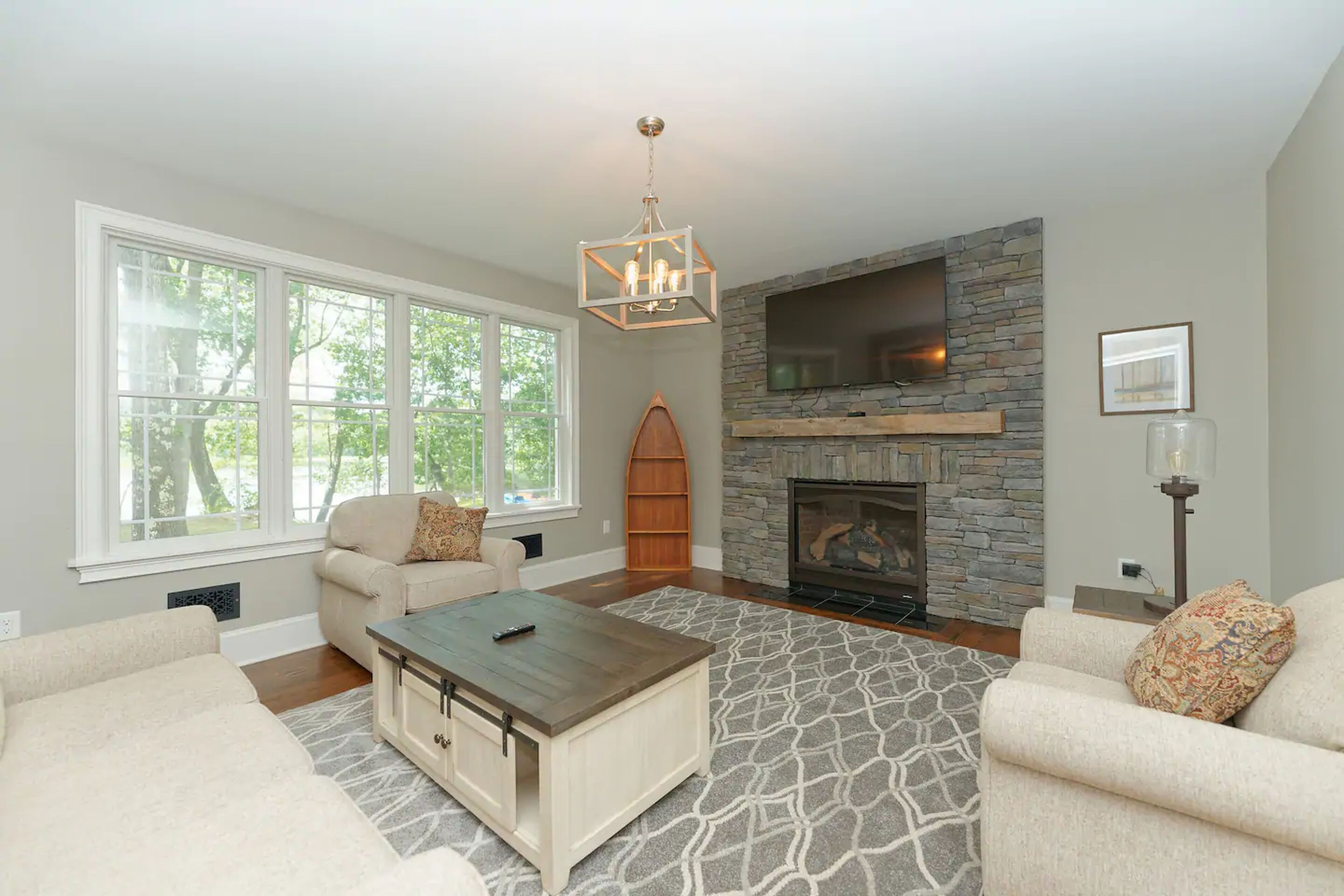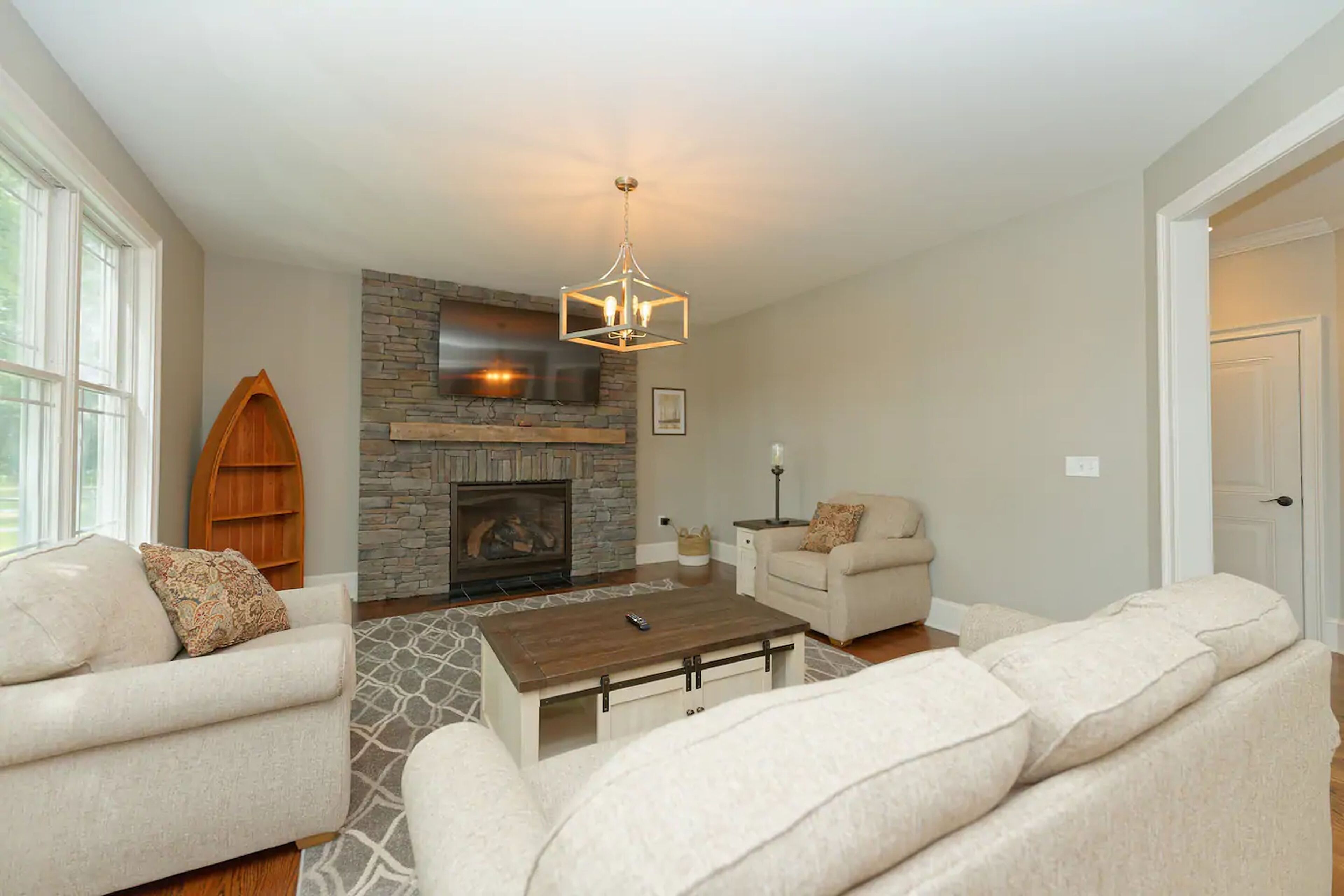 Riverfront home on the Hudson, minutes to Saratoga Brand new luxurious riverfront house on the Hudson river, with unique contemporary furniture, and amazing amenities! Enjoy 24 acres of serenity with deer that roam in the distance and an eagle's nest to watch on the river. Upgraded WiFi, fire pit, horse shoe pit, bocce ball and corn hole, phenomenal fishing, as well as kayaks and a paddle boat, at your pleasure!An absolute gem, perfect for guests who desire tranquility or look for a variety of activities in the nature!The spaceThis a fantastic brand new property with exceptional amenities and gorgeous river views; the river is right at the back yard!The property has 4 bedrooms, 2.5 baths, a spacious fully equipped kitchen, and a bright living and dining room, and can comfortably accommodate 9 guests.All the bedrooms and 2 full bathrooms are located on the second floor, and are spacious and bright, with a unique aesthetic. The Master bedroom has a King bed, the 2nd bedroom has a Queen bed, the 3rd bedroom has a Queen bed, and the 4th bedroom has a Queen bed, and a bunk bed. All bedrooms have TVs and are perfect for relaxation. Amazing fully equipped kitchen, living room, and dining area, and indoors fireplace.The entire house and 24 acres all to yourself will surely offer you an excellent stay; the outstanding environment matches perfectly with this luxurious custom finished home!The porch and outside area present a truly stunning view of the surrounding nature and river.Feel free to use the fire pit, the available kayaks and enjoy lawn activities, such as corn hole, bocce ball and a horse shoe pit! Fishing is phenomenal (you may find large mouth bass, small mouth bass and large catfish), and it's a paradise for bird watchers! Free parking on premises.Feel free to view the photos of this luxurious property and its marvelous surroundings; this tranquil setting on the Hudson River is spectacular!Guest accessYou will have access to the entire house and 24 acres!Neighborhood overviewSurrounding communities:Mechanicville: 1 mile awayMechanicville municipal golf course, 1 mile awayYou will find your closest grocery store here (Price Chopper), wine and liquor stores and drug stores.Dining: The Ugly Rooster CaféBubbles RestaurantThe End Zone Sports Pub and RestaurantHildreth’s RestaurantMechanicville House of PizzaFairways of Halfmoon (golf course and clubhouse restaurant)Dunkin DoughnutsMcDonald’s SubwayClifton Park, NY: 7 miles awayClifton Park Center Mall and many shopping plazas – it has about anything you need. Popular suburb, 15 miles north of Albany, many young families. Department stores and national chains can be found here.Dining:National chains:Chili’s, Outback Steakhouse, TGI Friday’s, Buffalo Wild Wings, Smashburger, Five Guys, Dog Haus, Red Robin, Panera, Moe’s, Chipotle, Blaze Pizza, etcIndependent restaurants:Delmonico’s Steak HouseBellini’s Italian EateryWheatfield’s Bistro & Wine Bar Sushi Thai @ the Park30 ParkLa Fiesta Mexican Saigon Spring VietnameseVeniezia’s Pizza and PastaSaratoga Lake – 9 miles awaysaratoga.com /saratoga-lake/Saratoga Lake is a lake in the eastern part of Saratoga County, New York. The lake is approximately 4.5 miles (7.2 km) long, about 1.5 miles (2.4 km) wide at its widest point, and about 95 feet (29 m) deep. The Lake is surrounded by the City of Saratoga Springs on the north west, the Town of Malta on the south west, the Town of Stillwater on the south east, and the Town of Saratoga on the north east. New York State Route 9P is a highway that runs along the southern end and eastern side of the lake, and then crosses its outlet in the north.Fish species present in the lake are walleye, smallmouth bass, black crappie, yellow perch, redbreast sunfish, bluegill, northern pike, tiger muskie, largemouth bass, carp, pumpkinseed sunfish, and brown bullhead. There is a state owned hard surface ramp boat launch off Union Avenue on the north shore. • Brown's Beach - Stillwater. Public beach, restaurant and Bed and breakfast.• Carson’s Woodside Tavern• Nastolgia Ale House & Wine Bar• Lake Local – newly renovated restaurant on the lake• Salvi Aquatic Boat Rentals - Saratoga Lake Boat Rentals located on North side of the lake.• Kayak Shak – kayak and paddle board rentals• Fish Creek - Saratoga. Public boat launch.• Fish Creek Marina - Saratoga. Kayak and paddleboard rentals.• Saratoga Lake Sailing Club - Manning's Cove, Malta.• South Shore Marina – Malta – boat rentals.Malta, NY - 9 miles awayMalta is a suburb of Saratoga Springs and easily accessible by I-87, State Route 9, from State Route 67. There is a shopping plaza with a large grocery store, liquor store, Jimmy’s pizza, subway, nail salon, GNC, etc., with CVS across the street.Dining:Chain restaurants include: Panera, Five Guys, Starbucks, Subway, Dunkin Doughnuts, Taco Bell and KFCIndependent restaurants: Bentley’s Tavern, Bua Thai and SushiRecovery Sports GrilleRipe TomatoPublik HouseMalta DinerPellegrino Imports of MaltaNanolaSaratoga Springs: 17 miles awayThe most historic surrounding city - Walt Disney World even made a Saratoga Springs themed area in their resort! Saratoga Springs is a city in Saratoga County, New York, United States. The population was 26,586 at the 2010 census.[5] The name reflects the presence of mineral springs in the area, which has made Saratoga a popular resort destination for over 200 years. It is home to the Saratoga Race Course, a thoroughbred horse racing track, and Saratoga Performing Arts Center,] a music and dance venue.The Battle of Saratoga, the turning point of the Revolutionary War, did not take place in Saratoga Springs. Rather, the battlefield is 15 miles (24 km) to the southeast in the Town of Stillwater. A museum dedicated to the two battles sits on the former battlefields. The British encampment before the surrender at Saratoga took place 10 miles (16 km) east of the city, in Schuylerville, where several hi