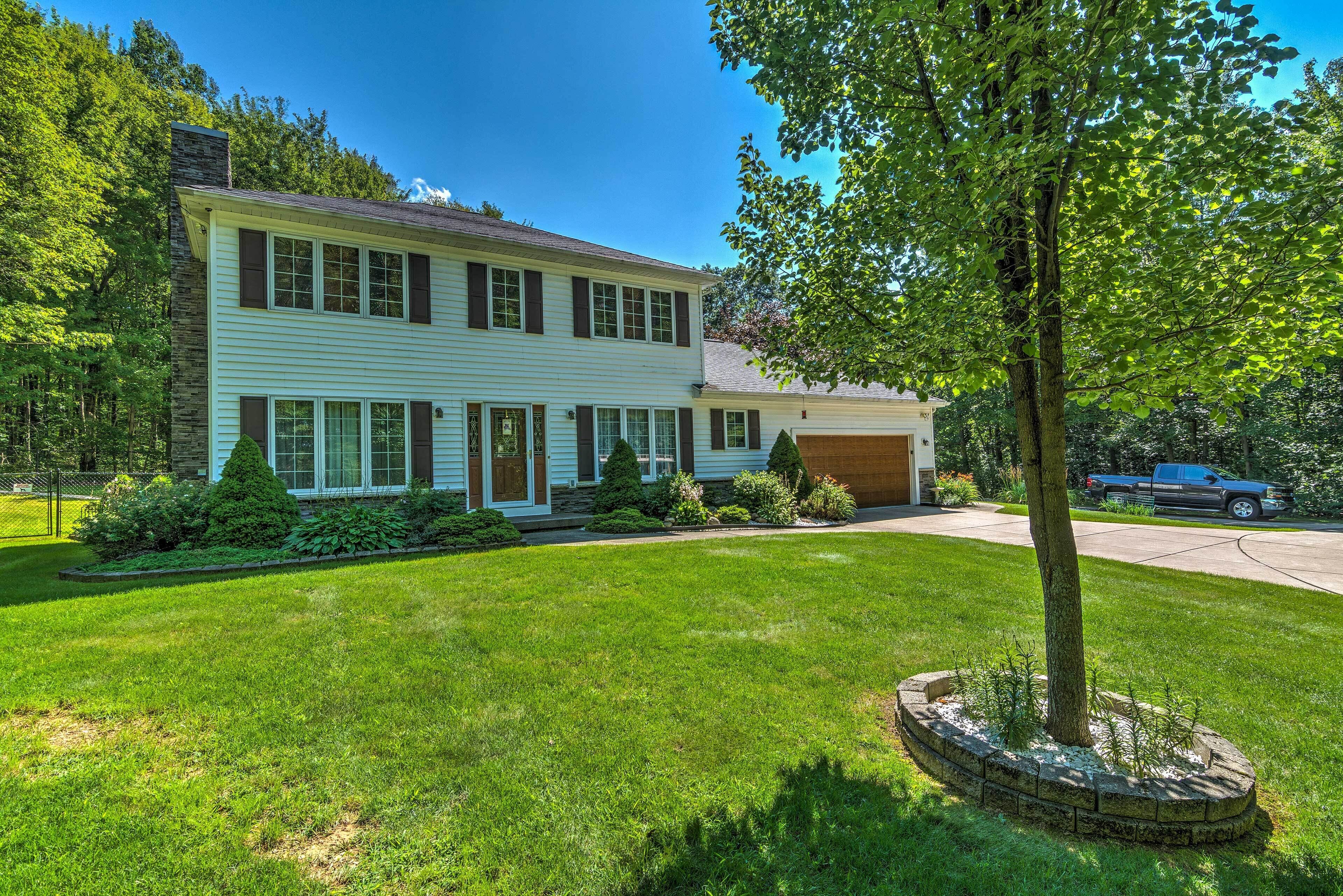 Serene Orchard Park Apartment: Large Yard & Patio! Escape the city’s hustle and bustle by retreating to this charming 1-bed, 1-bath vacation rental in Orchard Park! Nestled in the forest and near many scenic parks, this is the ideal location to immerse yourself in peaceful surroundings, with the city of Buffalo just 20 miles away. The apartment is equipped with everything you need to feel at home, including a full kitchen and cable TV. Spend afternoons watching for wildlife from the patio, or venture to the hiking trails in Chestnut Ridge Park.-- THE PROPERTY --Forest Surroundings | Furnished Patio | Off-Street Parking | Free WiFiThis centrally located Orchard Park home is the perfect resting spot for nature lovers, relaxation needers, and visiting fans of the Buffalo Bills!Bedroom: Queen Bed, Sleeper Sofa, Pack 'N PlayOUTDOOR LIVING: Fenced-in yard, paved patio, porch swing, dining table w/ sun umbrellaKITCHEN: Fully equipped w/ cookware & dishware, 4-seat table, Keurig coffee maker, toasterINDOOR LIVING: Open-concept layout, flat-screen cable TV, recliner chair, cedar walk-in closetGENERAL: Wireless internet access, air conditioning, ceiling fans, central heating, washer/dryerPARKING: Driveway (1 vehicle), additional parking available w/ prior homeowner approval-- THE LOCATION --SUMMER FUN: Eternal Flame Falls (1.6 miles), Chestnut Ridge Park (3.3 miles), Woodlawn Beach State Park (12.2 miles)WINTER ACTIVITY: Kissing Bridge (9.1 miles), Buffalo Ski Center (2.9 miles), Holiday Valley Resort (37.3 miles)ATTRACTIONS: New Era Field (7.6 miles), Buffalo and Erie County Botanical Gardens (12.9 miles), downtown Buffalo (19.9 miles), Niagara Falls State Park (38.6 miles)AIRPORT: Buffalo Niagara International Airport (21.9 miles)-- REST EASY WITH US --Evolve makes it easy to find and book properties you'll never want to leave. You can relax knowing that our properties will always be ready for you and that we'll answer the phone 24/7. Even better, if anything is off about your stay, we'll make it right. You can count on our homes and our people to make you feel welcome — because we know what vacation means to you.-- POLICIES --- No smoking - No pets allowed- No events, parties or large gatherings- Must be at least 25 years old to book- Additional fees and taxes may apply- Photo ID may be required upon check-in- NOTE: Your safety matters. This property features exterior security cameras, around the perimeter, facing out. They do not look into any interior spaces- NOTE: The homeowner lives on-site, in a completely separate unit, and may be present during your stay