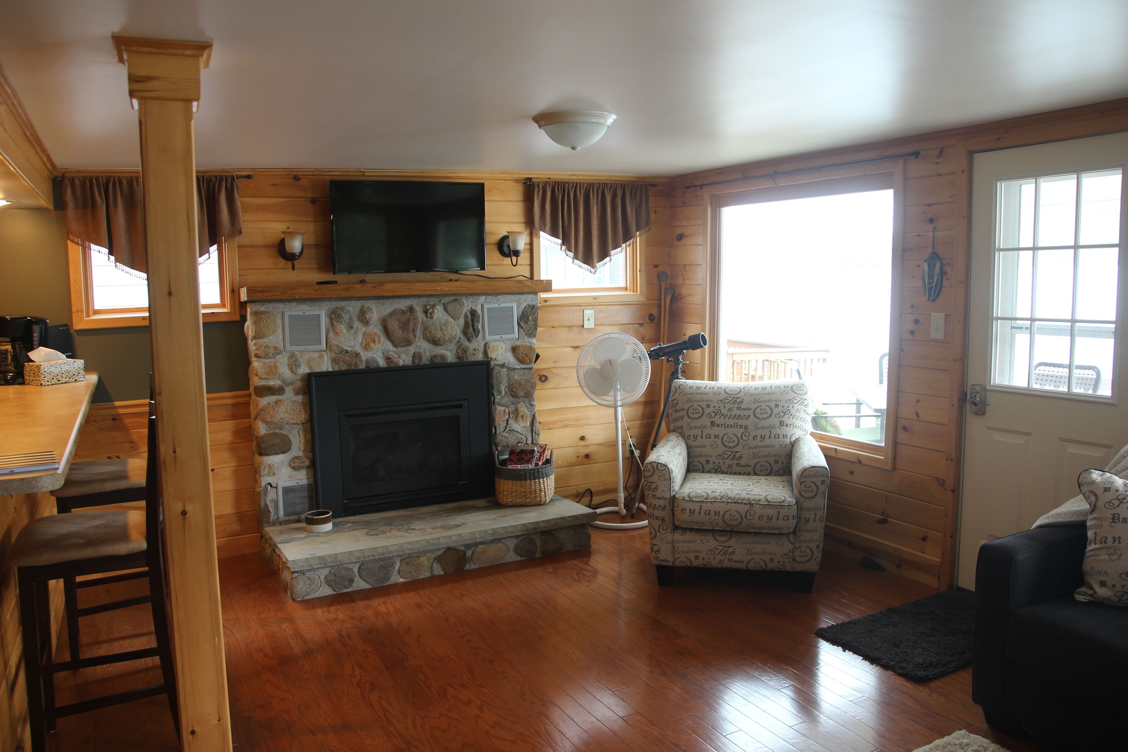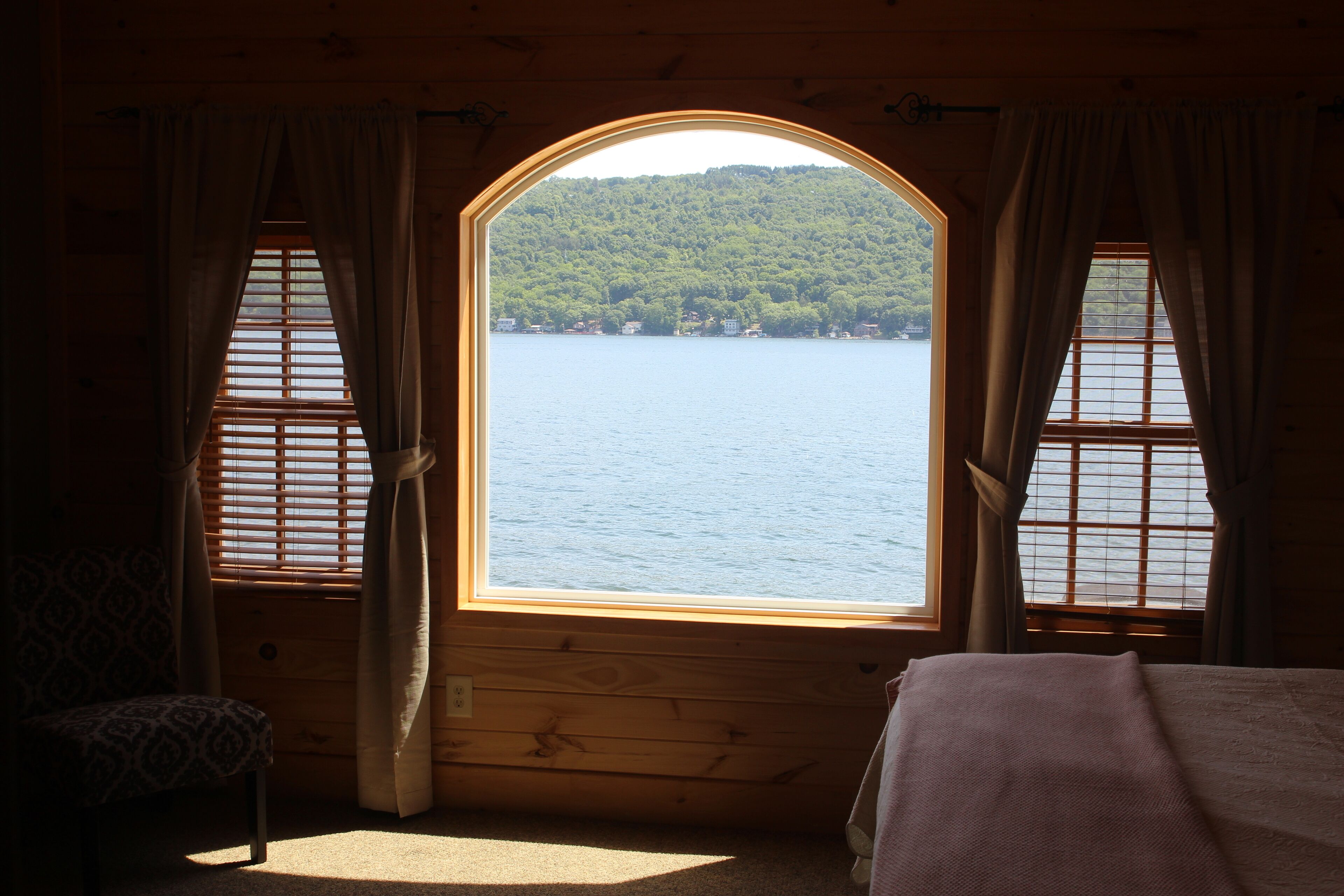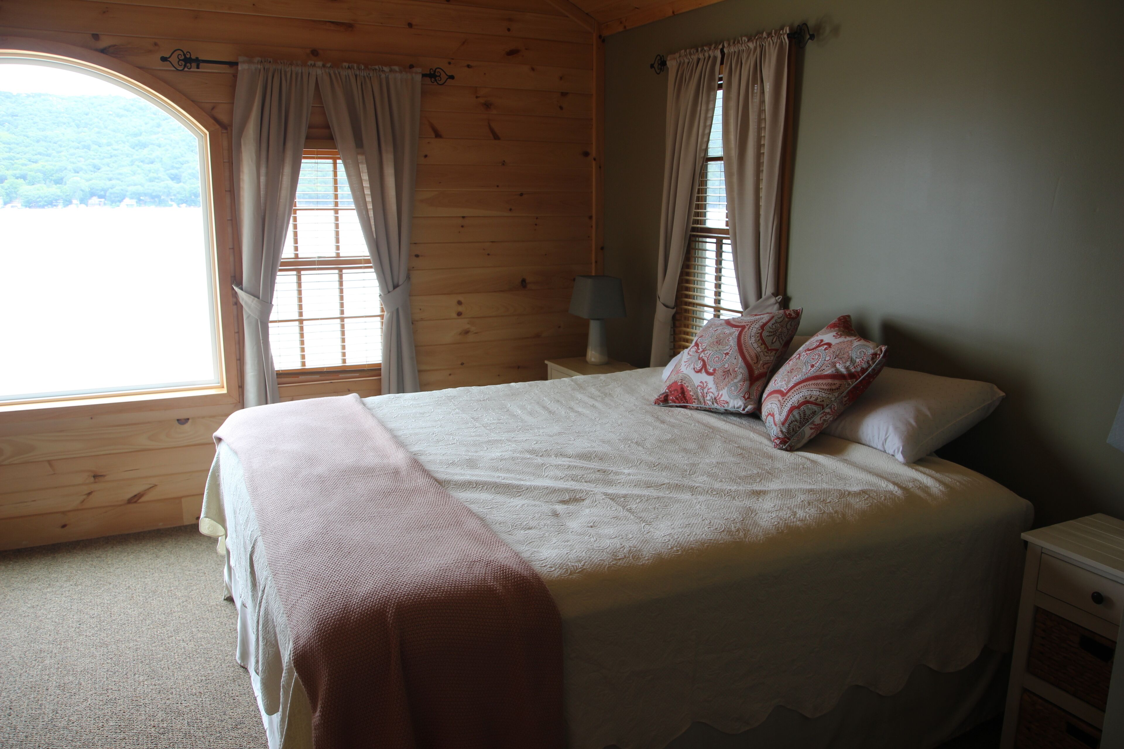 Enjoy Lake Living on Keuka Lake! Relax On Our Large Permanent Dock! If you are considering a fun family getaway or a couples retreat come experience this peaceful cottage. Located in the Heart of the Finger Lakes Wine Country, also known as "Crooked Lake" by the locals, this lakefront cottage is perfect for family vacations and other special occasions, such as girls'/guys' getaways. The lakefront views are spectacular, and there is ample room for relaxing both inside and out.Situated on the west side of Keuka Lake between Branchport and Hammondsport, the updated cottage is right on the water's edge and boasts 54 feet of lake frontage. The cottage offers breathtaking views of the lake and bluff throughout all seasons. The outside space offers a lakeside covered porch, as well as a stone paver patio for family meals, and a rare lush green lawn . The outdoor living area is second to none with a 700 square foot permanent dock adding 16'x16' additional outdoor lake living space! There is a ladder to enter the water on the side of the dock as well as a shale beach area to enter the water to enjoy a nice canoe ride.The open floor plan has a nicely equipped kitchen with a refrigerator, stovetop, wall oven, microwave oven, toaster oven, Keurig coffee maker and breakfast bar. The home includes a gas fireplace, pine walls and wood floors with carpeting in the bedrooms.The bathroom includes a tub/shower, sink and toilet. ***Towels are NOT provided.The first bedroom is a large master with a king bed looking out onto the relaxing water. The second bedroom hosts a queen bed with a set of twin bunks. Both bedrooms have flat screen tv's for those quiet indoor times. Accommodations for 5 with plenty of room to spare. ***Linens are NOT provided.Your days can be filled with beautiful sunrises, fishing from the dock, a relaxing canoe ride or swim in the lake, or your favorite games inside or out. The convenient location allows many options for day excursions within an hour of the cottage. Evenings are often spent around the campfire discussing exciting plans for the following day! There are over a dozen award winning wineries and micro-breweries offering samplings of their handcrafted wines, champagnes and beers. Venture out on your own and follow the wine trail, or even book a wine tour. There are many quaint shops in the Village of Hammondsport with souvenirs, gifts and the perfect antique treasures.Be sure to check out the many restaurants around the lake as well which are accessible by car or boat for a break in cooking! Several of the restaurants have nightly specials and even live music!