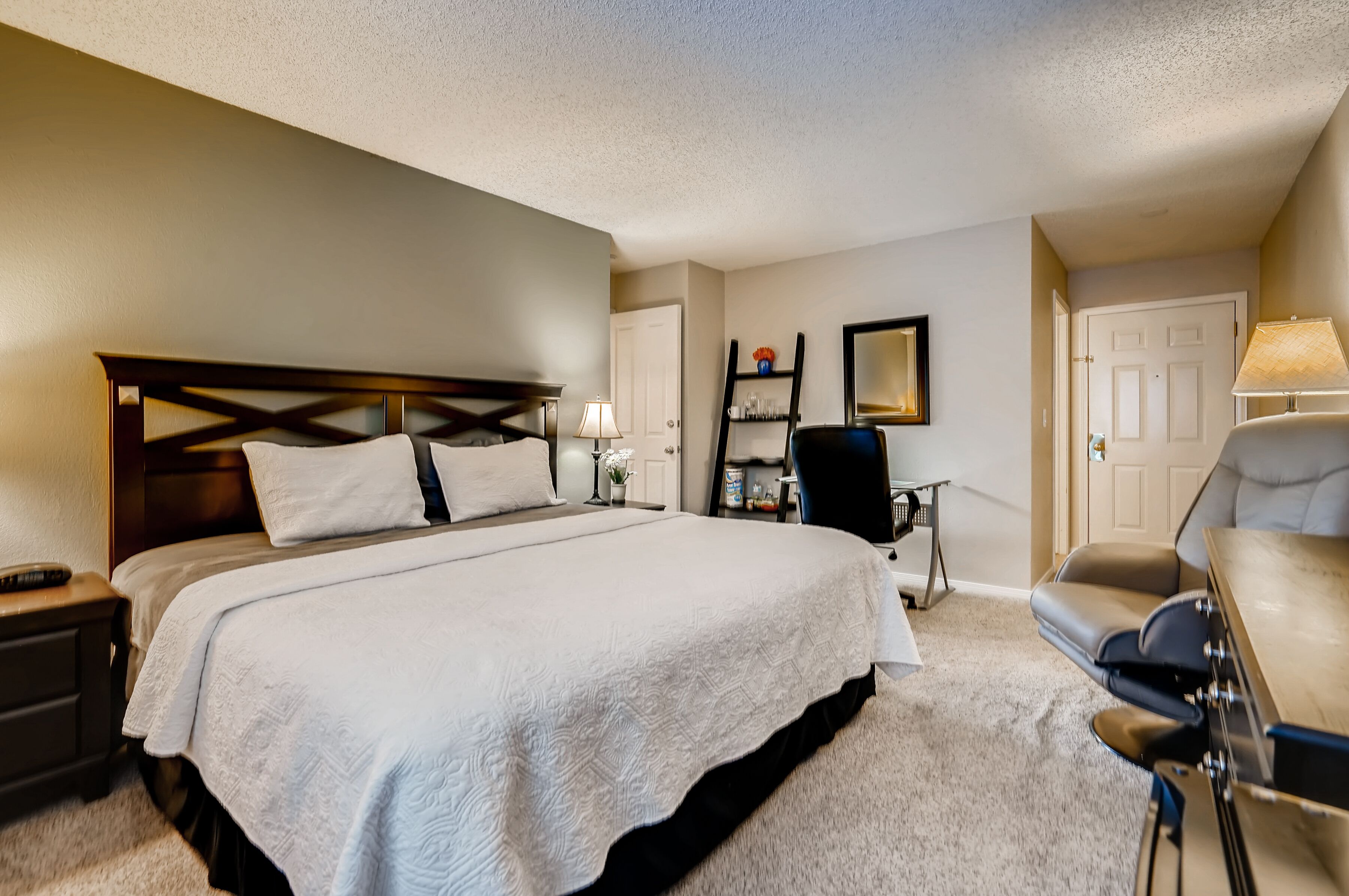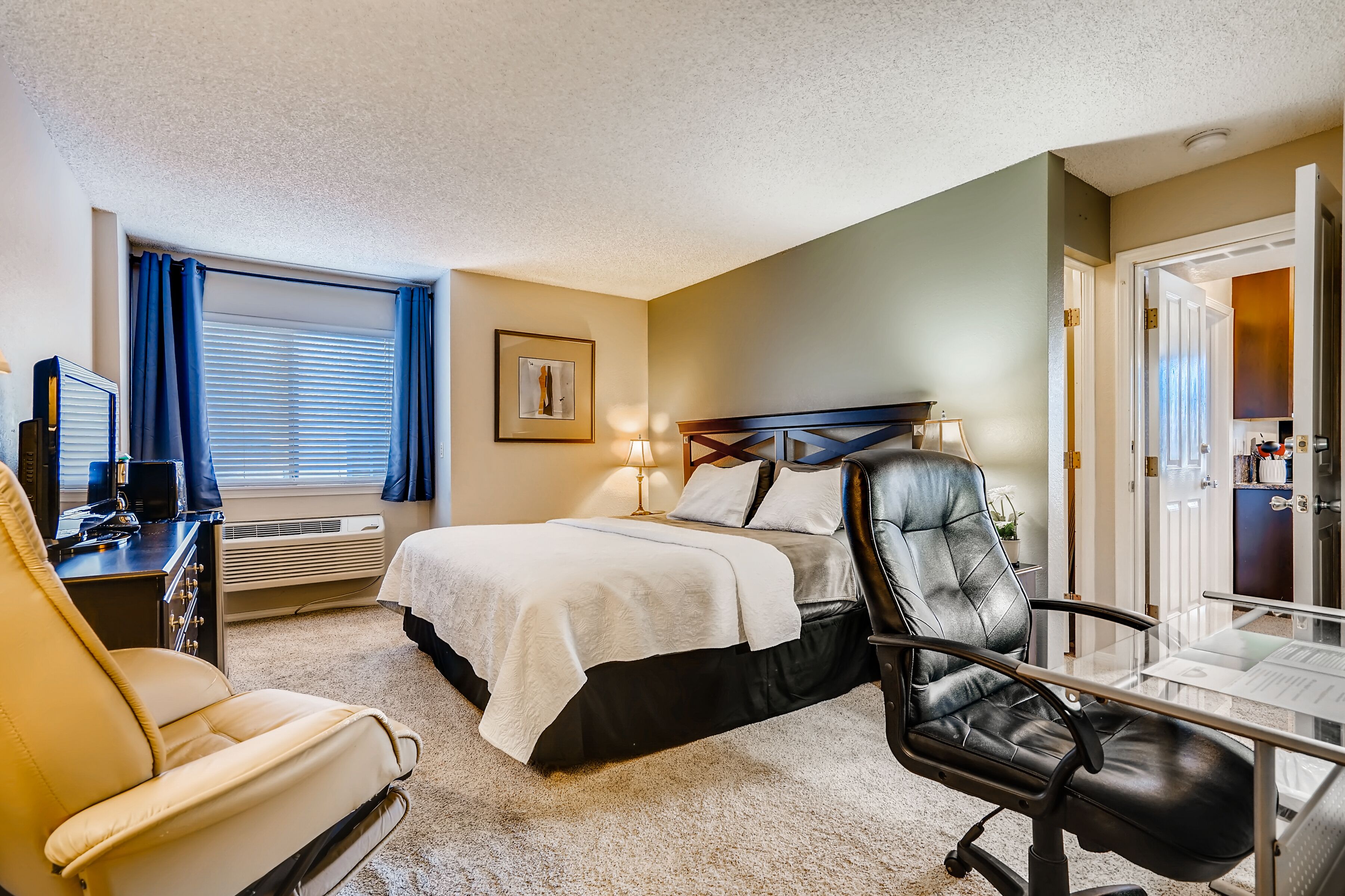 BC41244 Charming Studio GREAT LOCATION! Charming furnished studio in Greenwood Village, DTC. Just drop off suitcase and go! True to a one room studio, this residence offers a 36 inch tall refrigerator, microwave, coffee pot, plates, utensils, glassed & coffee cups. Laundry facility is on the first floor of the building. Stairs will take you to the residence, easy access and plenty of open parking. Easy highway access to Denver, DIA, & mountains. Common area with pool & fitness center. Easy walk across the street to RTD Light Rail station for commuting downtown or to Park Meadows Mall. Restaurants(incl. Starbucks!), shopping and parks nearby.