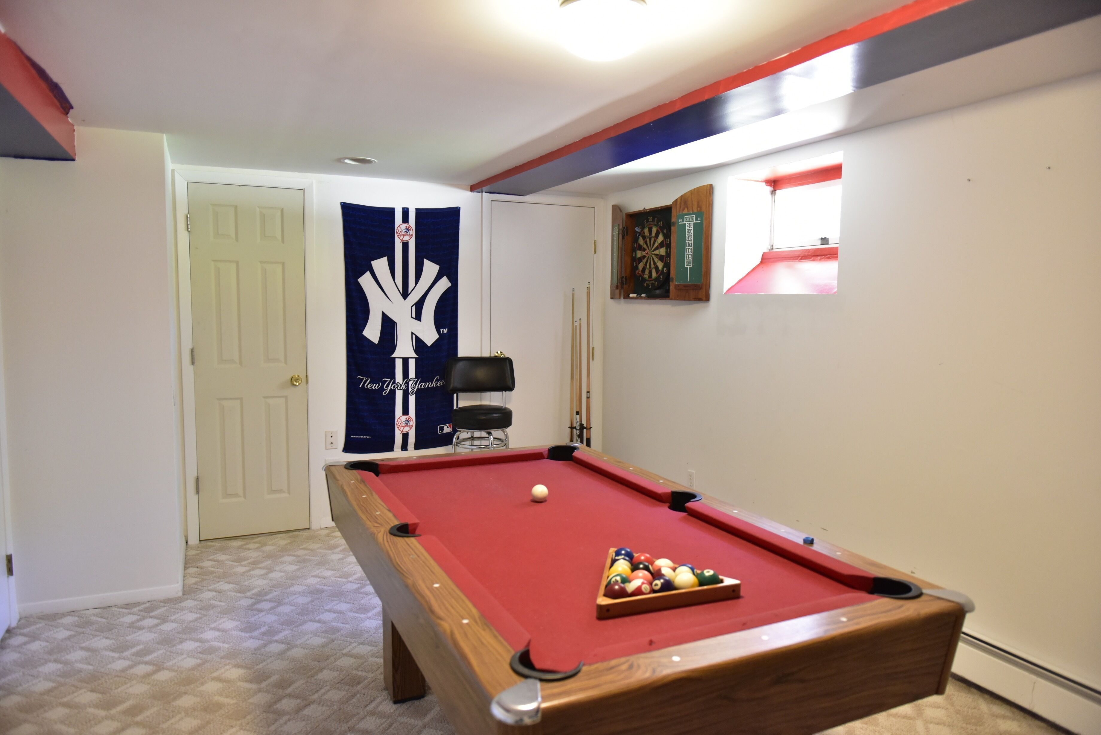 Beautiful Hampton Bays Vacation Rental Home Beautiful cozy well kept home on a quiet cul-de-sac street, perfectly centered in heart of Hampton Bays, NY. Only 3-5mins to several beaches & bays and to some of the best restaurants in the Hamptons. Huge Backyard, heated 18'x33' in-ground pool, sand volleyball court - 3 Beds (huge Master with Sitting Area & Balcony with Seating) / Comfortably Sleeps 12 - 3 1/2 Baths - Lovely Eat-In Kitchen & Dining Room - Living Room and Family Room with Fireplace - Billiard Room with Pool Table - Game Room (Required to sign a "Rental Agreement").