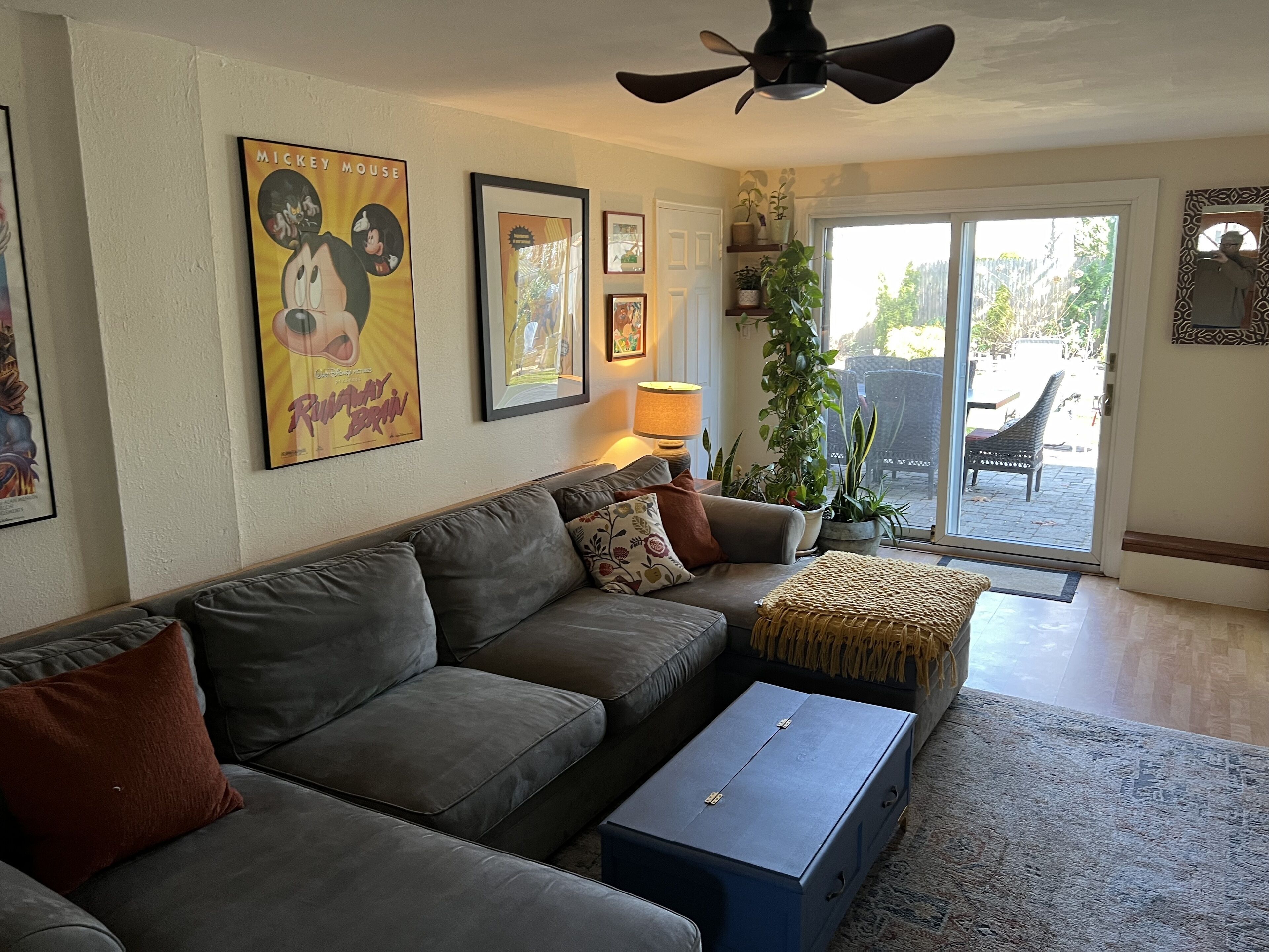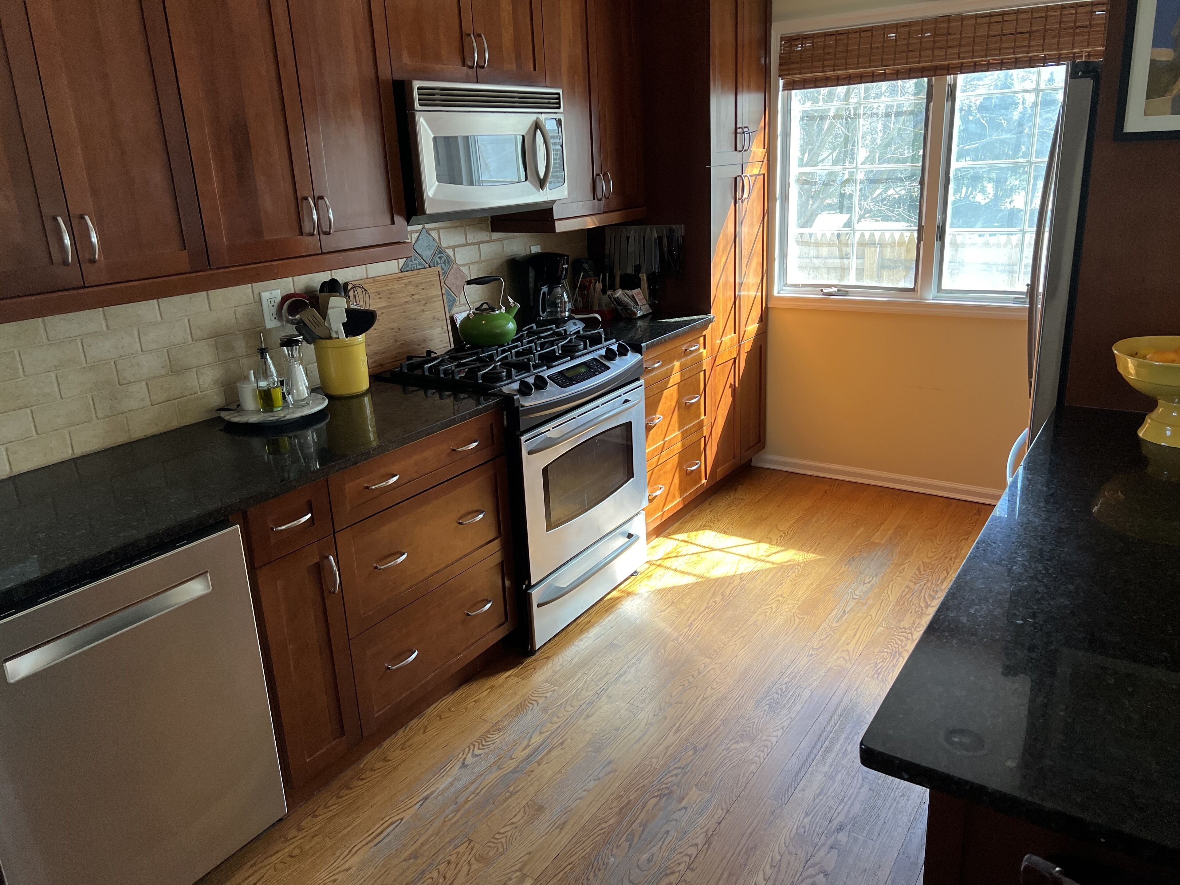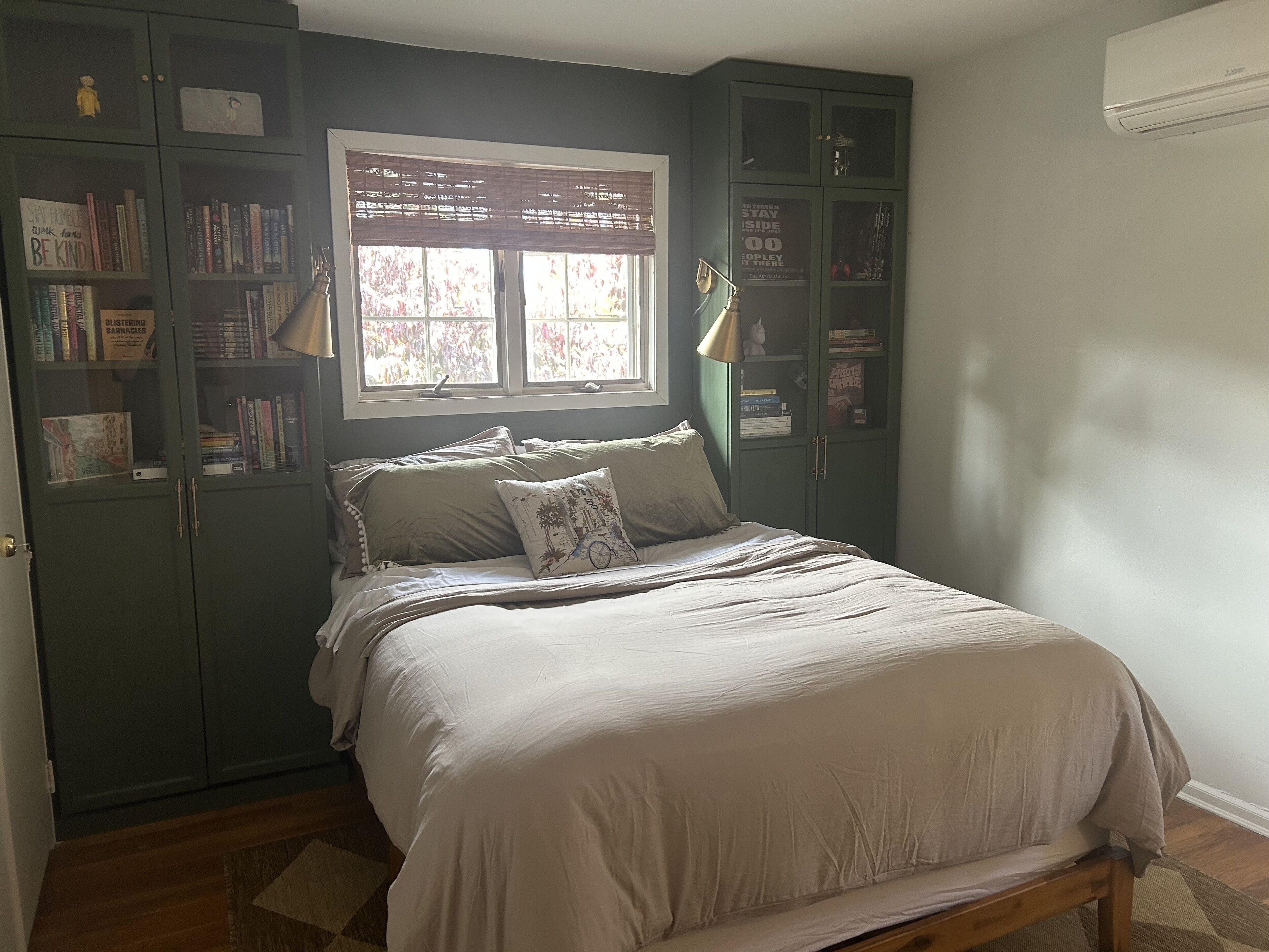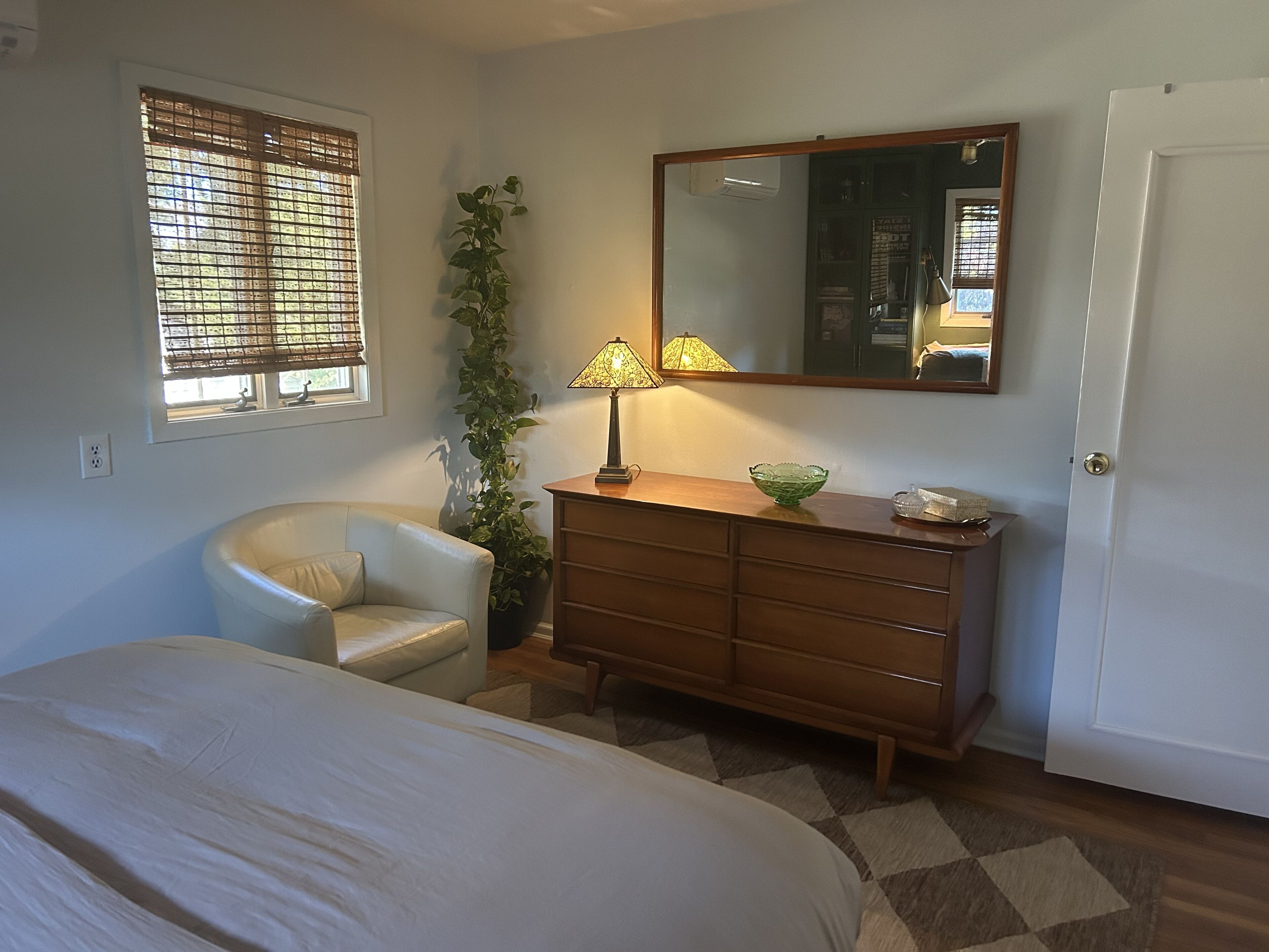 Peaceful home-away-from-home centrally located in the heart of Long Island. Welcome to Evergreen, a mid-century home tucked within a peaceful, tree-lined neighborhood, centrally located to explore all of Long Island.***MID-LEVEL * Open-concept kitchen, dining room, and living room are perfect for dining and entertaining. * Complimentary coffee and tea bar. * Well-appointed kitchen--complete with cookware, dinnerware, equipment, and seasonings* Kitchen table seats 4. Farmhouse dining room table just a few steps seats six or more. * Best NY bagels are just around the corner! DEN: * Double chaise sectional * Large wall-mounted Smart TV ideal for streaming your favorite shows. * A full bathroom with a walk-in shower.UPSTAIRS: * Dreamy pillowtop beds. * Ceiling fan and a Mitsubishi mini-split heating and cooling system in each bedroom that you can set to your desired sleeping temperature. * Wall-mounted TV in the blue bedroom. * A full bath with Carrara marble-top double-sinks and shower/tub combo * Fluffy white towels, washcloths, complimentary shampoo, conditioner, body wash, and blow dryer.DOWNSTAIRS: * A private office with Verizon Wi-Fi internet. * An egress window * Gym equipment (elliptical, treadmill, and free weights) * Washer, dryer, drying rack, and complimentary EarthBreeze laundry sheets.OUTSIDE: * Serene fenced-in yard surrounded by evergreens, mature trees, blooming perennials, and a pollinator garden. * Weber gas grill * Patio table that seats 6. * Hammock* Fire pit Please note:Evergreen is a family home in a quiet residential neighborhood. We welcome guests who respect our property, quiet hours, and our house rules. When inquiring, please let me know a little bit about your group.Things to consider before booking: 1) Parties or large gatherings are not allowed. Violation of this rule will result in cancellation of your reservation with no refund. Please be aware that we have Ring cameras at both entrances for your safety and ours. We can see if additional guests arrive.2) Visitors who are not registered as guests are welcome during the day, but they cannot stay overnight without our prior approval. Please inform us in advance if you plan to have any visitors during your stay. We charge an extra fee of $20 per person, per night for any additional guests beyond six people. 3) We want you to enjoy yourself at our home, but please be mindful of the noise levels at all times. Please keep the volume of music, TV, conversations, etc., at a reasonable level during the day and lower it after 10 p.m. until 8 a.m. 4) We love pets, but unfortunately, we cannot accommodate them at our property. We are especially allergic to cats. Please do not bring any pets or animals to our home (service animals excluded) without our prior approval. If we find any evidence of pets or animals at our property, we will charge you an extra cleaning fee of $200.5) When the house is not being rented, we have a very spoiled senior dog who lives here. And while the house is thoroughly cleaned before check-in, no amount of cleaning can guarantee a completely dander-free home. If you or anyone in your group are allergic to dogs, we want you to know this before booking.