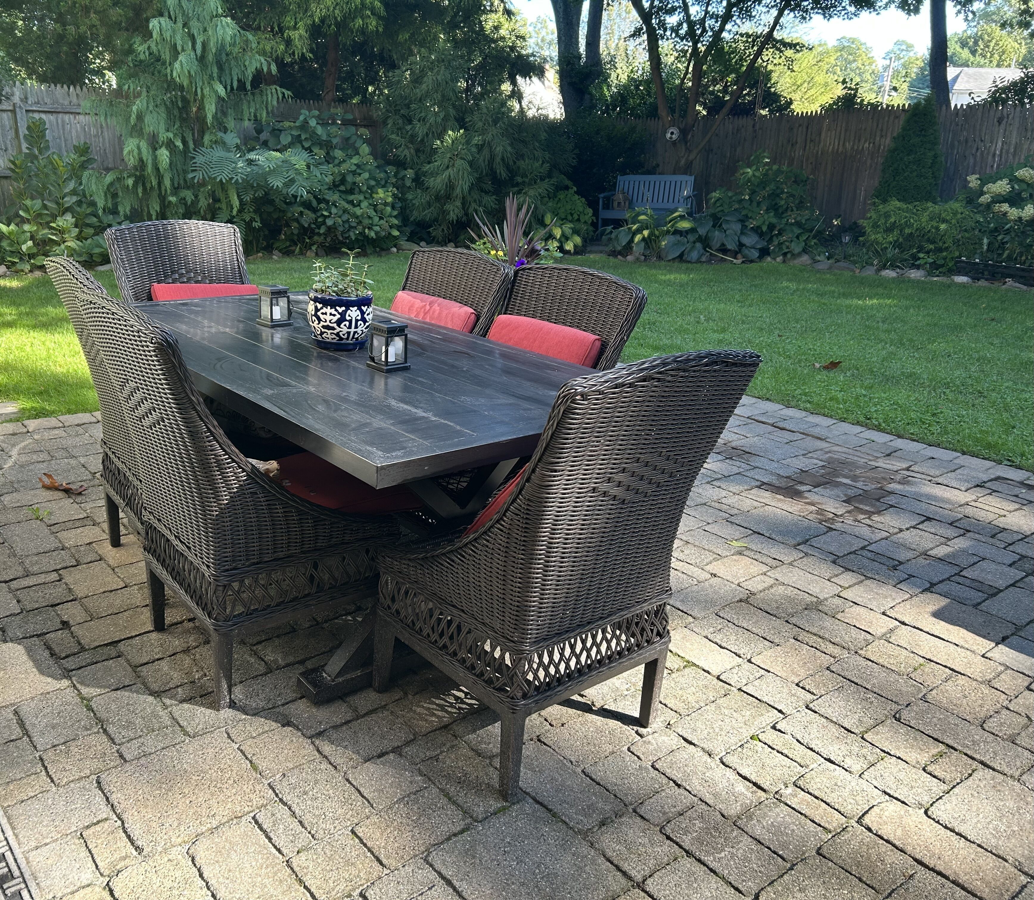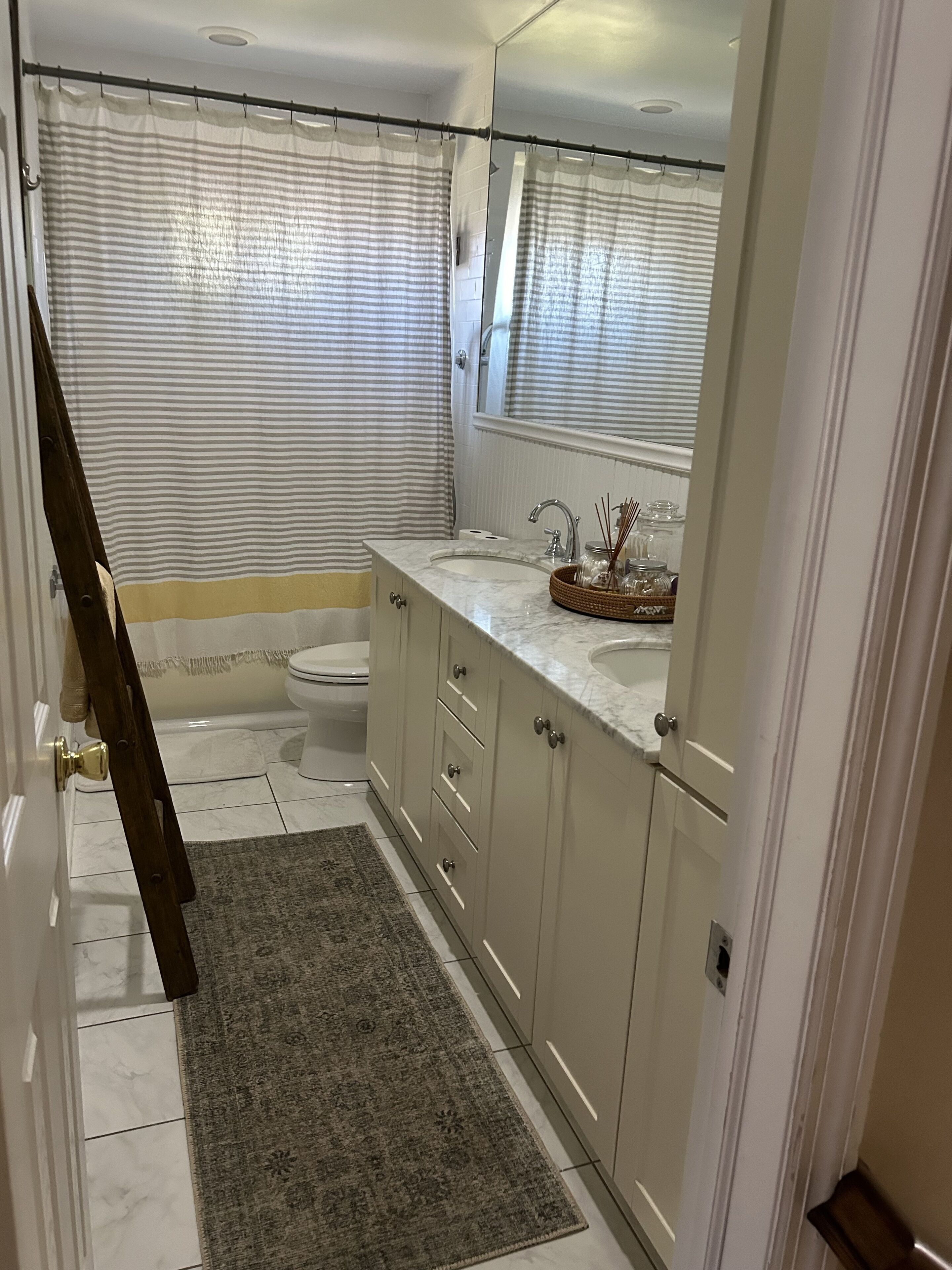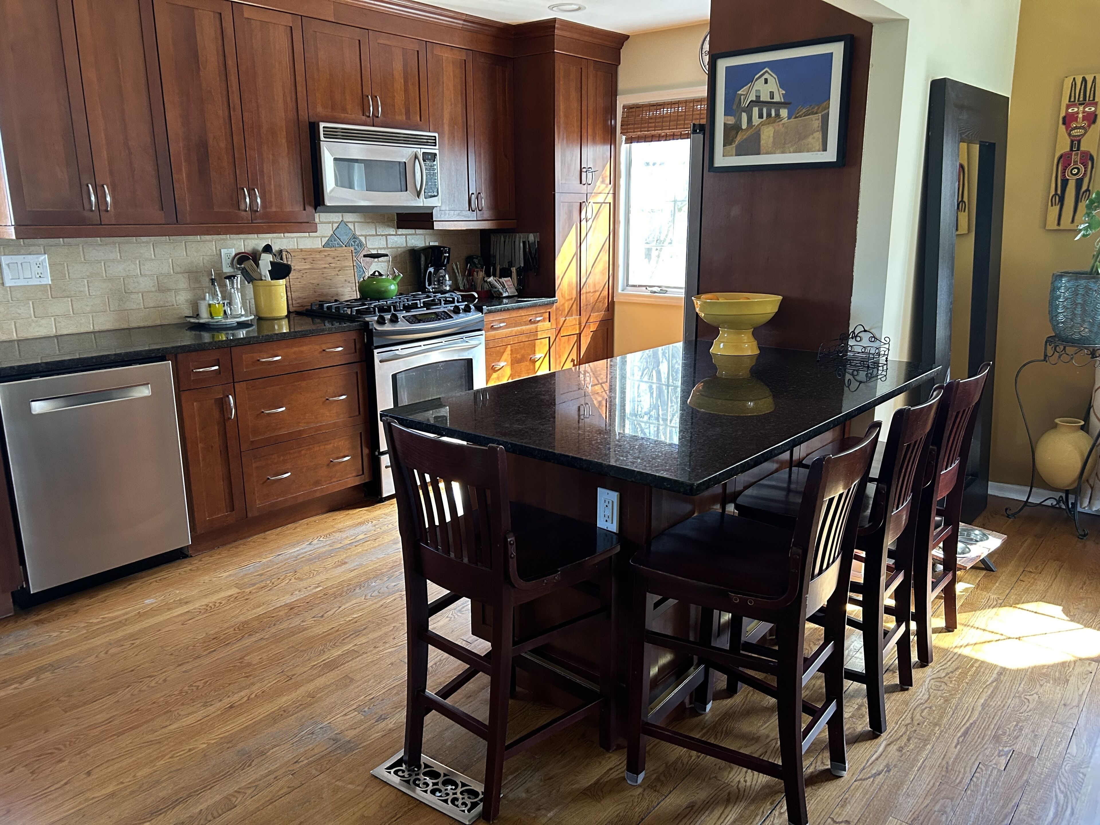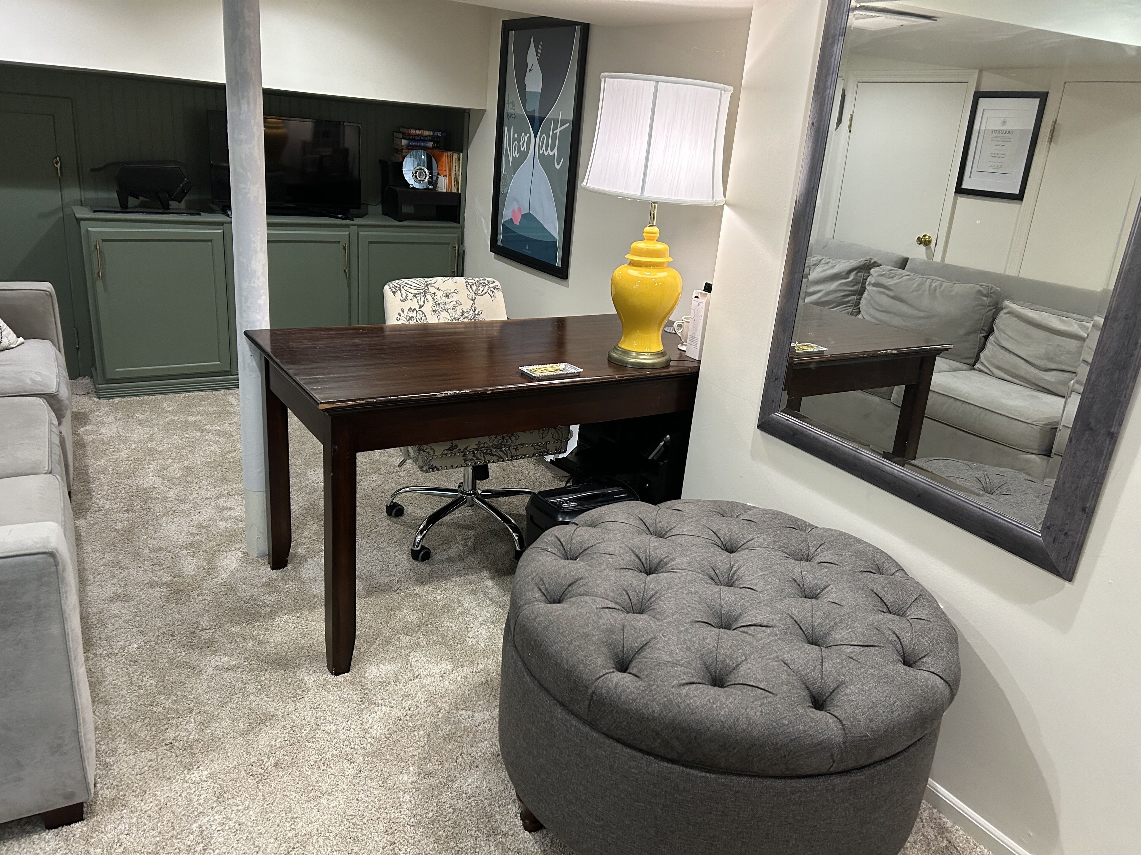 Peaceful home-away-from-home centrally located in the heart of Long Island. Welcome to Evergreen, a mid-century home tucked within a peaceful, tree-lined neighborhood, centrally located to explore all of Long Island.***MID-LEVEL * Open-concept kitchen, dining room, and living room are perfect for dining and entertaining. * Complimentary coffee and tea bar. * Well-appointed kitchen--complete with cookware, dinnerware, equipment, and seasonings* Kitchen table seats 4. Farmhouse dining room table just a few steps seats six or more. * Best NY bagels are just around the corner! DEN: * Double chaise sectional * Large wall-mounted Smart TV ideal for streaming your favorite shows. * A full bathroom with a walk-in shower.UPSTAIRS: * Dreamy pillowtop beds. * Ceiling fan and a Mitsubishi mini-split heating and cooling system in each bedroom that you can set to your desired sleeping temperature. * Wall-mounted TV in the blue bedroom. * A full bath with Carrara marble-top double-sinks and shower/tub combo * Fluffy white towels, washcloths, complimentary shampoo, conditioner, body wash, and blow dryer.DOWNSTAIRS: * A private office with Verizon Wi-Fi internet. * An egress window * Gym equipment (elliptical, treadmill, and free weights) * Washer, dryer, drying rack, and complimentary EarthBreeze laundry sheets.OUTSIDE: * Serene fenced-in yard surrounded by evergreens, mature trees, blooming perennials, and a pollinator garden. * Weber gas grill * Patio table that seats 6. * Hammock* Fire pit Please note:Evergreen is a family home in a quiet residential neighborhood. We welcome guests who respect our property, quiet hours, and our house rules. When inquiring, please let me know a little bit about your group.Things to consider before booking: 1) Parties or large gatherings are not allowed. Violation of this rule will result in cancellation of your reservation with no refund. Please be aware that we have Ring cameras at both entrances for your safety and ours. We can see if additional guests arrive.2) Visitors who are not registered as guests are welcome during the day, but they cannot stay overnight without our prior approval. Please inform us in advance if you plan to have any visitors during your stay. We charge an extra fee of $20 per person, per night for any additional guests beyond six people. 3) We want you to enjoy yourself at our home, but please be mindful of the noise levels at all times. Please keep the volume of music, TV, conversations, etc., at a reasonable level during the day and lower it after 10 p.m. until 8 a.m. 4) We love pets, but unfortunately, we cannot accommodate them at our property. We are especially allergic to cats. Please do not bring any pets or animals to our home (service animals excluded) without our prior approval. If we find any evidence of pets or animals at our property, we will charge you an extra cleaning fee of $200.5) When the house is not being rented, we have a very spoiled senior dog who lives here. And while the house is thoroughly cleaned before check-in, no amount of cleaning can guarantee a completely dander-free home. If you or anyone in your group are allergic to dogs, we want you to know this before booking.