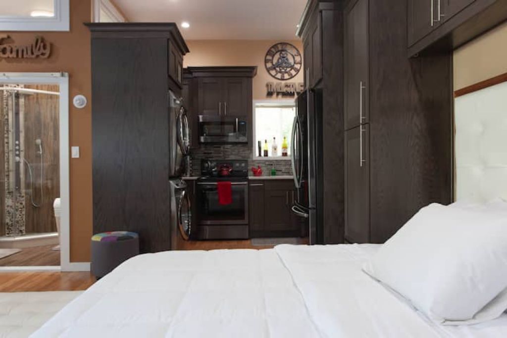 SECRET HIDEAWAY: LUXURY L.I. STUDIO W/PRIV. ENTRN Welcome to the perfect private space to unwind. This modern studio is fully equipped with all of the conveniences you’ll need for a great stay - plus little touches that make it feel special. The Secret Hideaway is a comfortable retreat where you can recharge your batteries and plan your exciting Long Island adventures.The spaceWhether you’re visiting Long Island on a business trip, a romantic getaway with your sweetheart, or a solo travel adventure - this stylish and comfortable studio has everything you need.You’ll have the entire apartment to yourself - a large private luxury studio with modern appliances and a welcoming backyard with a grassy lawn, firepit and an outdoor sitting space (perfect for eating outside on those warm summer nights).The apartment uses clever and visually stunning design to make the most of the available space. A high wall-mounted flat screen television can be seen from anywhere in the room, so you can cozy up in the large, king-size bed and watch your favorite TV show.The brand new kitchen has everything you need to whip up a delicious meal. There’s even a high end coffee maker so that you can start the morning right (and fresh fruit for a healthy snack).With plenty of cabinets and storage space and large French doors to let the light in, the studio feels so much more liveable than a cramped hotel room. Oh, and did I mention the bathroom? With brand new fixtures and a large, high pressure rain shower - you’ll feel like you are being pampered in a spa.It’s hard to keep a hideaway this good a secret, so book your stay soon because the calendar is filling up!Guest accessThe Smart Lock system at the apartment makes it easy for you to check yourself in whenever you arrive at the Secret Hideaway. (You’ll receive the code when you make your booking.)Once you’re in, you can start enjoying the VIP amenities, such as:A modern kitchen with brand new, state of the art appliances.A rain shower with warm water and strong water pressure.Laundry in the building.Fast and reliable WiFi access.A set of weights and an exercise mat - so that you can keep up your fitness routine even when you’re on the road.See the amenities list for more details!Other things to noteWant to have an unforgettable experience during your visit? Talk to me about test driving my Tesla Model X.