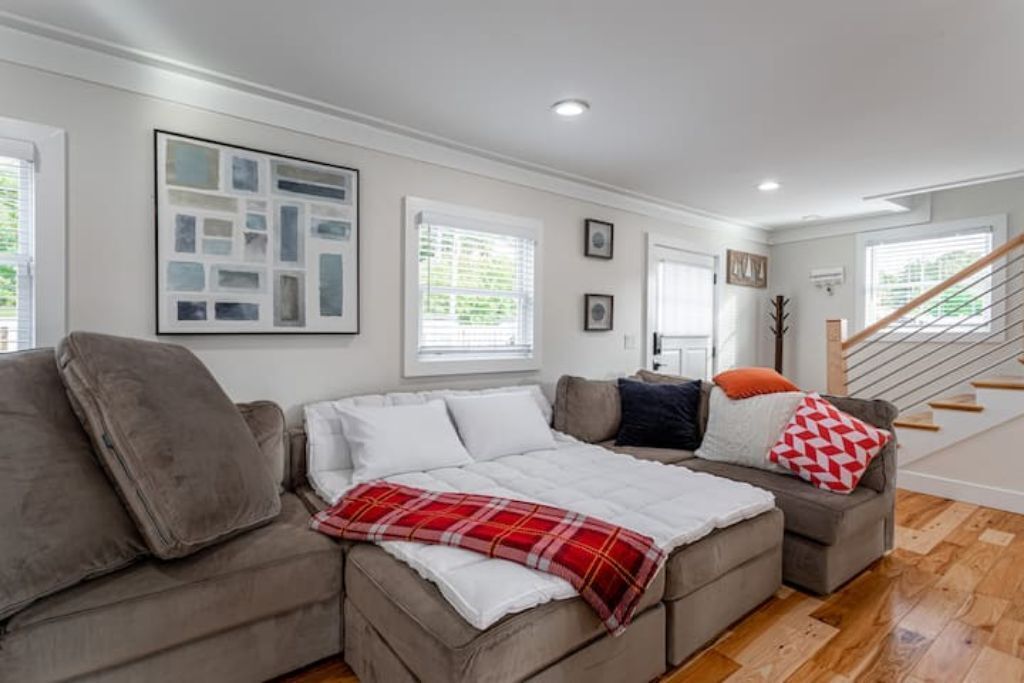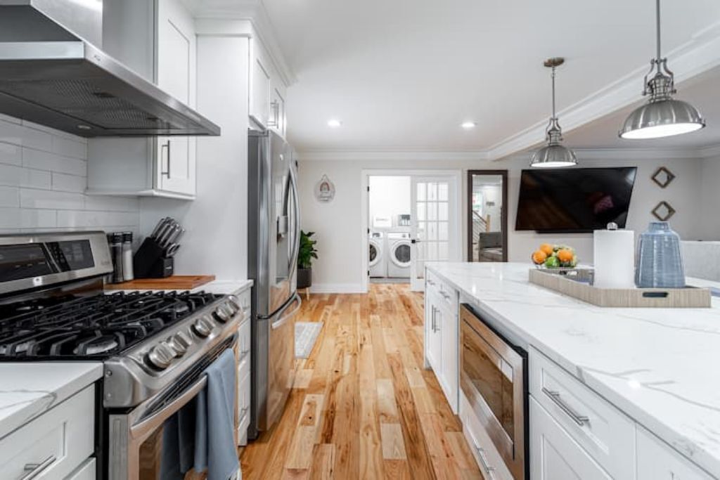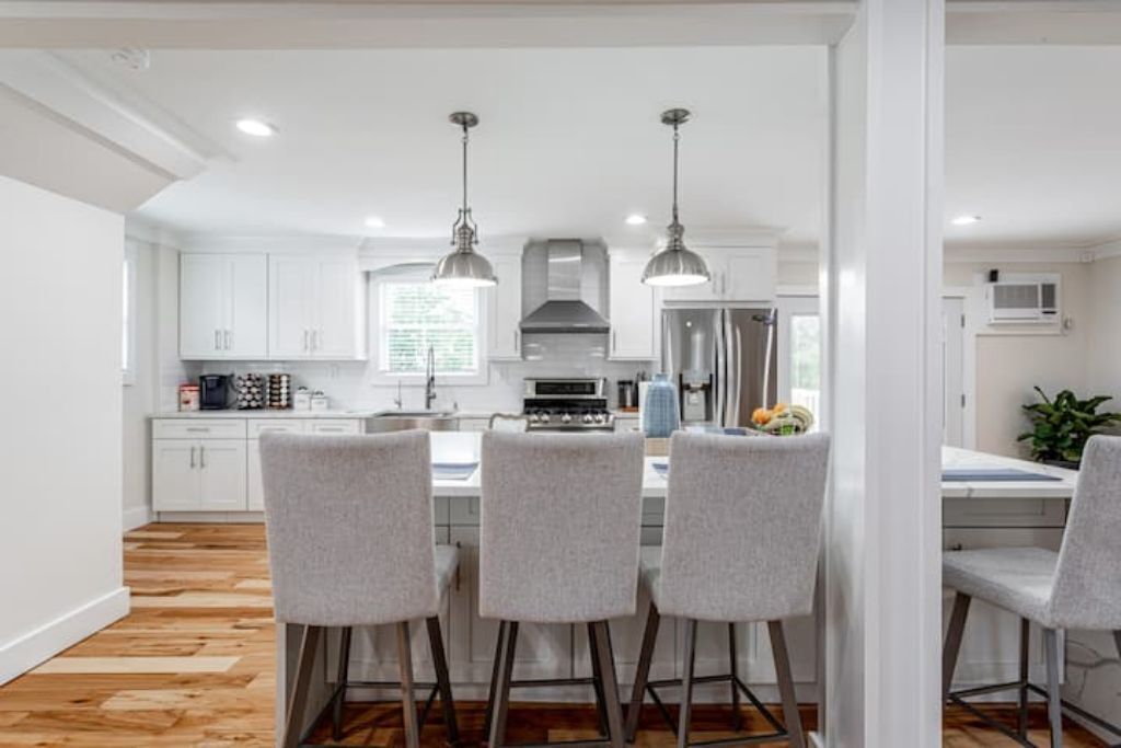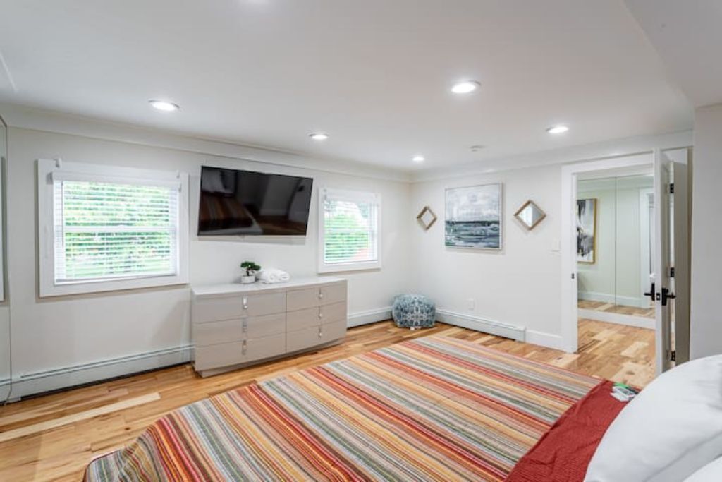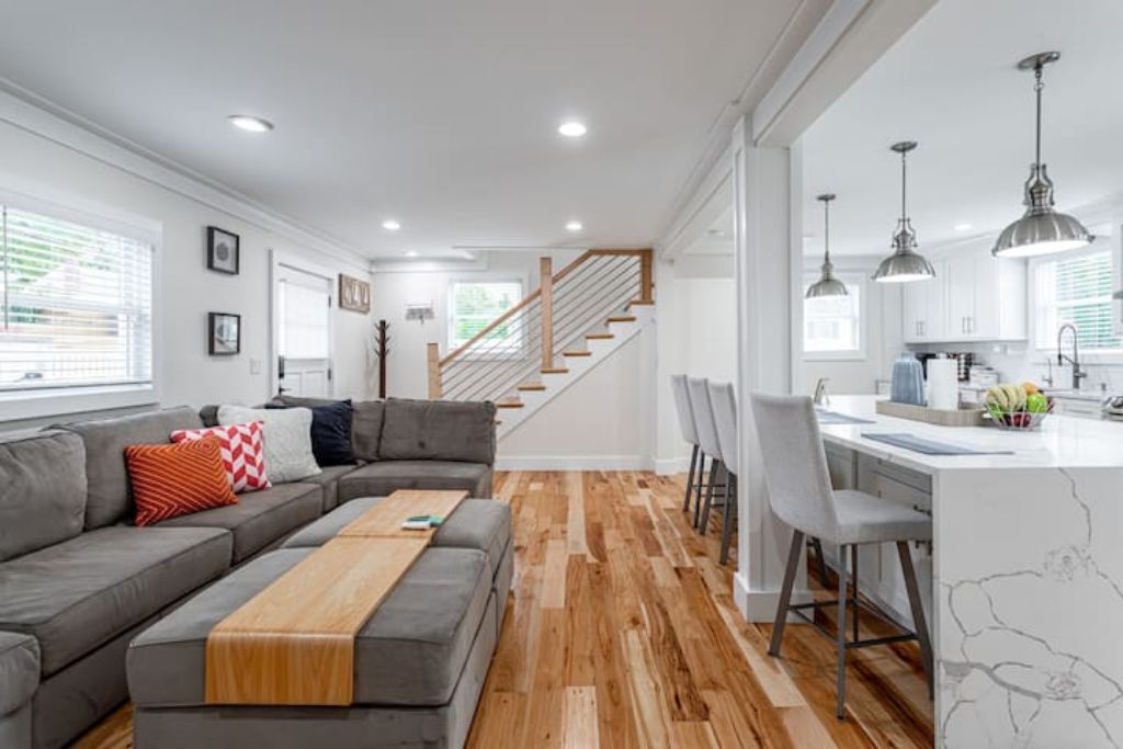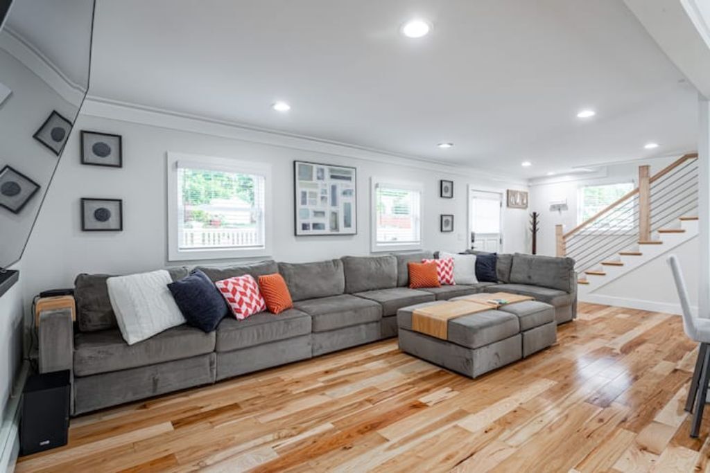 Hamptons Style Living Walk to Cafe Deck Nestled along a quiet street in a leafy neighbourhood is this picture-perfect home with chic Hamptons style and modern contemporary design.Inside you’ll have space to entertain with open living, a gourmet kitchen, 3 beautiful bedrooms, 2 sparkling bathrooms, a charming wrap-around patio, and a decked balcony.Stay just steps from a café, many restaurants, a mall, and Walgreens, or take a 5 min drive into the city giving you the ideal base to experience everything the area has to offer.The spaceMake your way through the front gate and into the home using the easy keyless lock where you are instantly greeted with style, elegance, and modern design from the moment you step through the door.Relax in the inviting living area on the modular lounge that surrounds the wall-mounted smart TV with access to all your favourite streaming apps to keep everyone entertained. The sofa can also be converted into a comfortable bed for an additional two guests.Step through into the large Hamptons-style chef’s kitchen that makes entertaining a breeze with high-end appliances and all the cookware, dinnerware, and utensils you could need. You’ll also have access to a full water filtration system that offers healthy alkaline water from every tap.Enjoy a freshly brewed cup of coffee from the fully stocked coffee station with a selection of tea, coffee and sweeteners then sit up at the large breakfast bar island as you keep the chef company.There are three generous bedrooms within the home that each offer luxuriously large king beds topped in soft, quality linen and plenty of space to unpack and make yourself right at home.The master suite features a large wall-mounted tv – perfect for a movie night tucked up in bed, bedroom two offers view out over the neighbourhood while bedroom three is up in the stylish loft space and has its own mini kitchenette, a beanbag chair, and a roof-mounted TV.You’ll find two sparkling bathrooms on each of the two floors. Bathroom one offers a luxe spa-like experience with a custom floating vanity, a smart toilet and a large walk-in shower equipped with a multi-jet rain shower unit. The second bathroom is located upstairs, is just as lavish and includes a full-size bath with all the essentials provided for you.Guests also have full access to the laundry downstairs with a large washing machine and dryer along with complimentary detergent so you can pack light and wash on the go.On a sunny day step out onto the expansive decked balcony where you can relax on the outdoor lounge and take in the views of the neighbourhood. There is a gorgeous wrap-around patio giving you many places to sit with your morning coffee surrounded by colourful planters and leafy street trees.So, if you’re looking for the perfect place to call home just steps away from a charming café and only a short walk to Huntington Commons Mall, you can’t go past this spacious, picture-perfect home for your next family or group getaway – We can’t wait to welcome you!For those with larger groups, we also offer an exclusively designed basement-level unit that can also be reserved. This option extends the available space, giving you even more room for your family and friends to unwind and relax.(STARTING 12/1/2023)Guest accessGuests have private access to the entire home and outdoor areas including the wrap-around patio are decked balcony as well as free Wi-Fi, free parking, complimentary coffee access to a washing machine and dryer in the laundry......Other details to note:Please note that there is a basement-level unit below the home so we ask that any loud noises like the TV or music to be kept to a minimum out of respect to the guests below and to respect the quiet time after 10pm.We would also appreciate if guests could remove their shoes before upon entering the home and to refrain from running, as you can imagine this sound travels downstairs and would be very disruptive! We strive to make sure each and every guest has a memorable stay and would really appreciate if you could take these small steps to ensure everyone enjoys their time in beautiful Huntington.